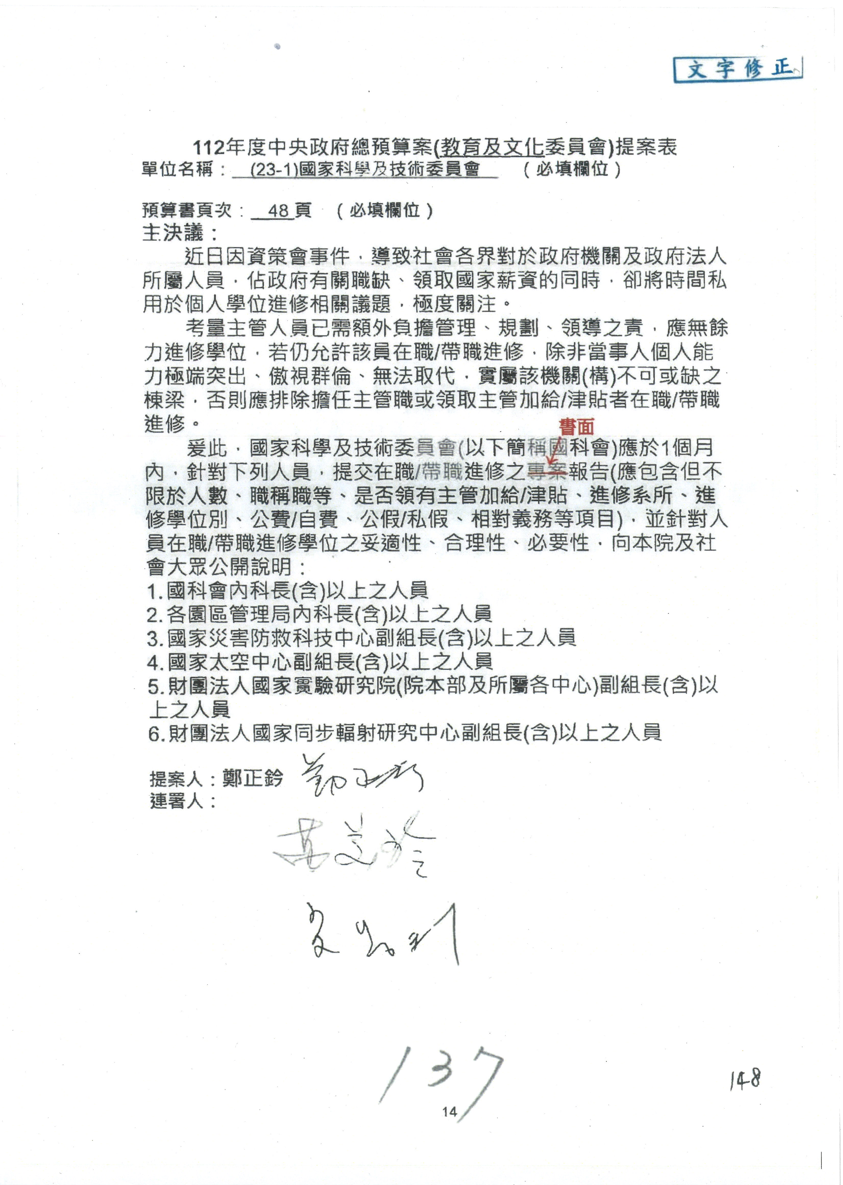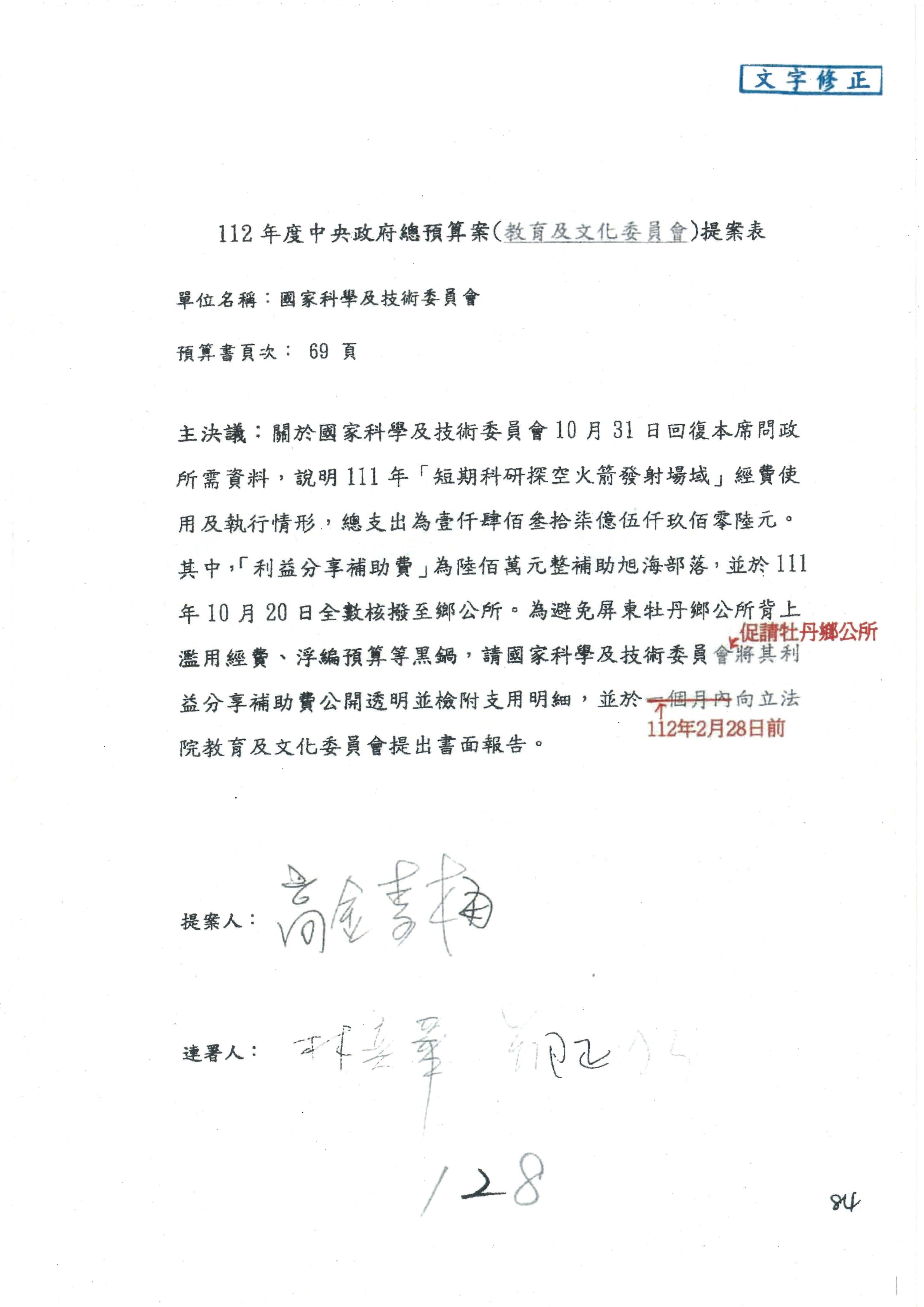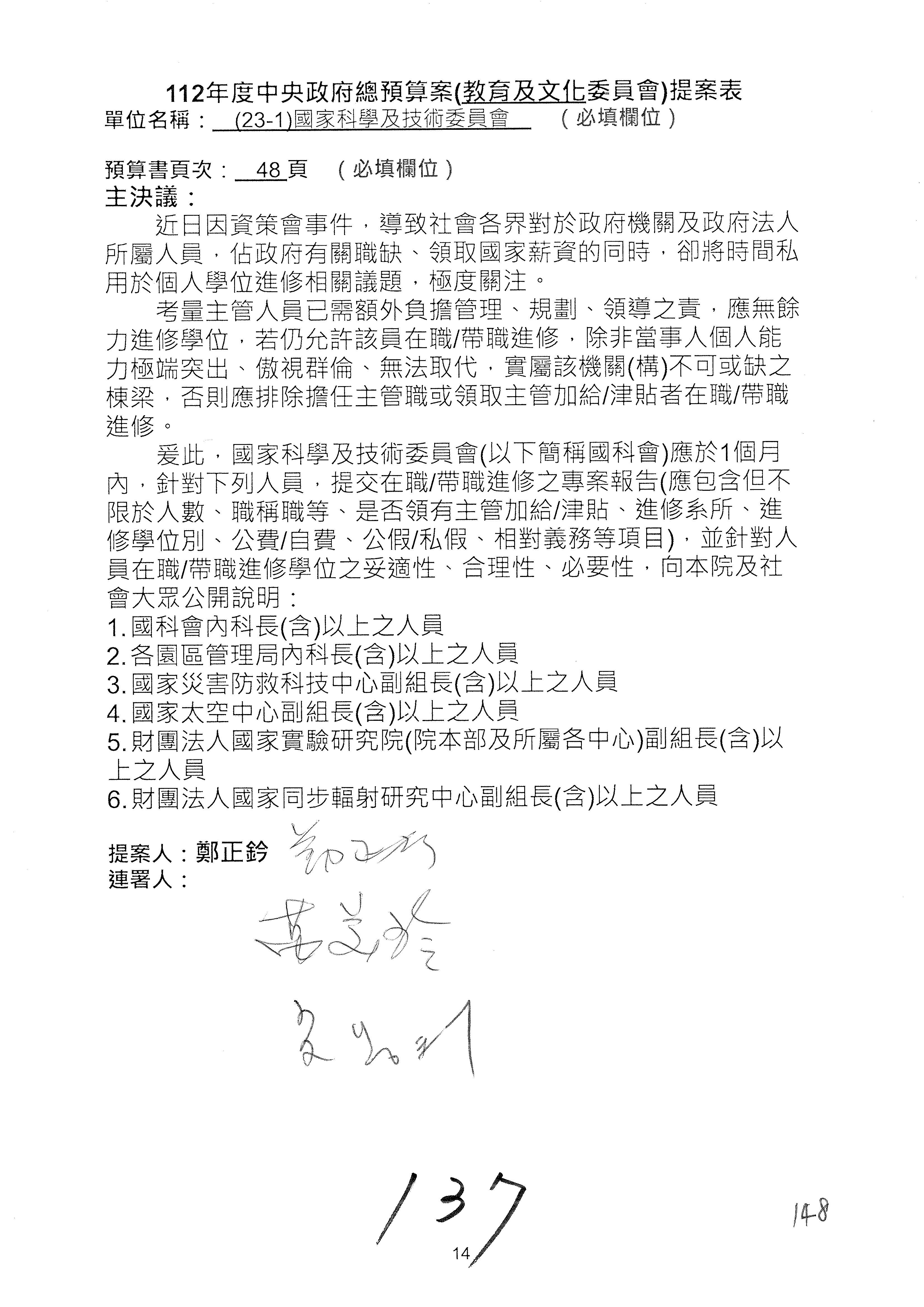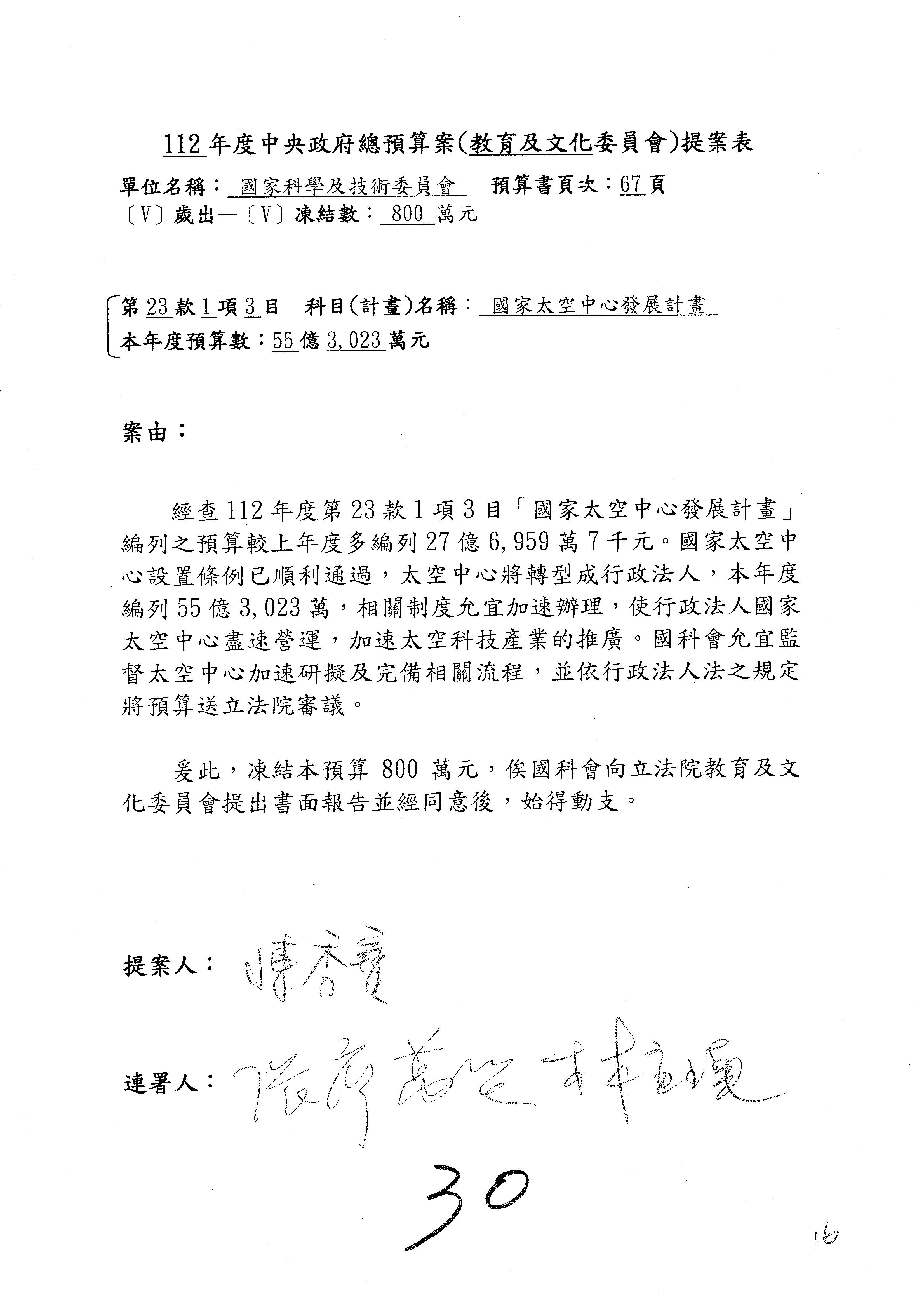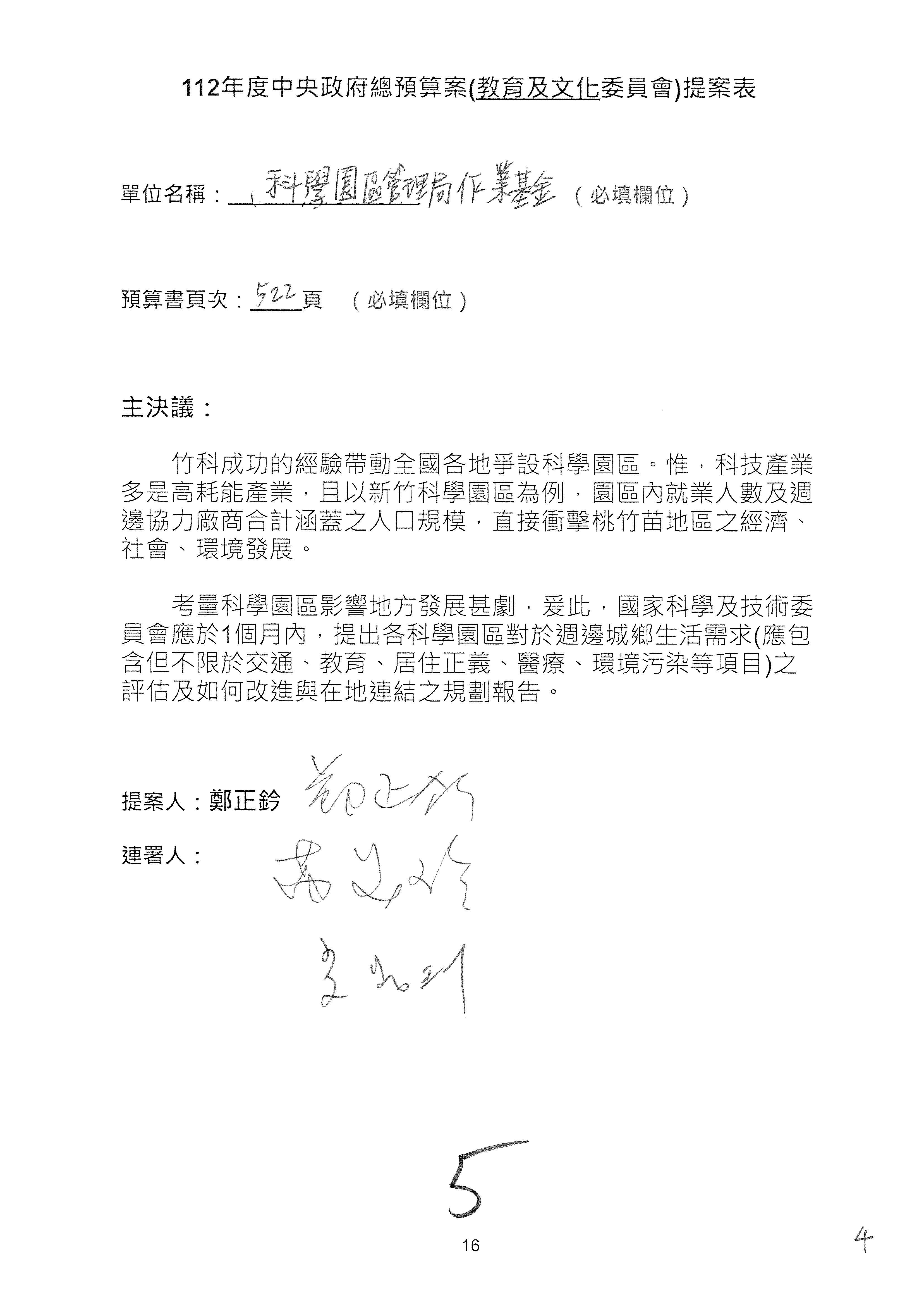科發基金預算案:改主決議總共有第6案、第8案、第10案、第13案及第16案;第14案、第15案併為一案。