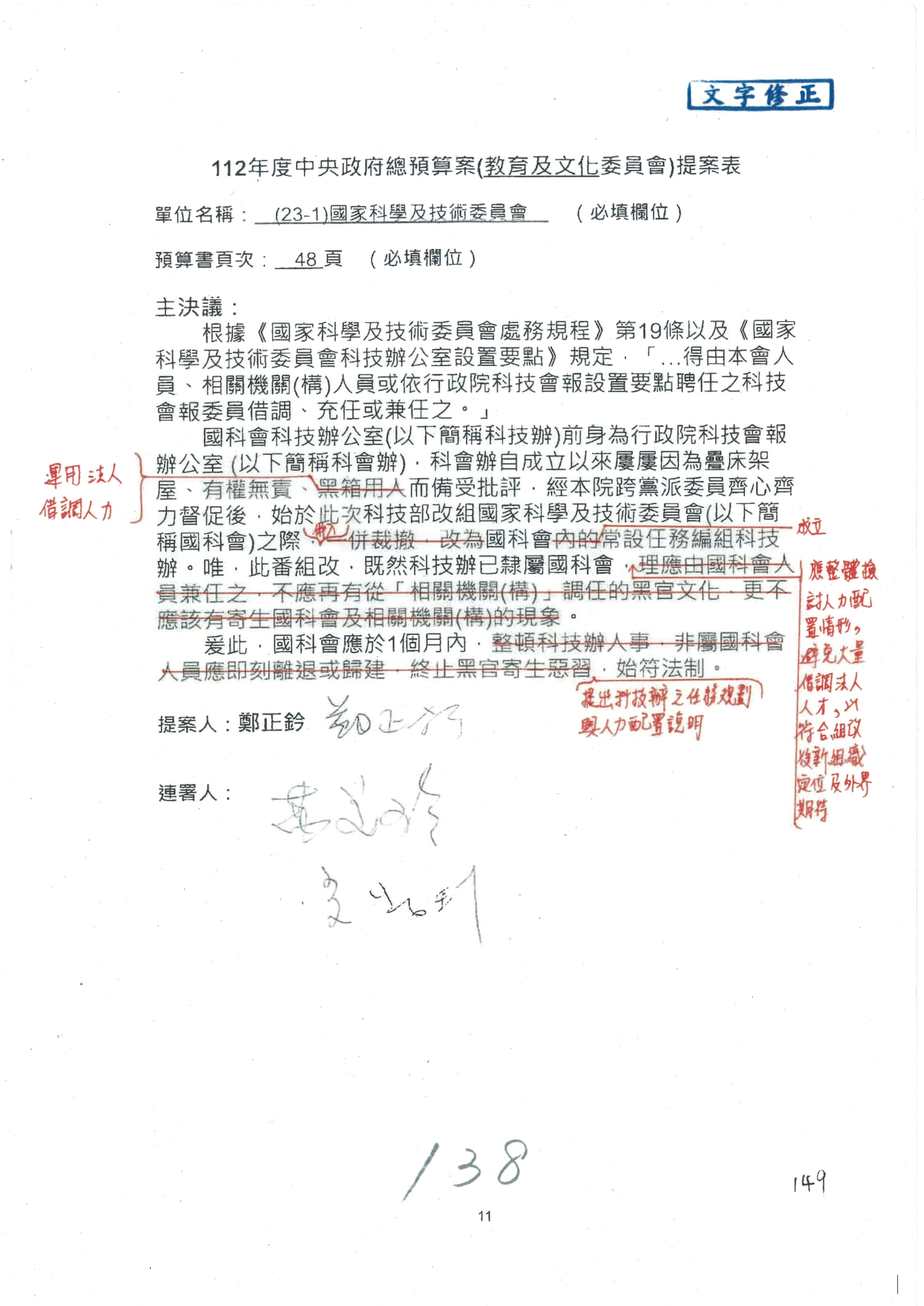 吳主任委員政忠:有關鄭召委所提淨零科技,事實上國科會負責的是淨零科技方案,整個淨零的轉型則是由國發會在總體,至於召委提到我們負責的淨零科技跟經濟whatever等等的關係,國發會那邊比較會有一個全貌,而我們這裡是負責科技的研發,所以我們比較沒有那個能力來做整體經濟關係的處理,在此必須跟召委說明一下。