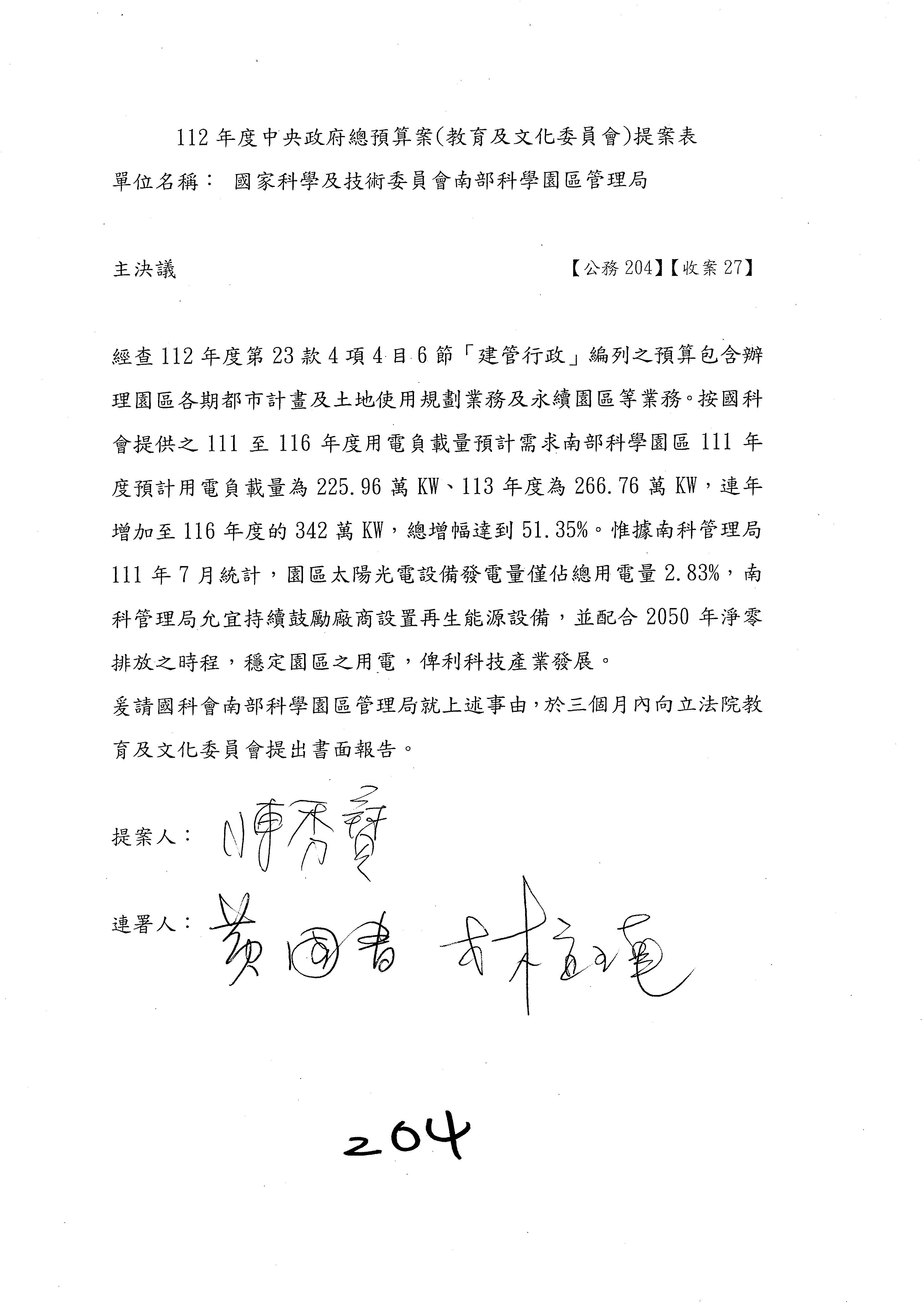 第204案改主決議。