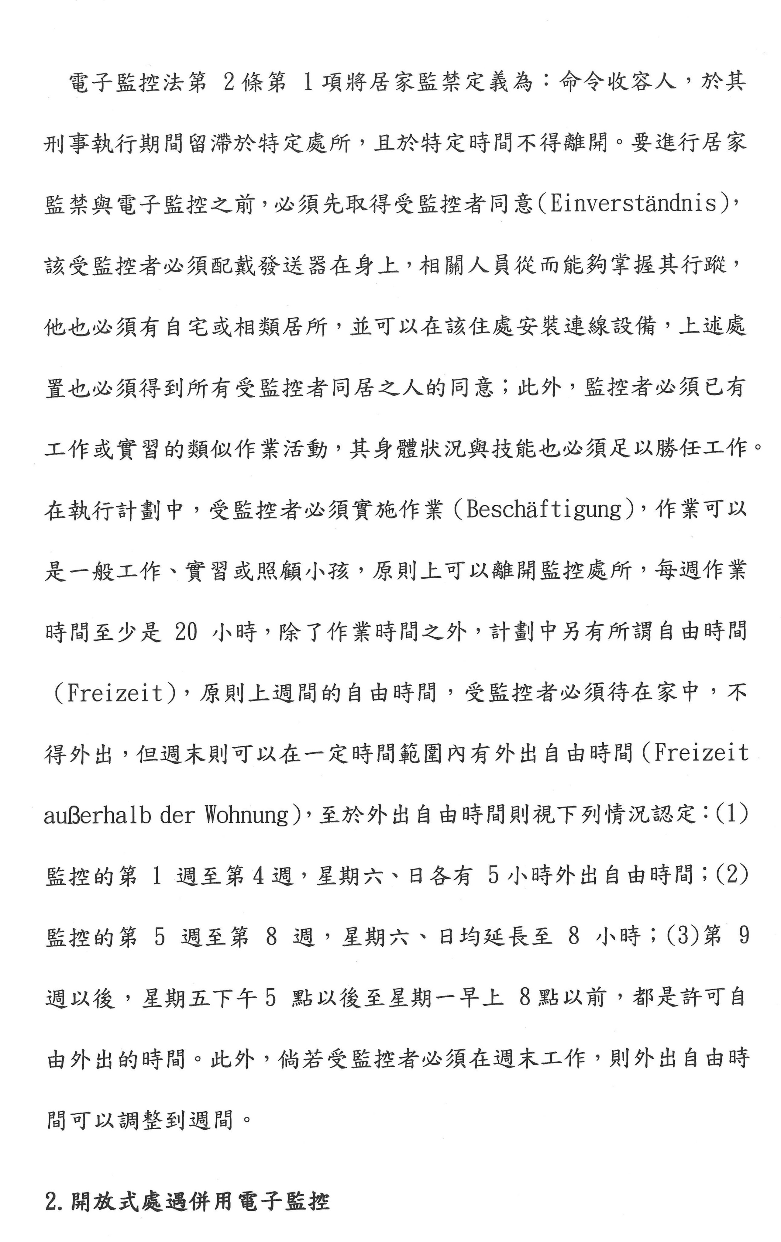 再來我就跳到提綱四,就是返家探視的監控機制,原來的提綱,有提到電子監控,但是我把這個部分略去,因為在德國如果你是在開放式監獄外出工作,或者長期外出,或者說封閉式監獄裡面給他寬鬆措施,其實不會有電子監控這件事情,所以以德國經驗,他們沒有用電子監控。