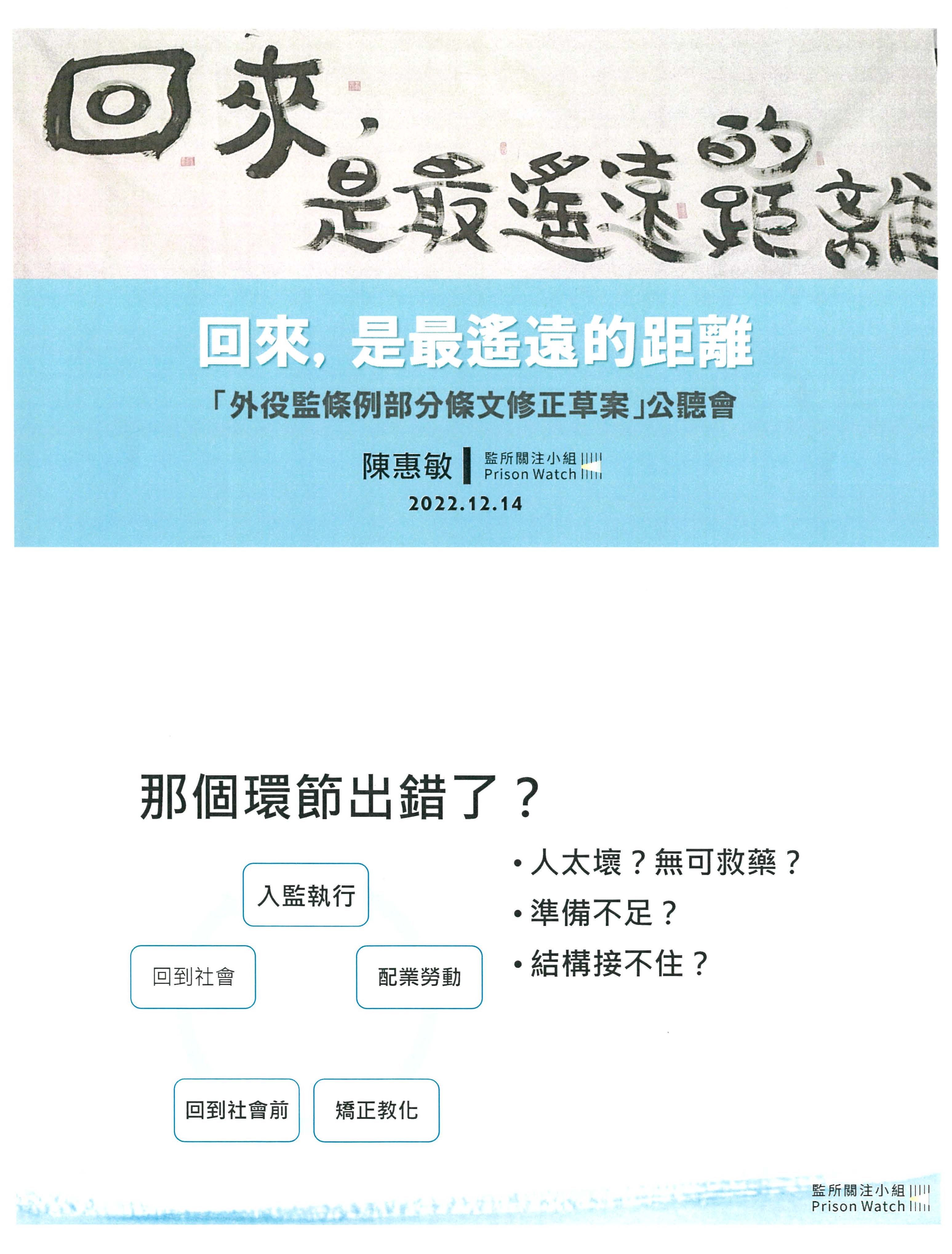 請監所關注小組陳惠敏理事長發言。
