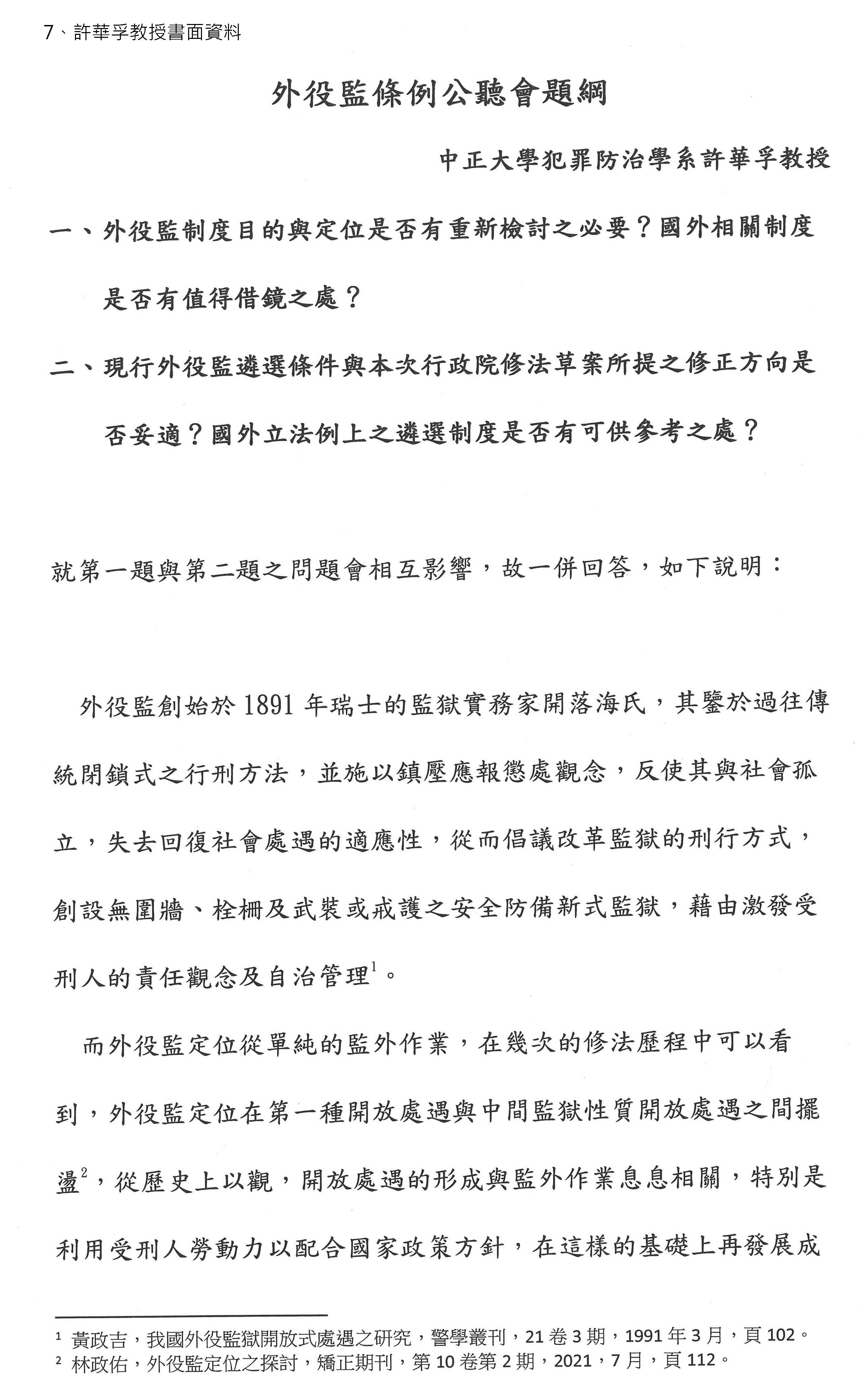 許華孚教授:謝謝主席,我很榮幸能夠參加這次的公聽會,今天大概是今年最冷的一天,我一早就從嘉義上來,討論這個議題讓我覺得非常的溫暖。
