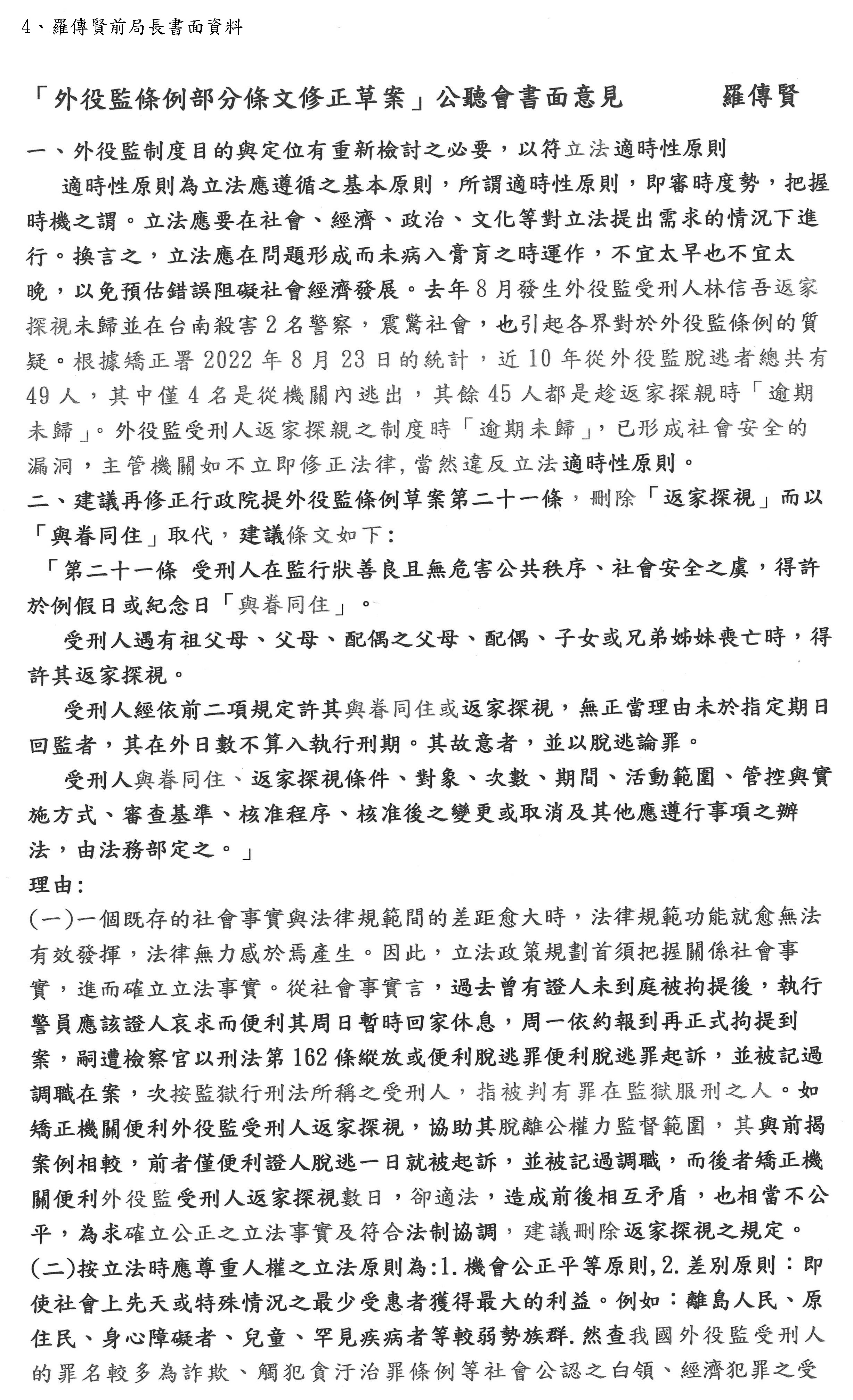 4、羅傳賢前局長書面資料: