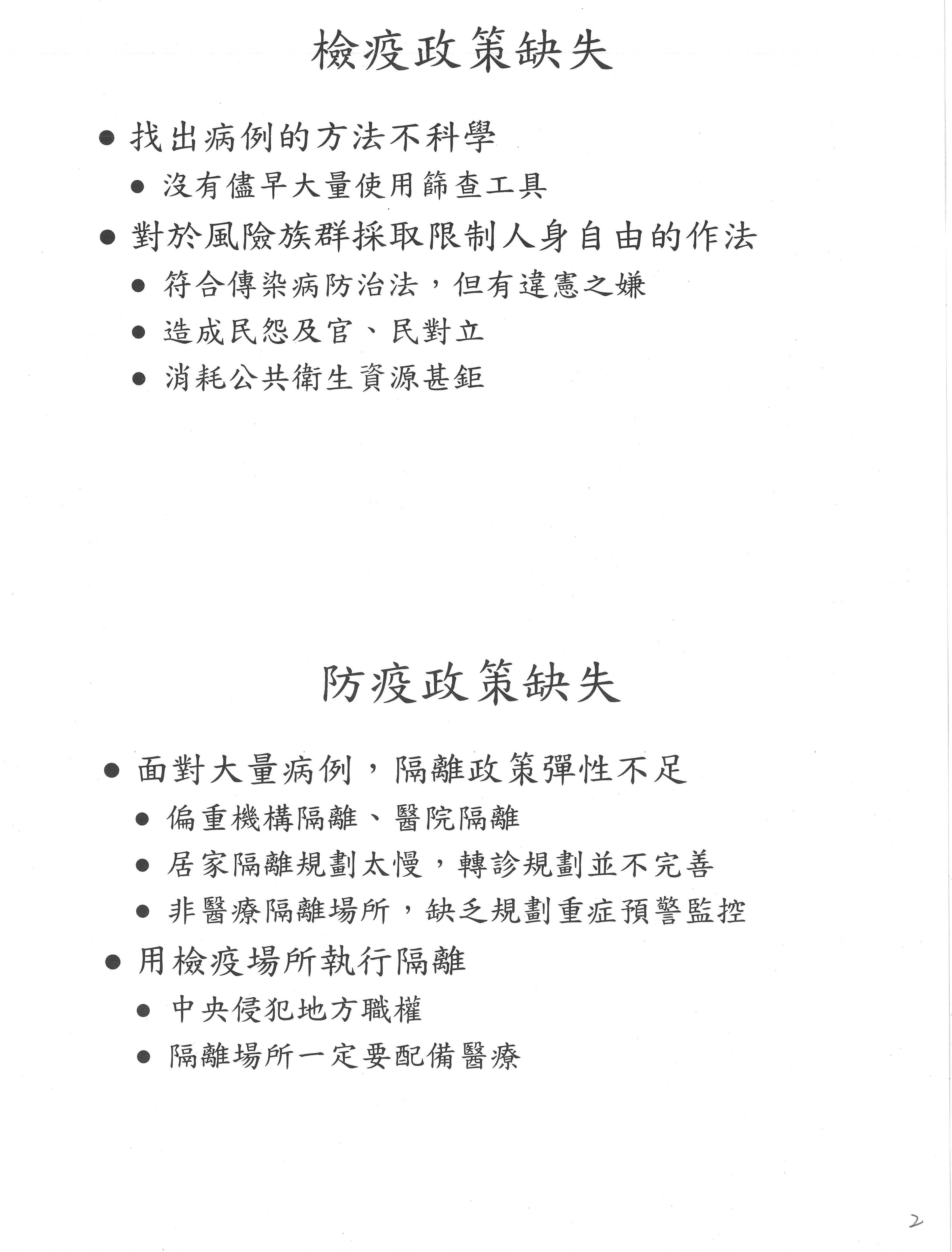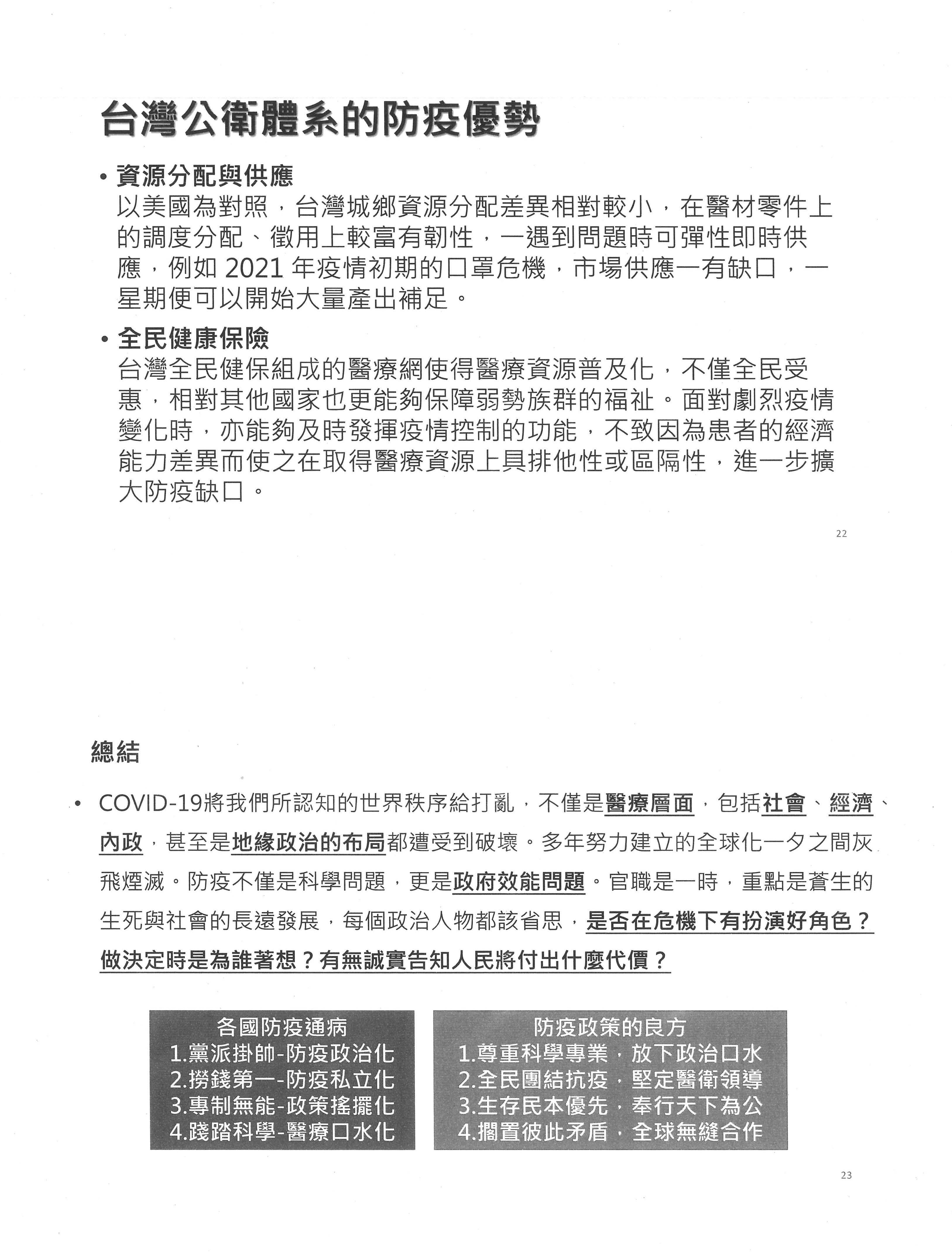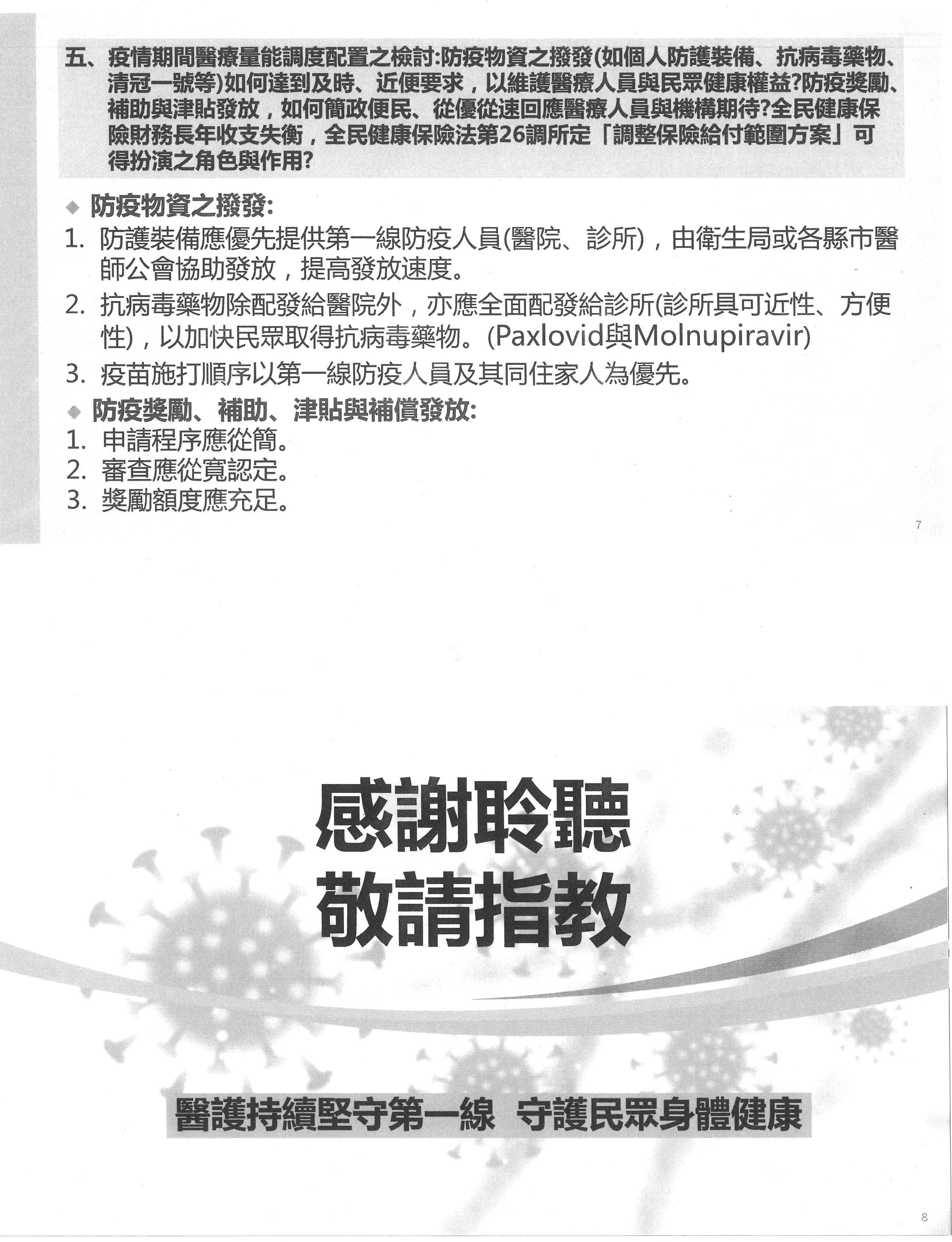 以上就是我對防疫政策所作的建言,謝謝各位。