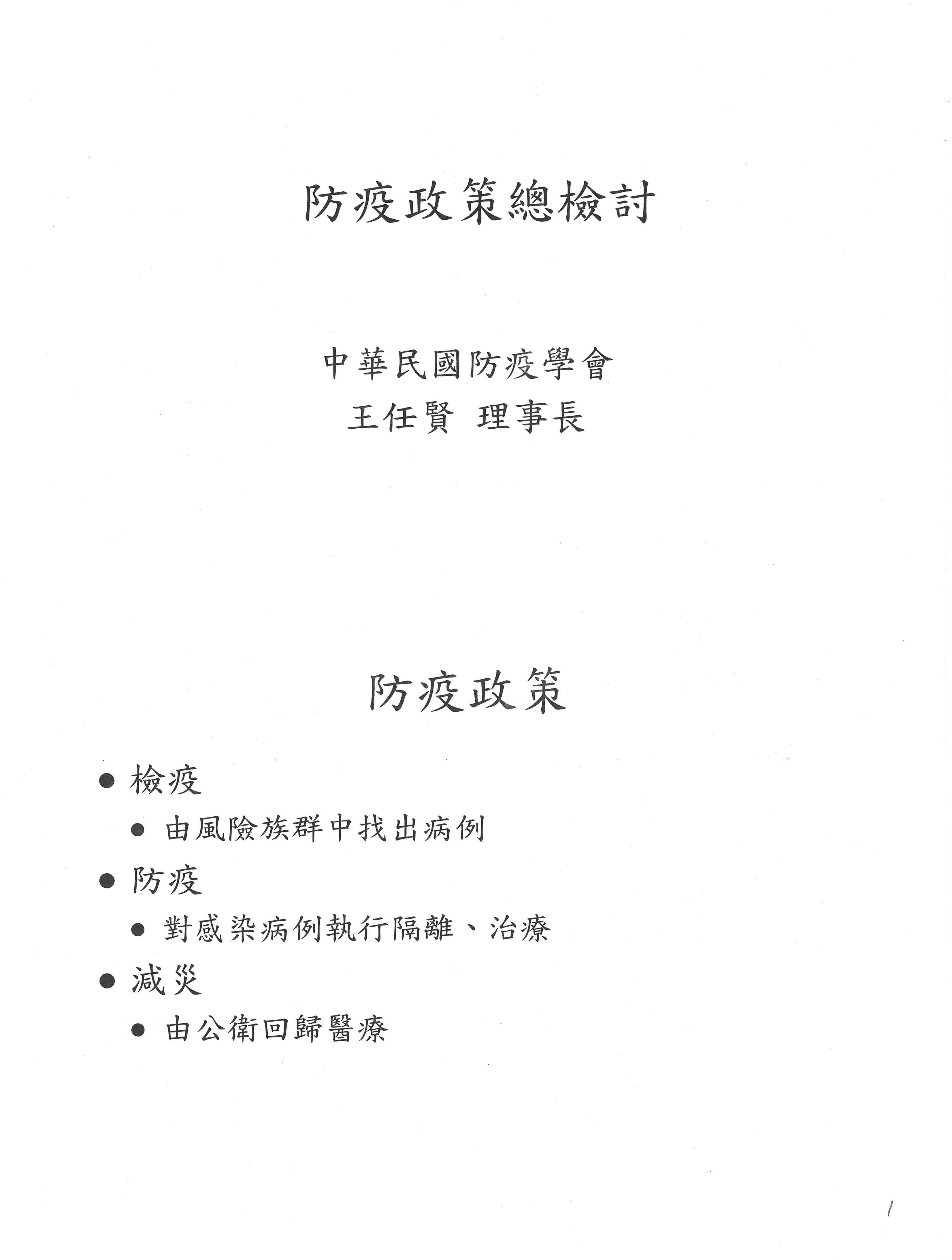 主席:請中華民國防疫學會王任賢理事長發言。