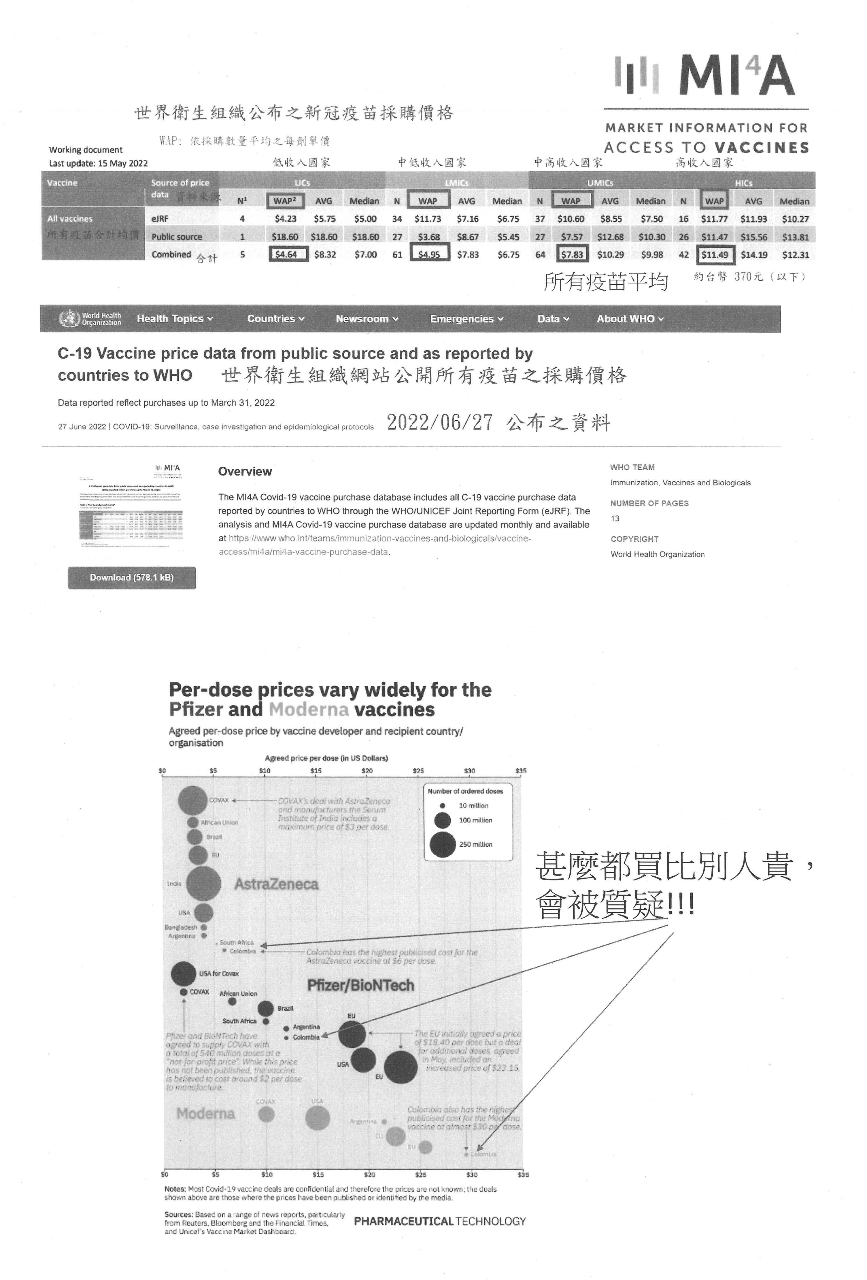 (四)綜上,COVID-19疫苗採購合約係政府代表國家與疫苗廠商簽署採購協議,故本應遵守與廠商約定的保密條款,尊重合作關係人隱私,避免影響後續合作關係及供貨期程,以致減損公共利益;惟本部仍將於遵守法規及契約保密義務之前提下,持續盡最大努力公開採購資訊,使其得受全民公評及監督,以達採購資訊公開及透明之效果。