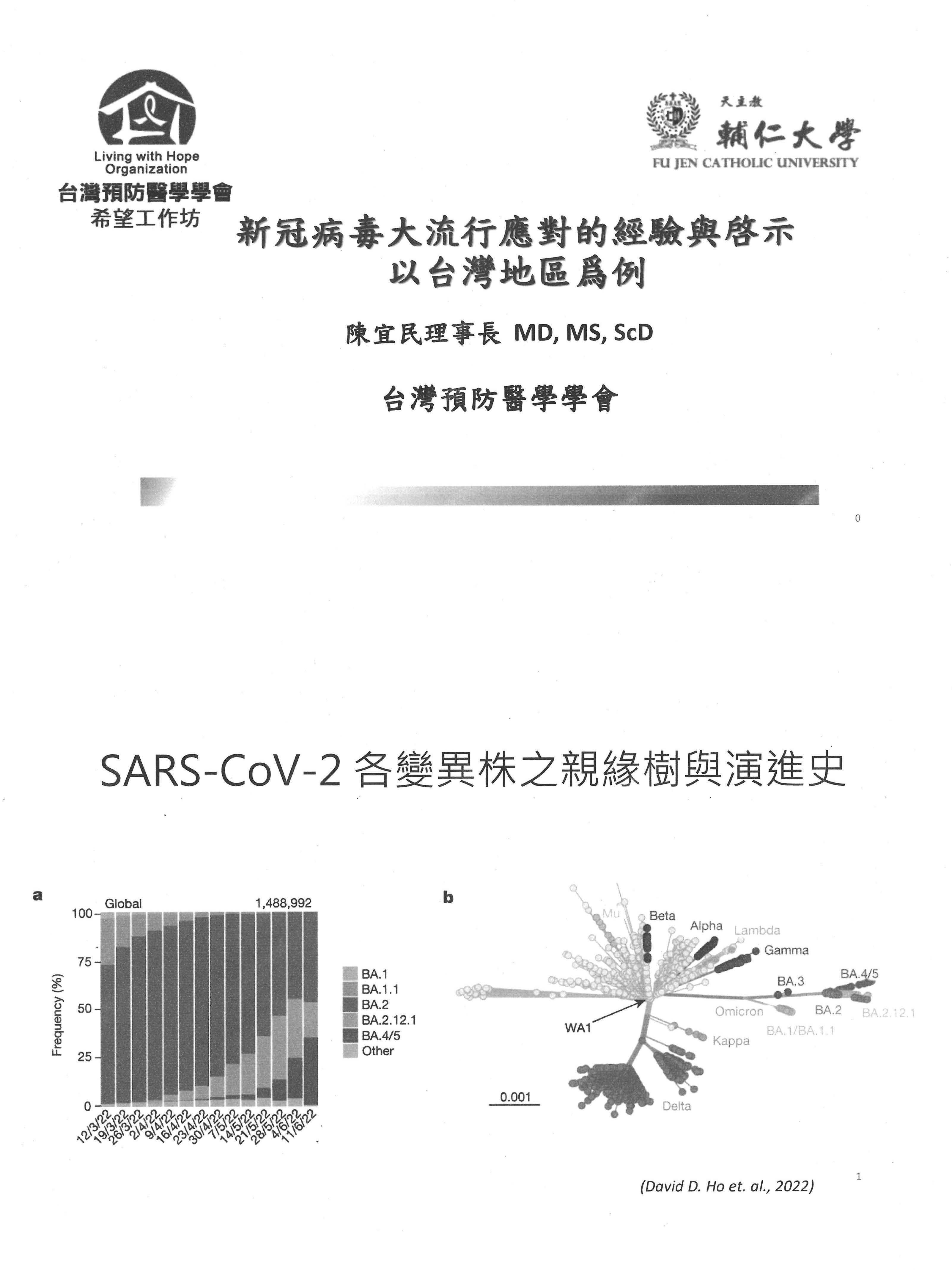 王任賢理事長:主席、各位專家學者及在場官員大家好。我今天用很短的時間與各位談一下防疫政策總檢討。首先看防疫政策,我以前是與CDC一起打仗的人,我們打的是SARS-CoV-1。看到這次面對SARS-CoV-2,如果在實際打仗時也能做一些更好的改進,應該可以打得更優雅一點,所以我希望這次檢討CDC能夠接受,如果有機會再打SARS-CoV-3,希望能打得更好。