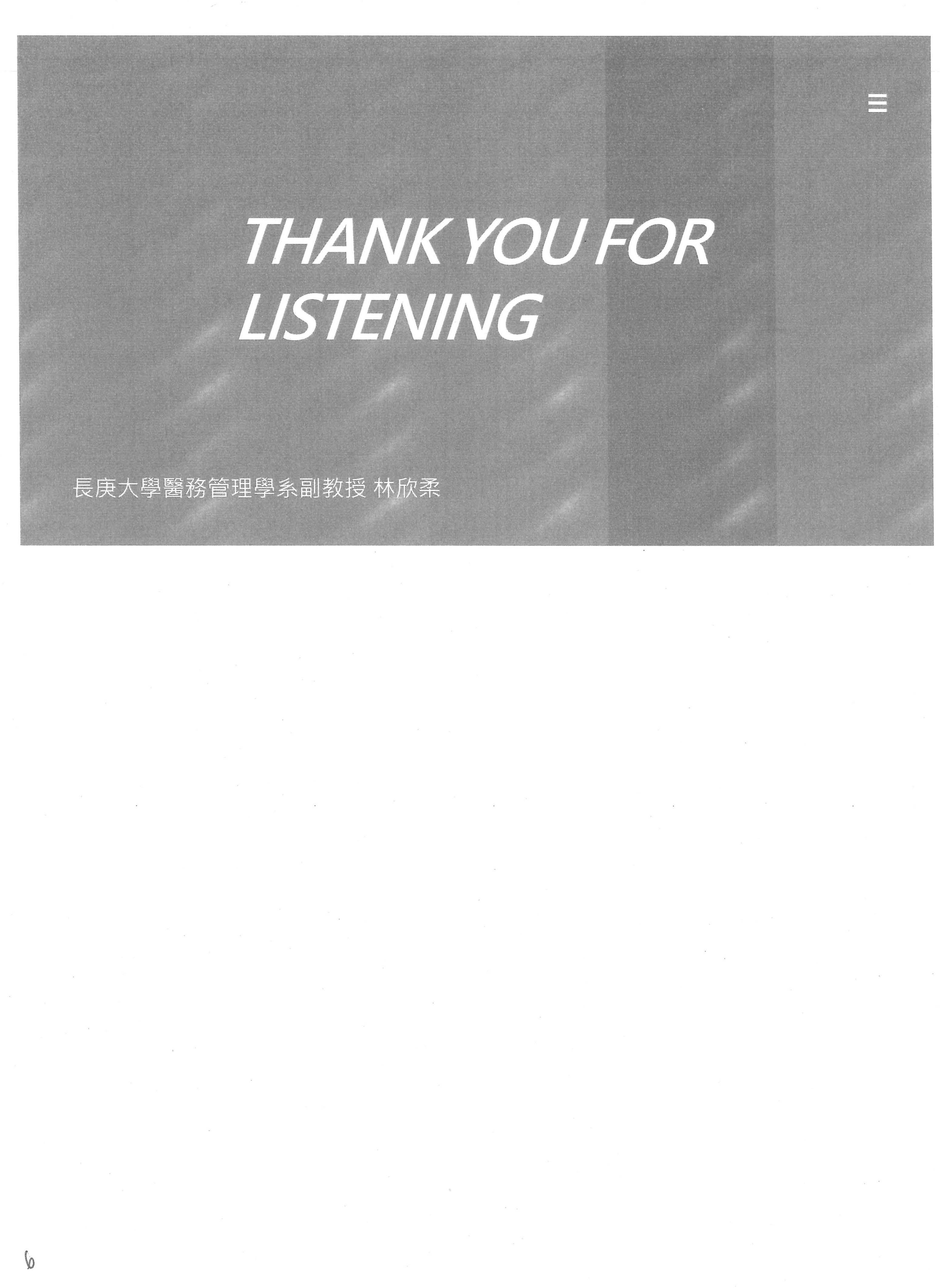 接下來請長庚大學醫務管理學系林欣柔副教授發言。