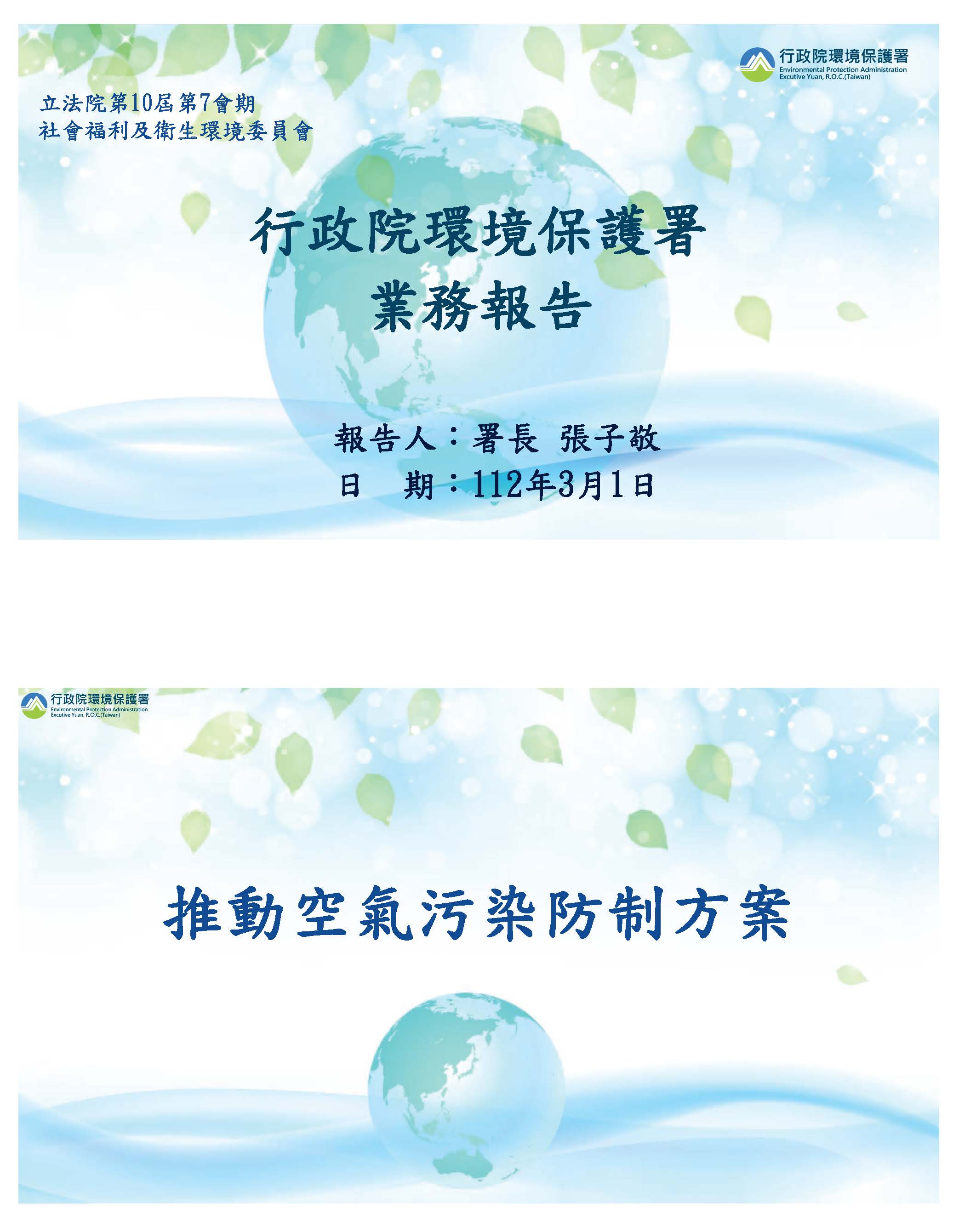 1120301行政院環境保護署署長業務報告質詢參考