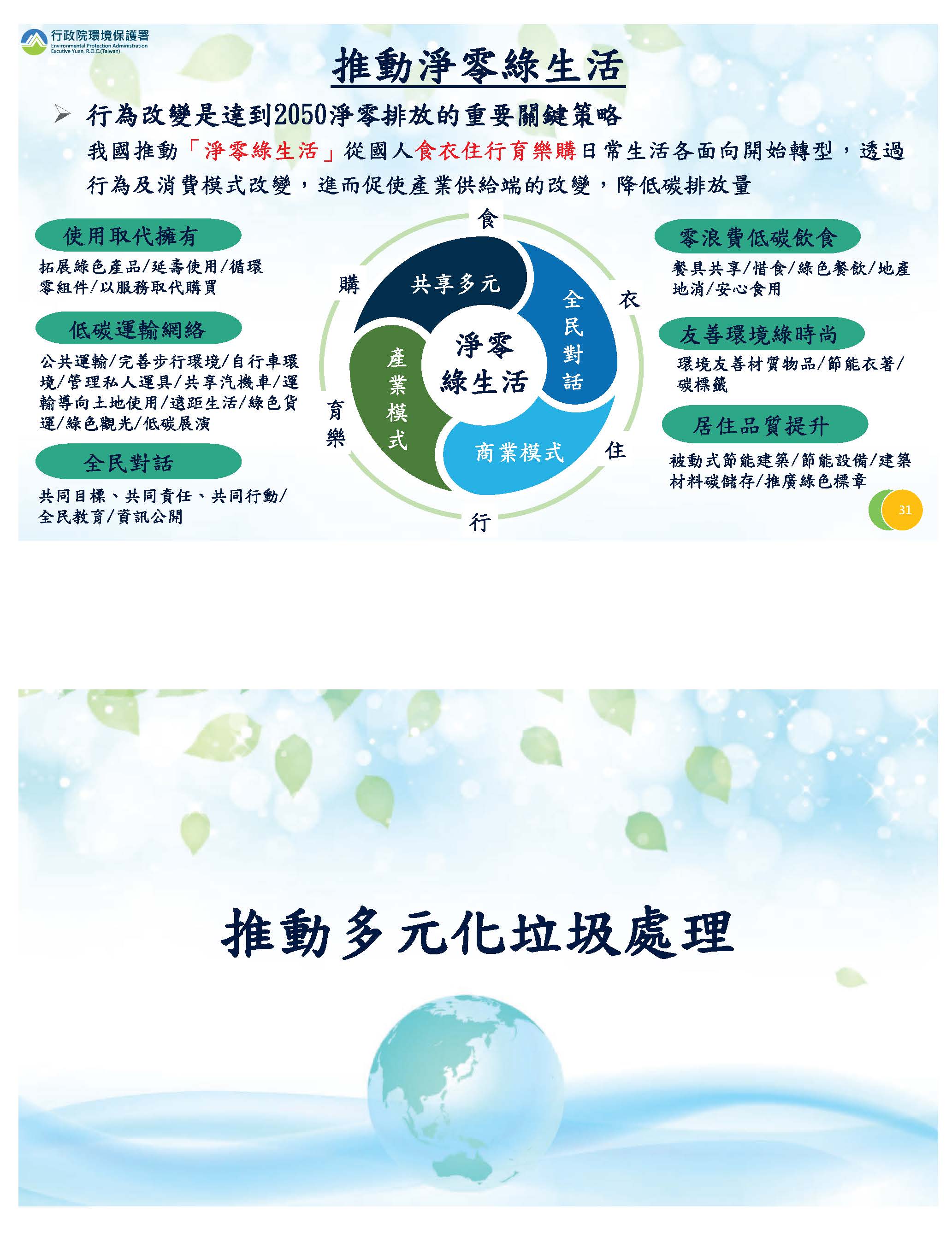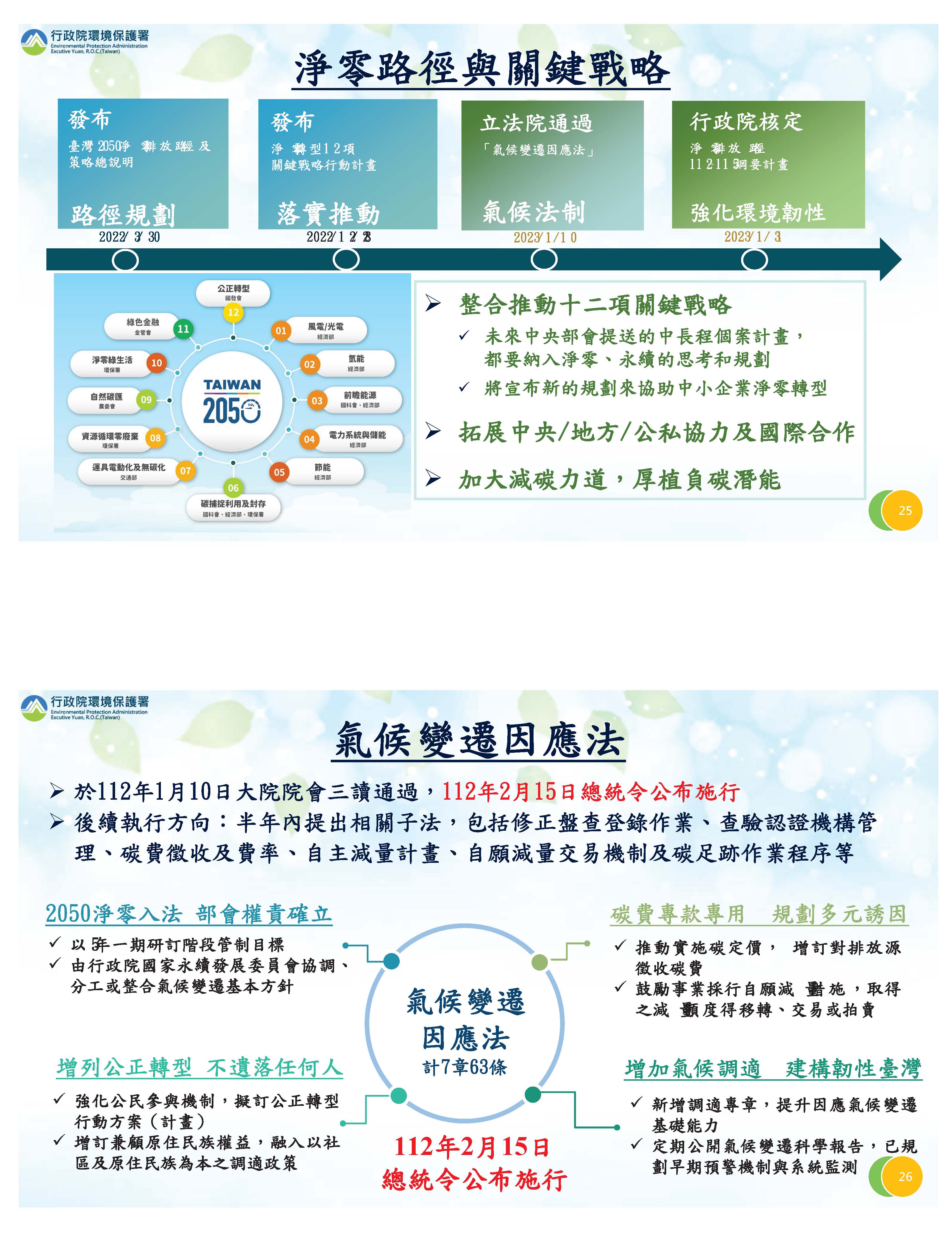 另外在推動淨零綠生活部分,這是12項戰略中很重要的一項,目前正積極推動中。