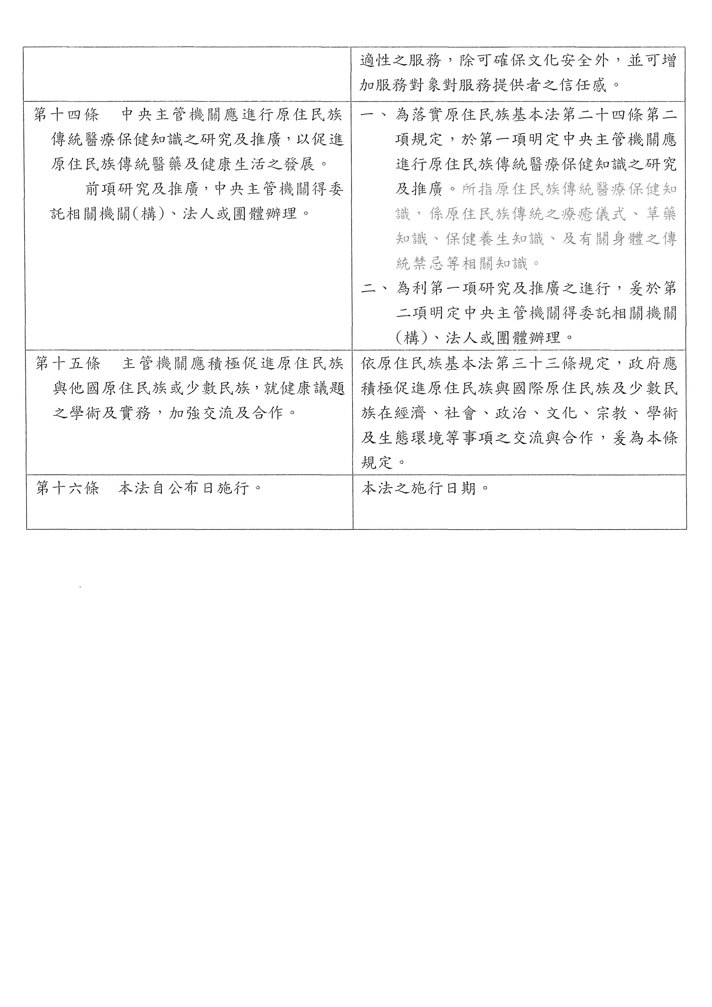為確保能提供符合原住民族文化安全之健康照護服務、與培養具文化勝任能力之相關人員以提升醫療服務品質,爰制定本條。 |