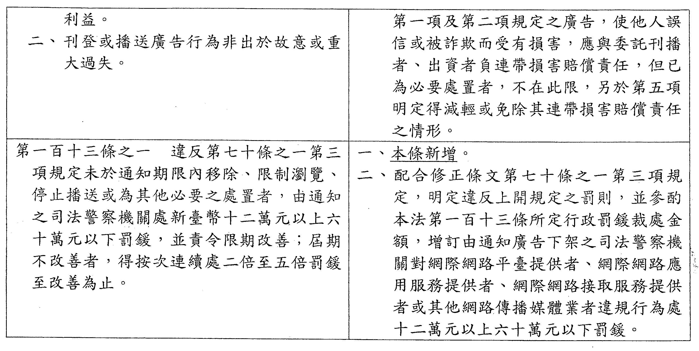 第一百零七條之三 違反第七十條之一第五項規定,經主管機關通知限期移除、限制瀏覽、停止播送或為其他必要之處置而仍繼續刊播者,處新臺幣五十萬元以上二千五百萬元以下罰鍰,並應按次連續處罰,至其完成為止。 |