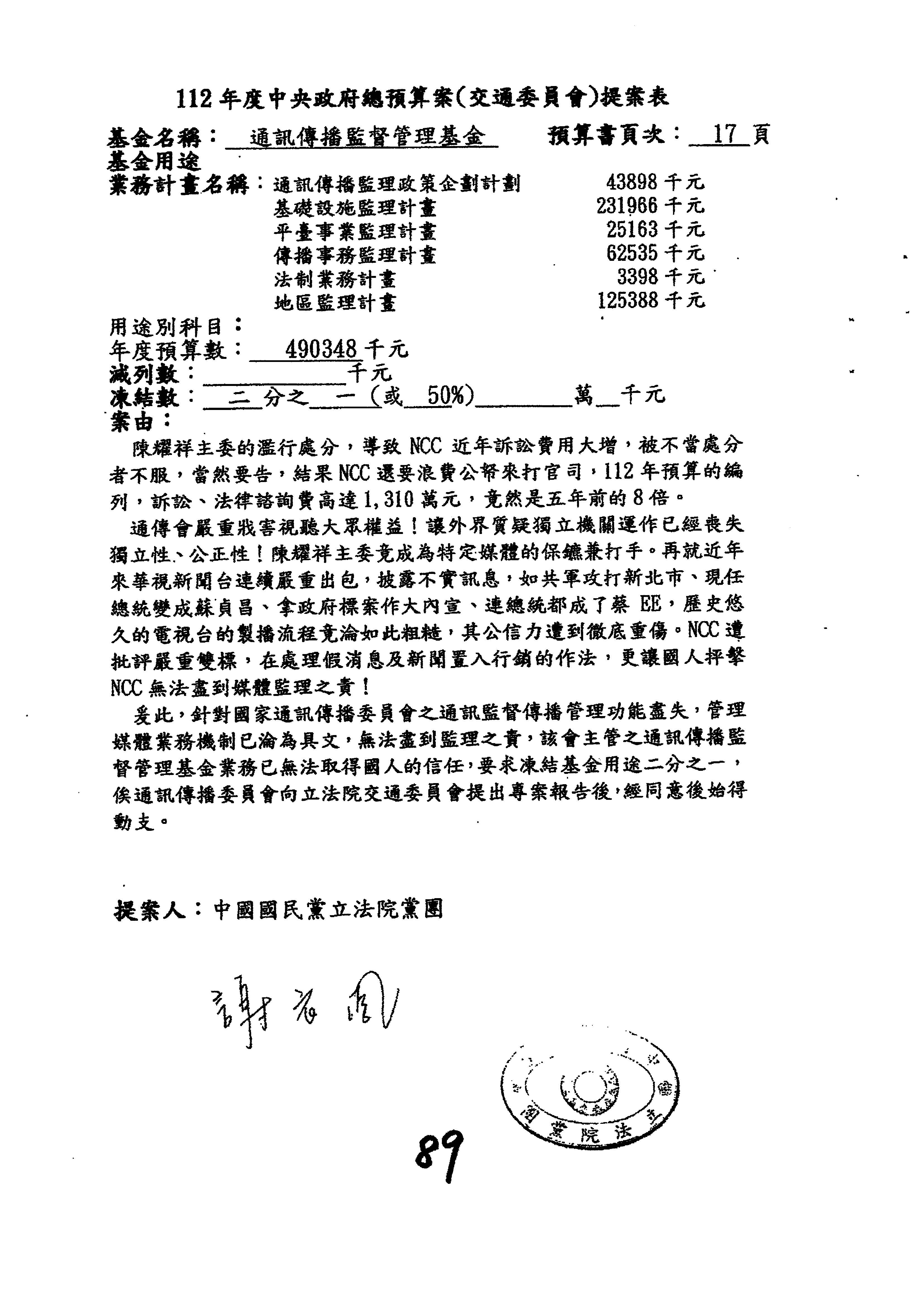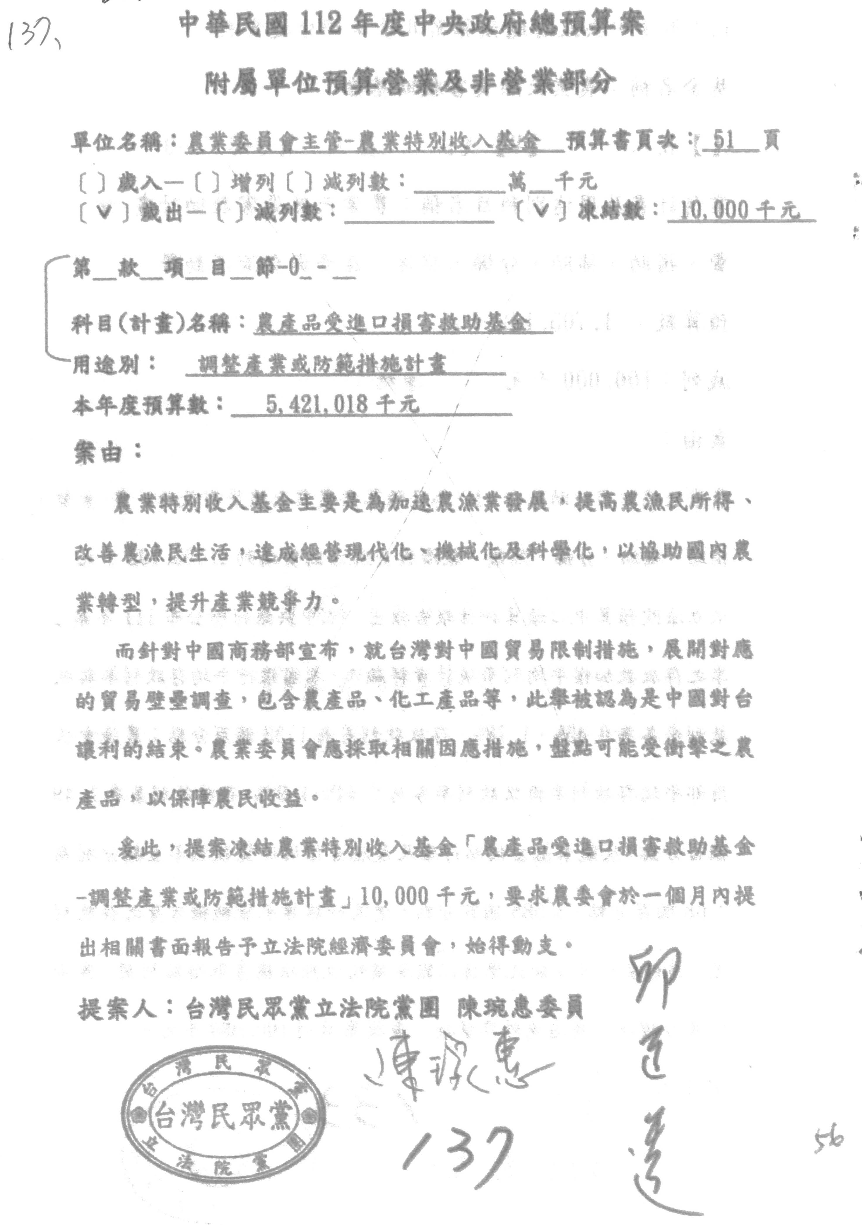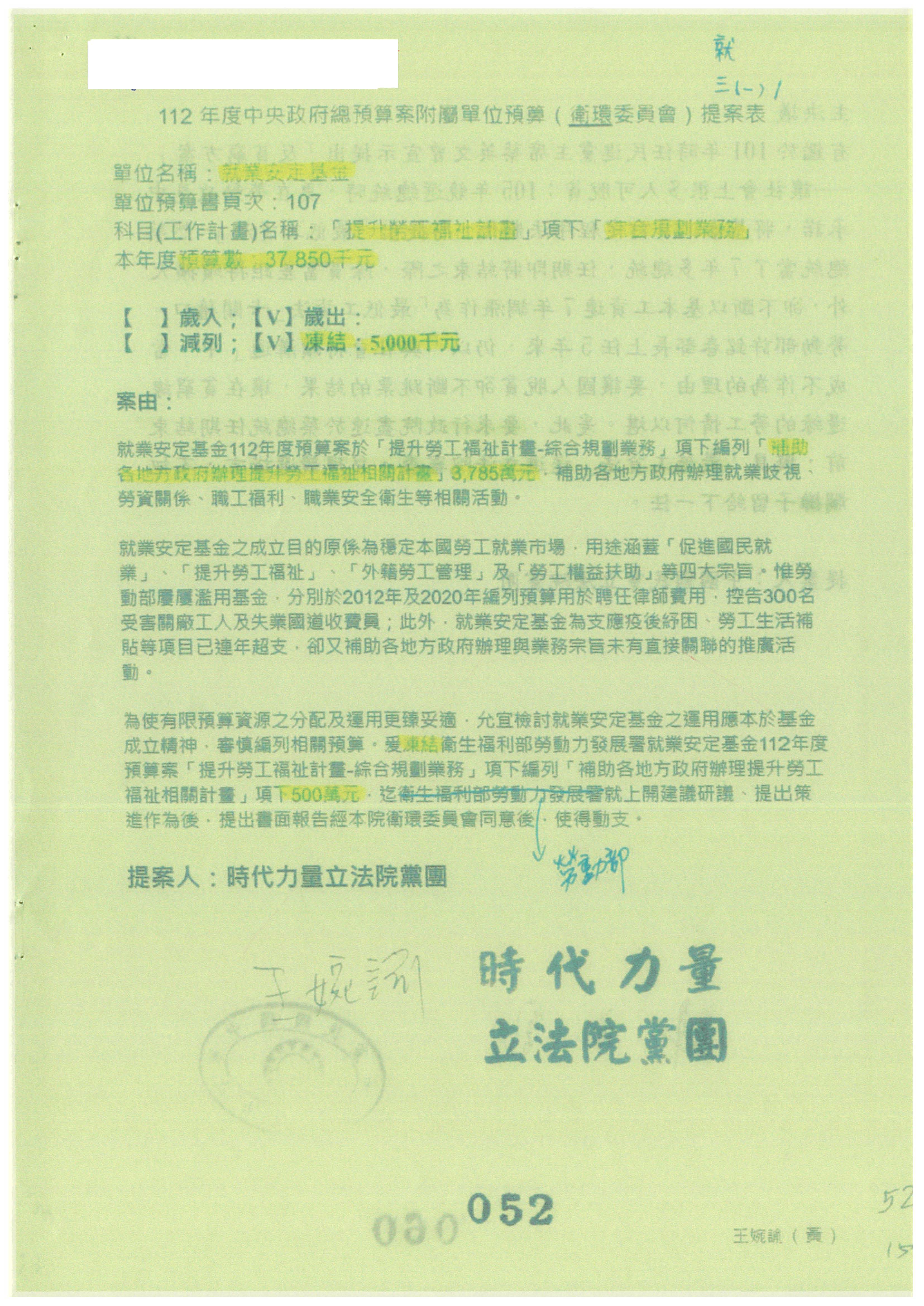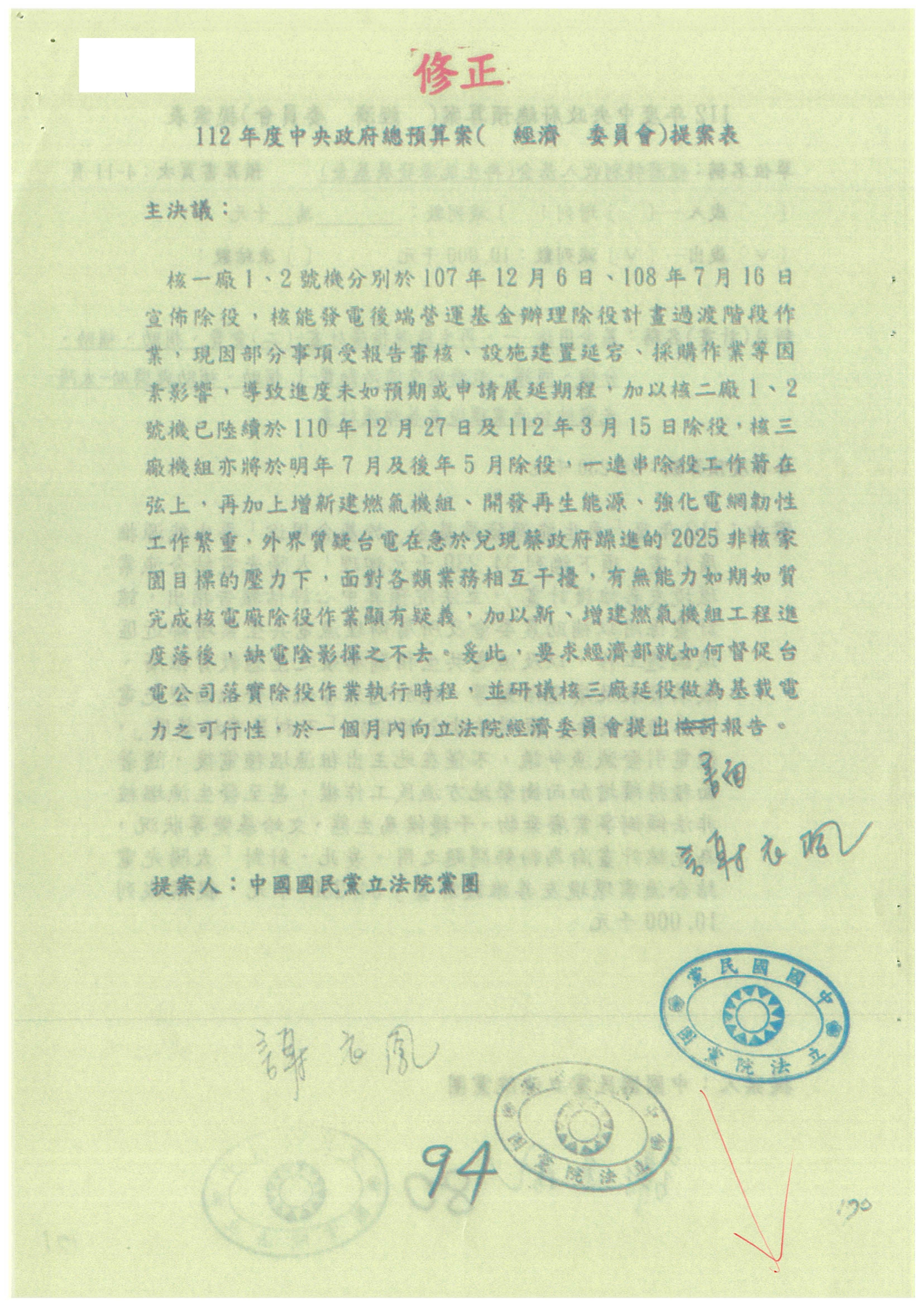 本次附屬單位預算,感謝支持時力黨團多個提案通過,其中有非常多好的提案,希望公部門能夠執行;其次,很遺憾沒有通過包括台電協和電廠四接案有地方反彈及選址爭議的凍結案;另外,針對台電10%購煤預算173億元的提案,時力黨團提出刪減,很遺憾也沒有通過;關於減煤減碳降空污的預算,包括讓中火提前於2035年除役之主決議也遭否決,時力黨團表達非常地遺憾。
