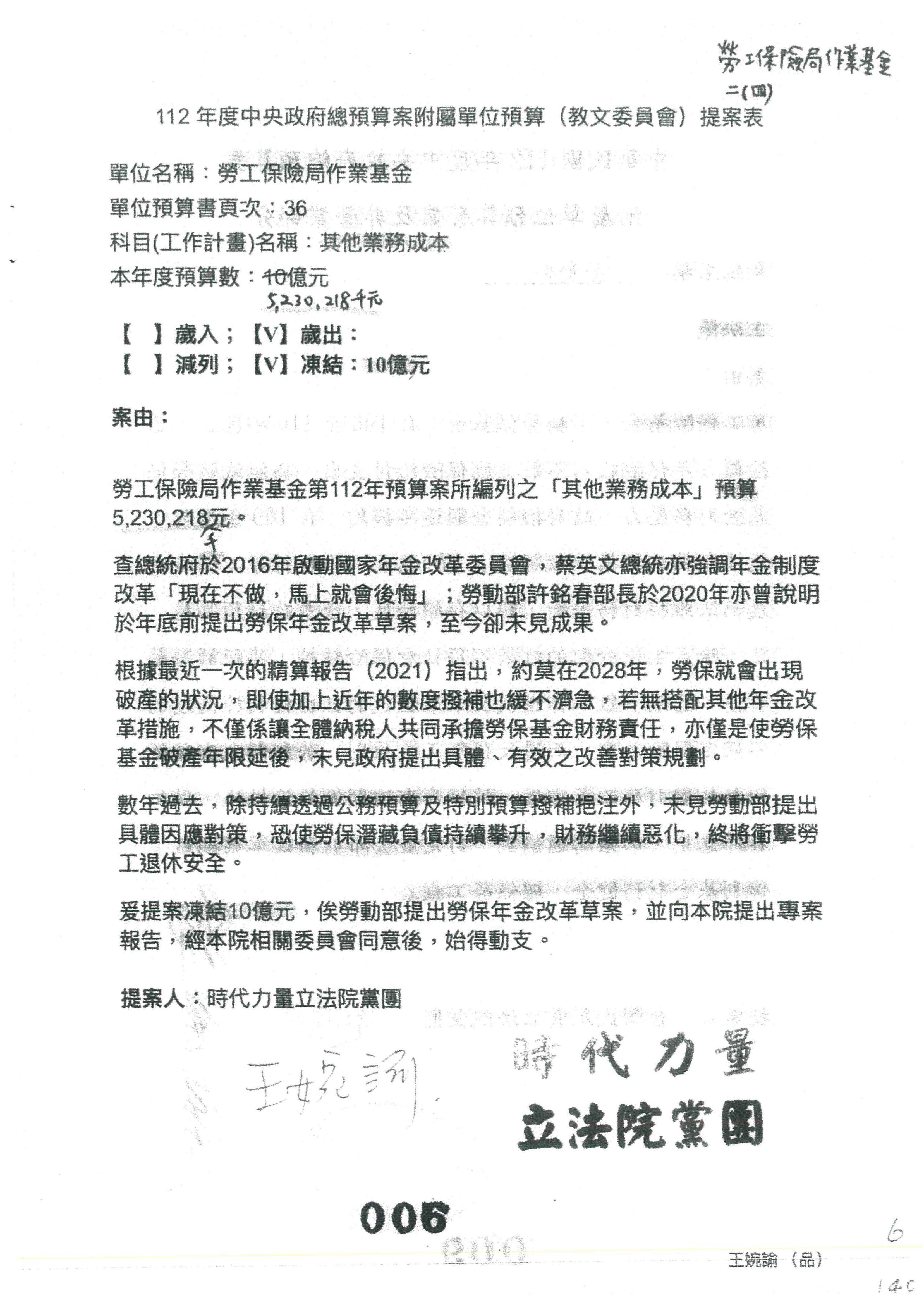 主席:報告院會,非營業部分社會福利及社會環境委員會保留第14案、第73案、第104案,國民黨黨團撤案,不予處理。