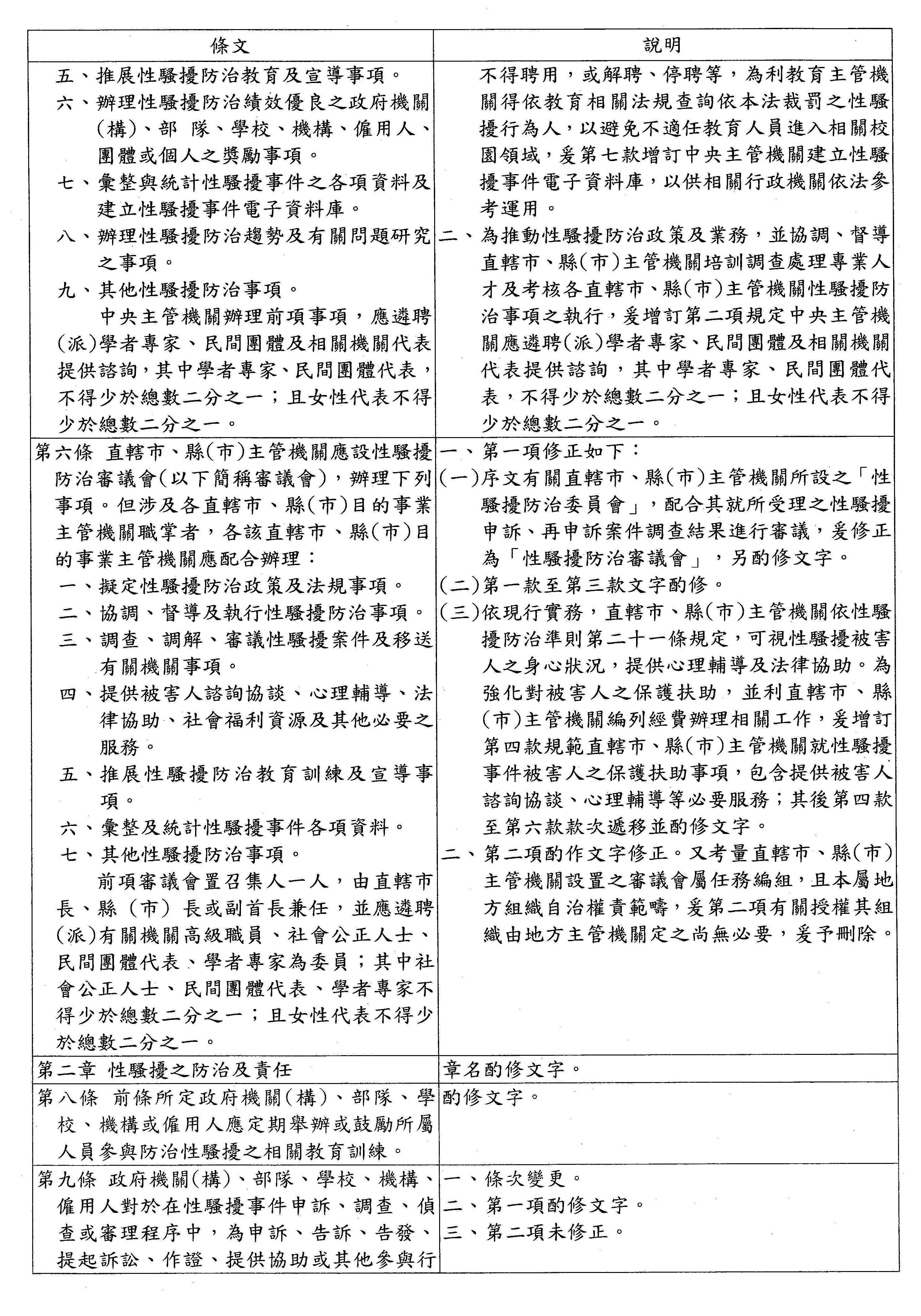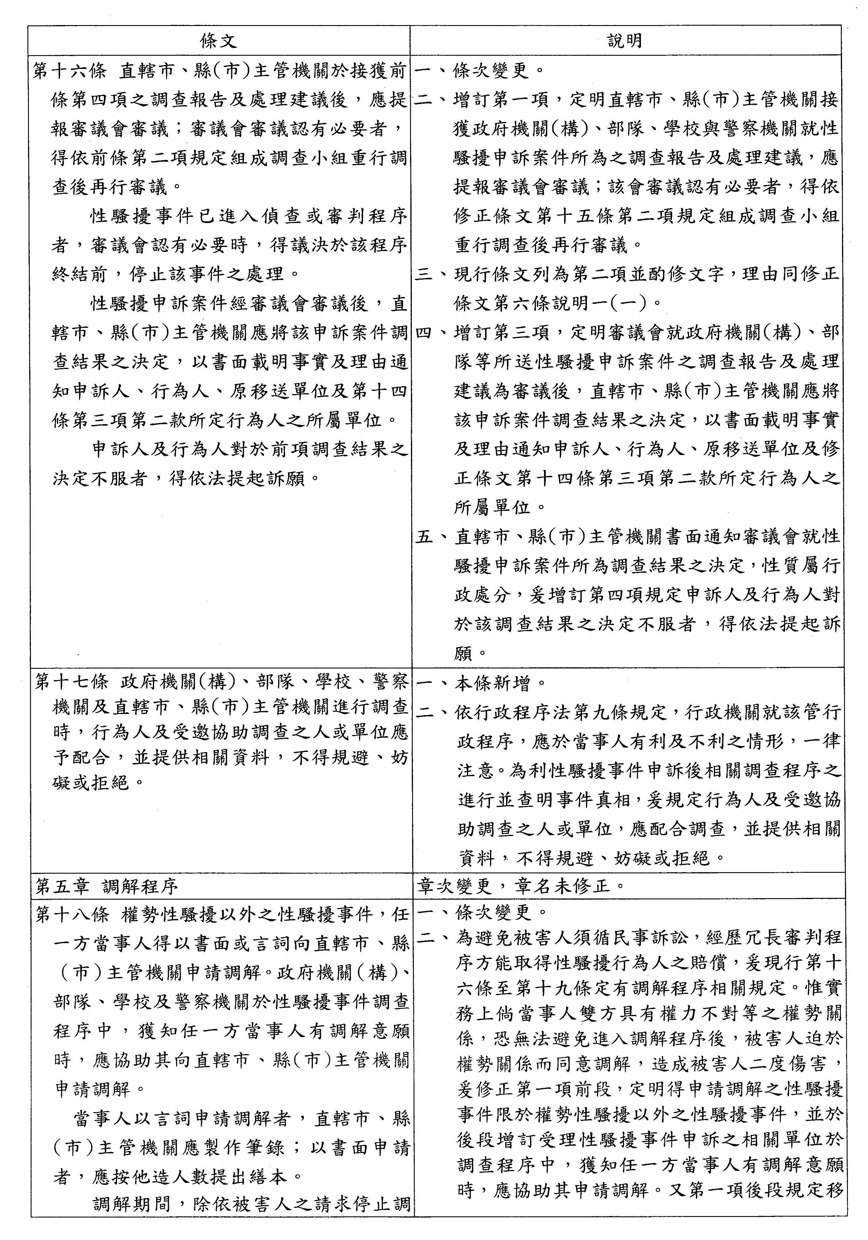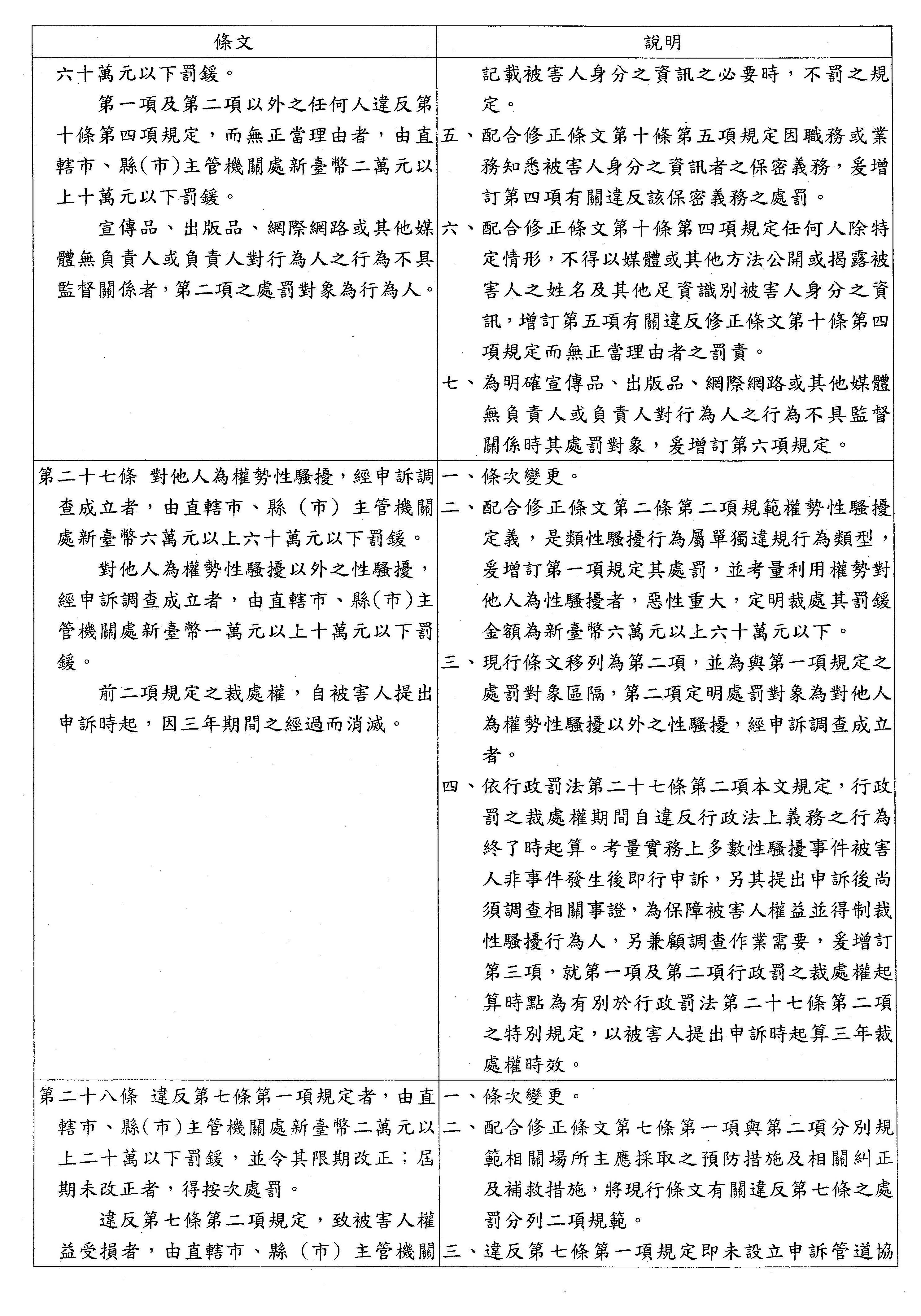 協商主題:本院社會福利及衛生環境委員會報告併案審查行政院函請審議「性騷擾防治法修正草案」等40案。
