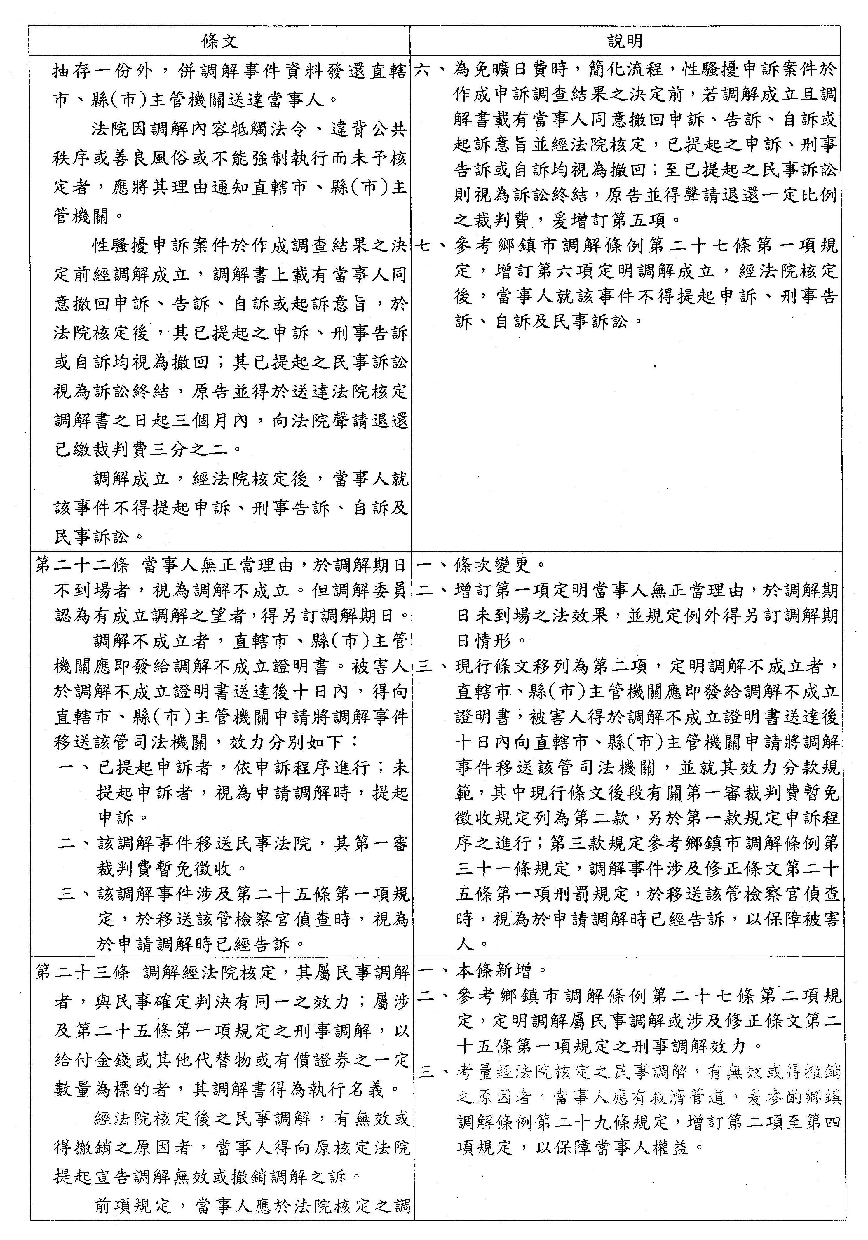二、該調解事件移送民事法院,其第一審裁判費暫免徵收。