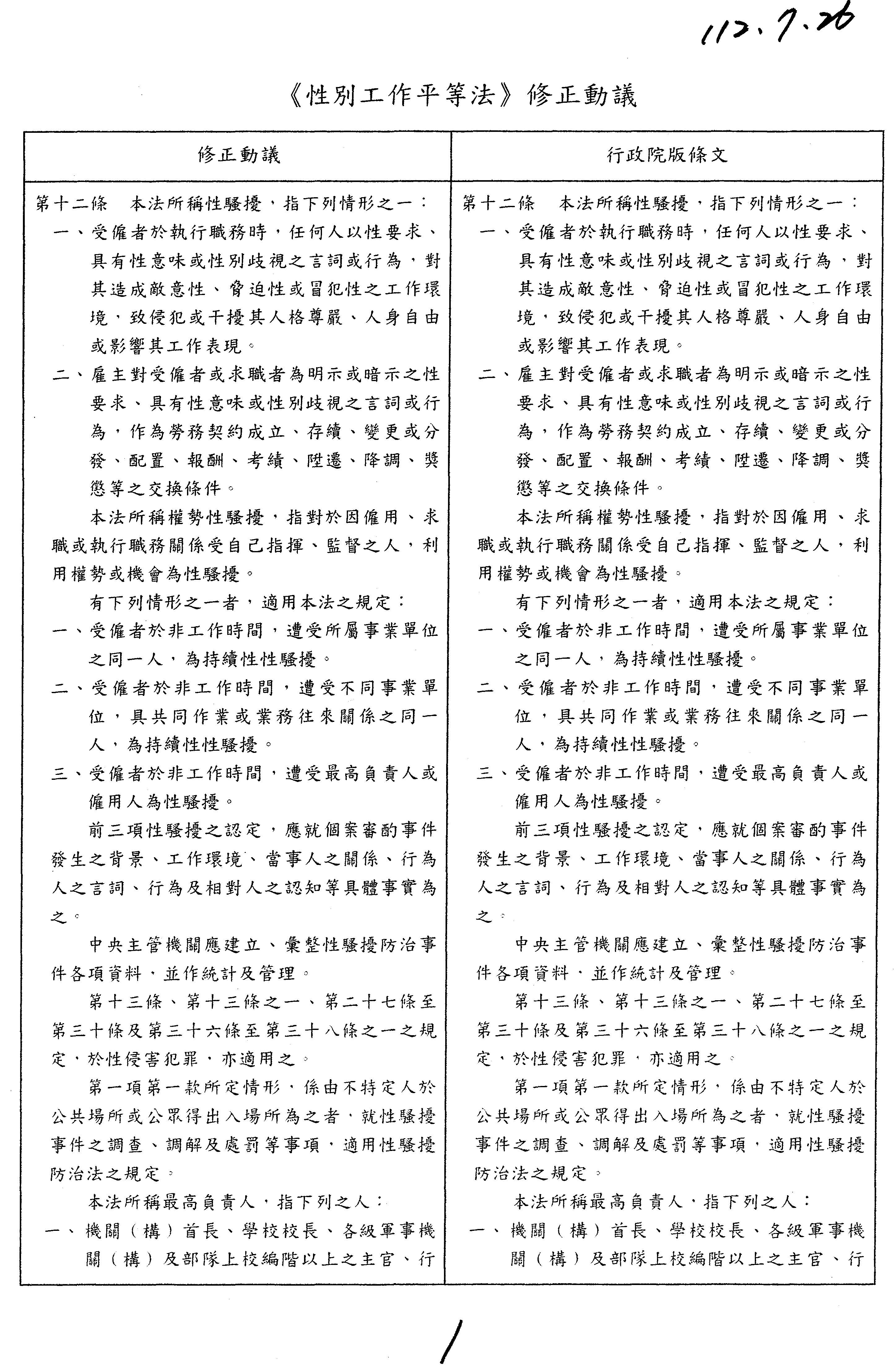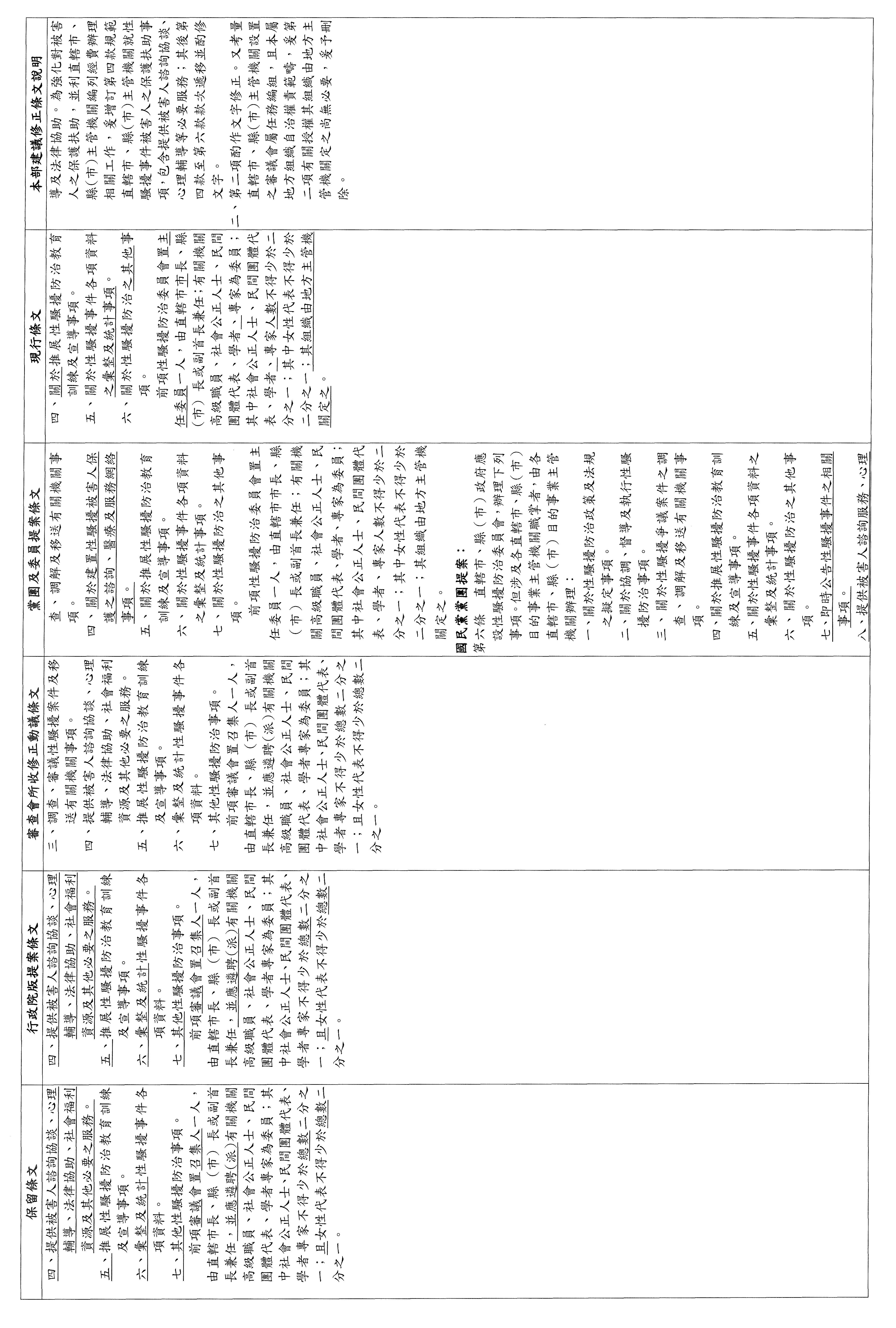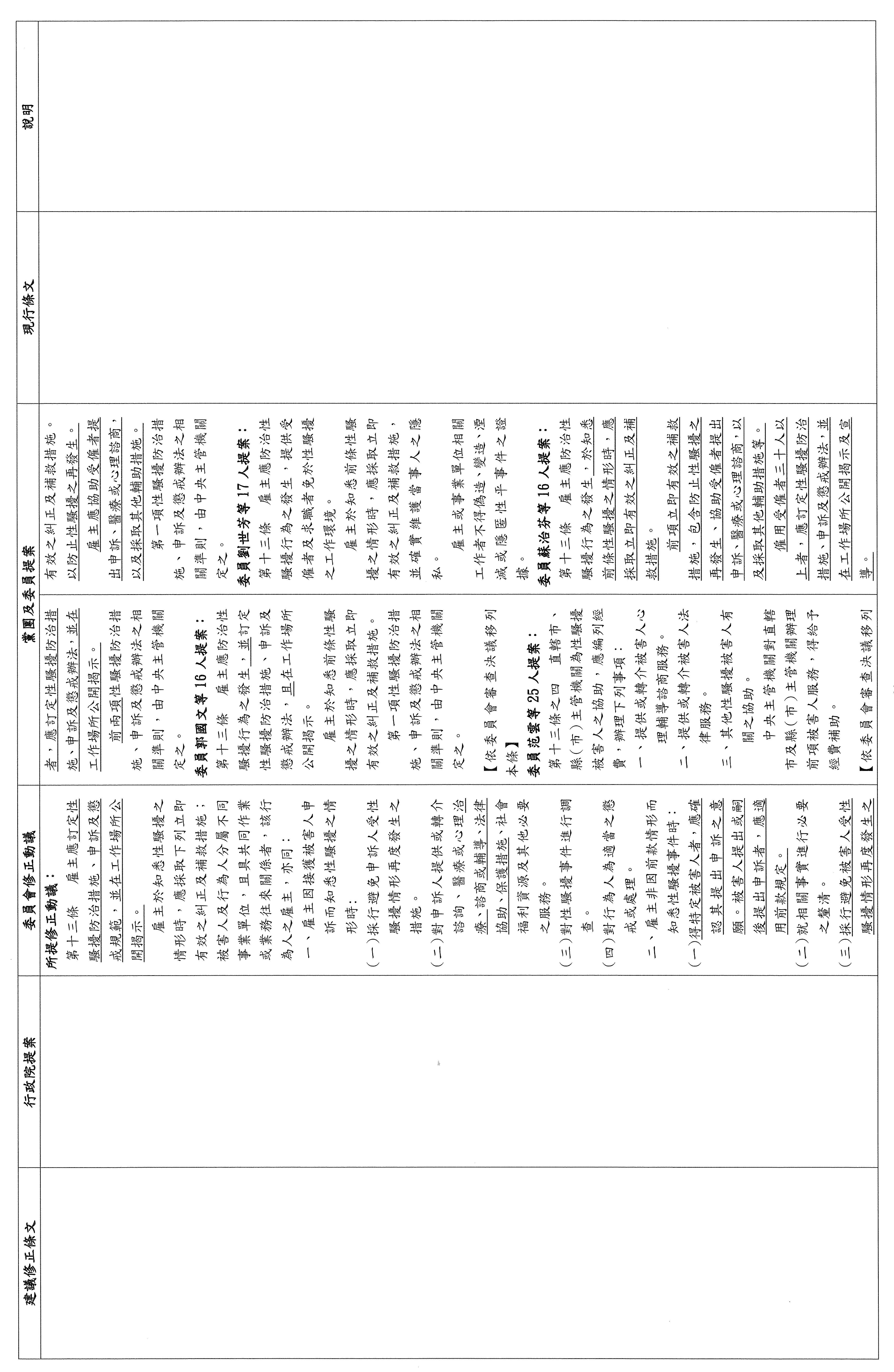 協商主題 研商「性別工作平等法」、「性騷擾防治法」及「性別平等教育法」案相關事宜