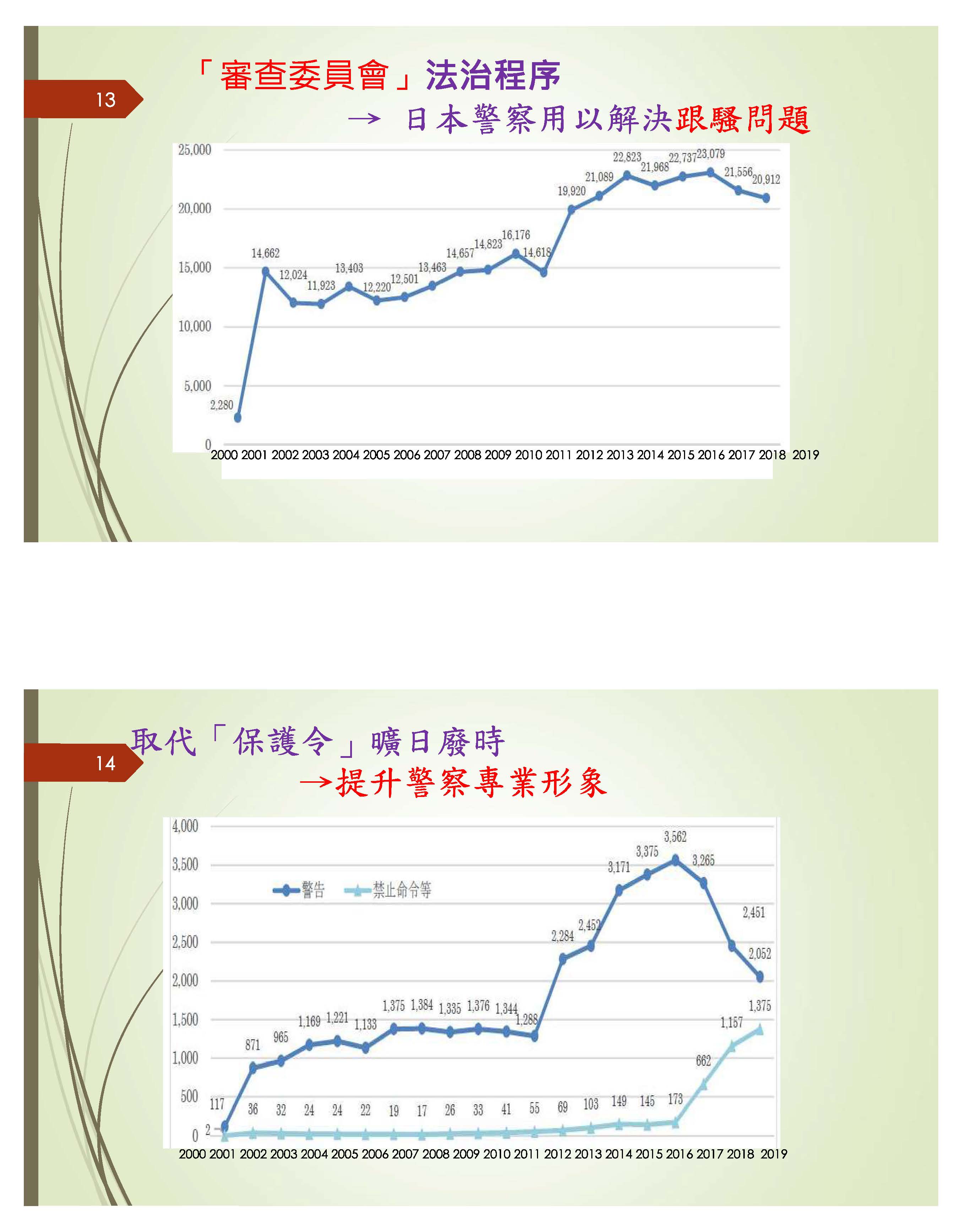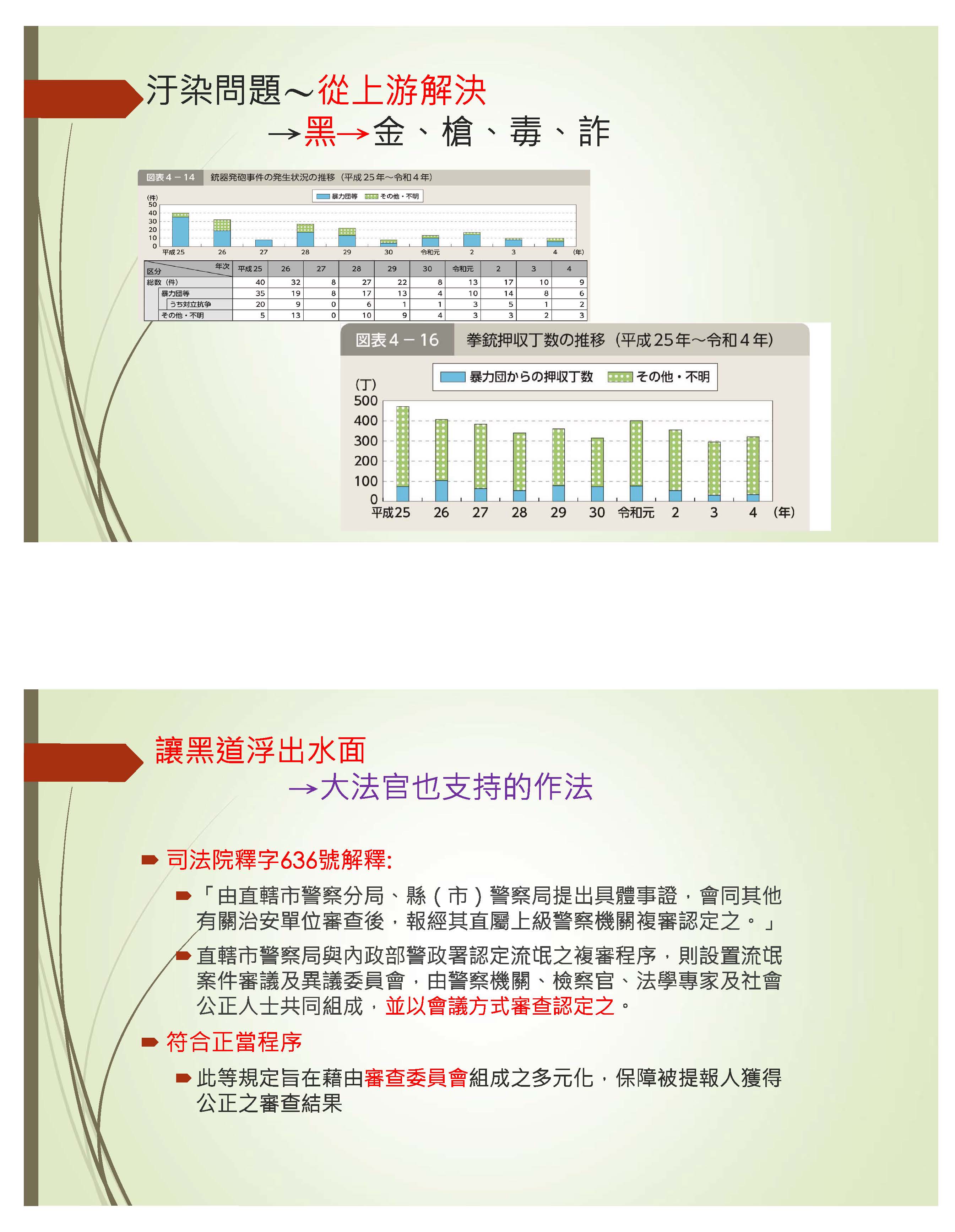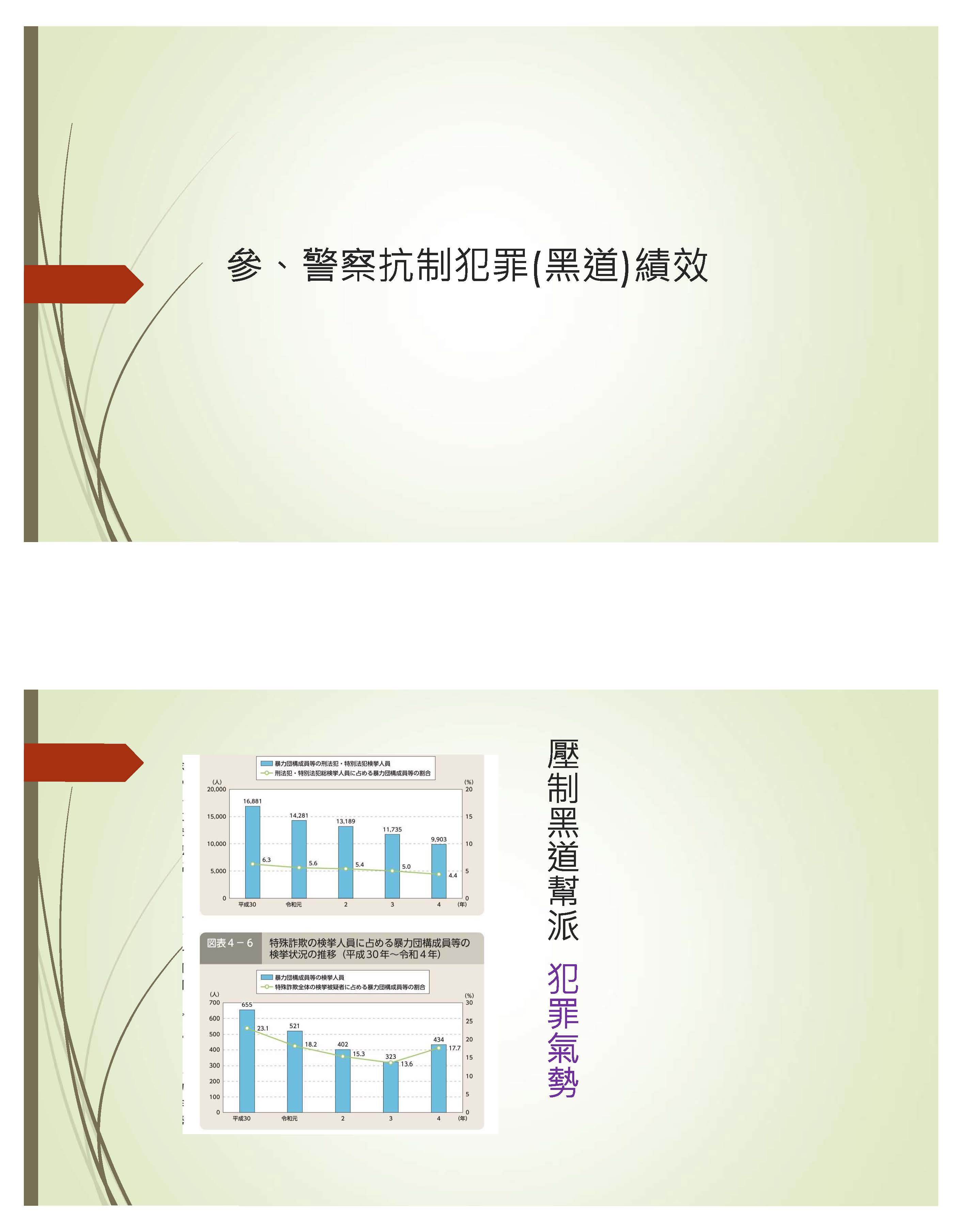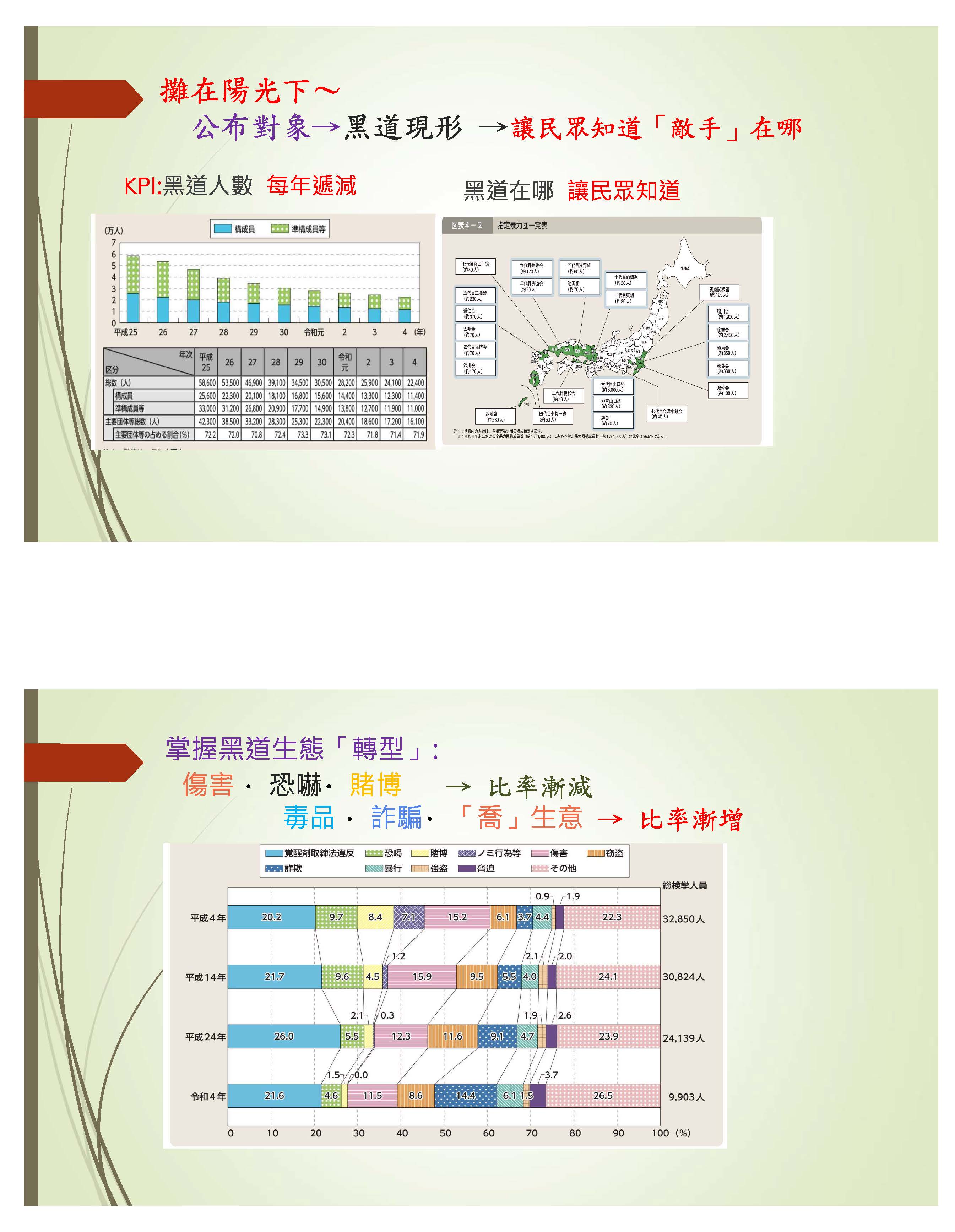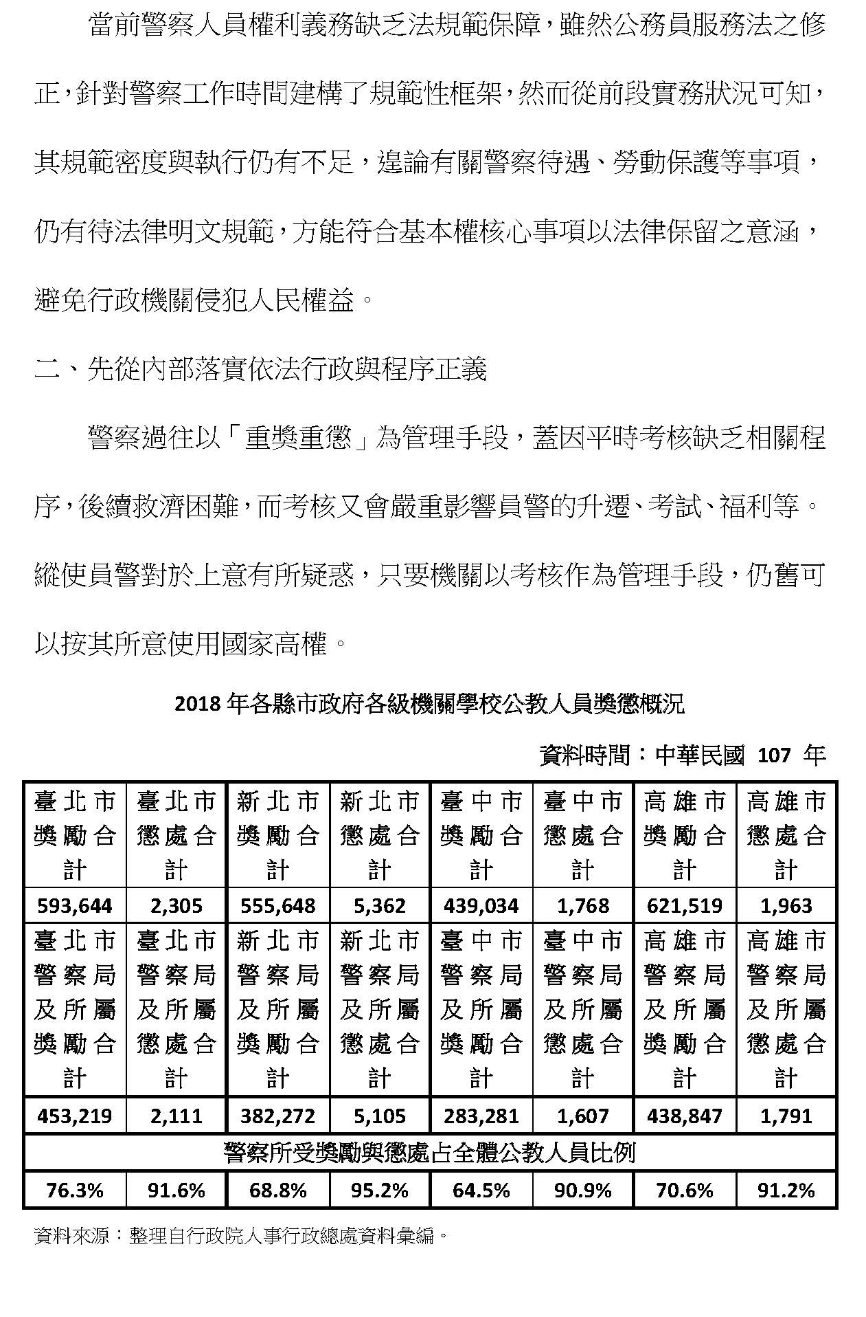 最後是要不要設計?如果像游委員提到的,他都可以想像是國土安全部,我們從頭去改,再去思考一下要不要設置類似日本的一個獨立的警政治安委員會,然後包括我們的法制、制度、人事相關懲處,都能以一個獨立的、比較客觀中立的第三者的立場去考核的話,我想對於我們臺灣警察地位的提升會有幫助。