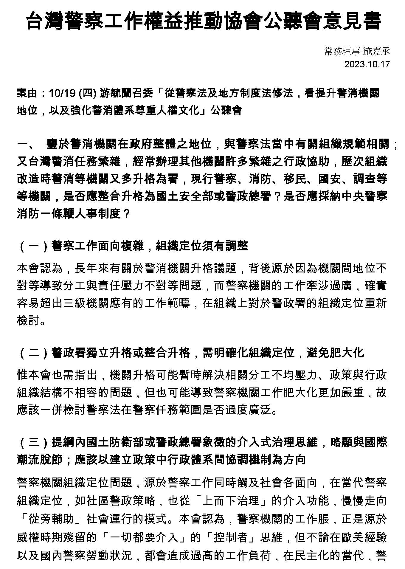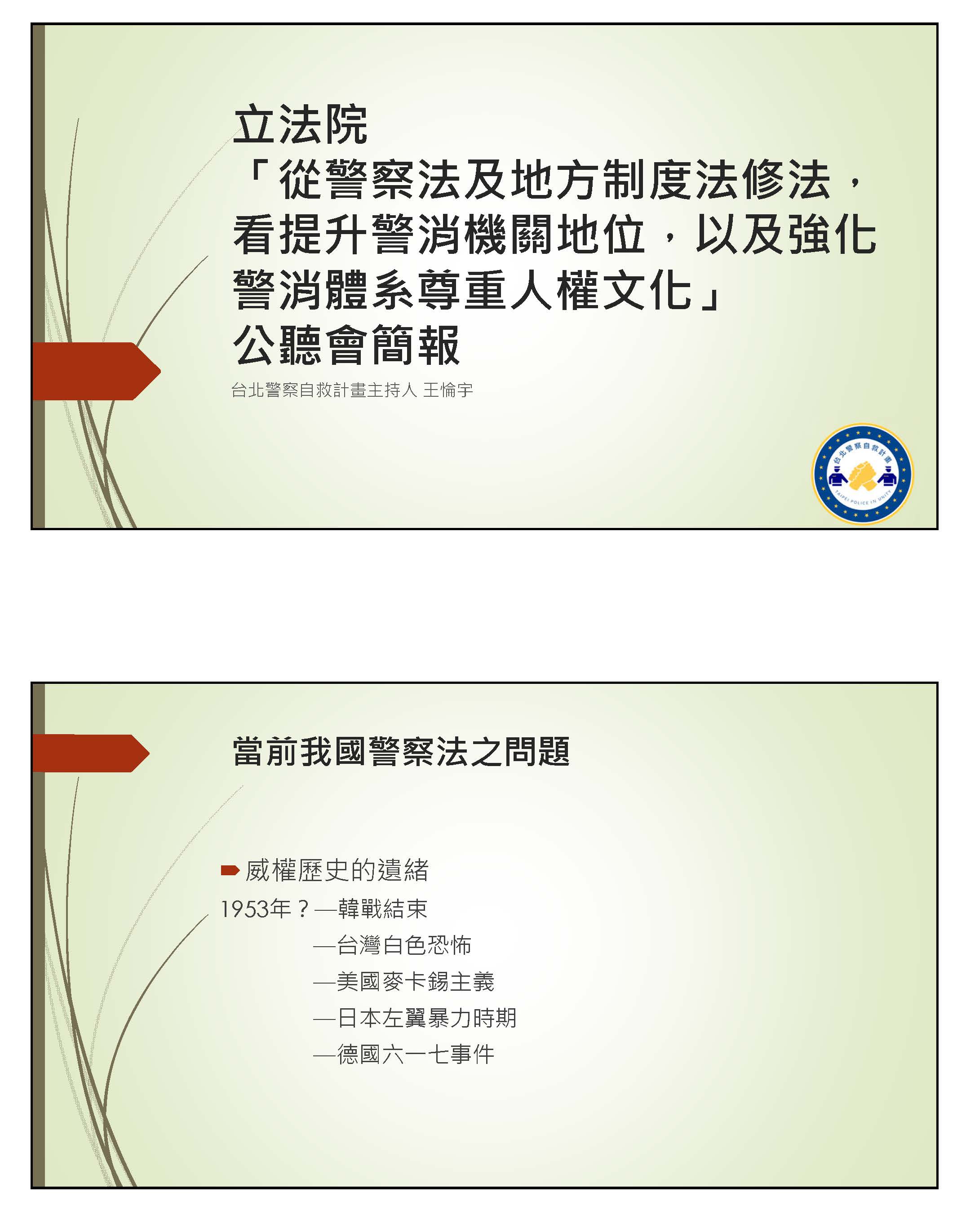 「從警察法及地方制度法修法.看提升警消機關地位.以及強化警消體系尊重人權文化」公聽會