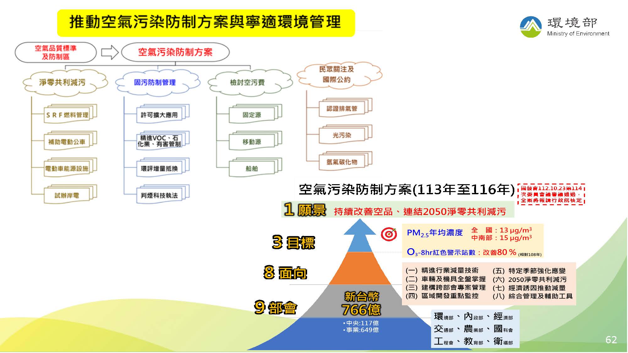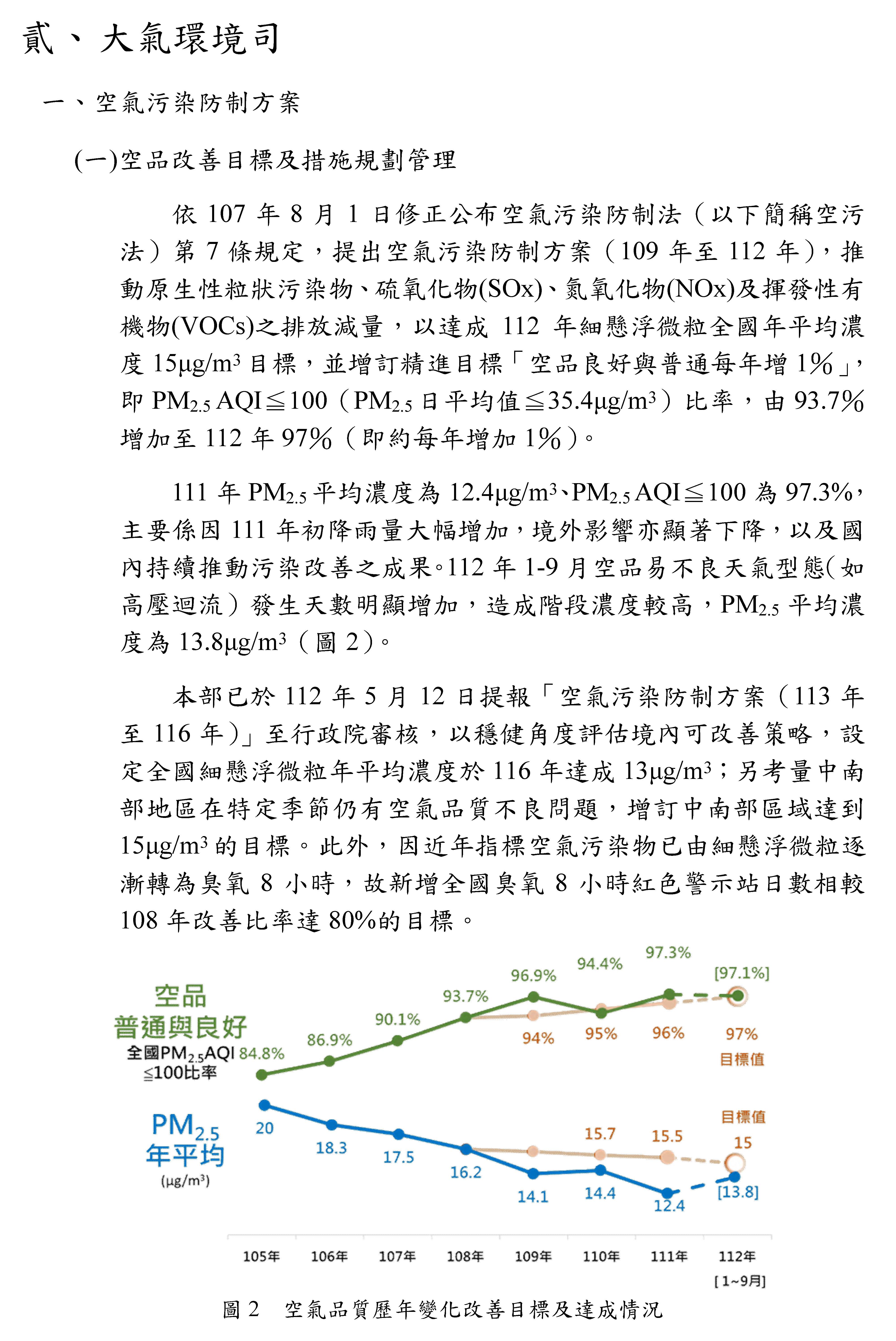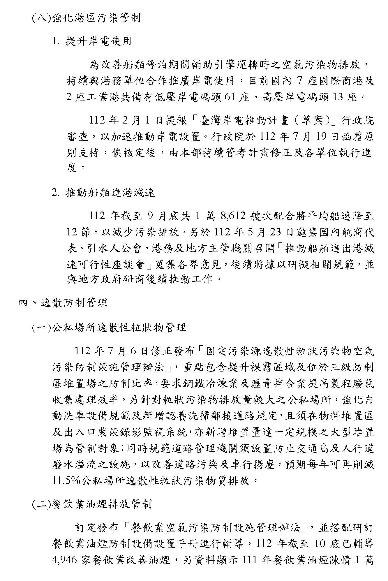 薛部長富盛:我跟委員報告,事實上大氣司在季節轉換或者天氣要變的時候,都會把未來三天所預測的空氣品質在線上即時告知全國民眾。同時我們在109年就開始啟動,只要是因為外在因素的影響,我們就會要求台電,特別是臺中火力發電廠以及六輕,事實上他們會降載,燃煤的部分就會降低,所以用這個方式來彌補可能造成的……