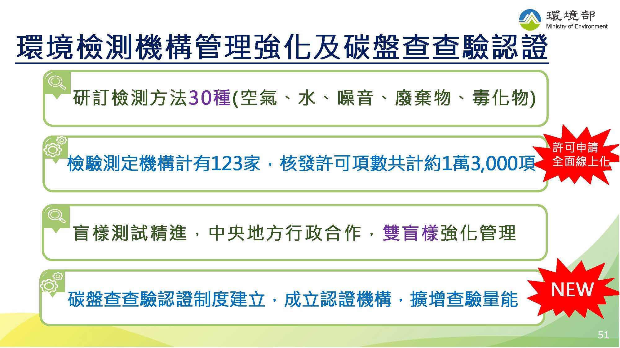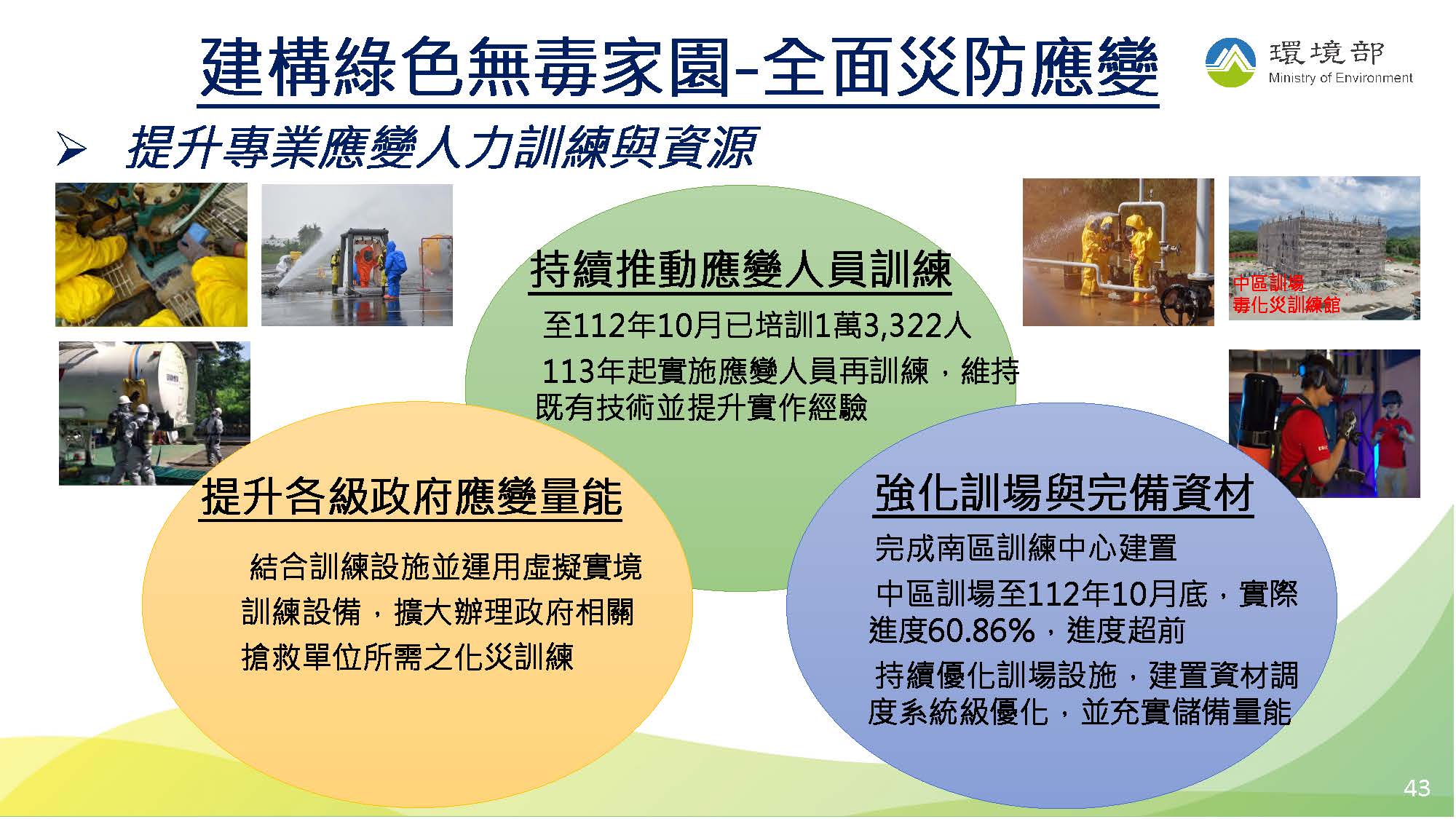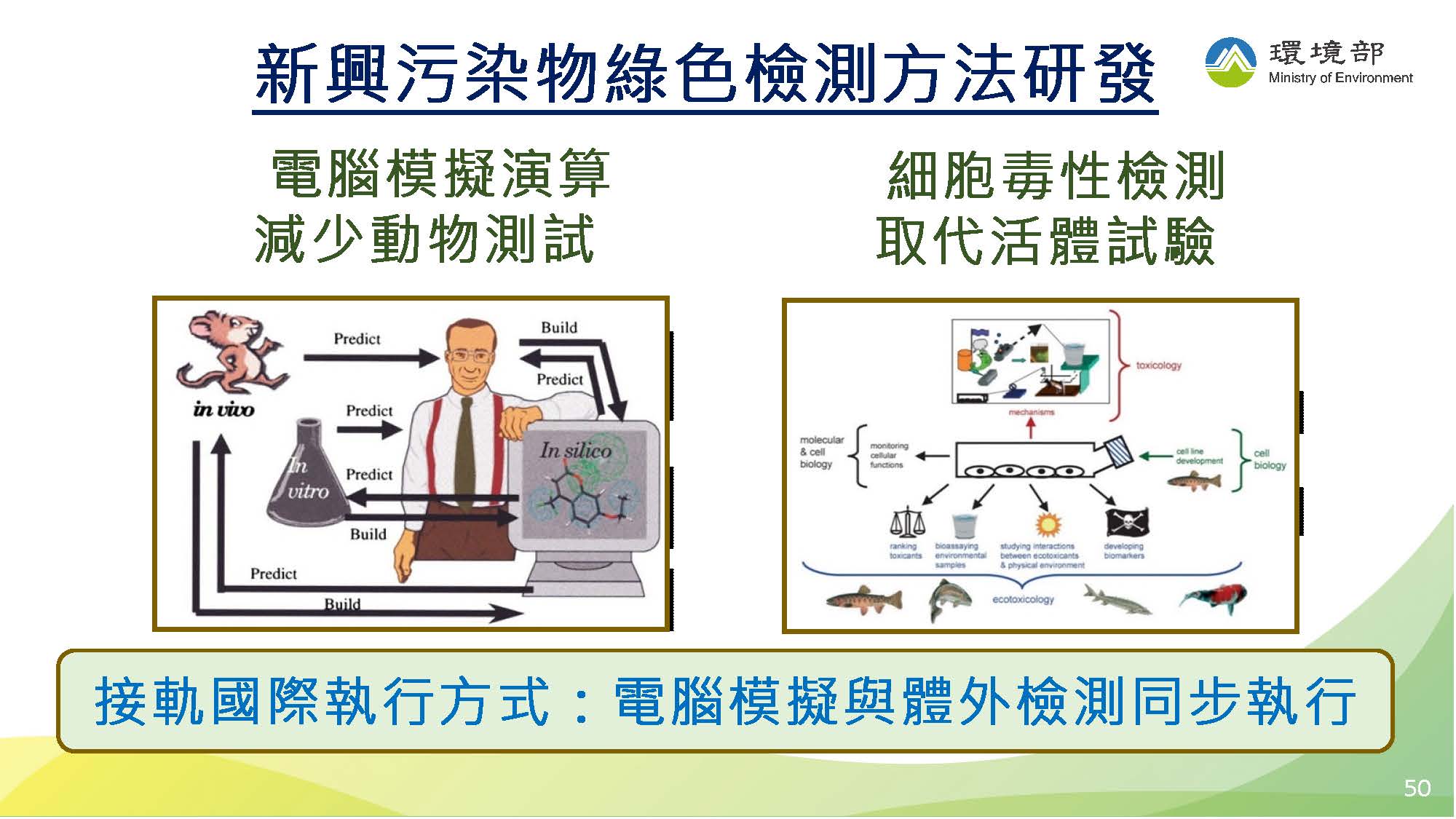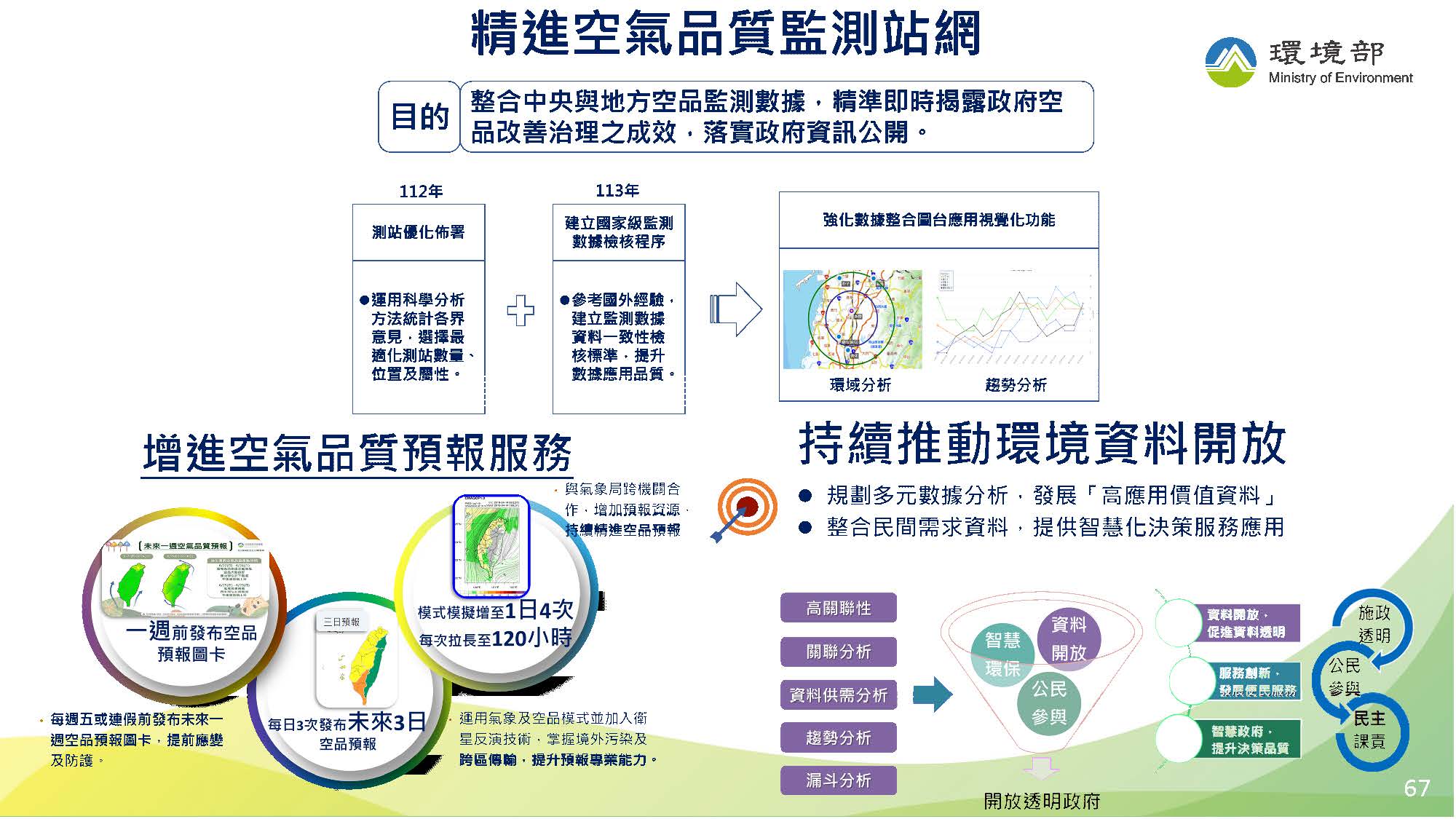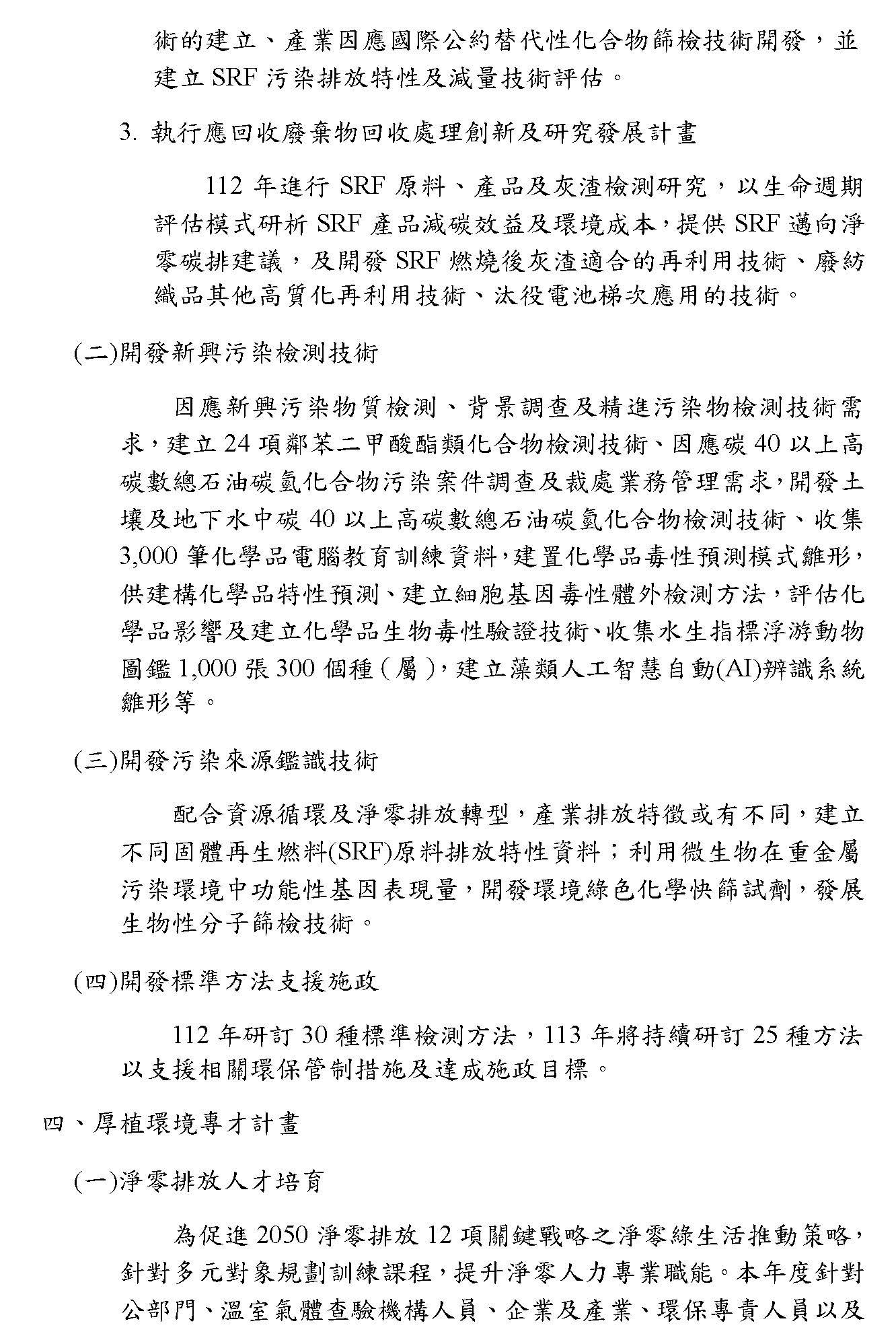 另外,國環院是將原本的環檢所跟環訓所整合,未來希望能夠充實國環院的研發能量,可以跟國內的學術界、研究界,甚至產業界合作,提供更先進有關環境知識的策略規劃。