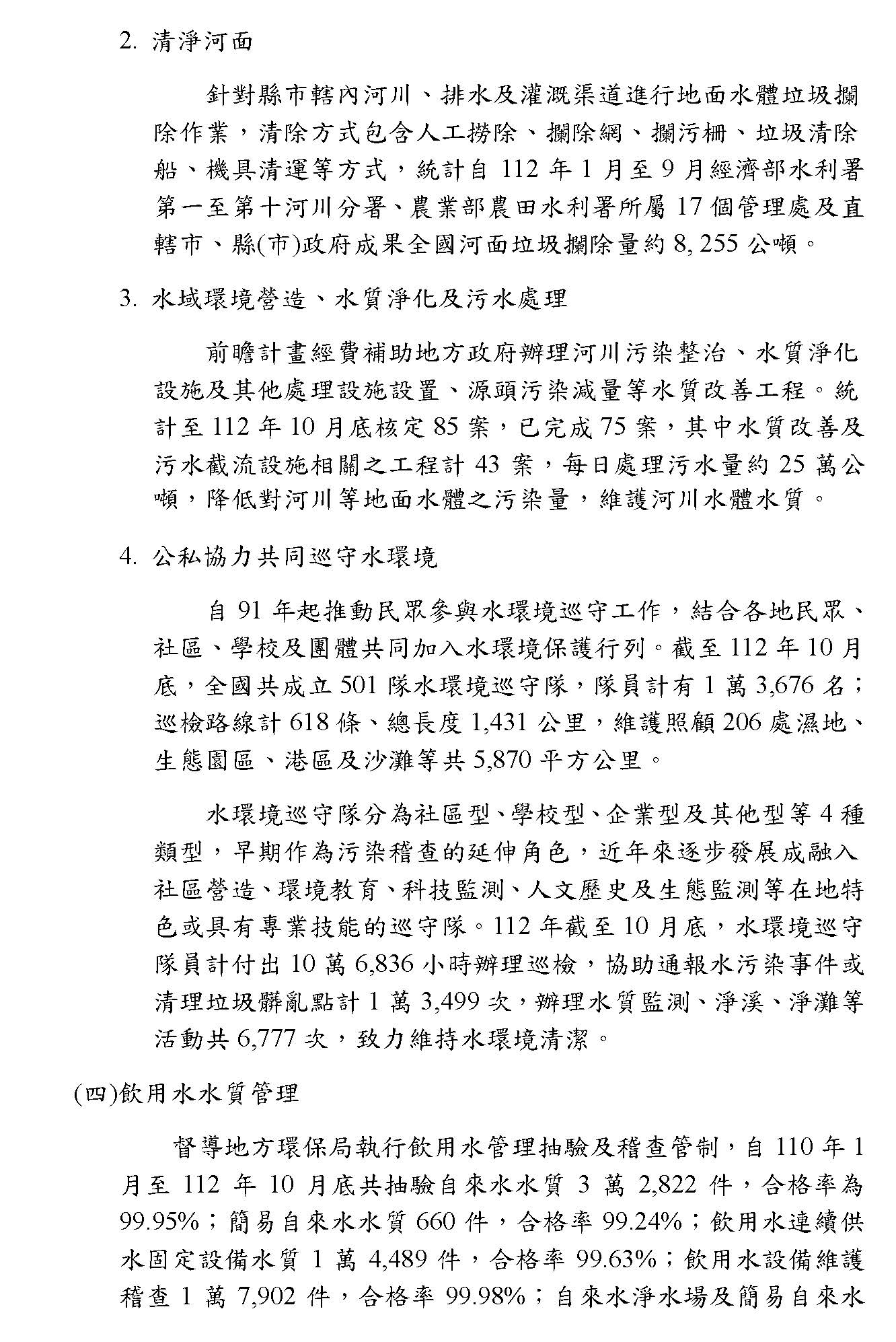 (四)行政院環境保護署函,為112年度中央政府總預算附屬單位預算決議,檢送環境保護基金決議第8項「土壤及地下水污染整治計畫」預算凍結200萬元書面報告。