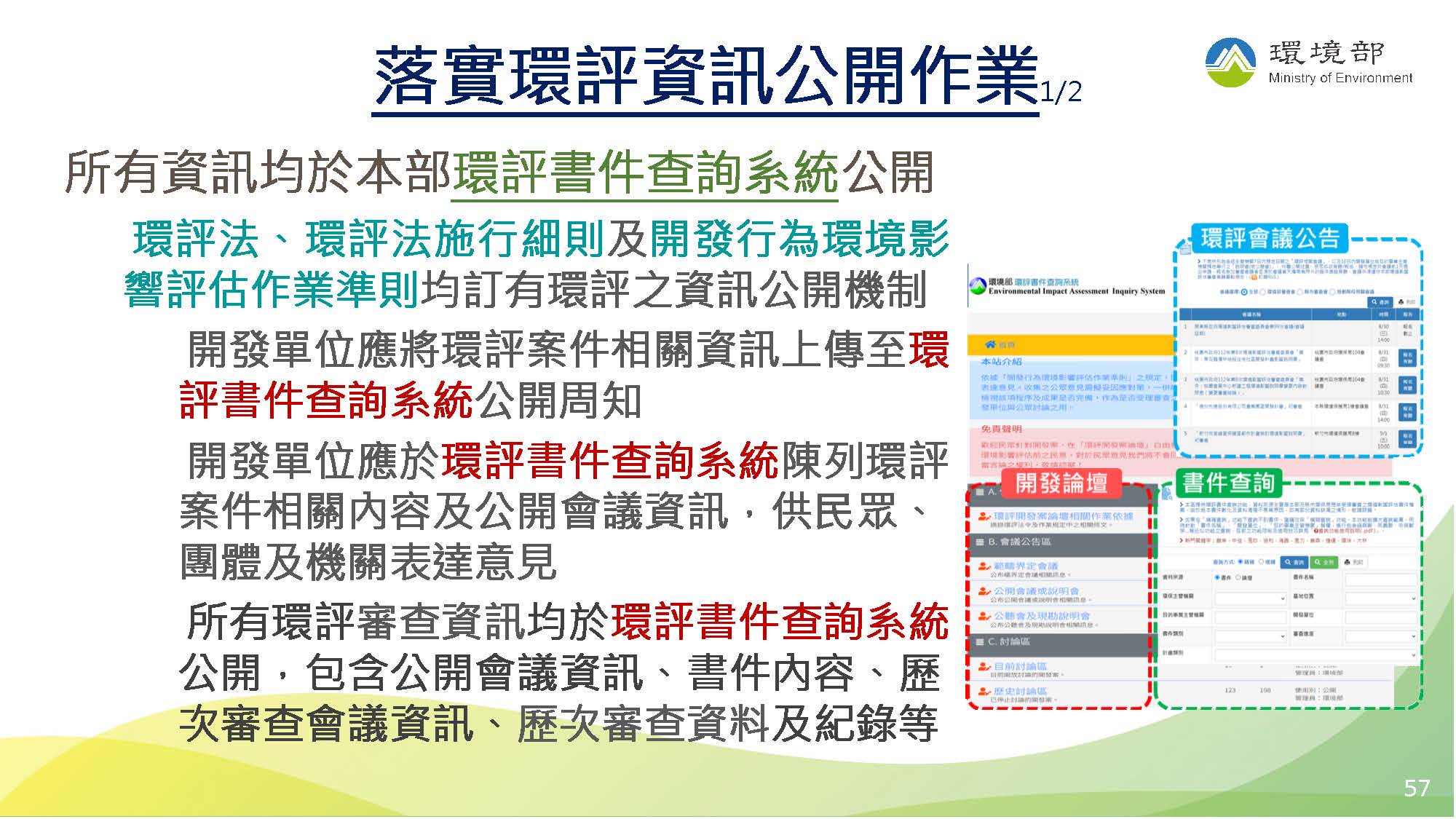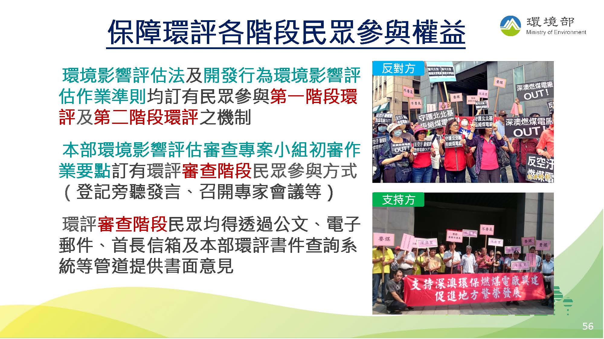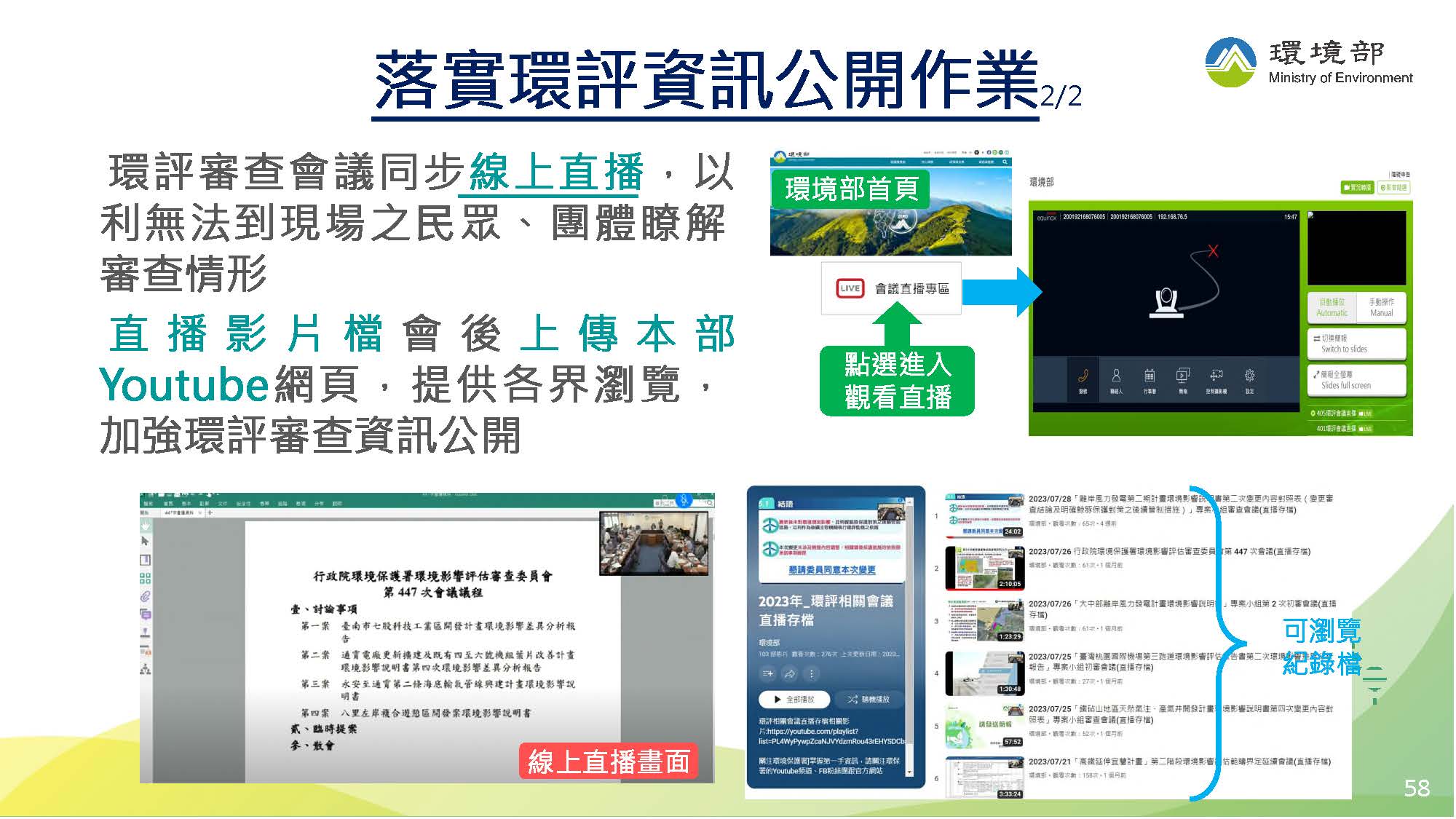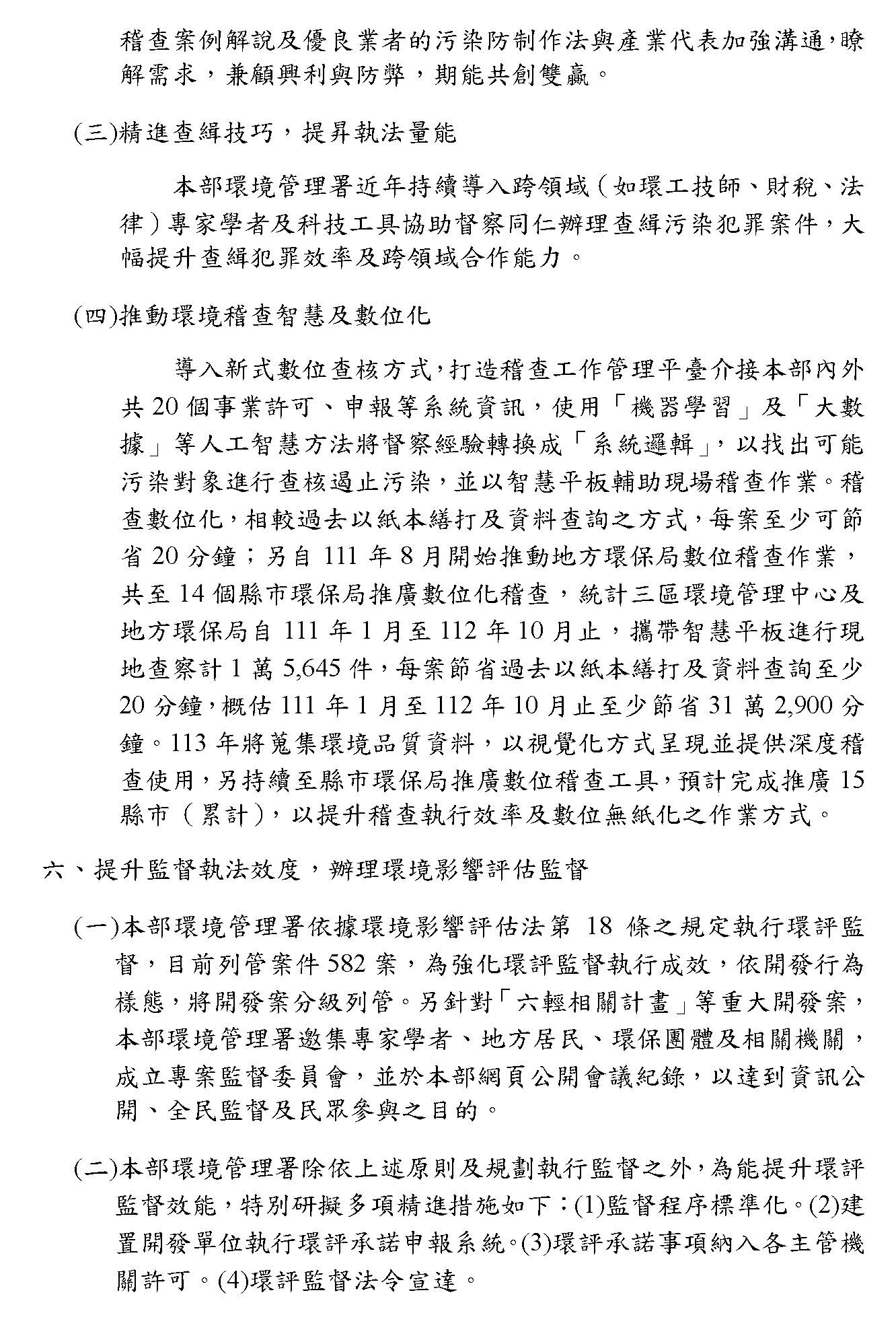 第七點是有關強化溝通平台的部分。我上任到目前為止已經跟環團至少溝通6次以上,特別是在這個禮拜一跟中部地區環團大概將近三十幾位有非常好的溝通,未來也持續會強化溝通面。我覺得環境部應該跟公民團體、跟環保團體,跟社會大眾打開溝通之門,能夠讓我們的政策可以落實,也解決基層民眾的困擾。