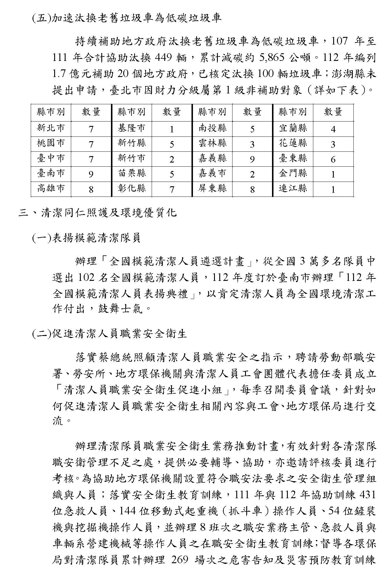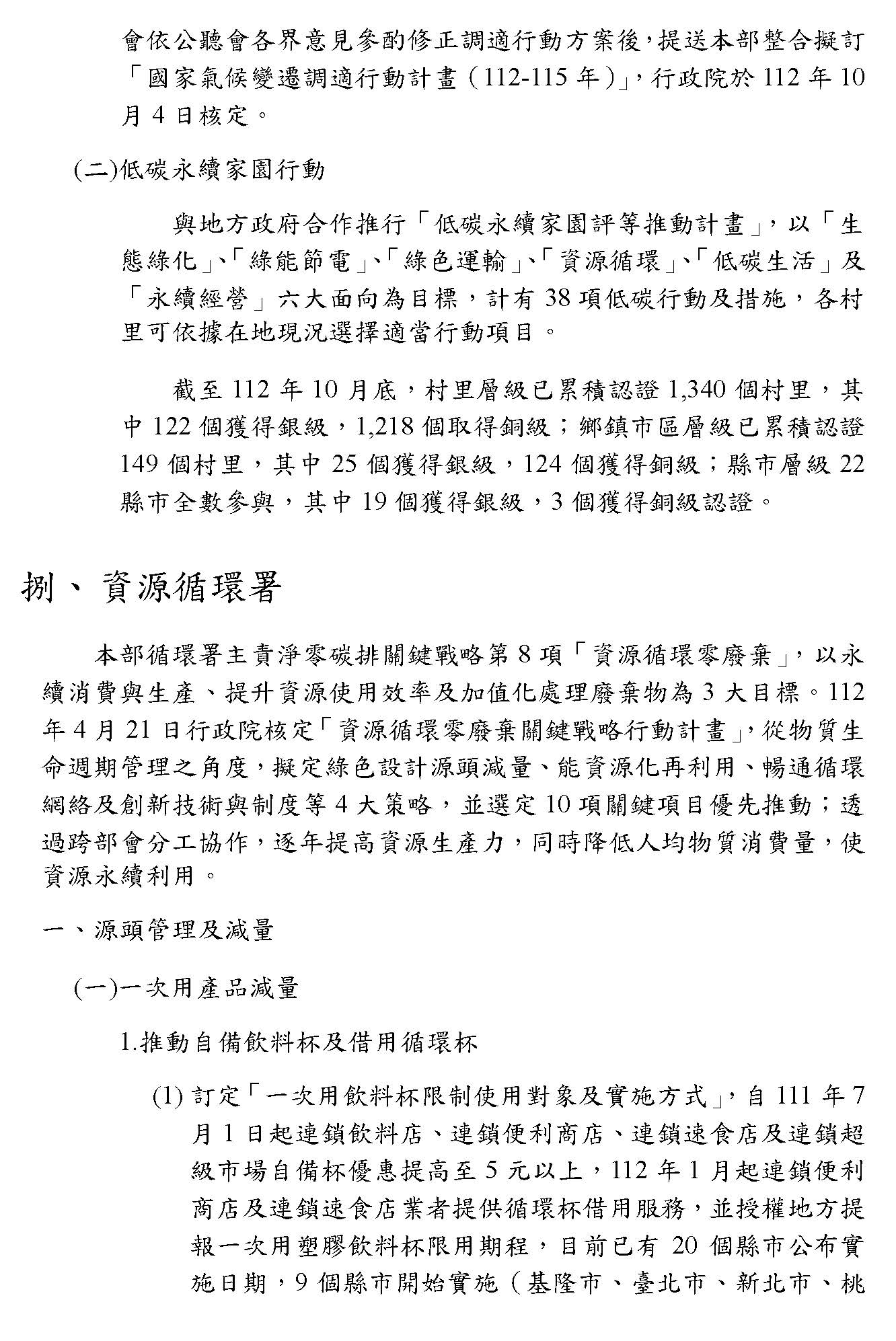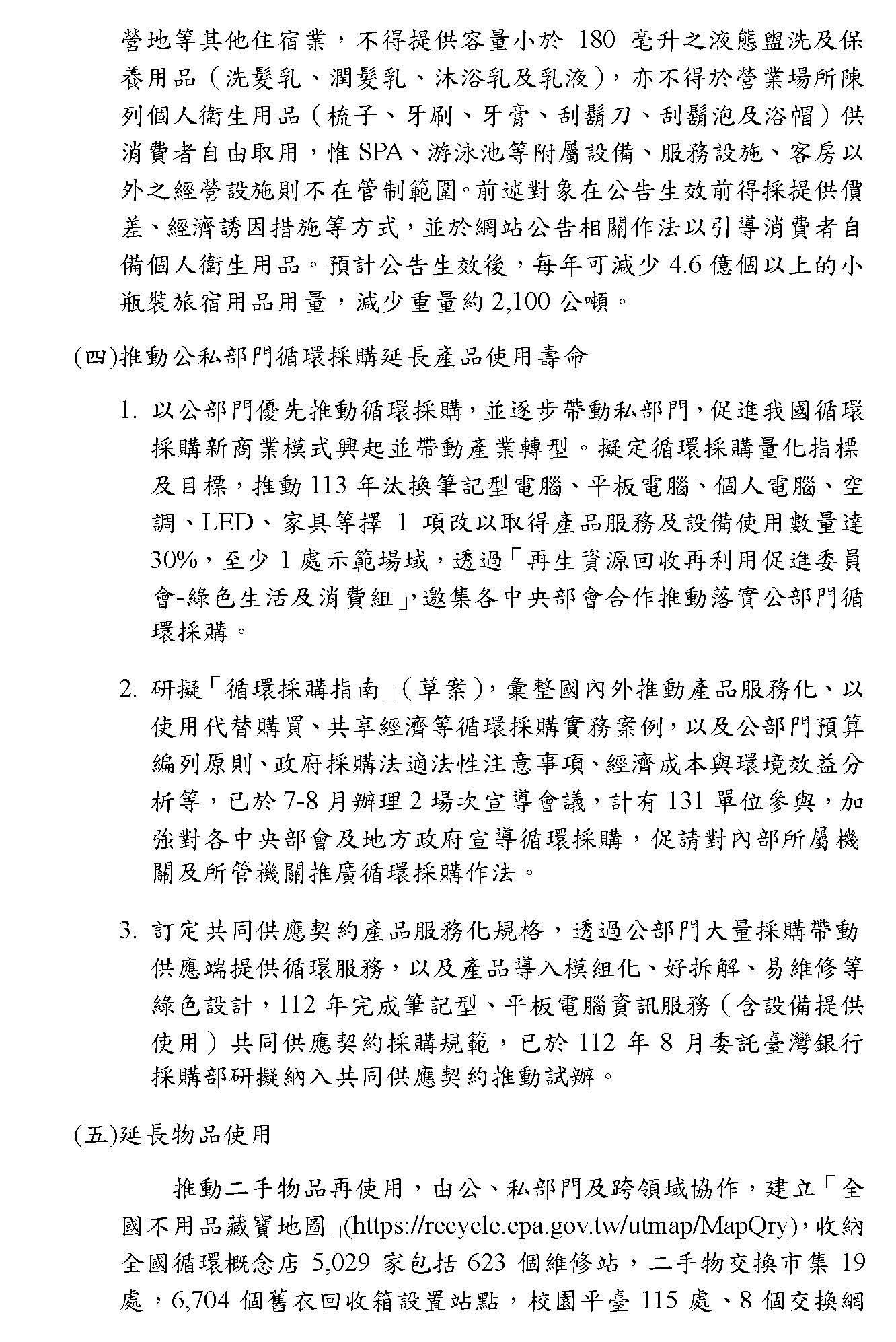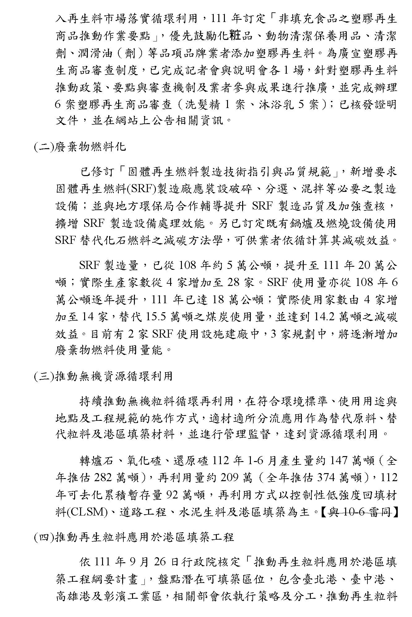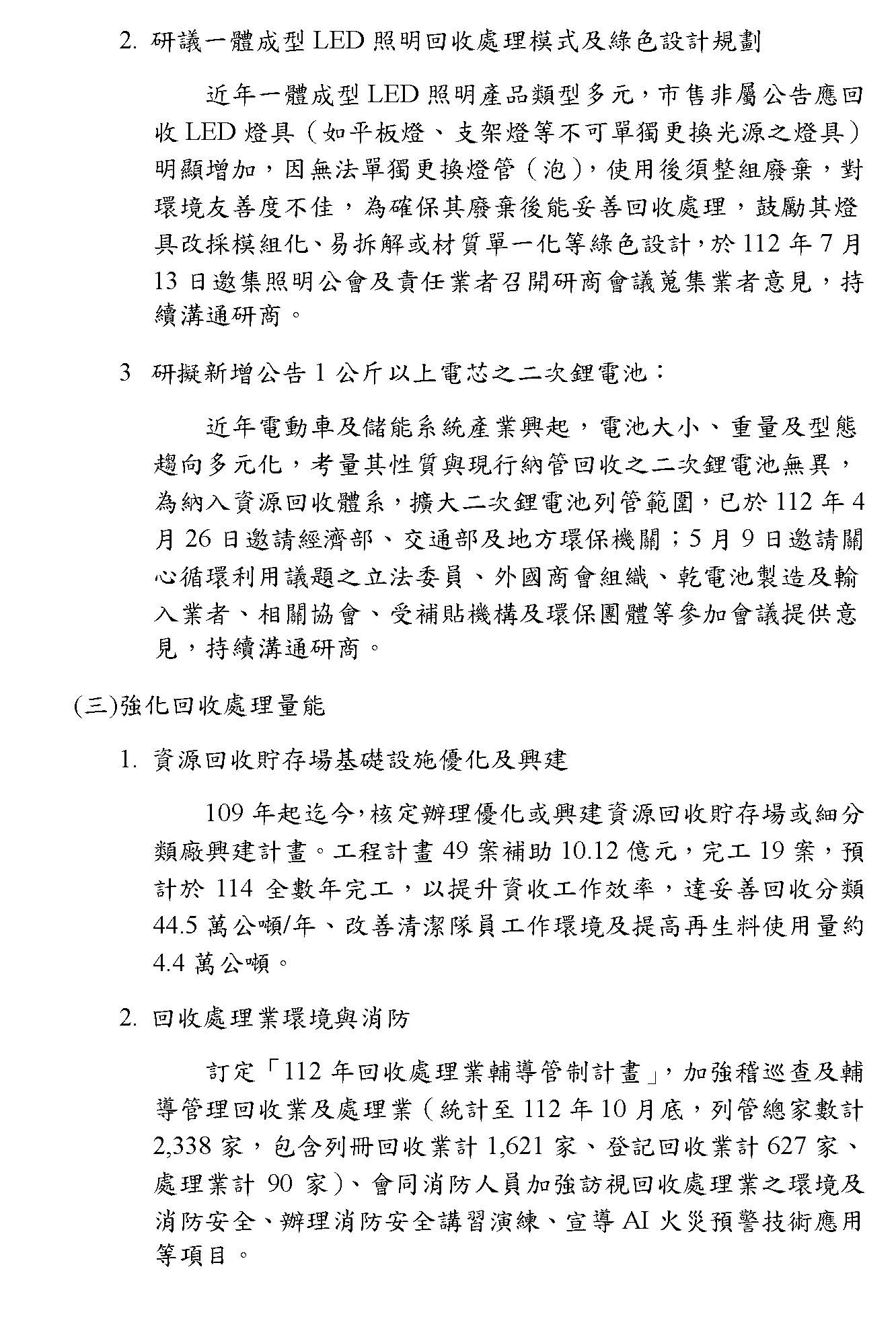 (三)行政院環境保護署函,為112年度中央政府總預算附屬單位預算決議,檢送環境保護基金決議第5項「資源回收管理計畫」預算凍結500萬元書面報告。