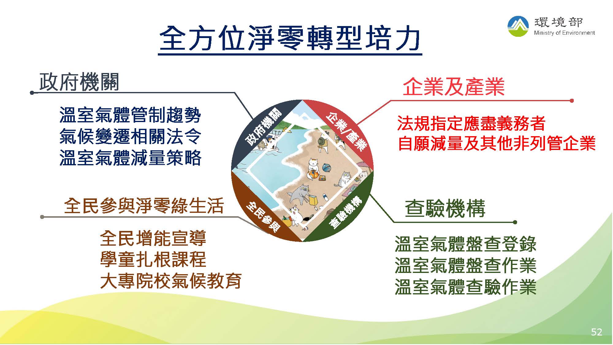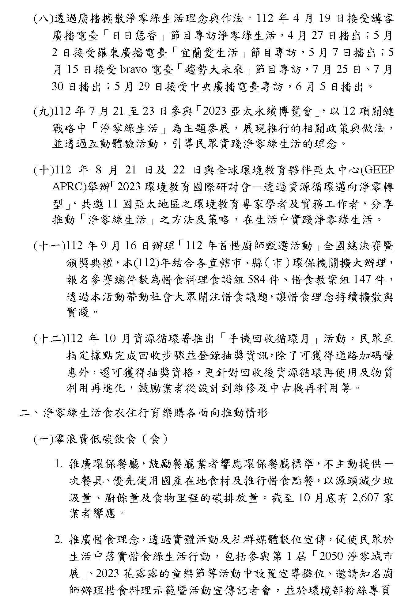 最後當然就是我們在不管是淨零或者是資源回收方面,都必須跟全民一起推動,所以我們推動淨零綠生活,希望可以把整個環境部政策的推動落實到全民的日常生活,做生活的轉型。
