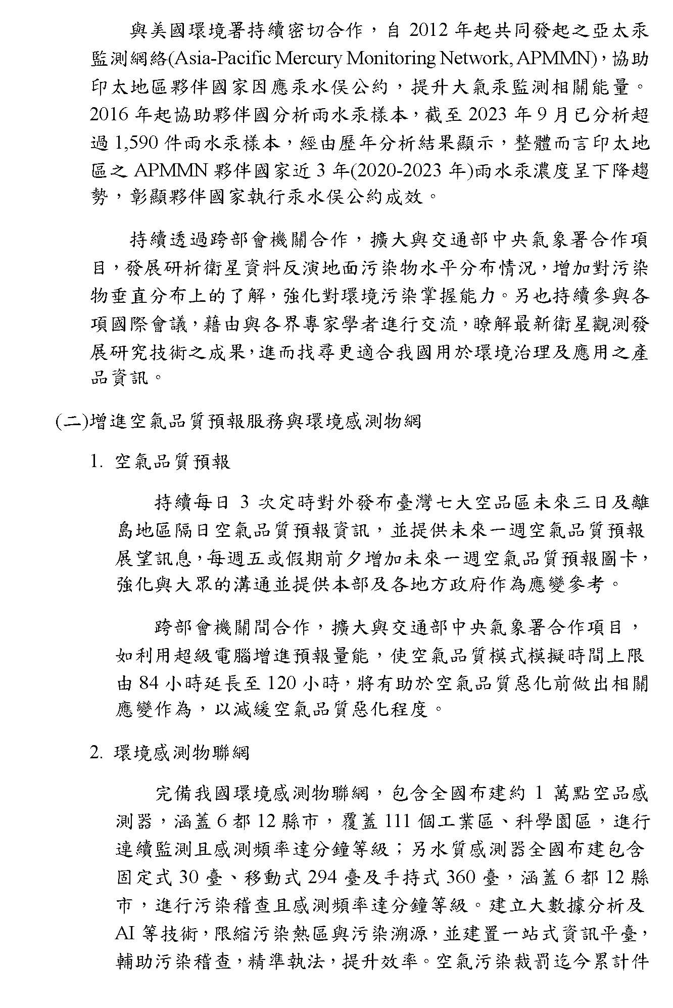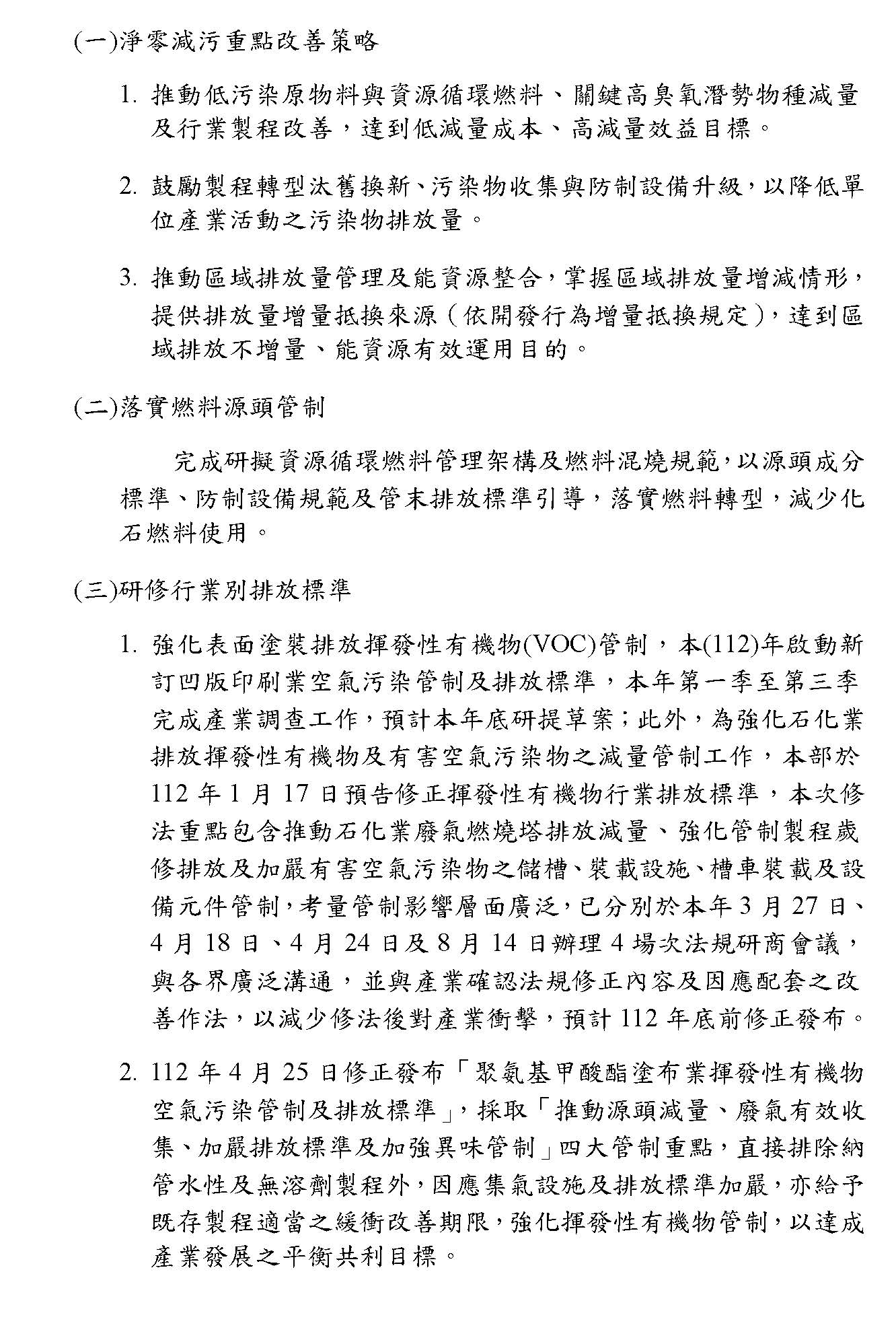 賴委員惠員:部長,除了電廠的降載還有在網路上的宣告以外,有沒有比較積極的作為?在你們的報告裡頭,你特別講到空氣品質維護的區域,也就是……