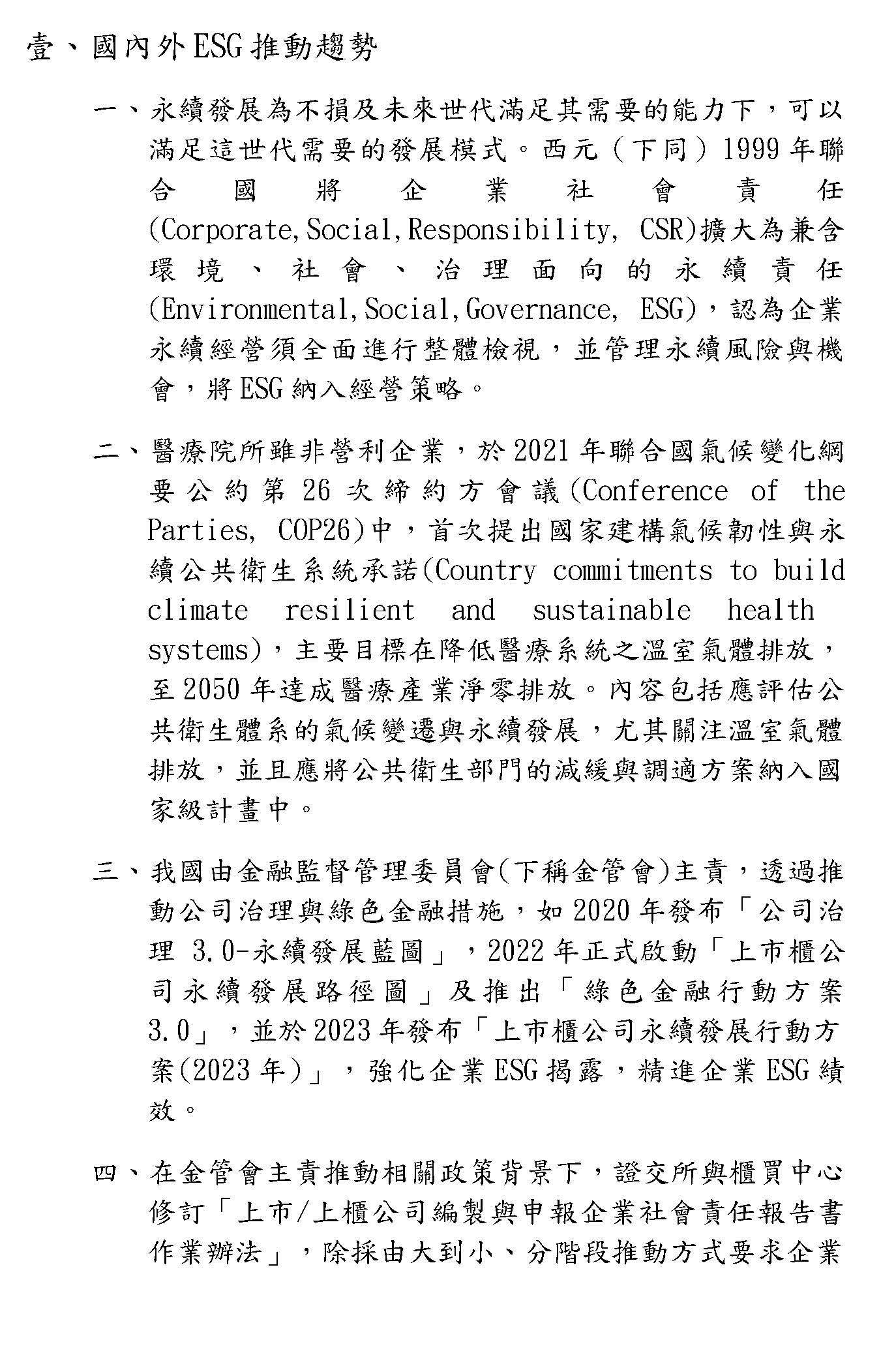 二、如何鼓勵協助醫療院所推動醫療ESG共同促進國家永續發展(書面報告)
