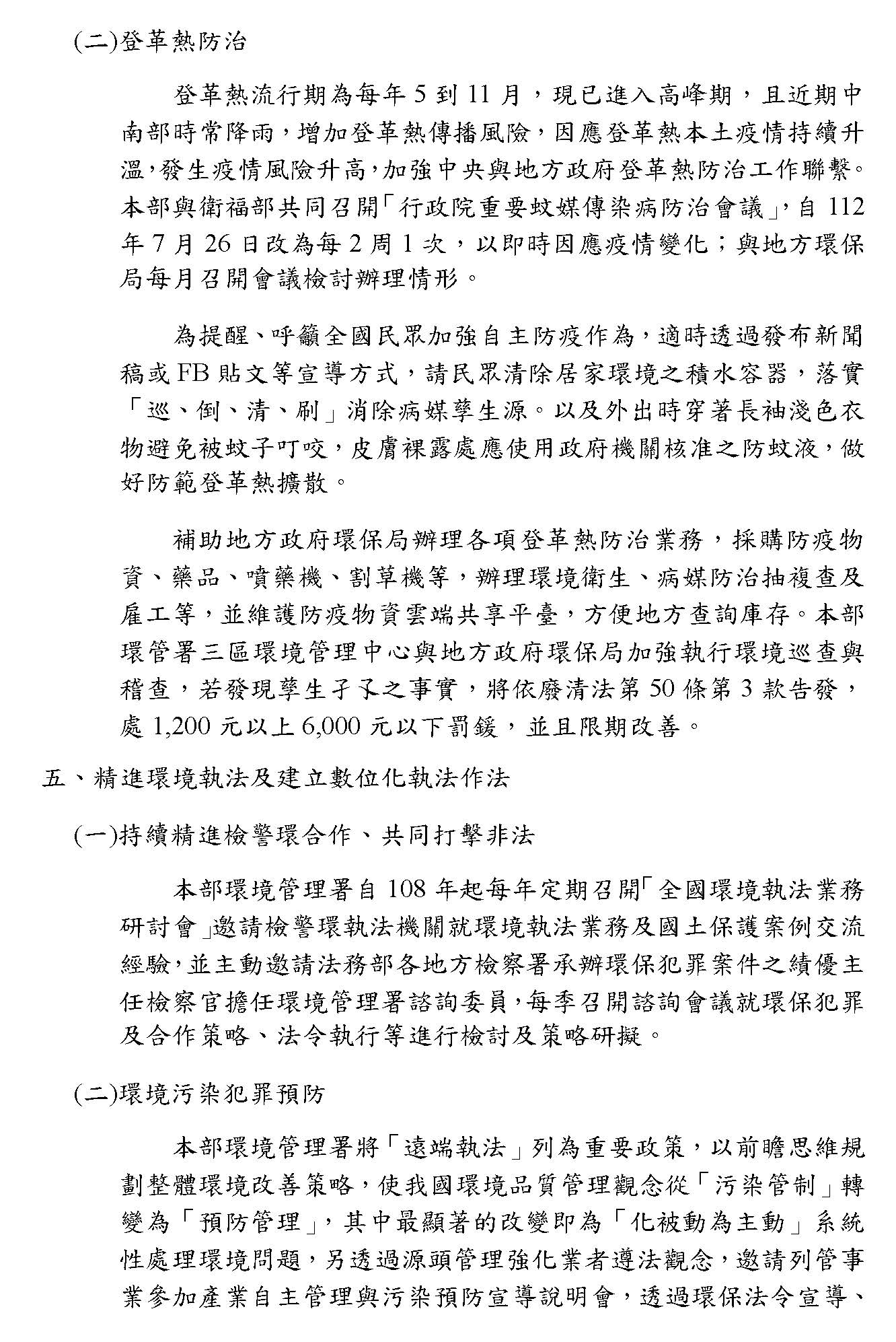 本日議程 邀請環境部部長列席報告業務概況,並備質詢。