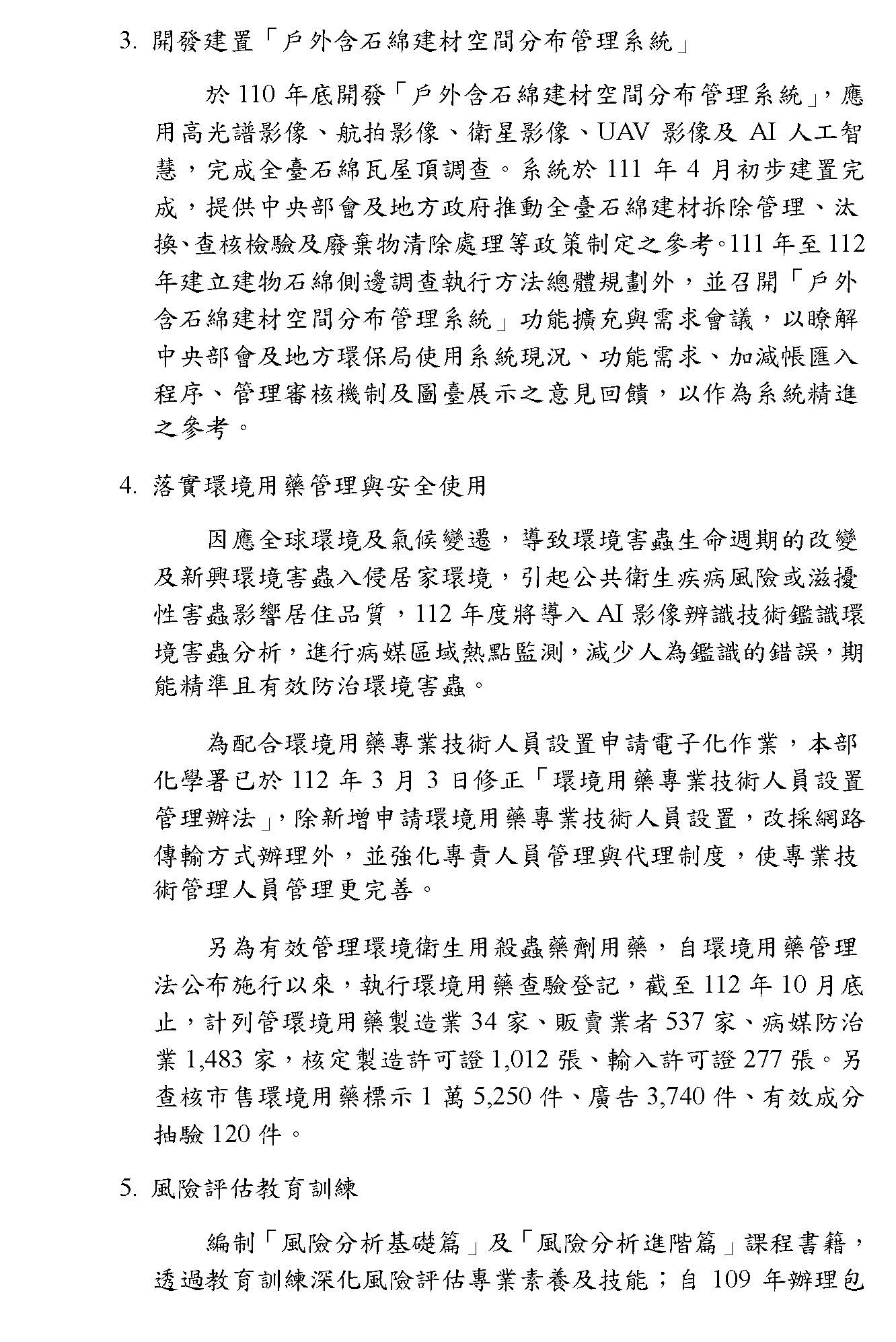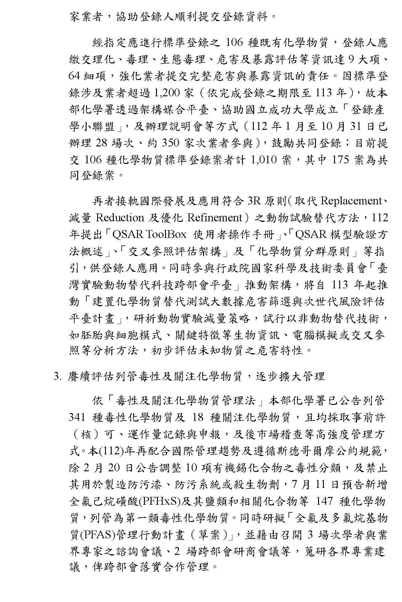 薛部長富盛:謝謝賴委員的建議,的確最近這幾天媒體報導很多臭蟲的議題,所以才引起大眾的關注,事實上化學署已經有一些作法在推動,我請謝署長跟賴委員報告一下。