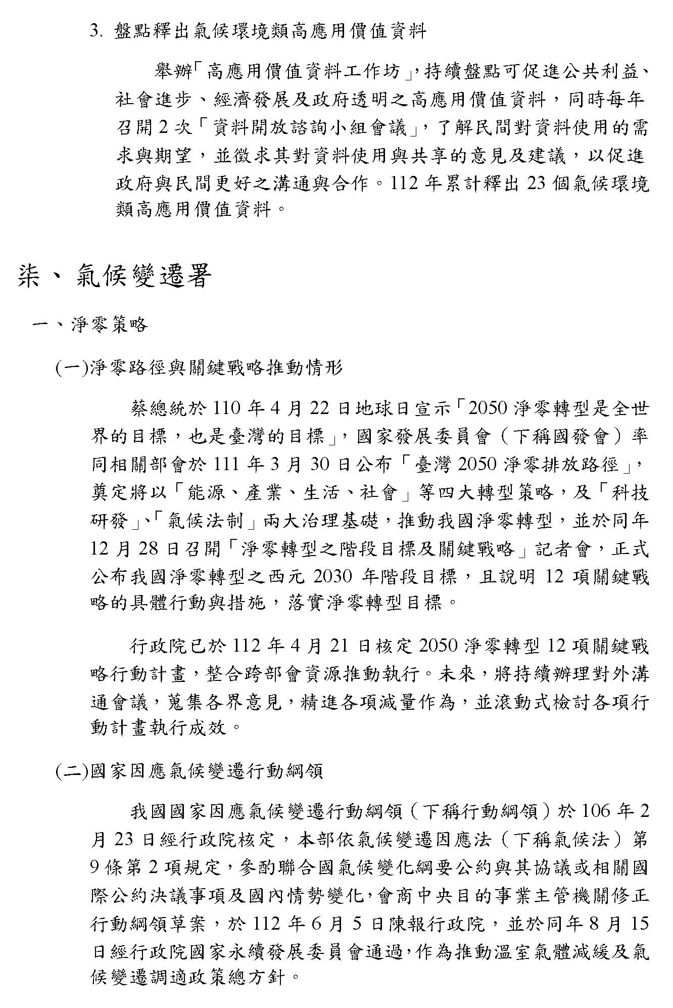 行政院環境保護署函,為112年度中央政府總預算附屬單位預算決議,檢送環境保護基金決議第12項「溫室氣體排放管理」預算凍結100萬元專案報告。 |