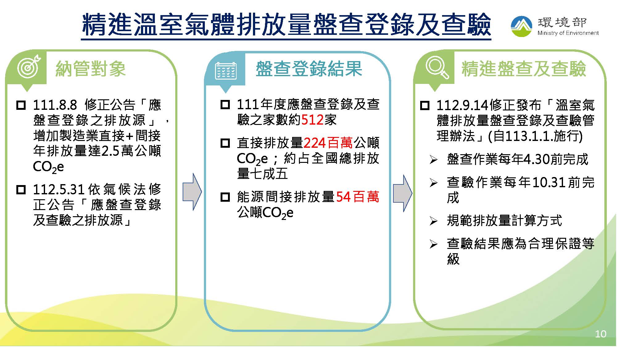 問題一:環境部對外表示,目前已訂有5年一期階段管制目標。但對於加強2040、2050年碳排放的總量管制想法,這樣兩者的條件有相衝突嗎?兩者之間的關聯以及環境部對外表示要避免有逾越母法的疑慮,能否簡單說明相關的考量是什麼?成果報告及預算編列的期程配合,如果都能配合得上,這樣有推動的困難嗎?