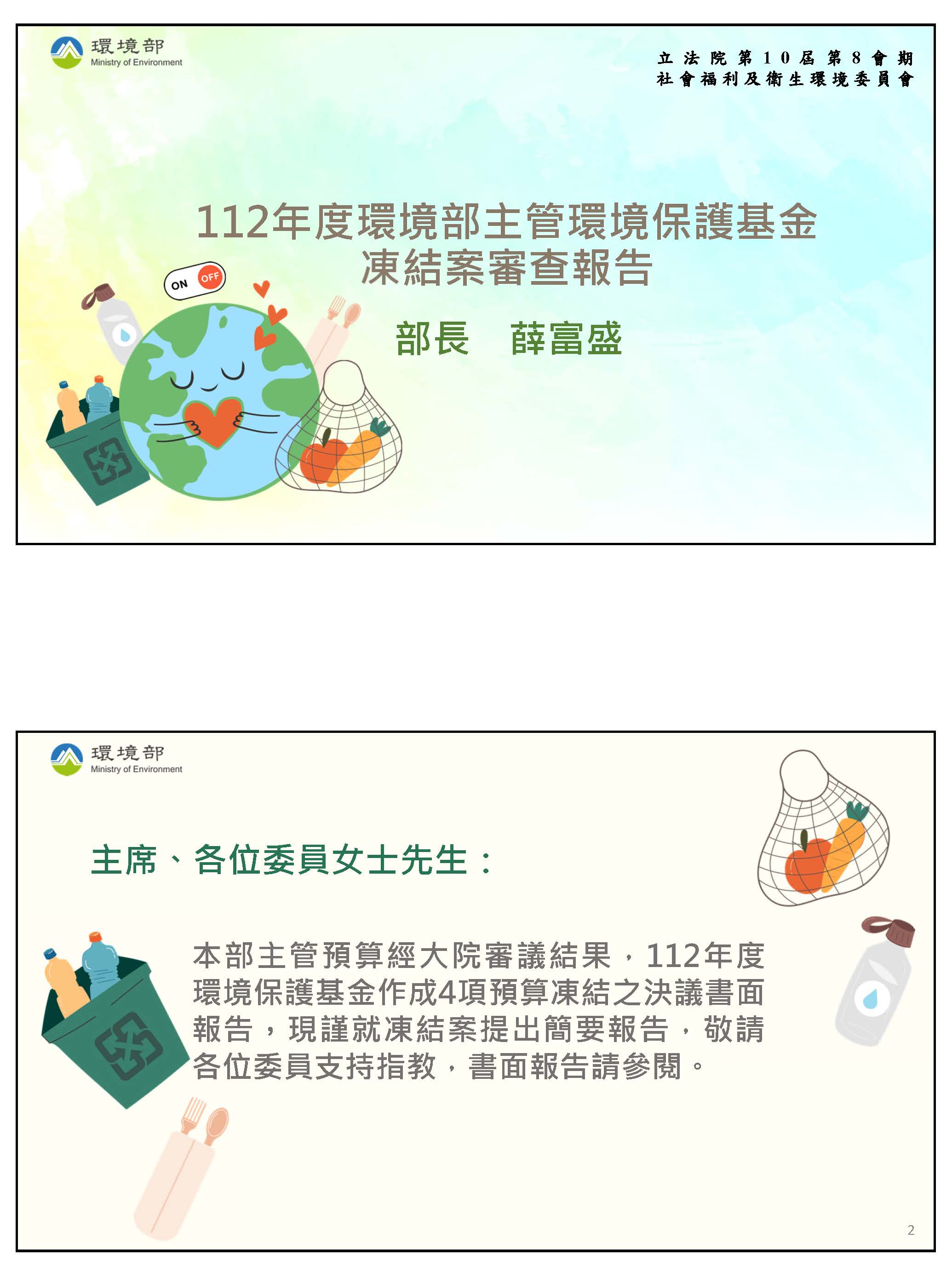 一、中華民國112年度環境部主管環境保護基金預算凍結案審查報告
