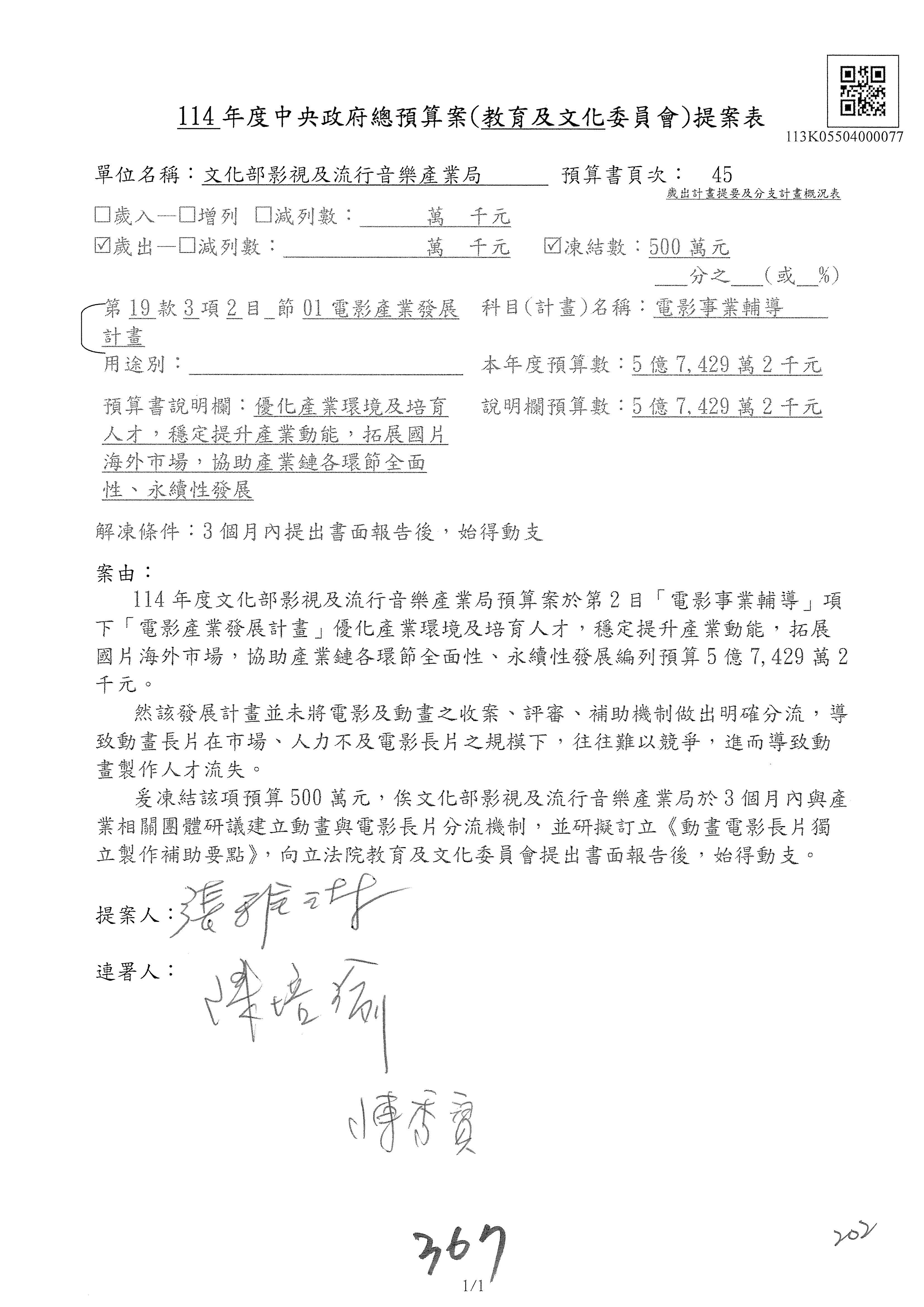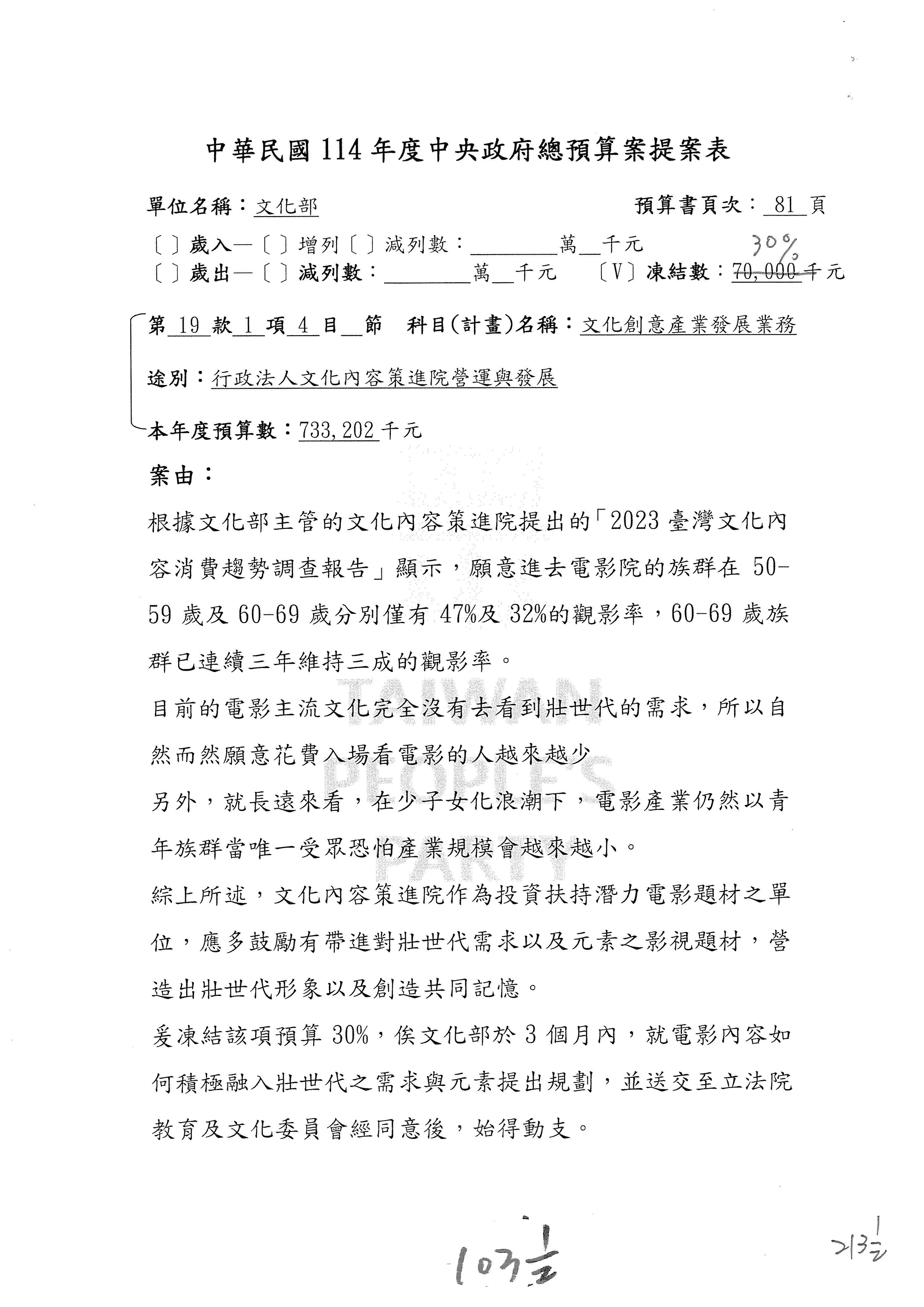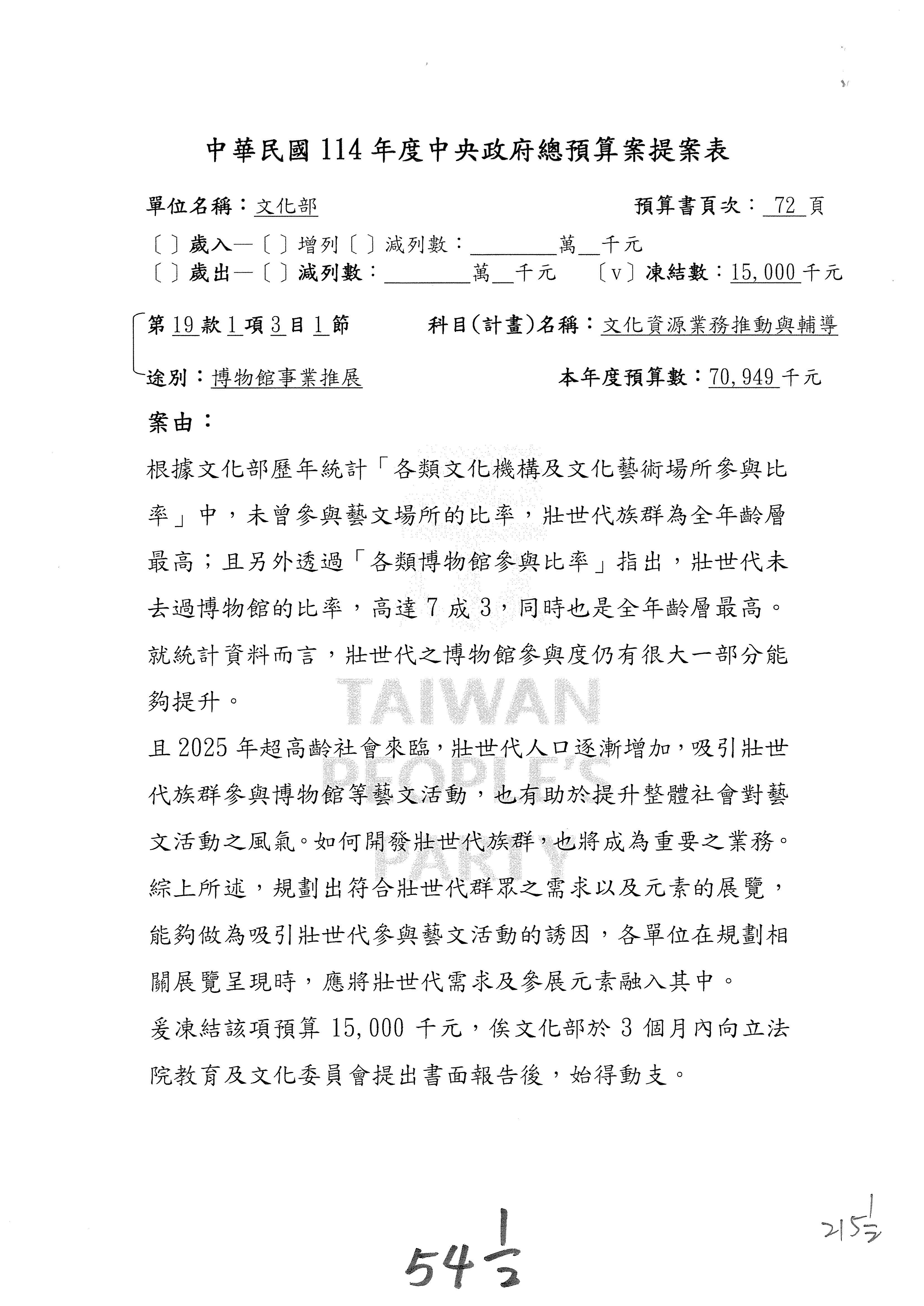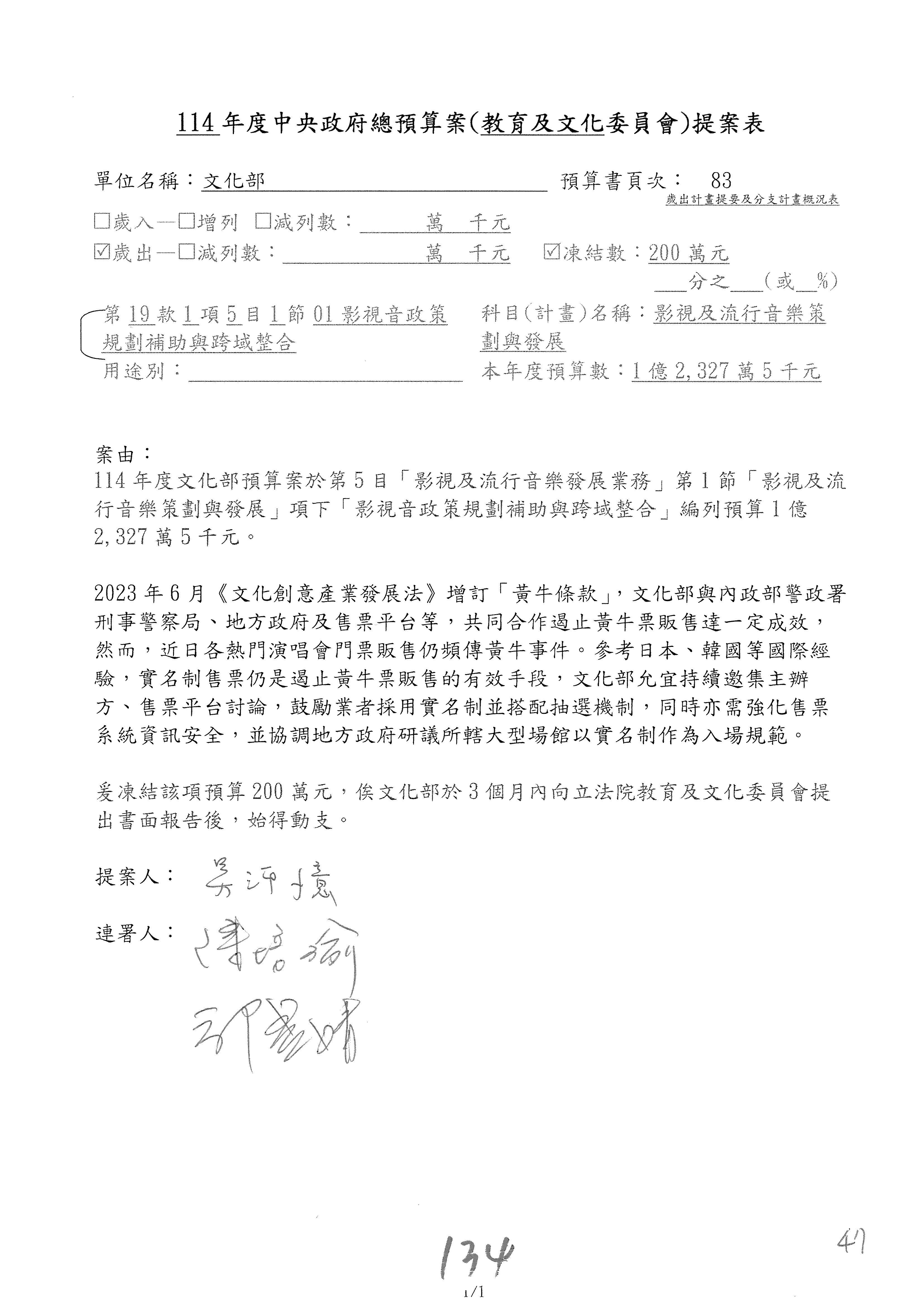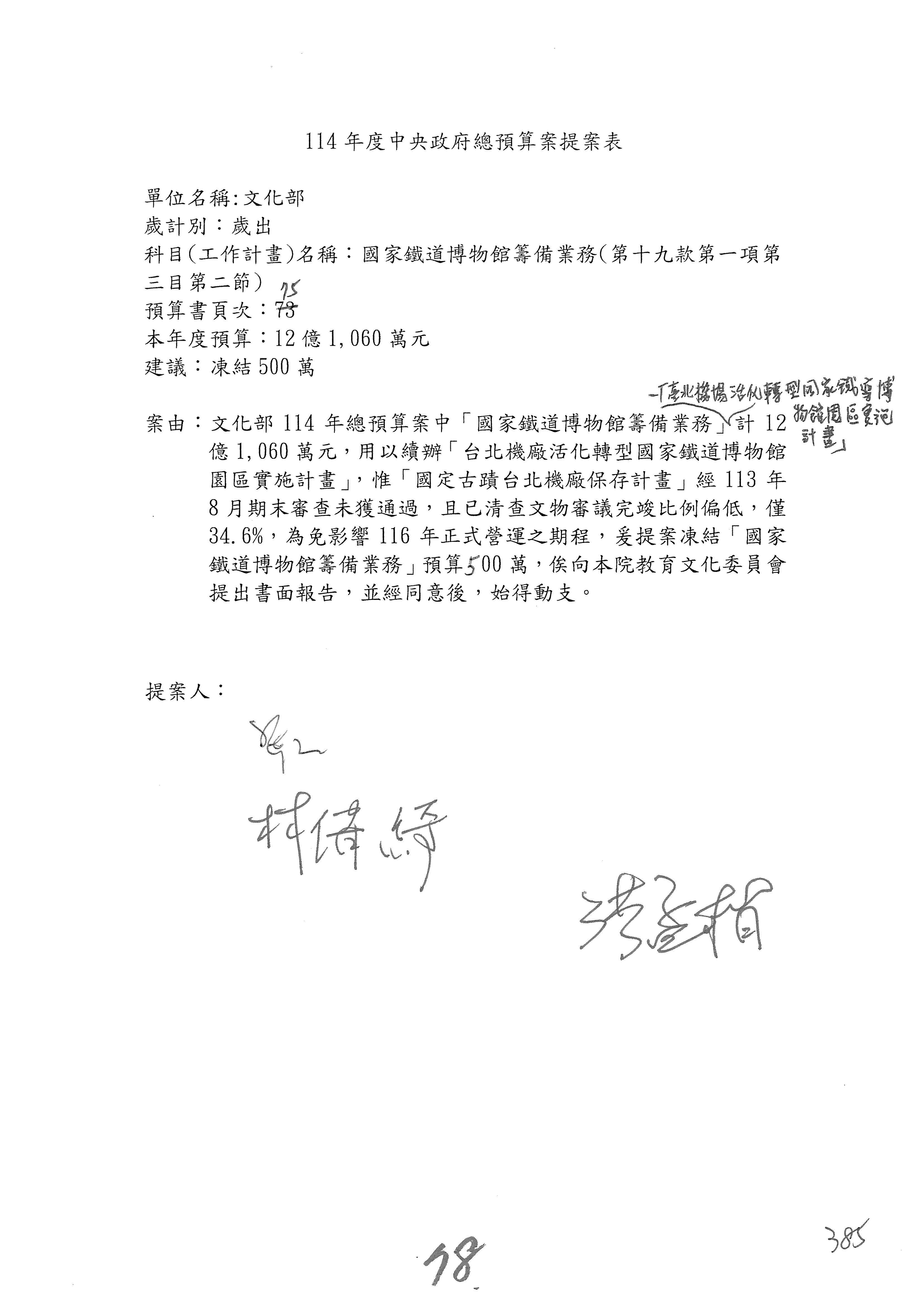 (三)114年度核能安全委員會及所屬第2目「原子能管理發展業務」第1節「原子能科學發展」預算編列27億5,477萬9千元,凍結5,000萬元,俟核能安全委員會向立法院教育及文化委員會提出書面報告後,始得動支。15-42
