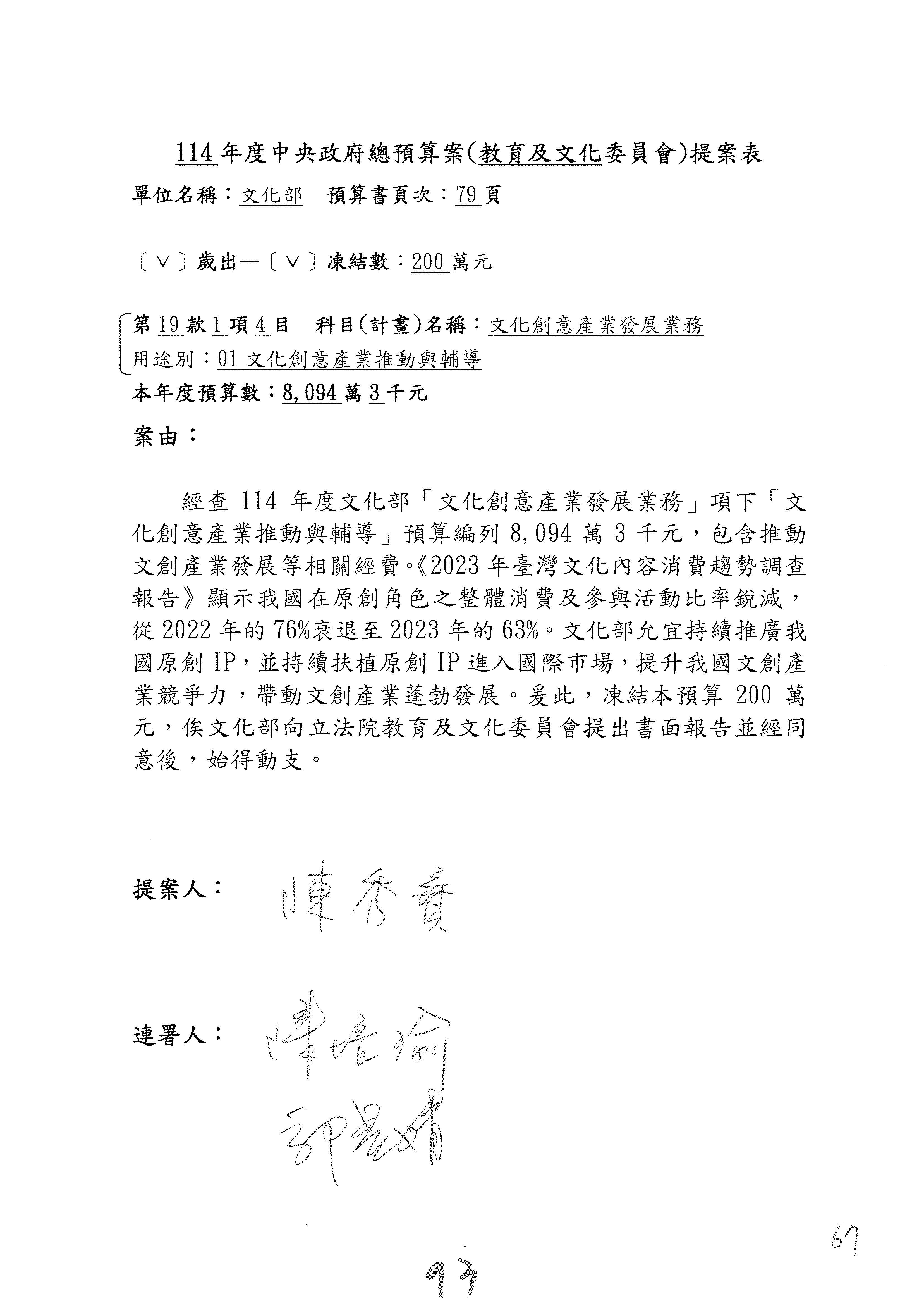 連署人:陳秀寳 張雅琳
