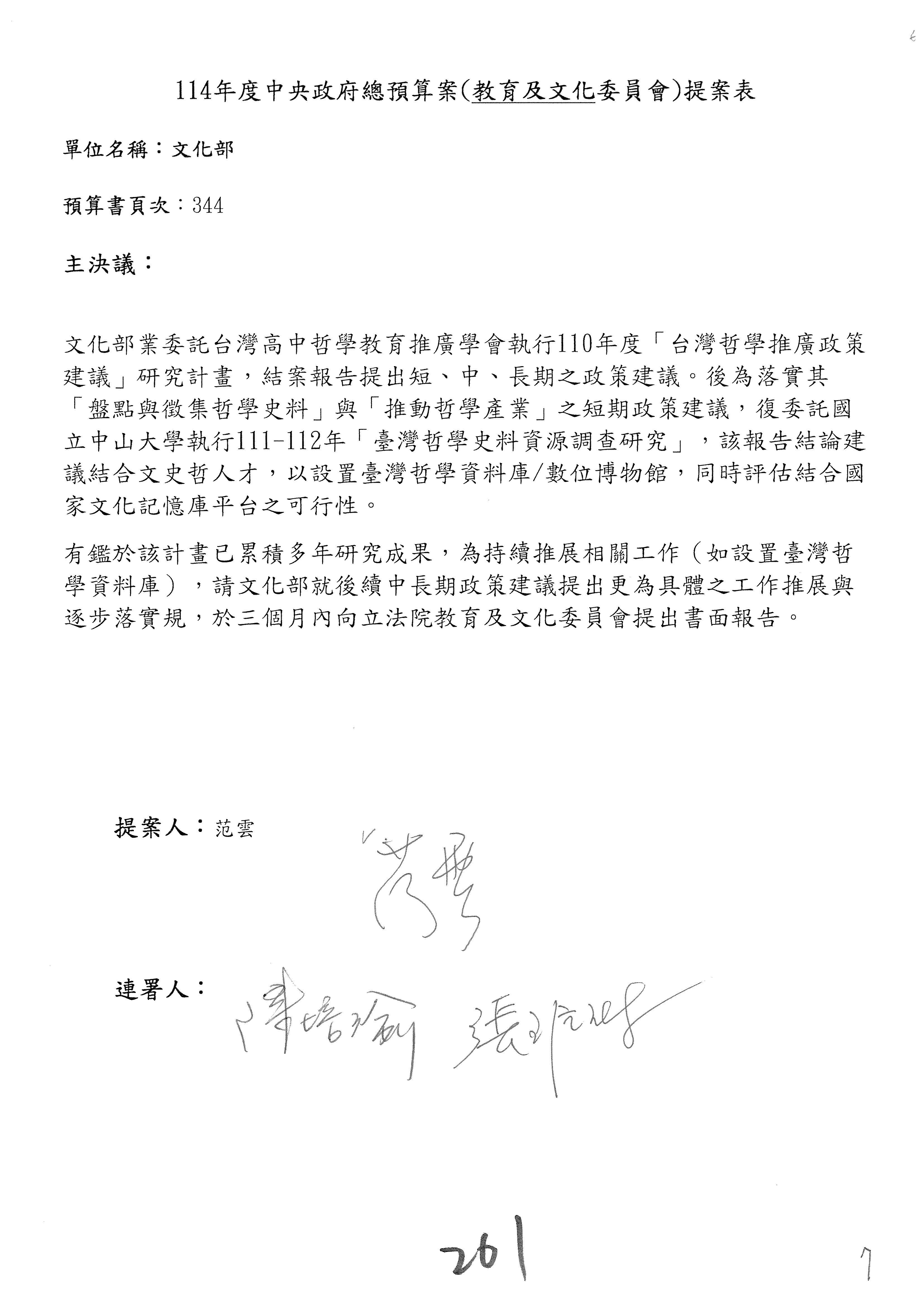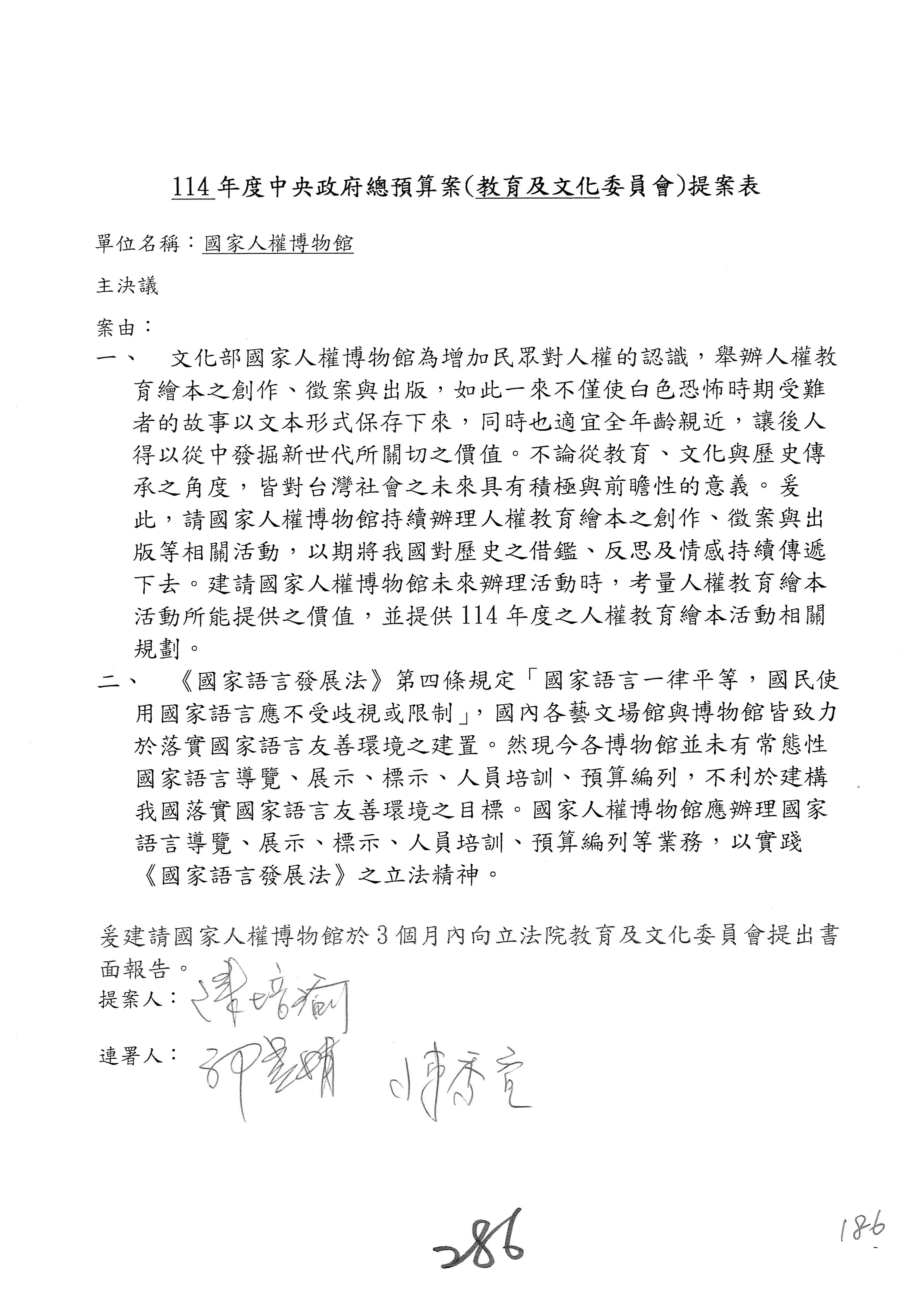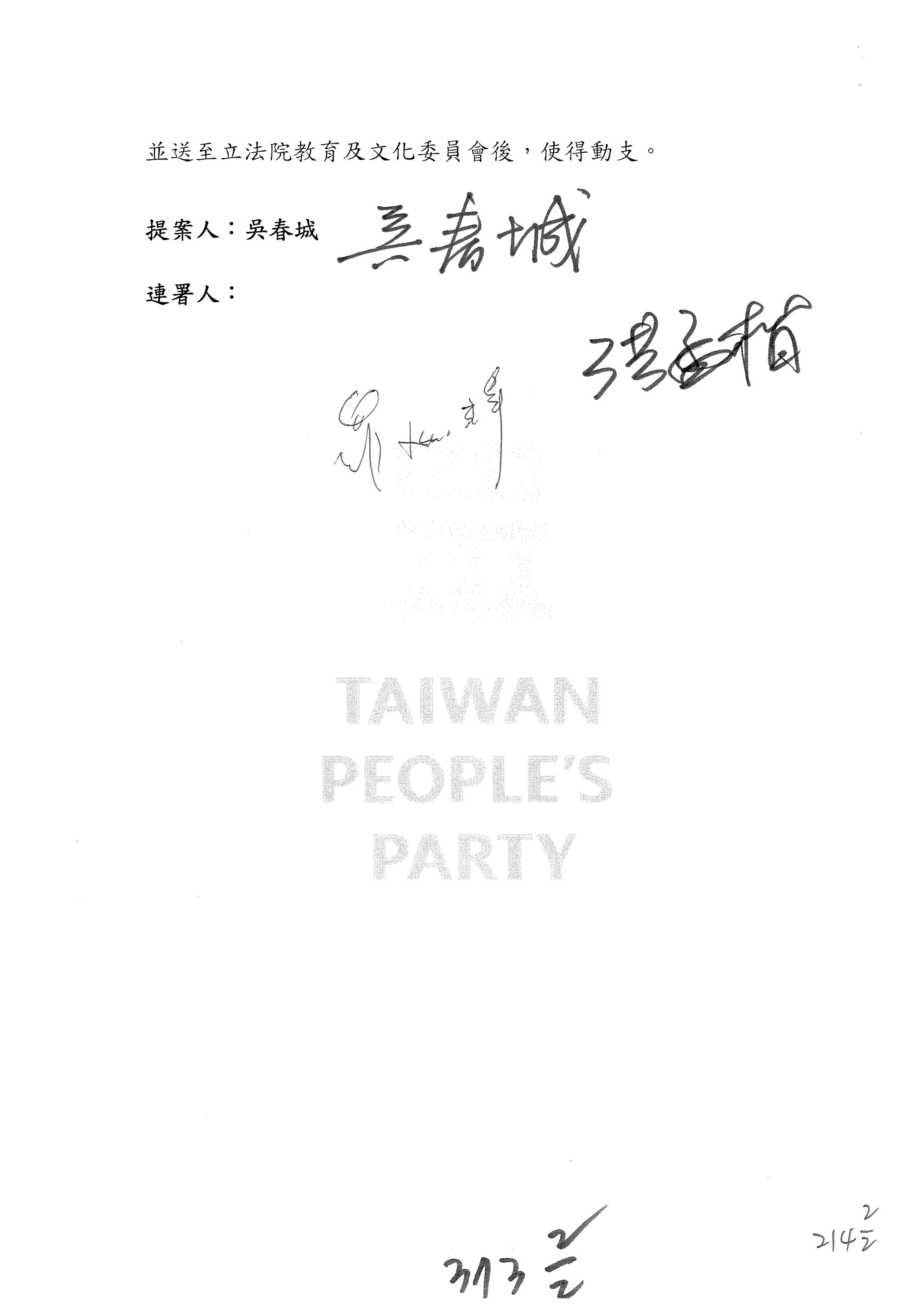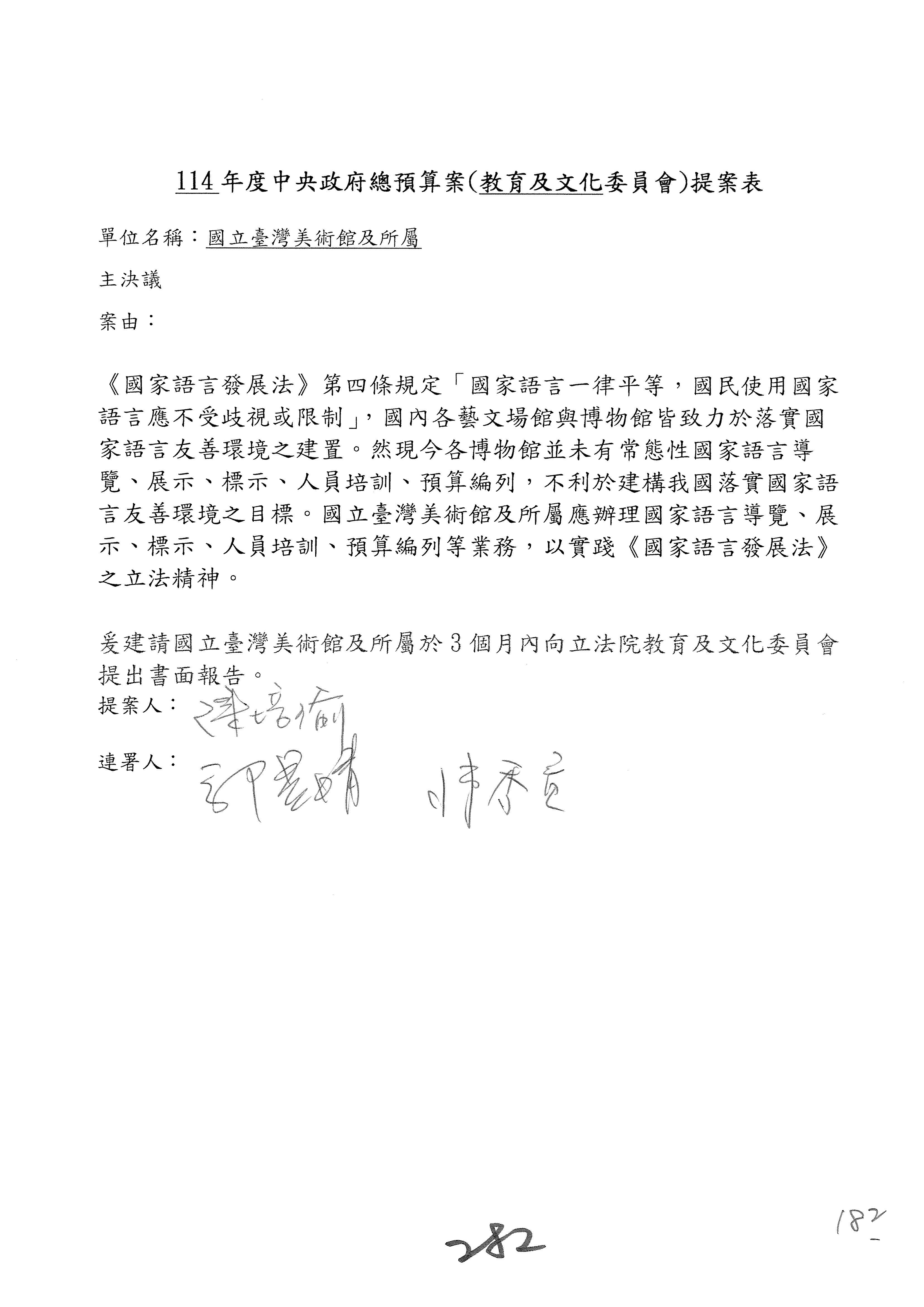 提案人:柯志恩 萬美玲 林倩綺 吳春城 洪孟楷 葛如鈞 羅廷瑋 陳秀寳 葉元之 張雅琳 范 雲 吳沛憶 陳培瑜 林宜瑾