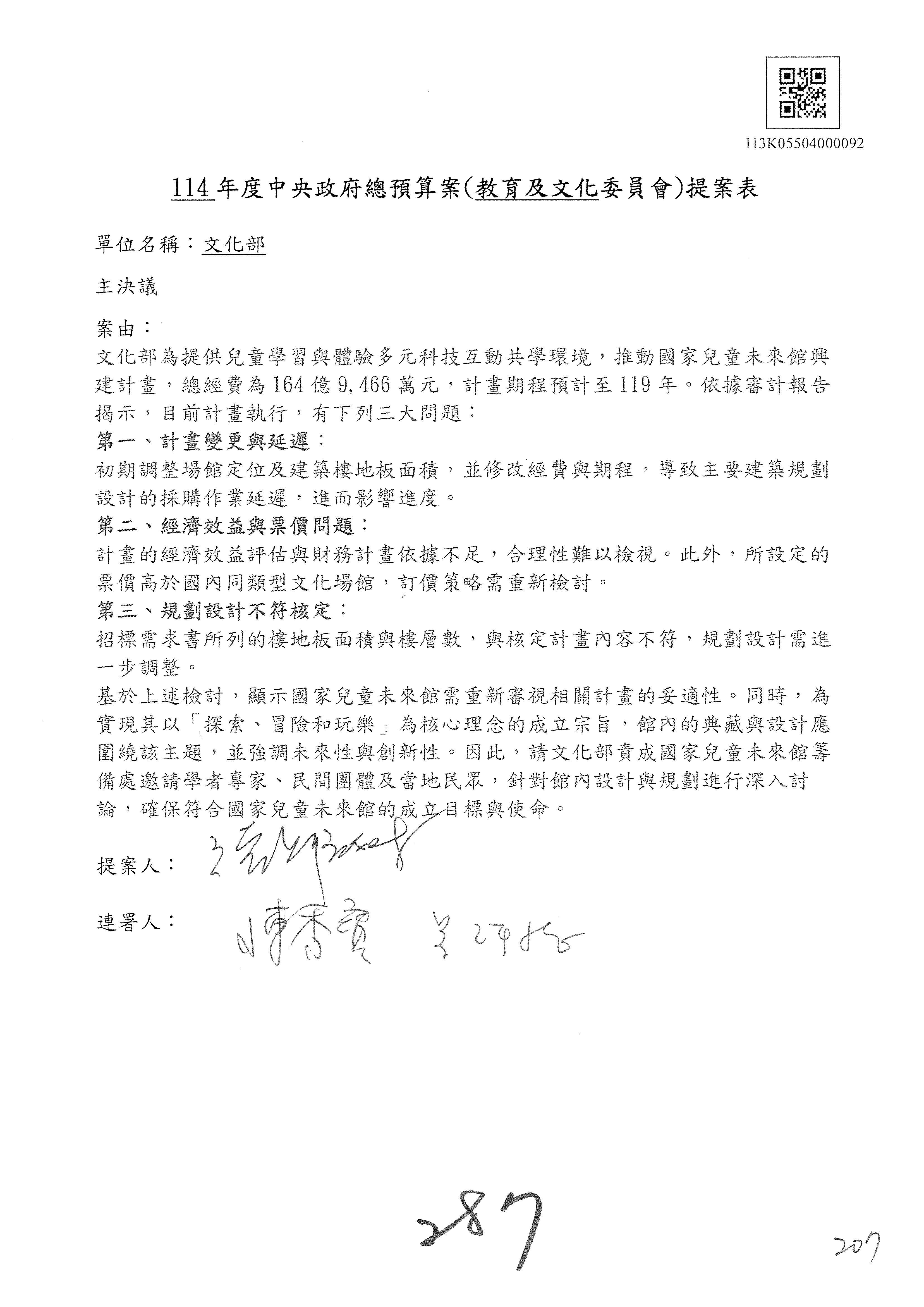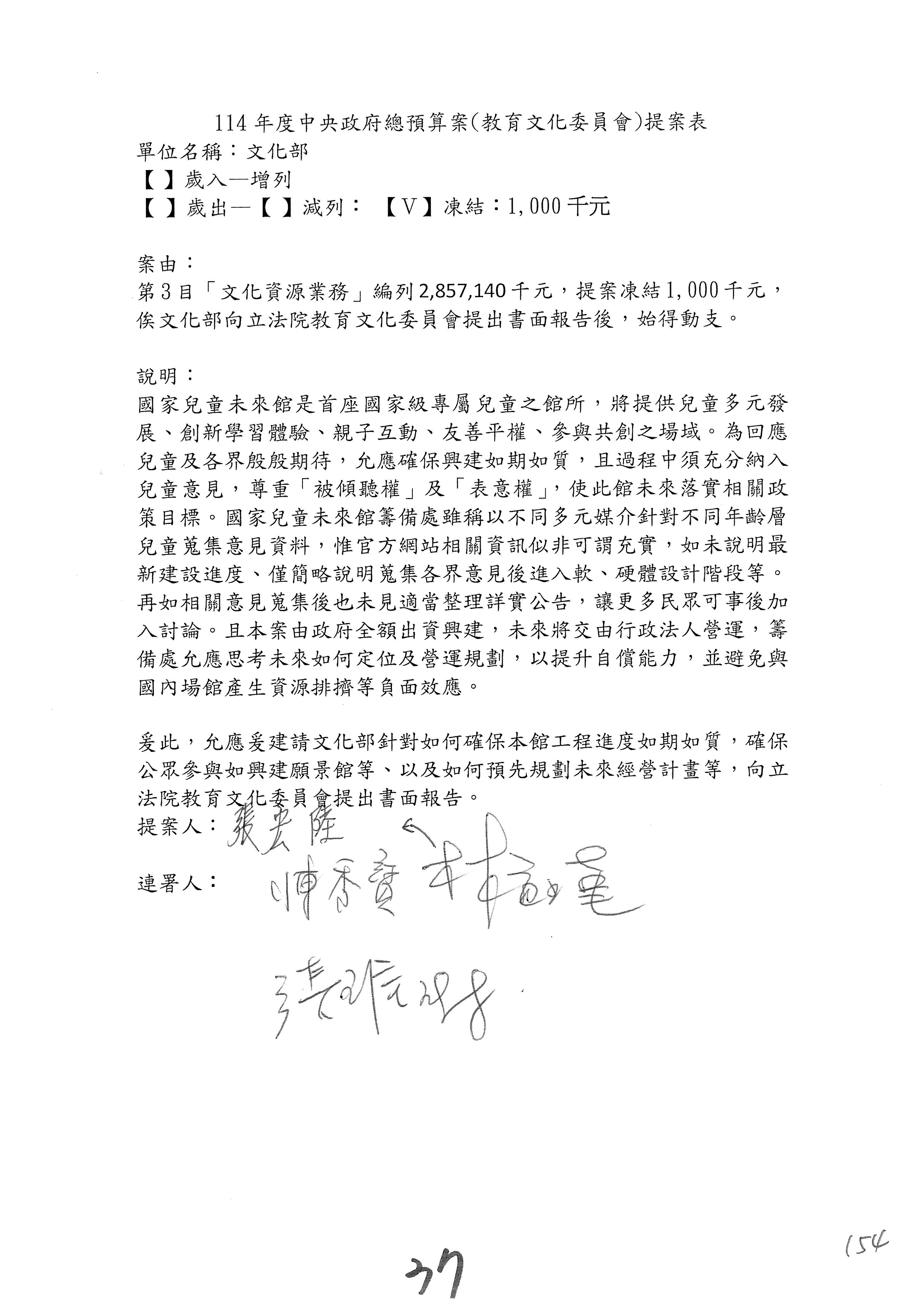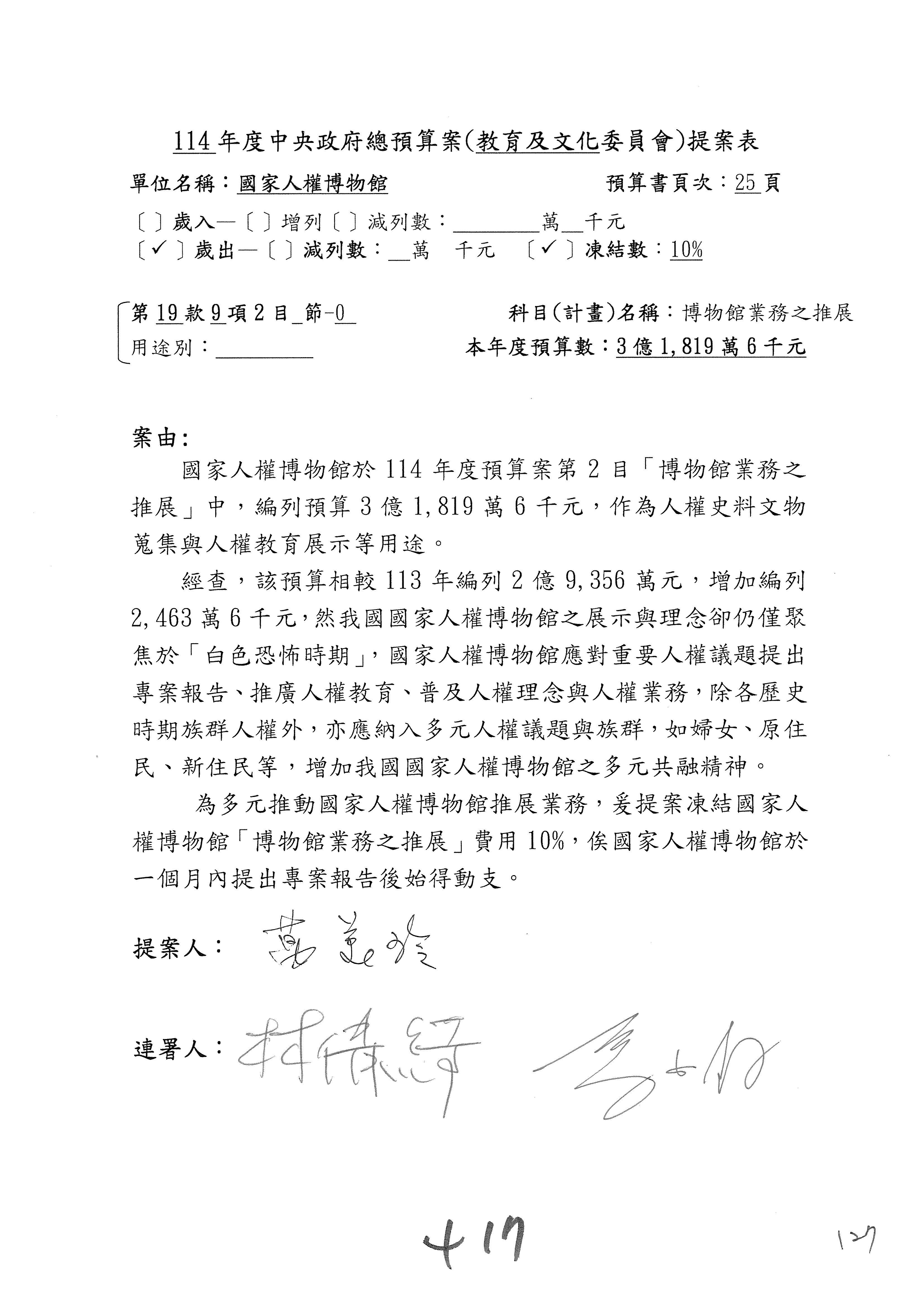 提案人:柯志恩 萬美玲 林倩綺 吳春城 洪孟楷 葛如鈞 羅廷瑋 陳秀寳 葉元之 張雅琳 范 雲 吳沛憶 陳培瑜 林宜瑾