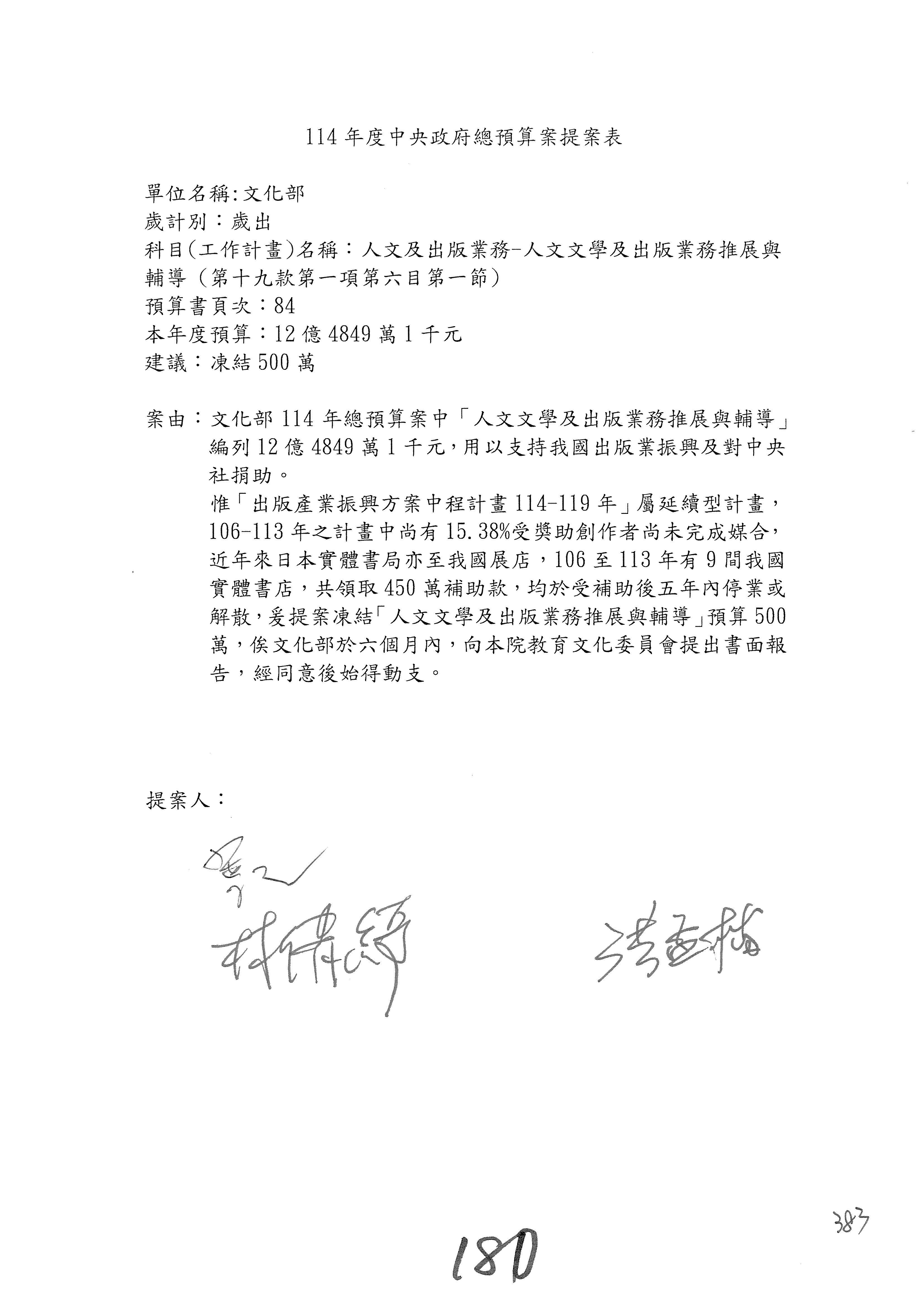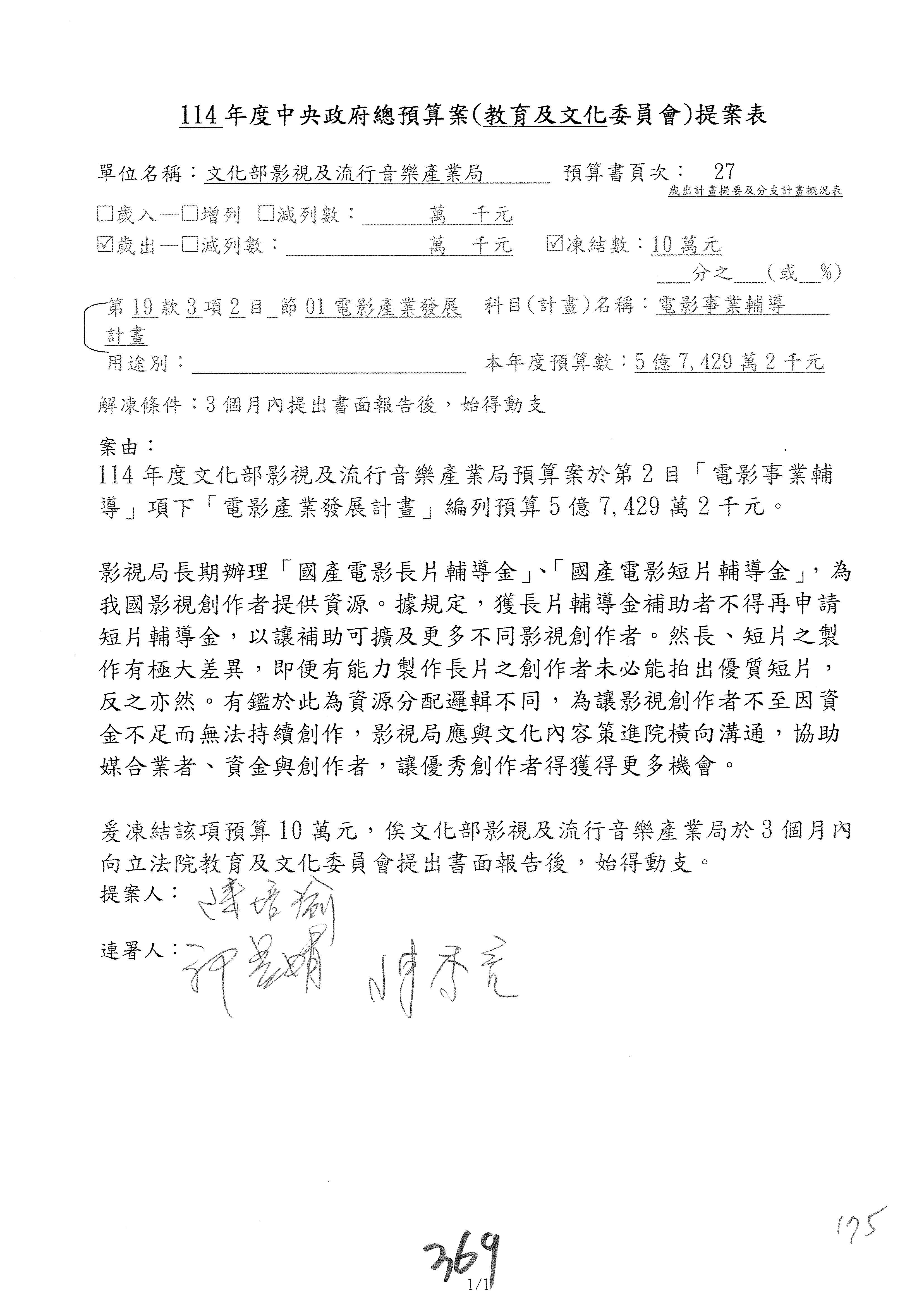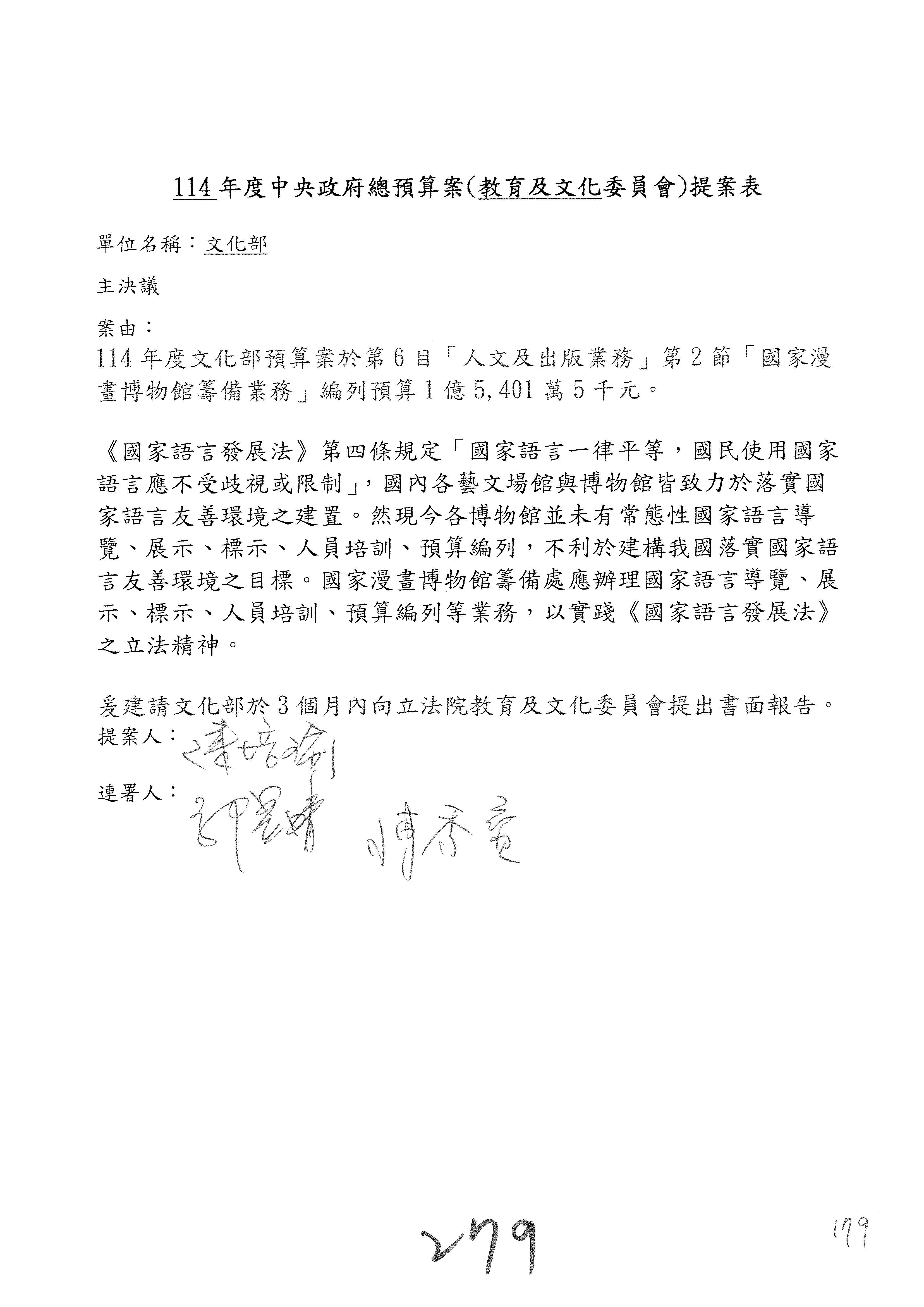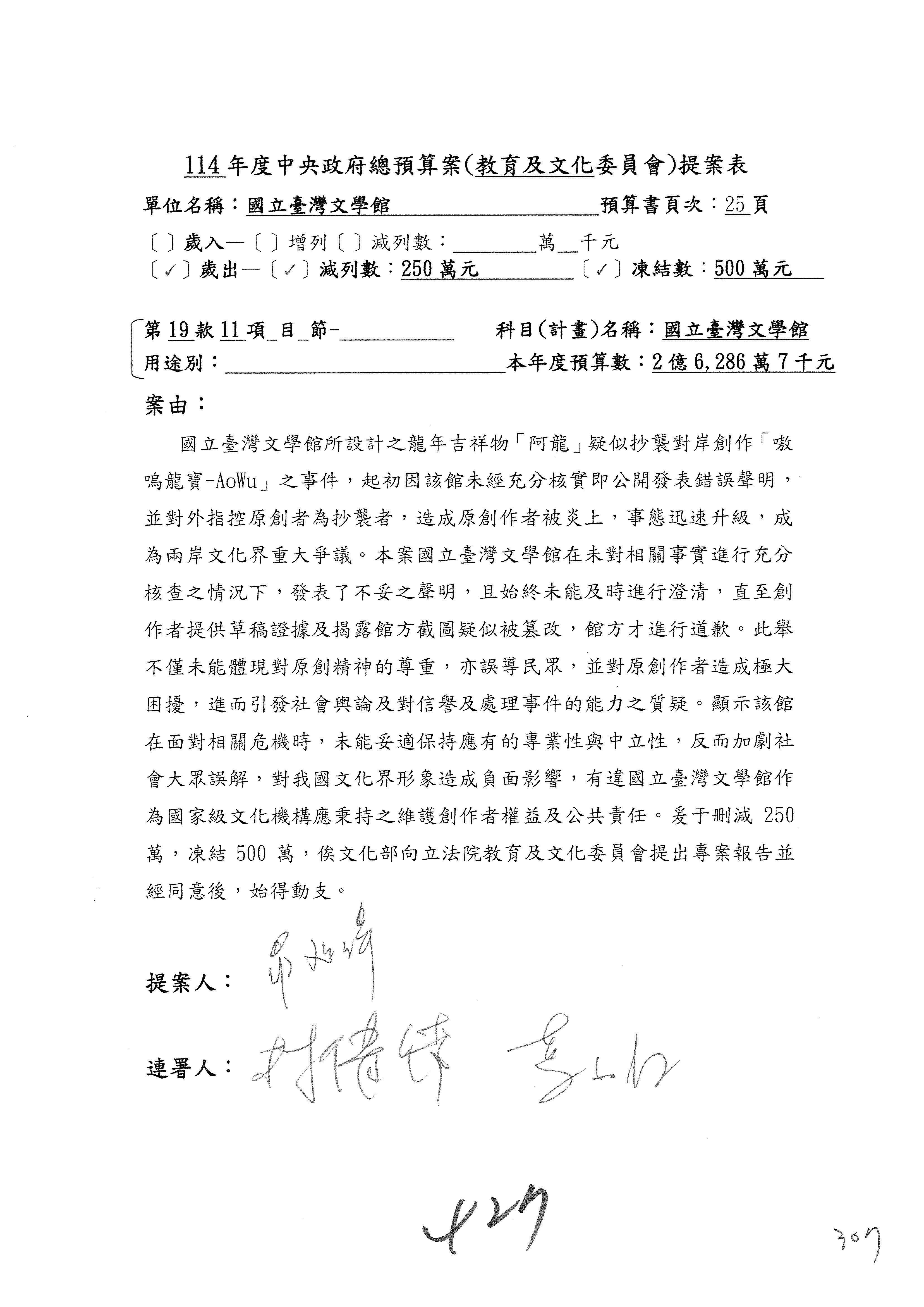 提案人:柯志恩 萬美玲 林倩綺 吳春城 洪孟楷 葛如鈞 羅廷瑋 陳秀寳 葉元之 張雅琳 范 雲 吳沛憶 陳培瑜 林宜瑾