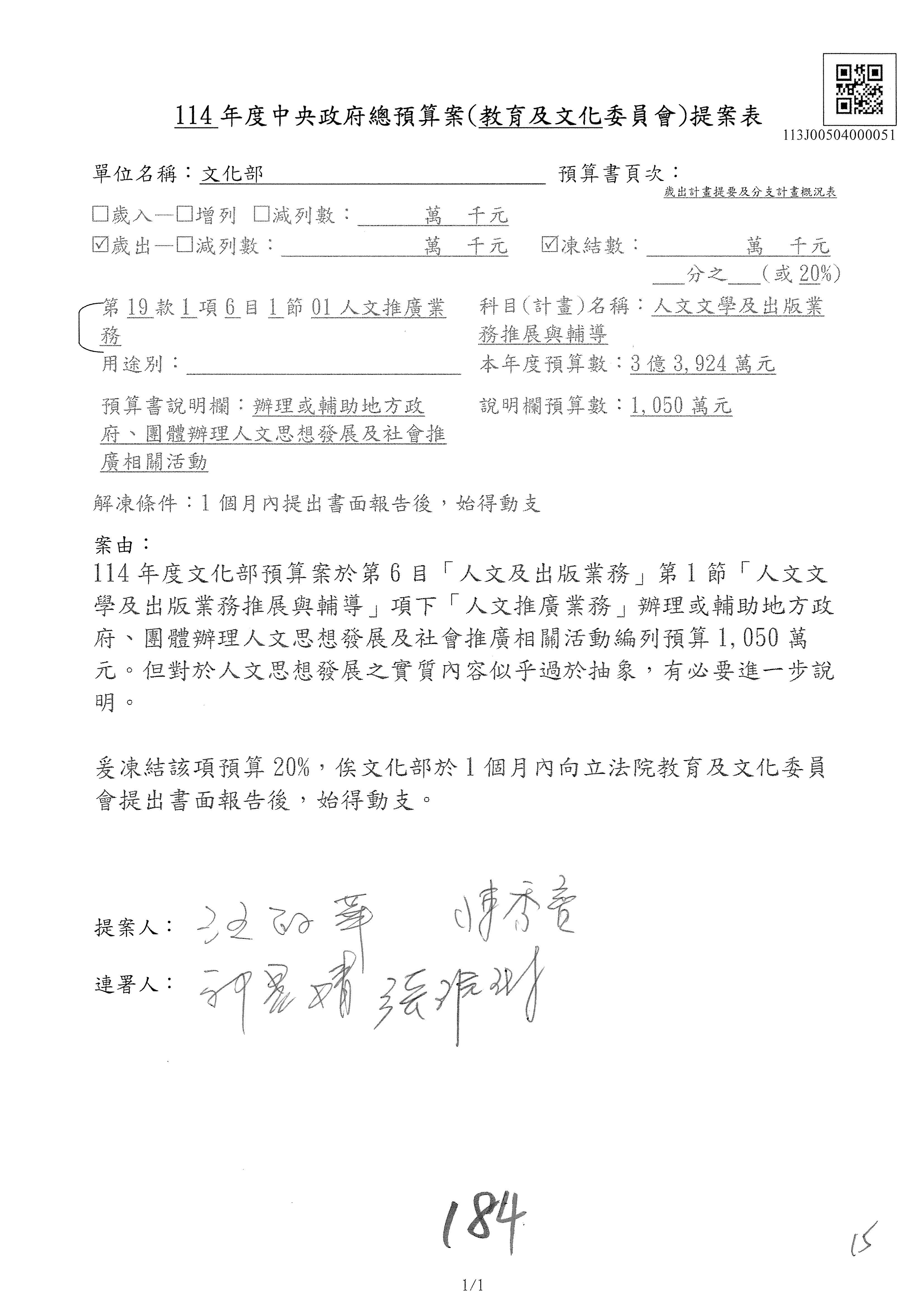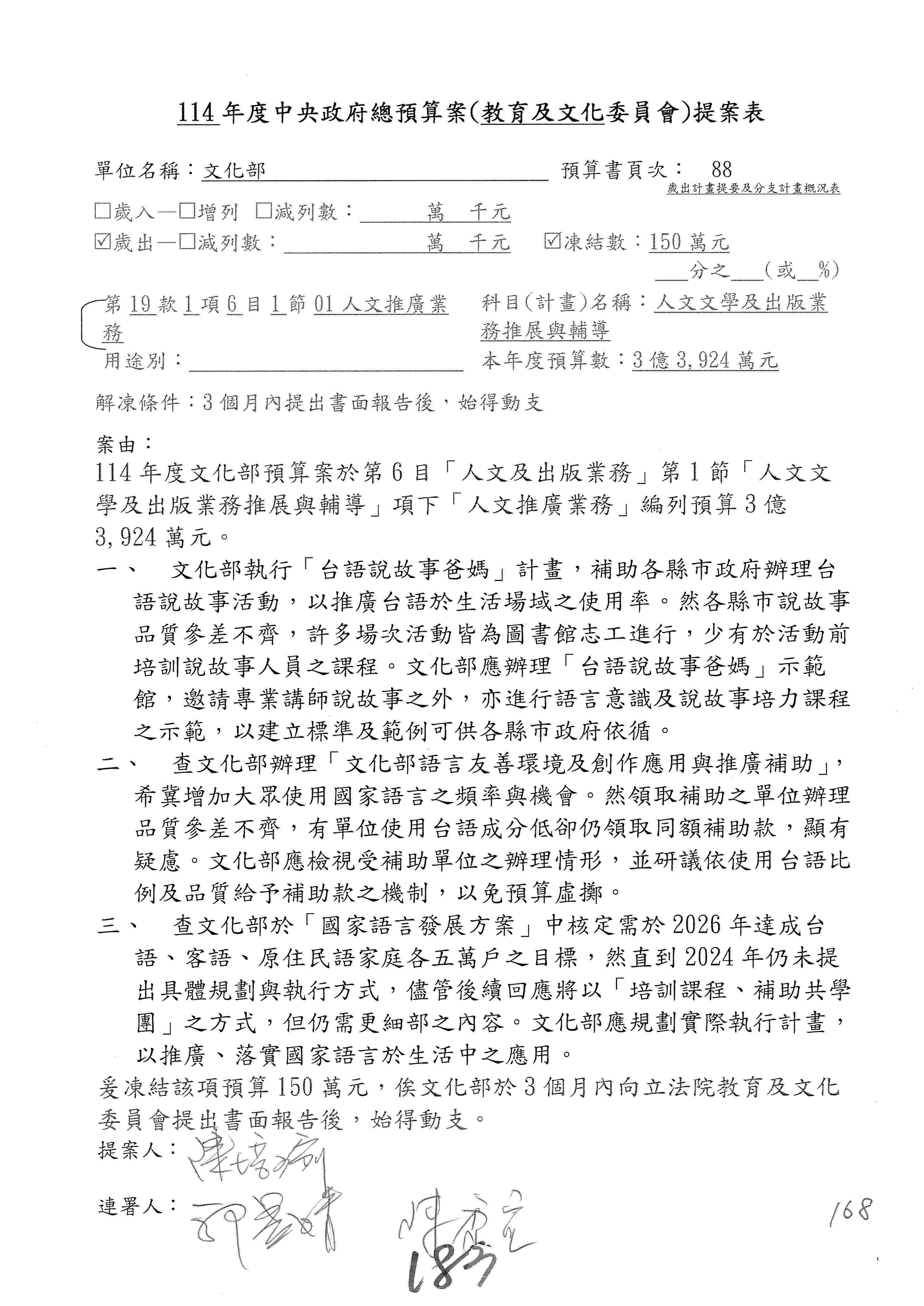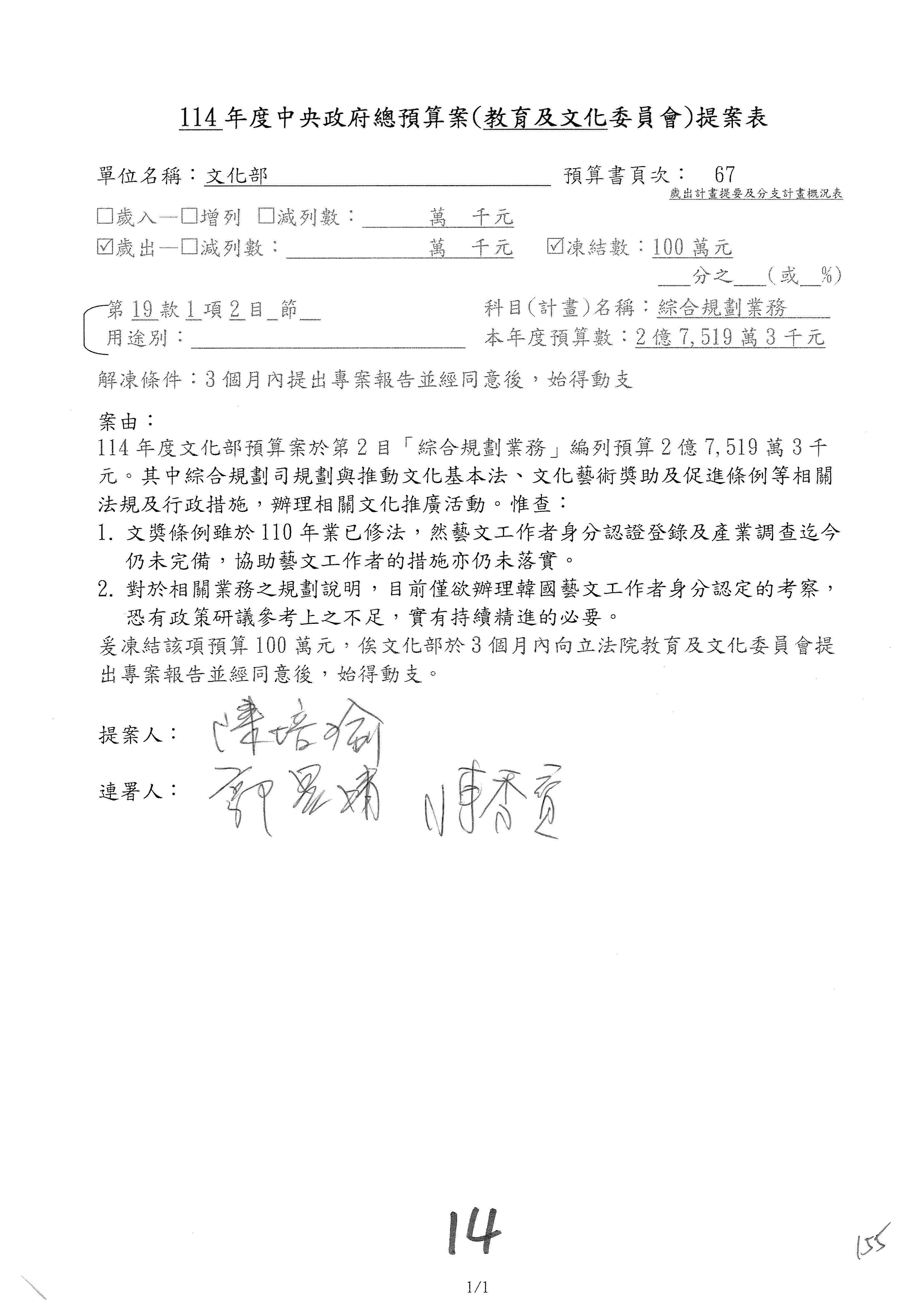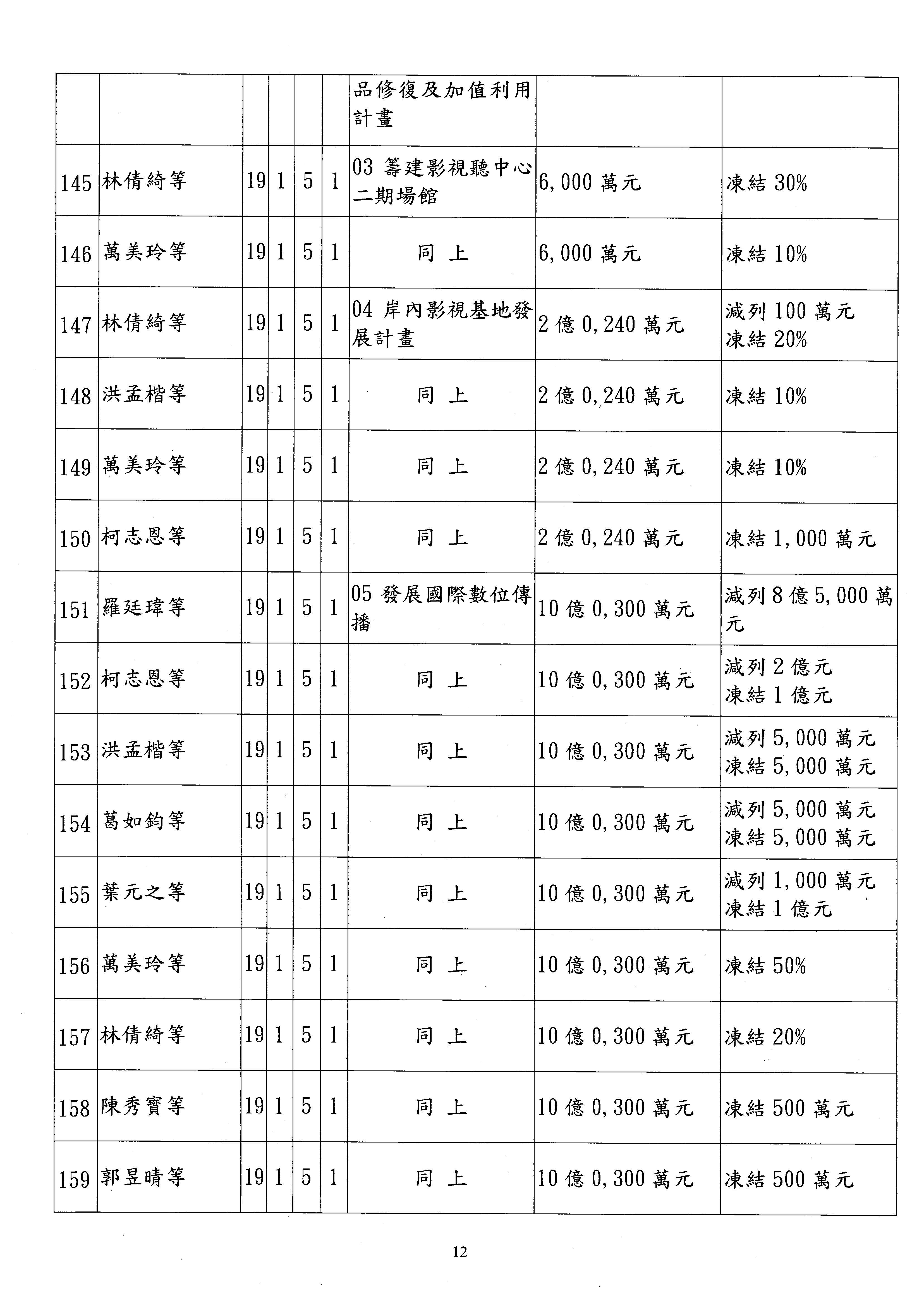 (一)114年度核能安全委員會及所屬預算編列38億3,878萬9千元,凍結150萬元,俟核能安全委員會向立法院教育及文化委員會提出書面報告後,始得動支。2-5
