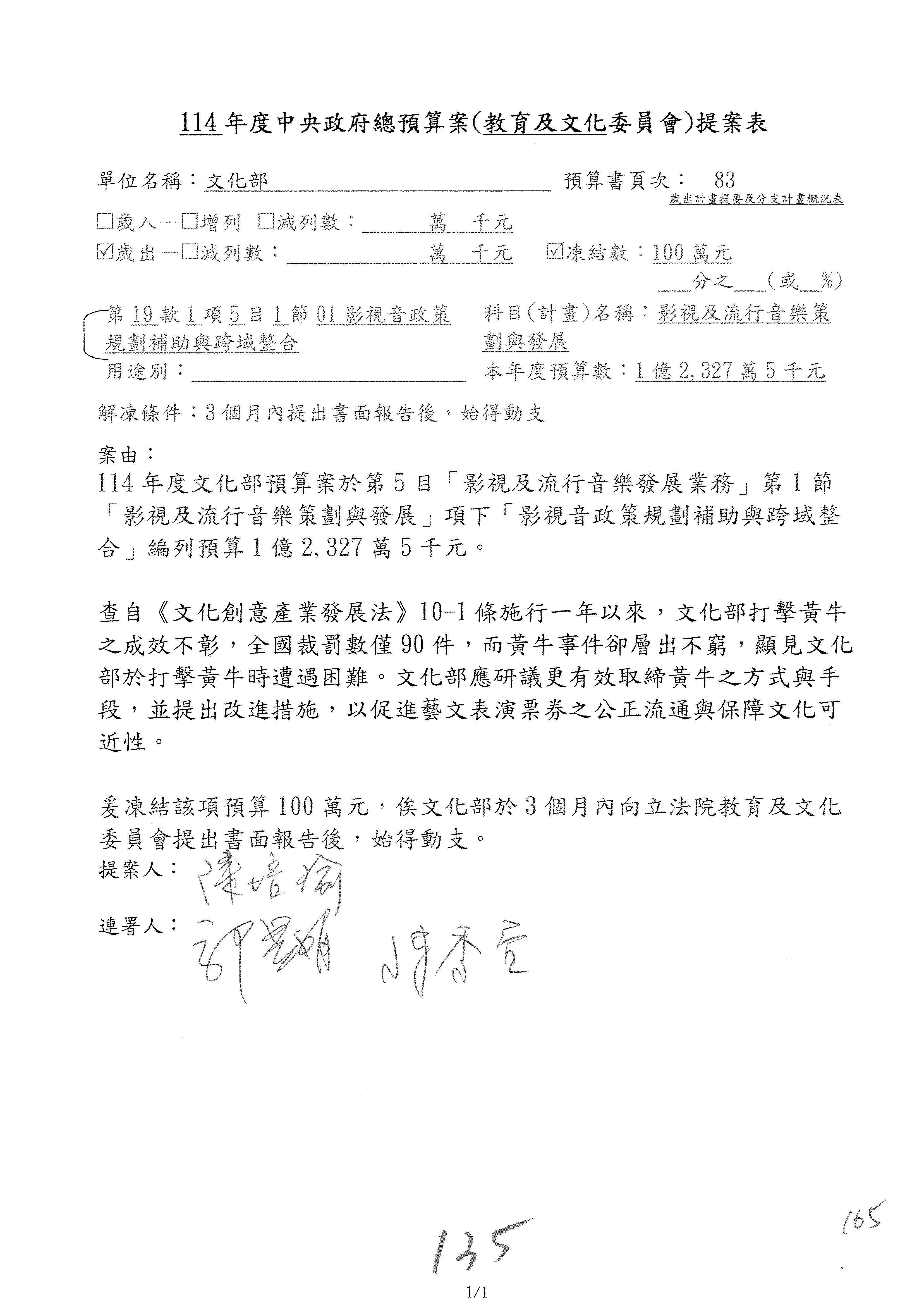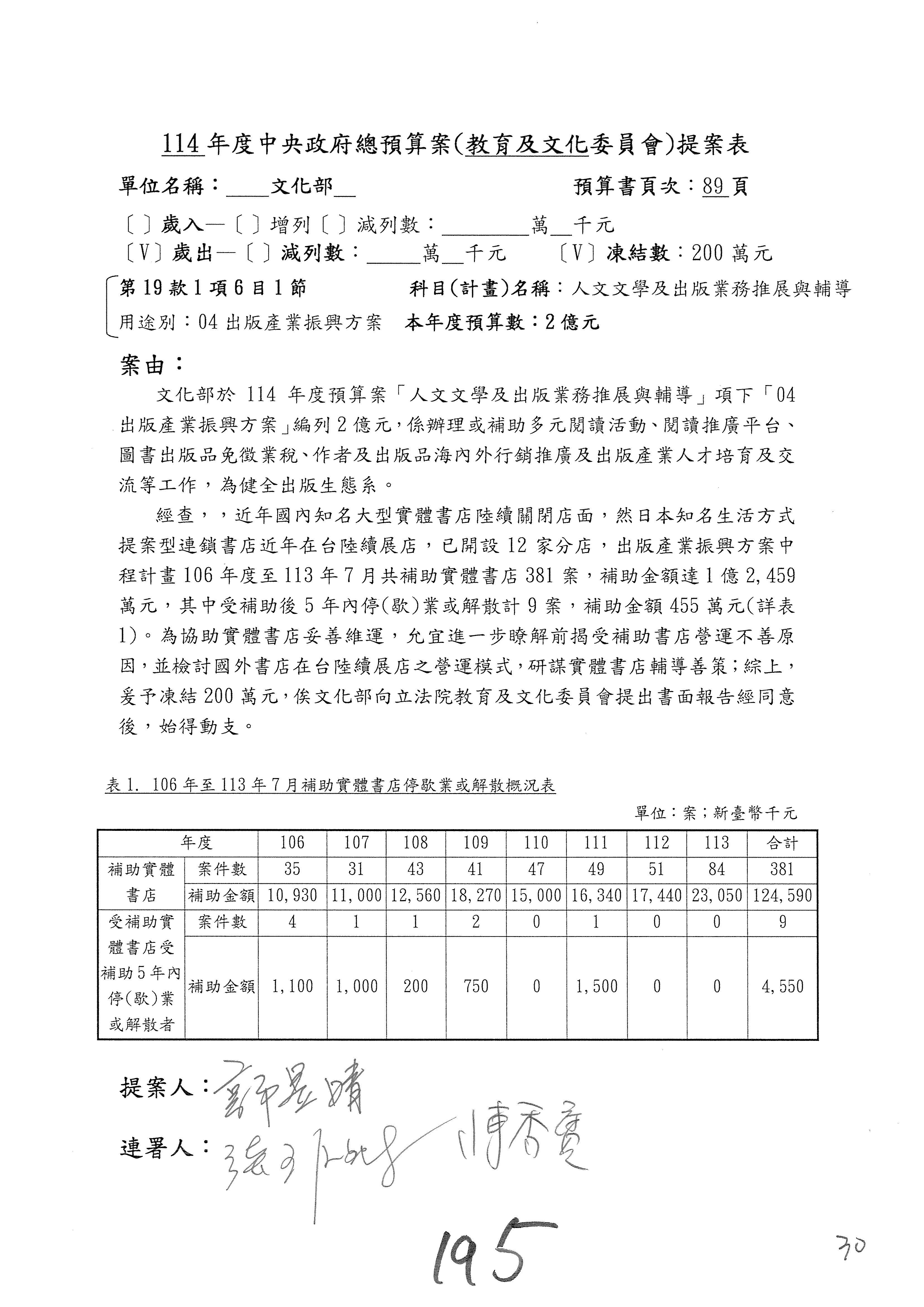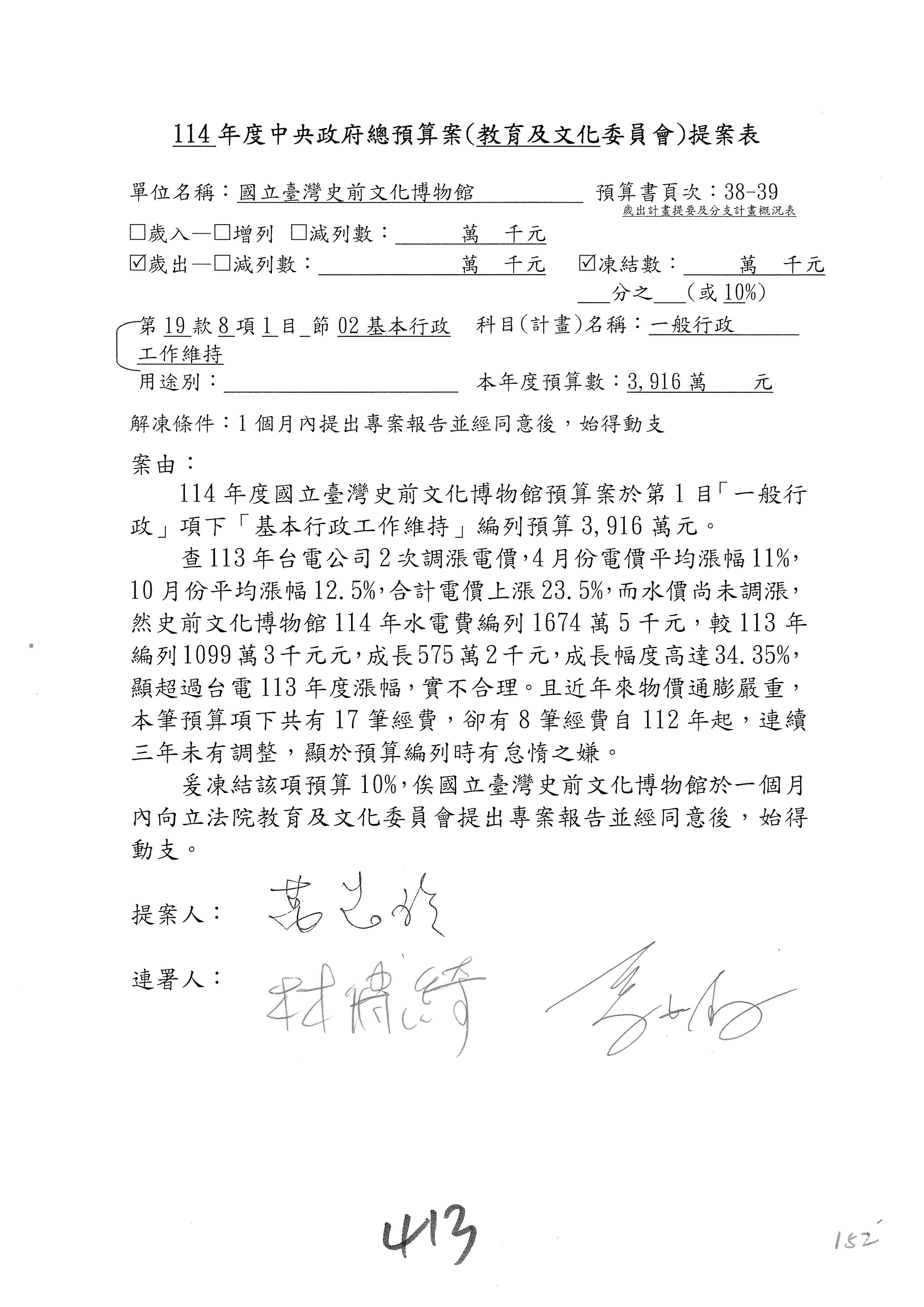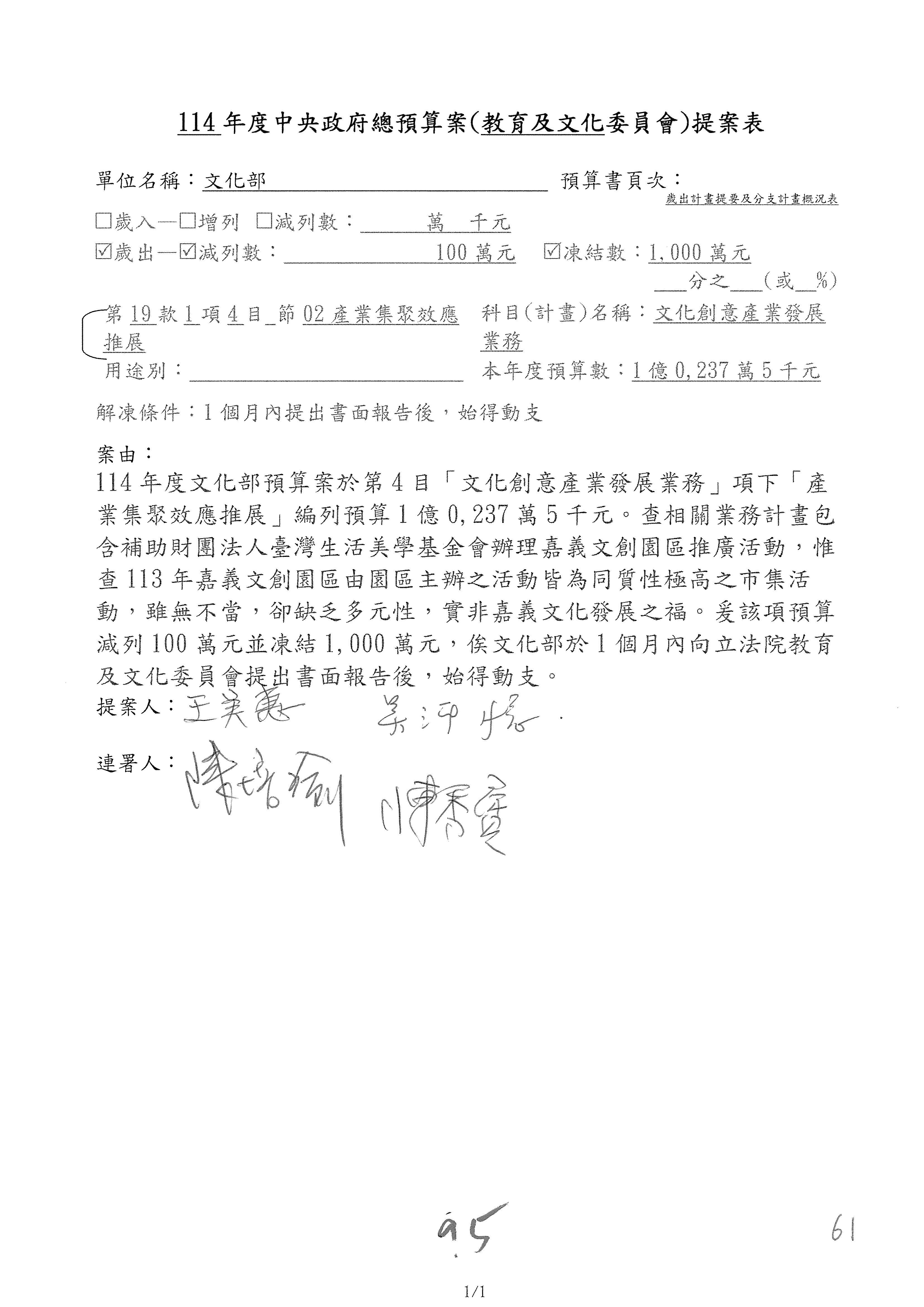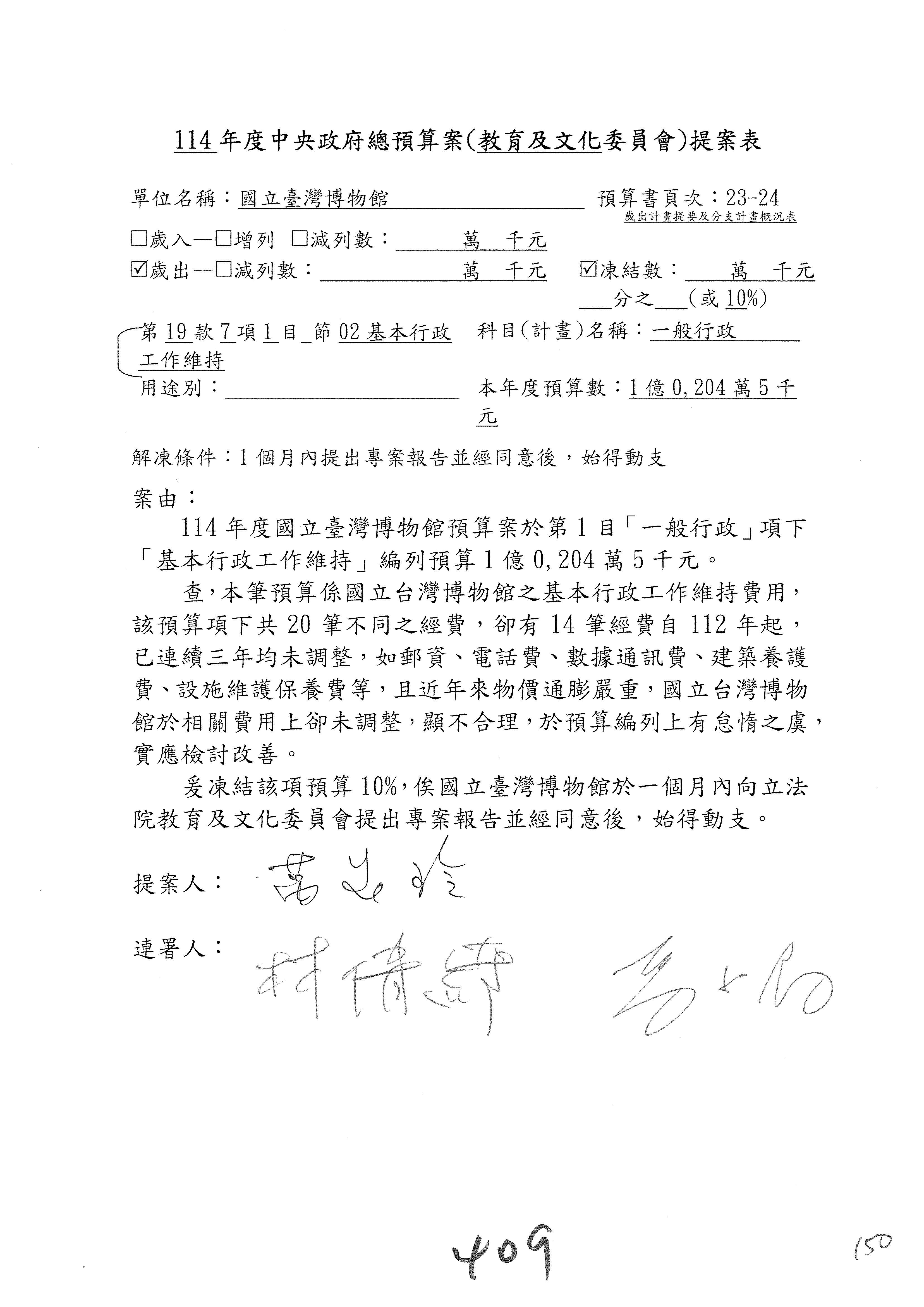 (一)114年度核能安全委員會及所屬預算編列38億3,878萬9千元,凍結150萬元,俟核能安全委員會向立法院教育及文化委員會提出書面報告後,始得動支。2-5