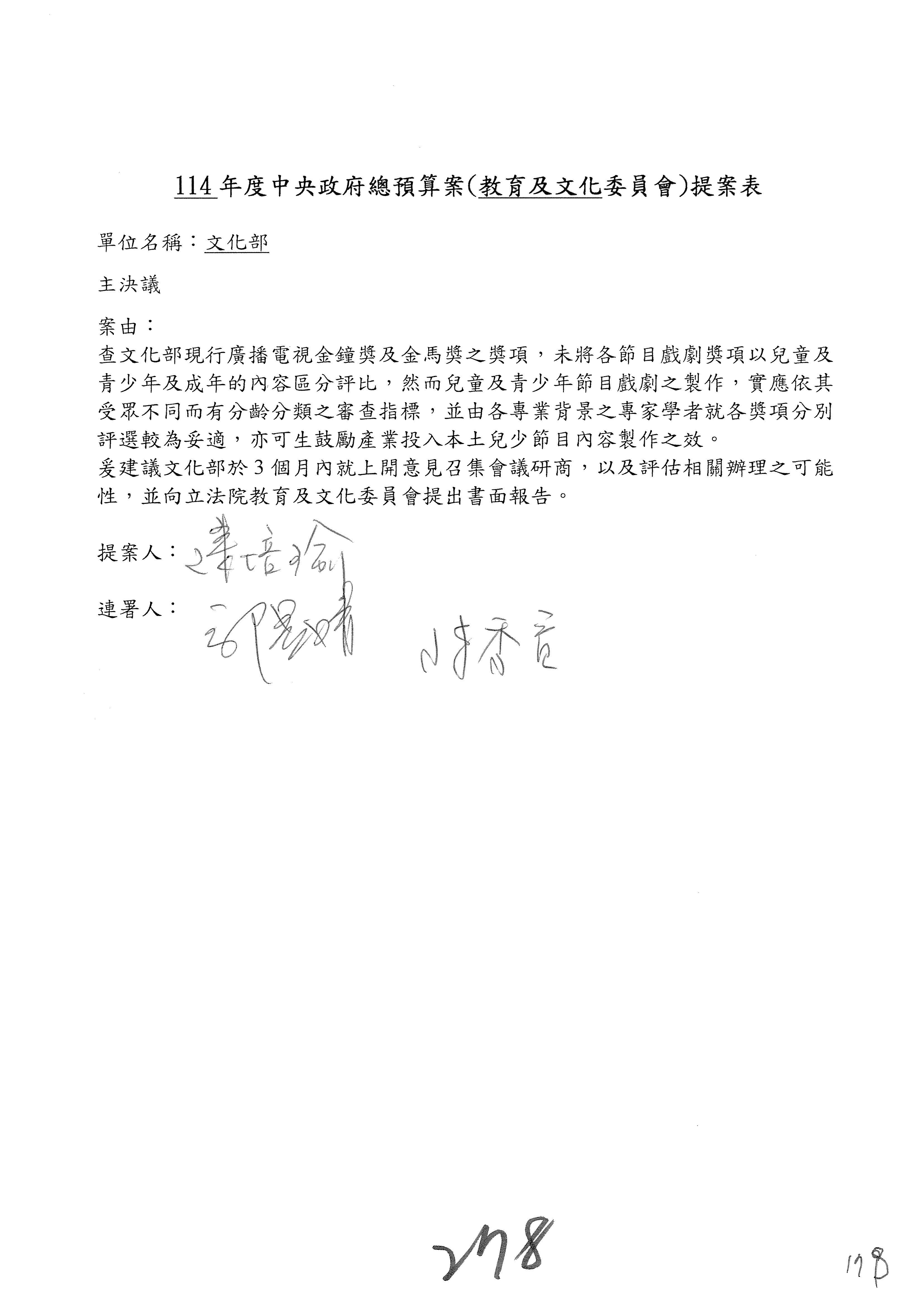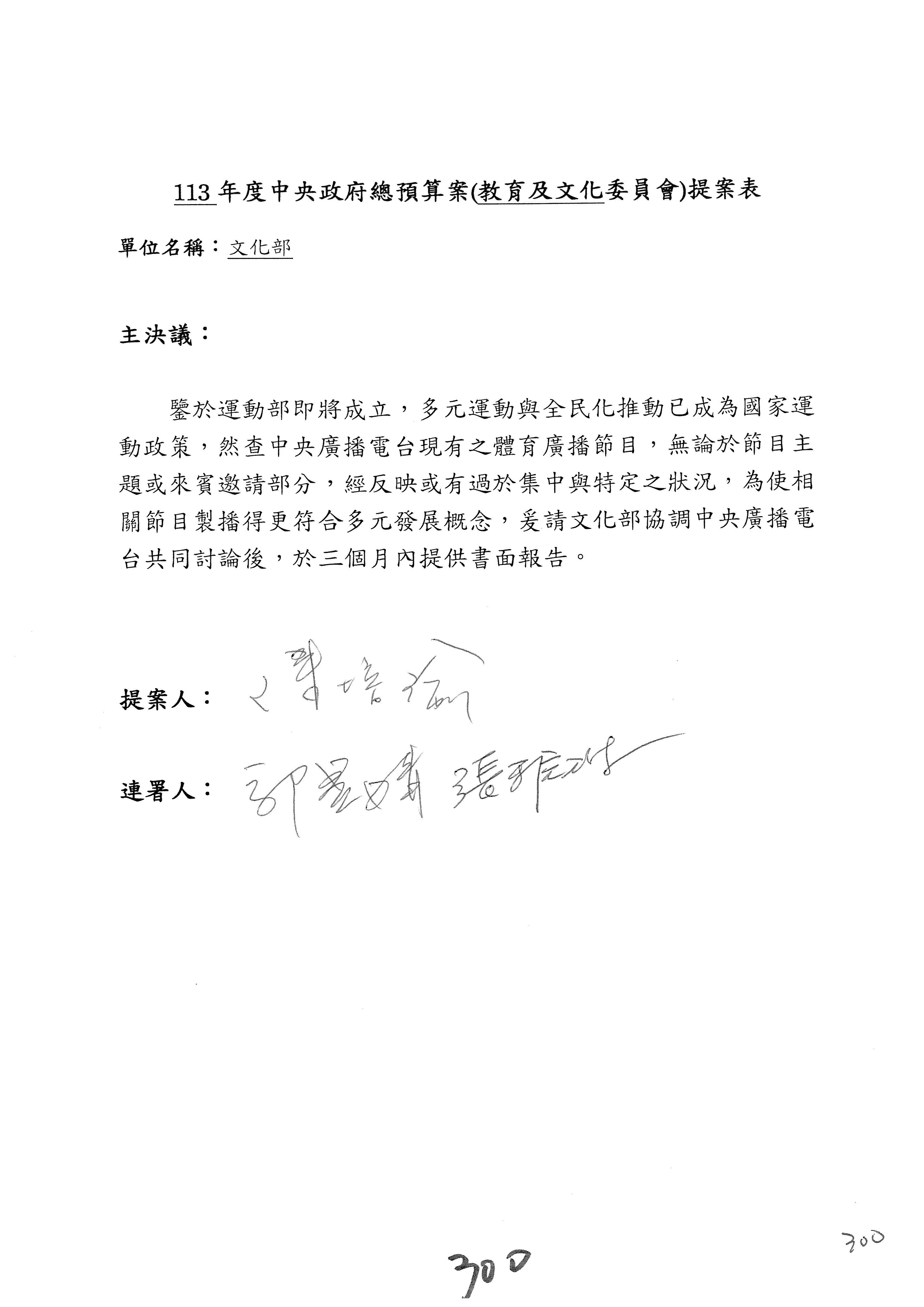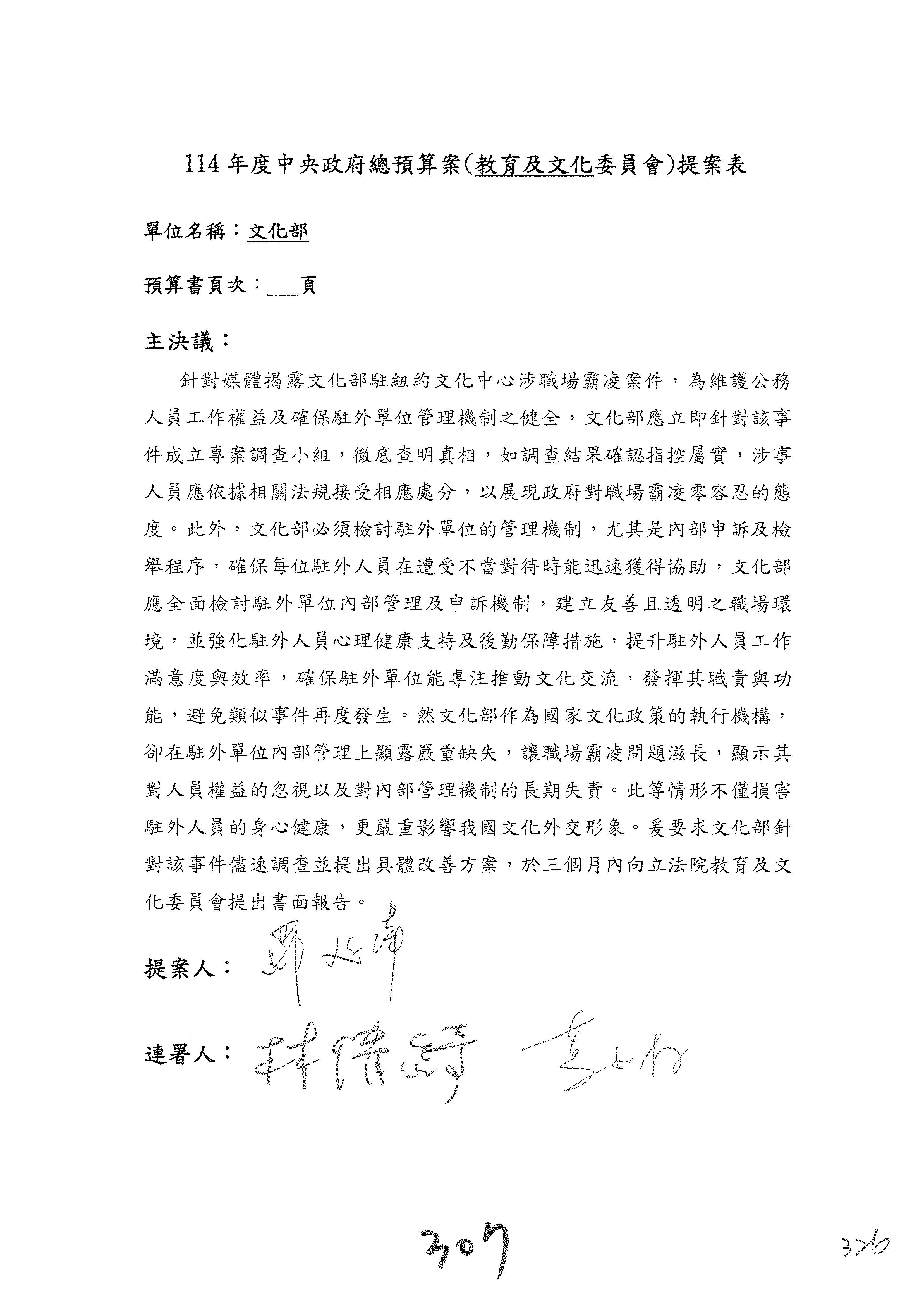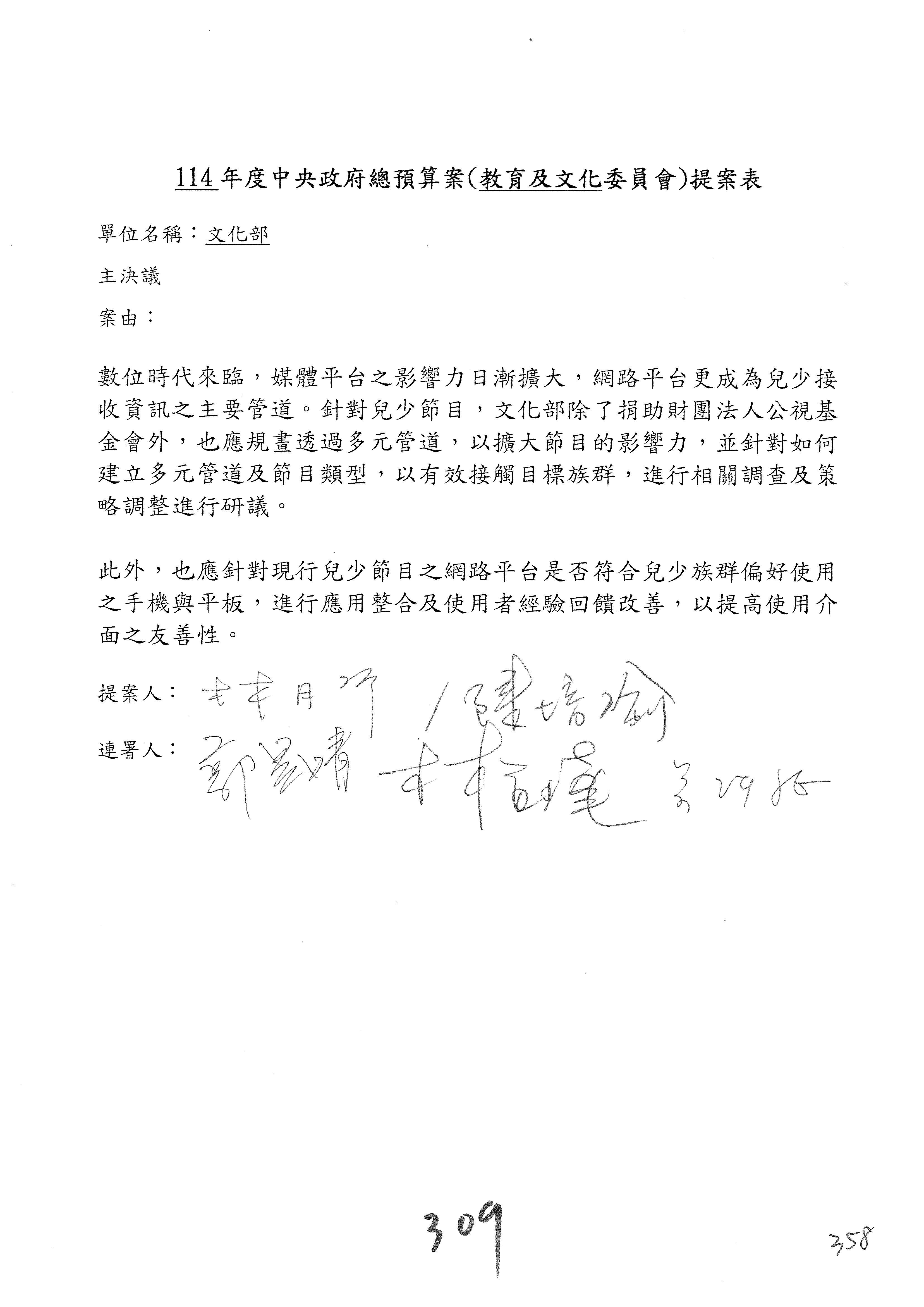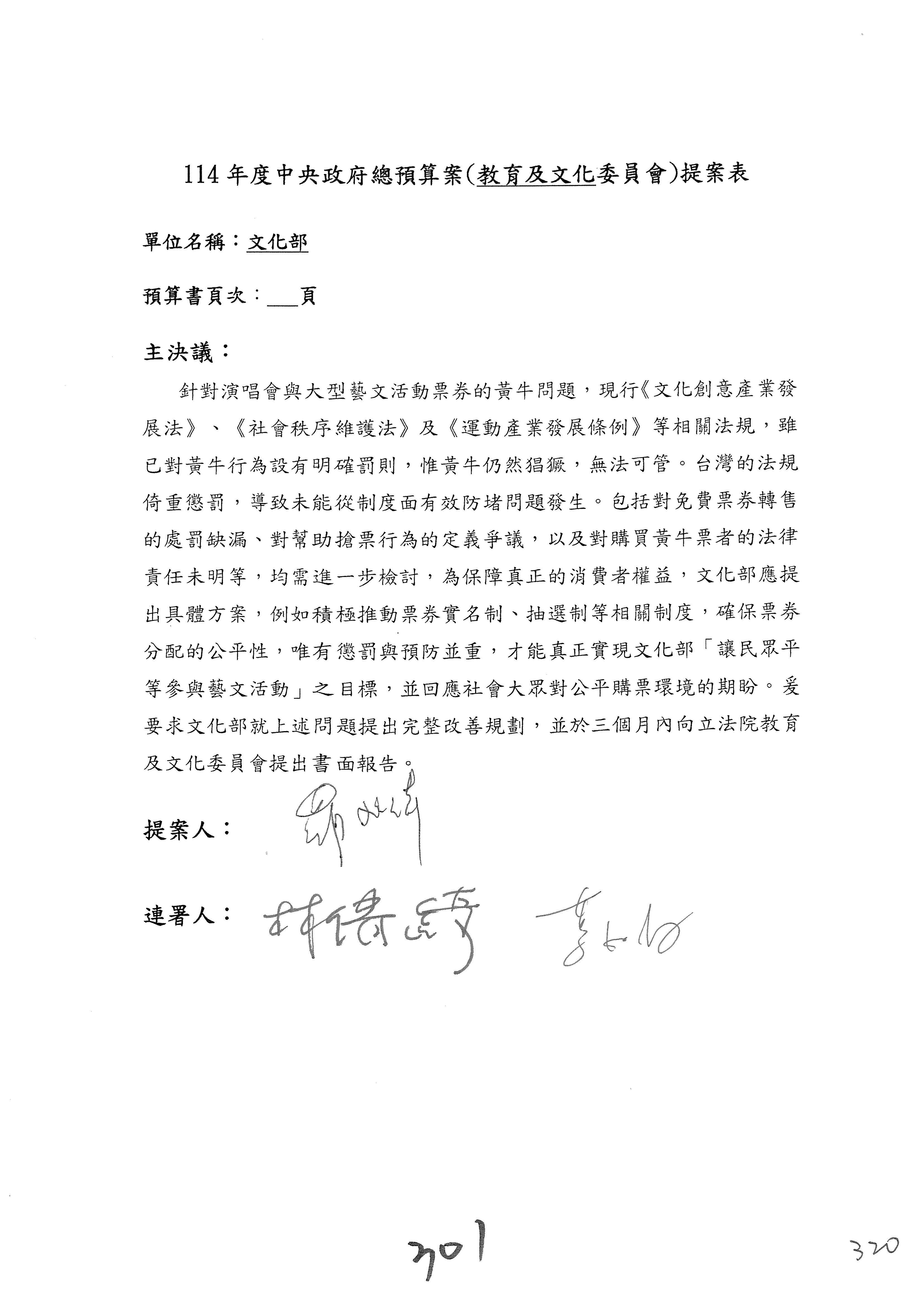 提案人:吳沛憶 羅廷瑋 柯志恩 萬美玲 陳秀寳 葉元之 林倩綺 洪孟楷 徐巧芯