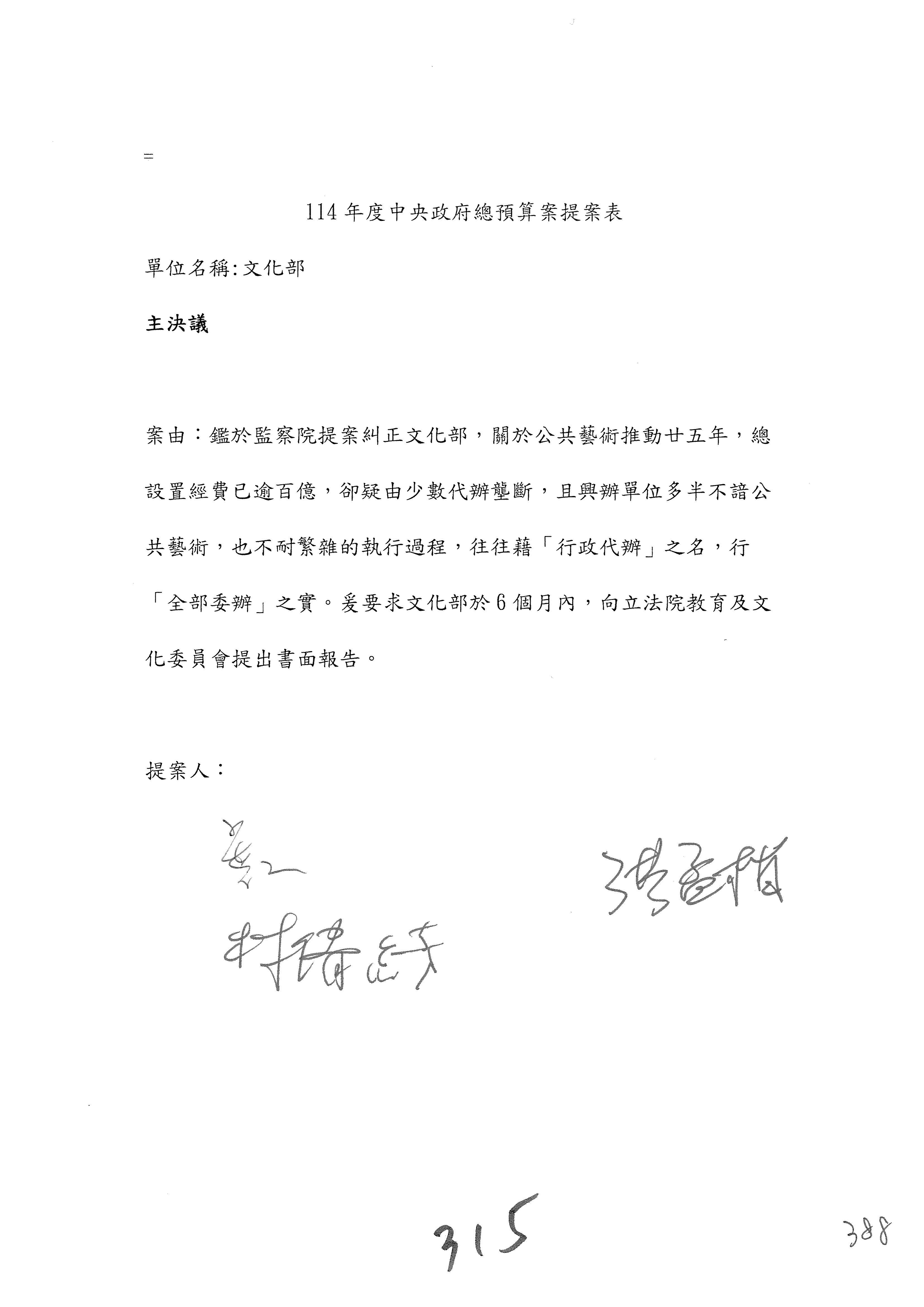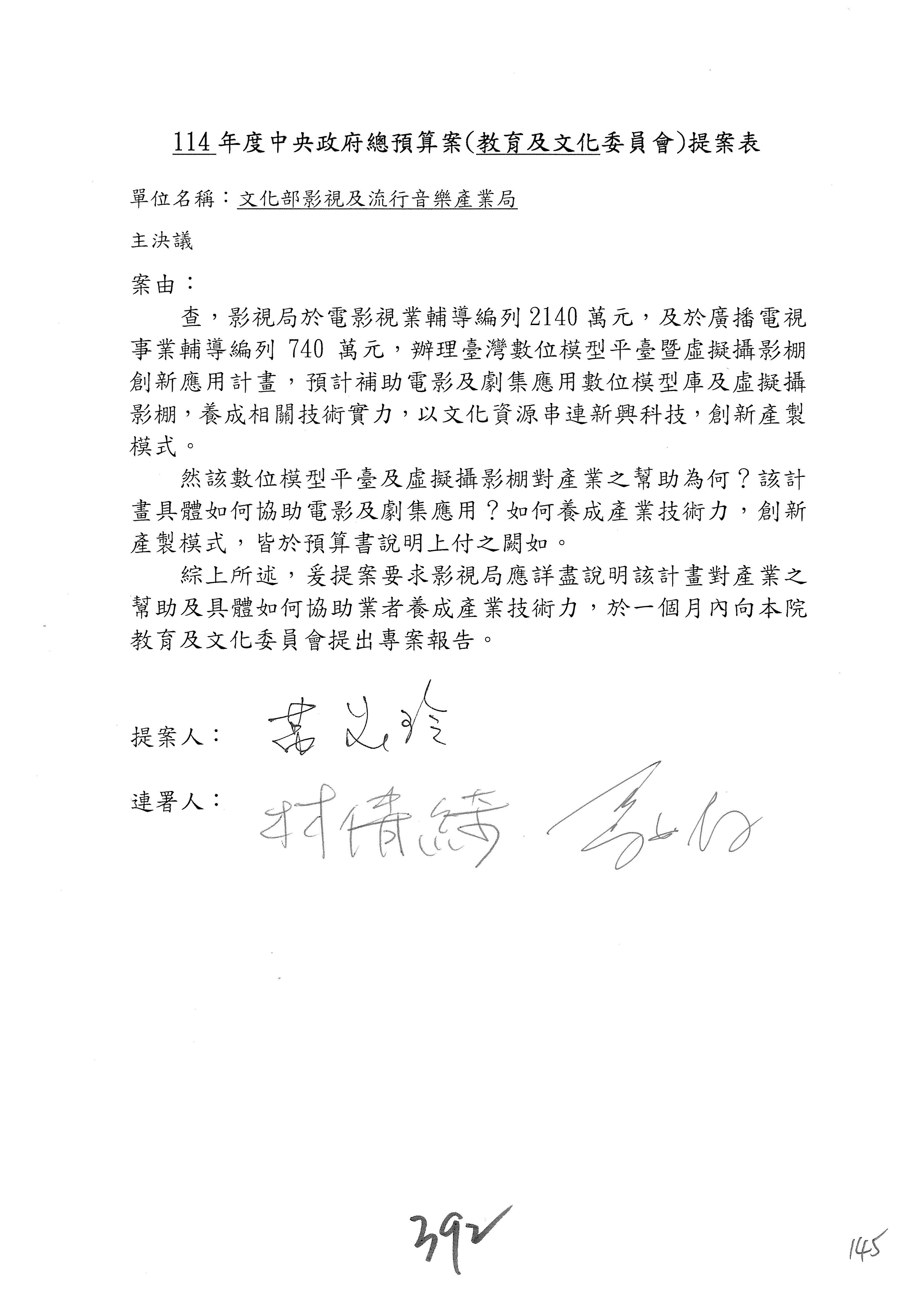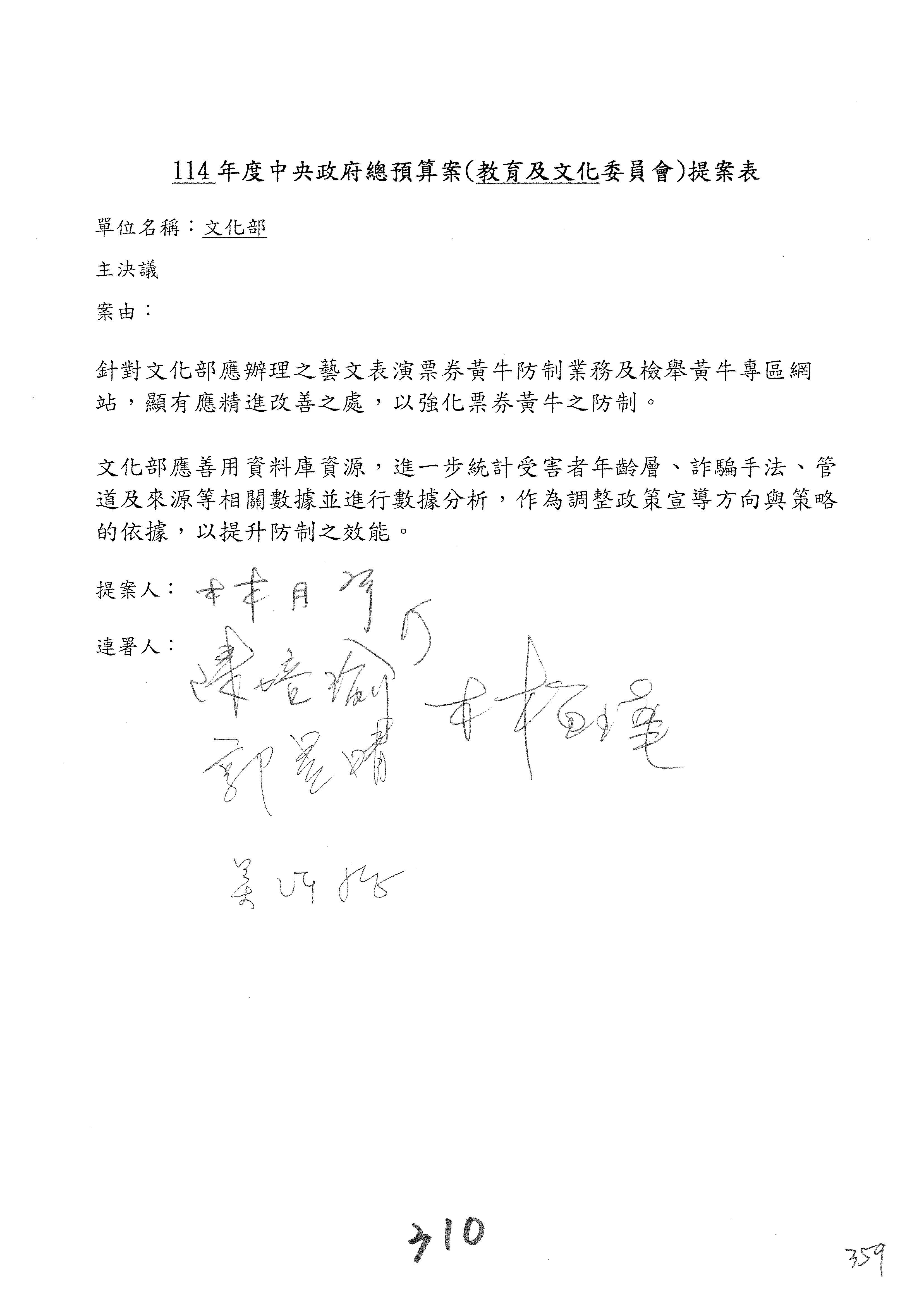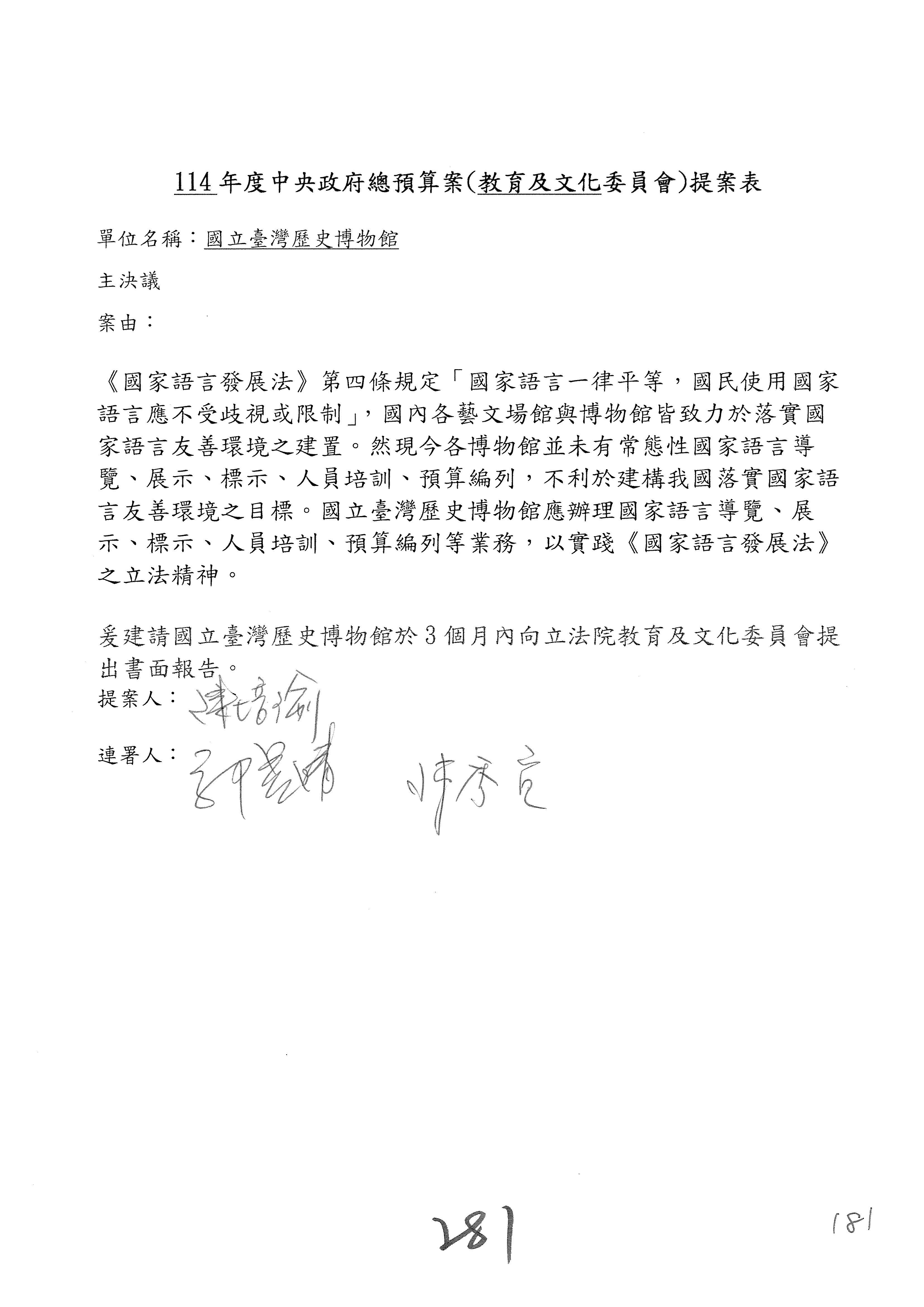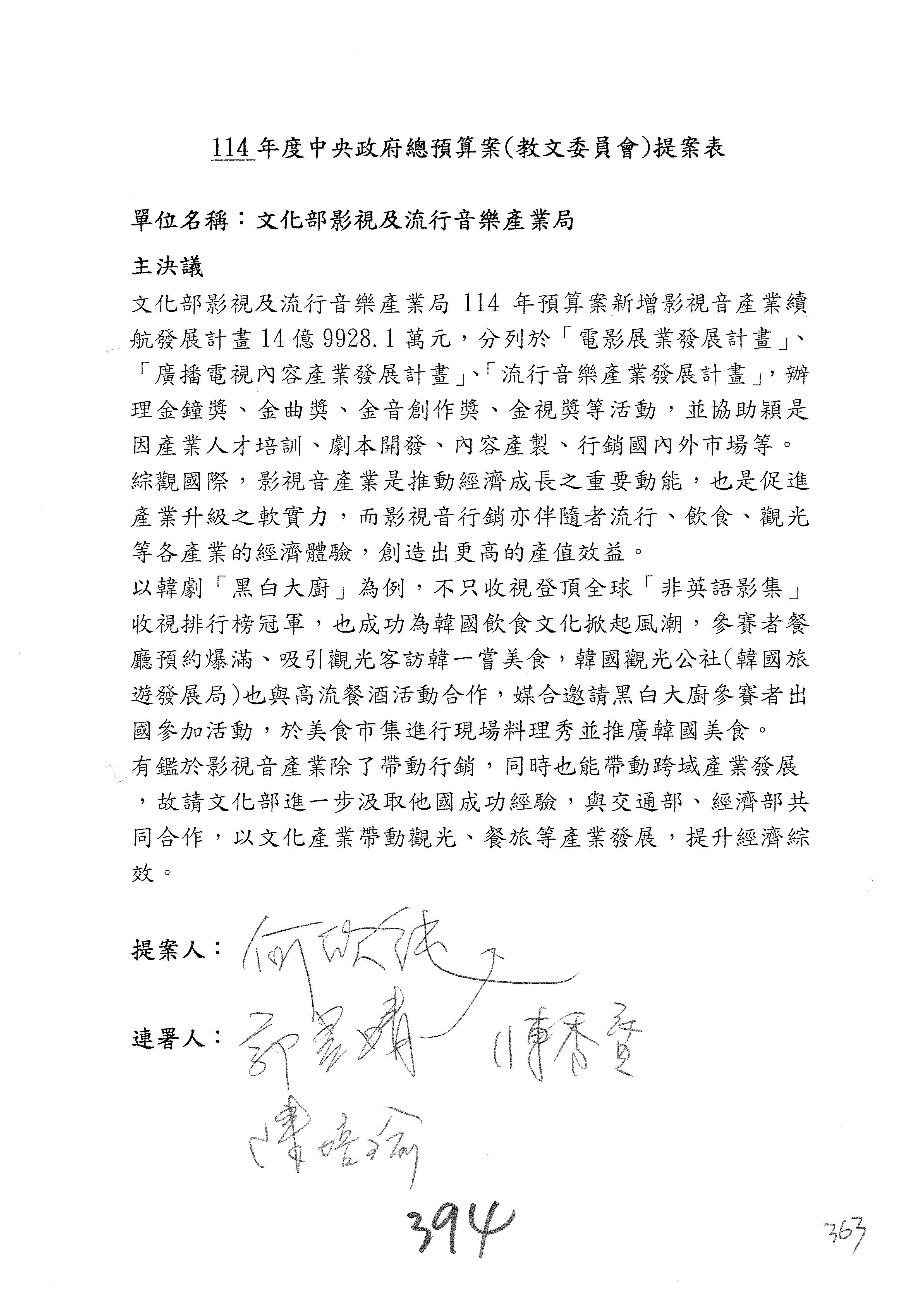 提案人:吳沛憶 羅廷瑋 柯志恩 萬美玲 陳秀寳 葉元之 林倩綺 洪孟楷 徐巧芯