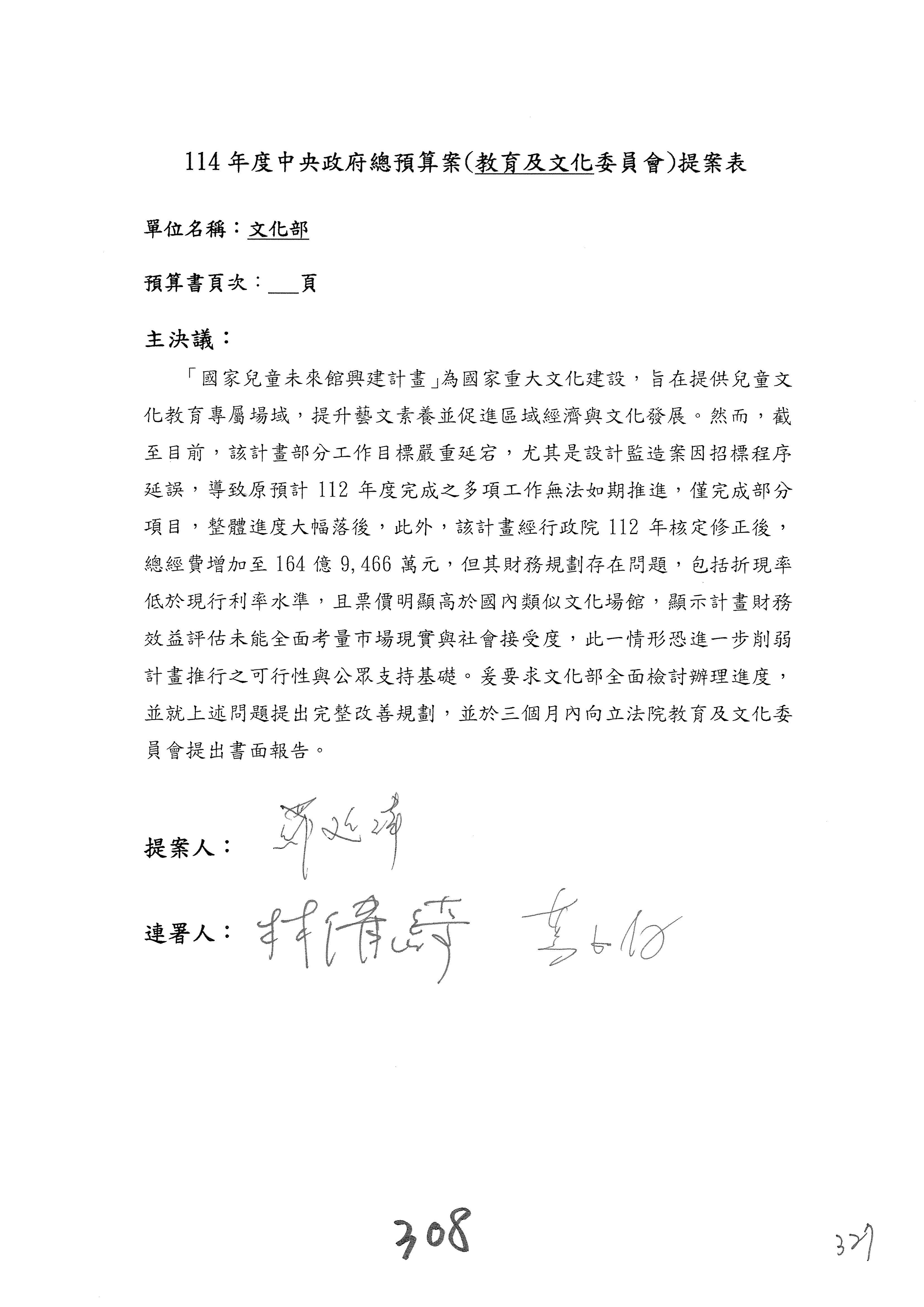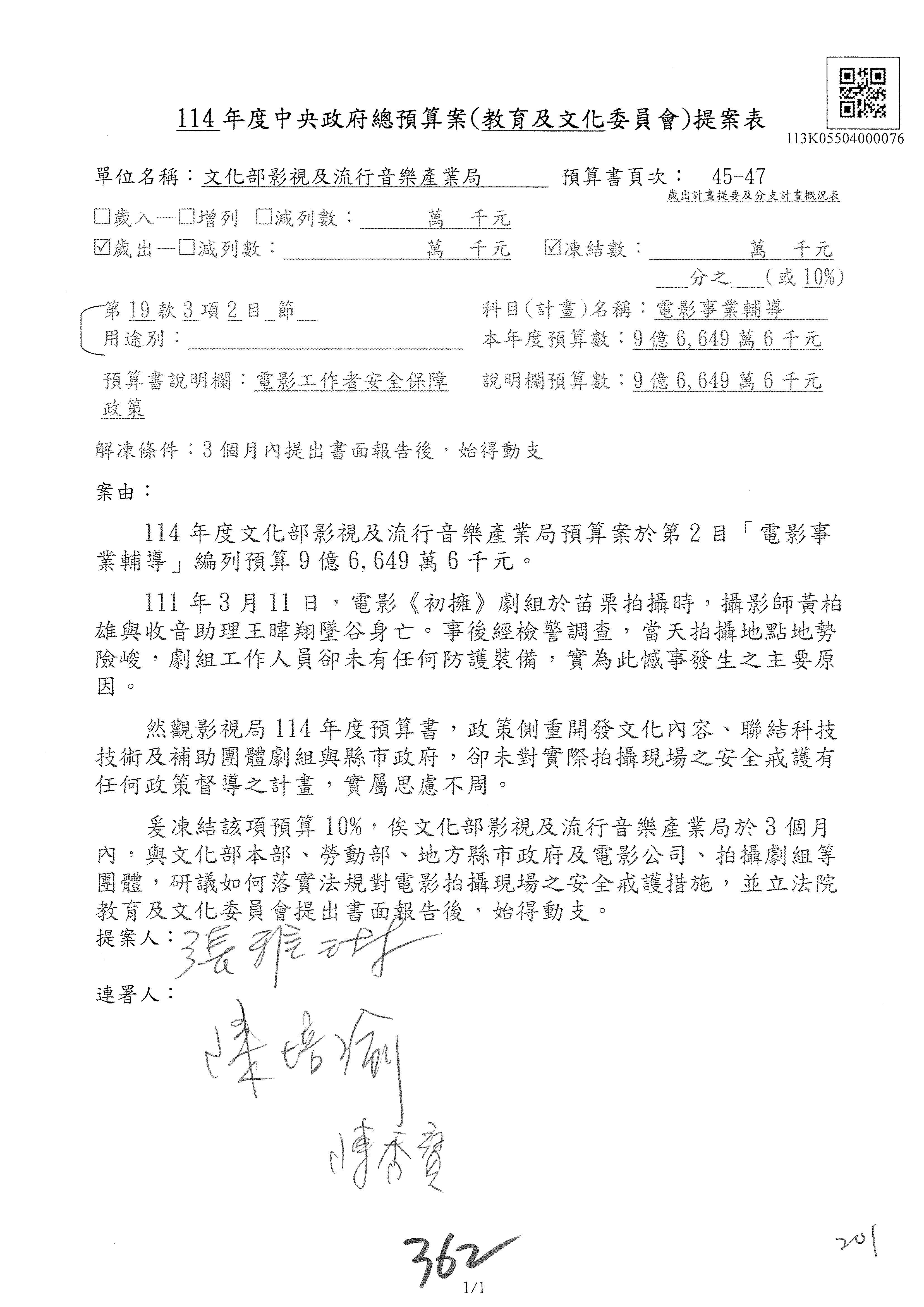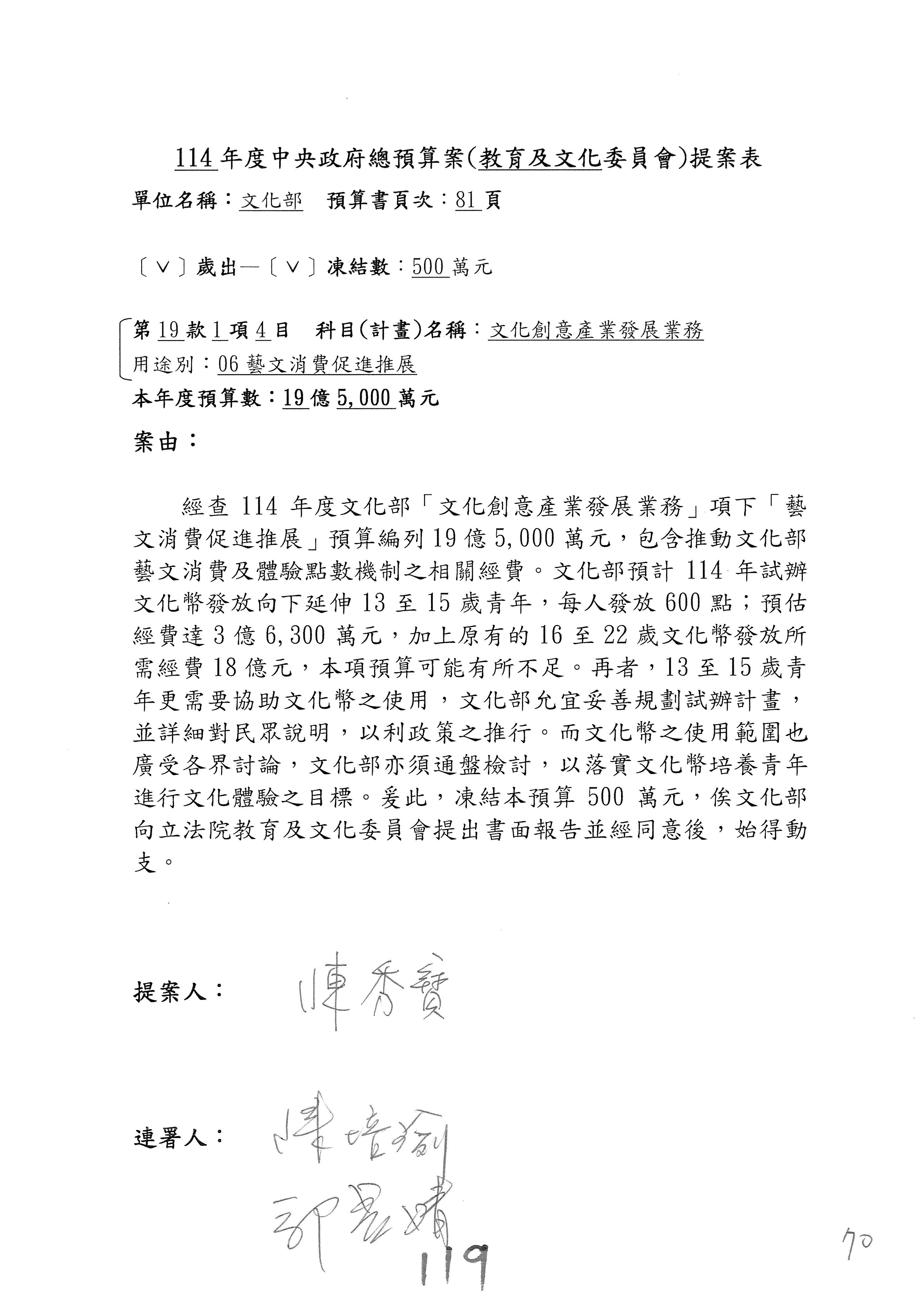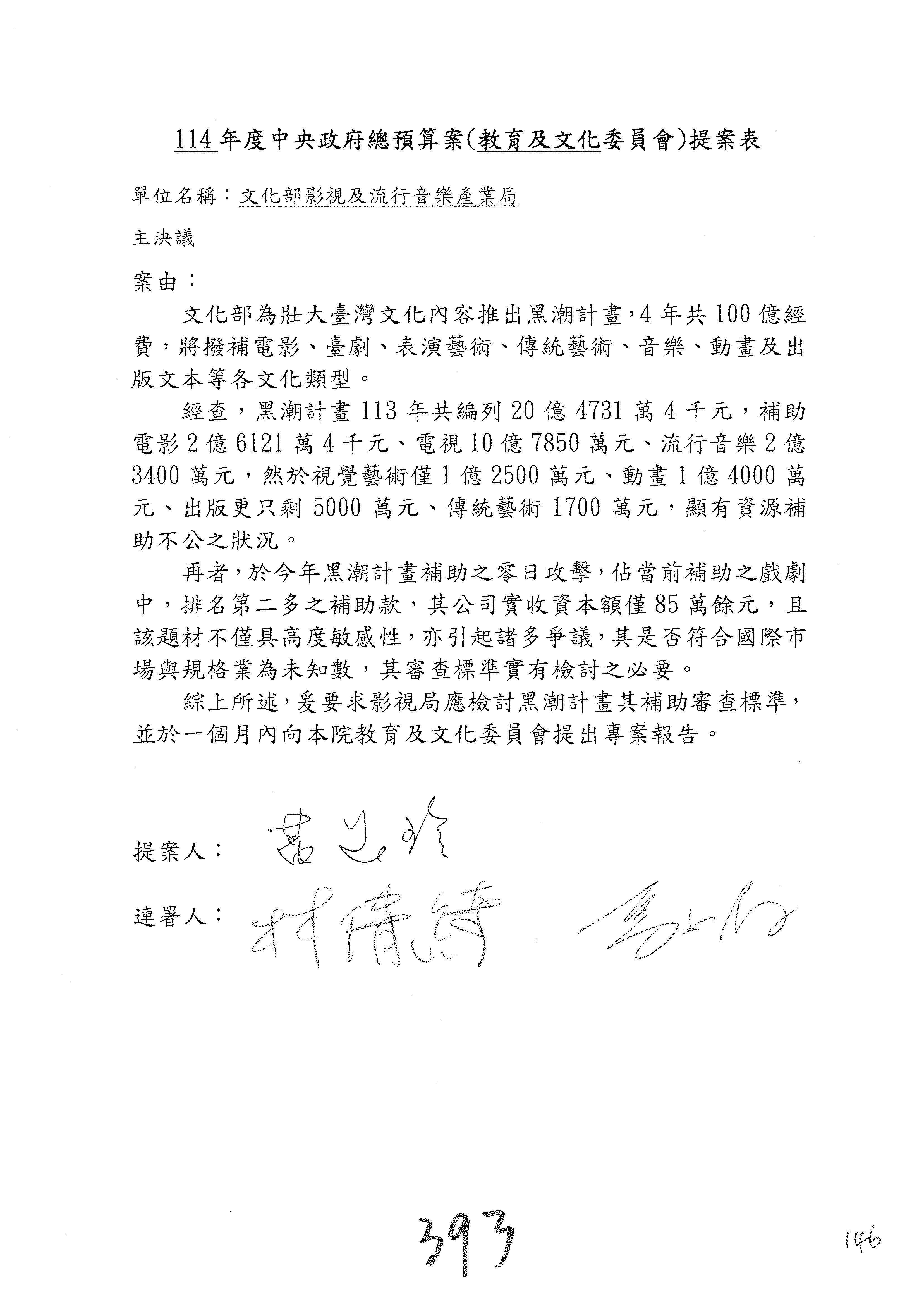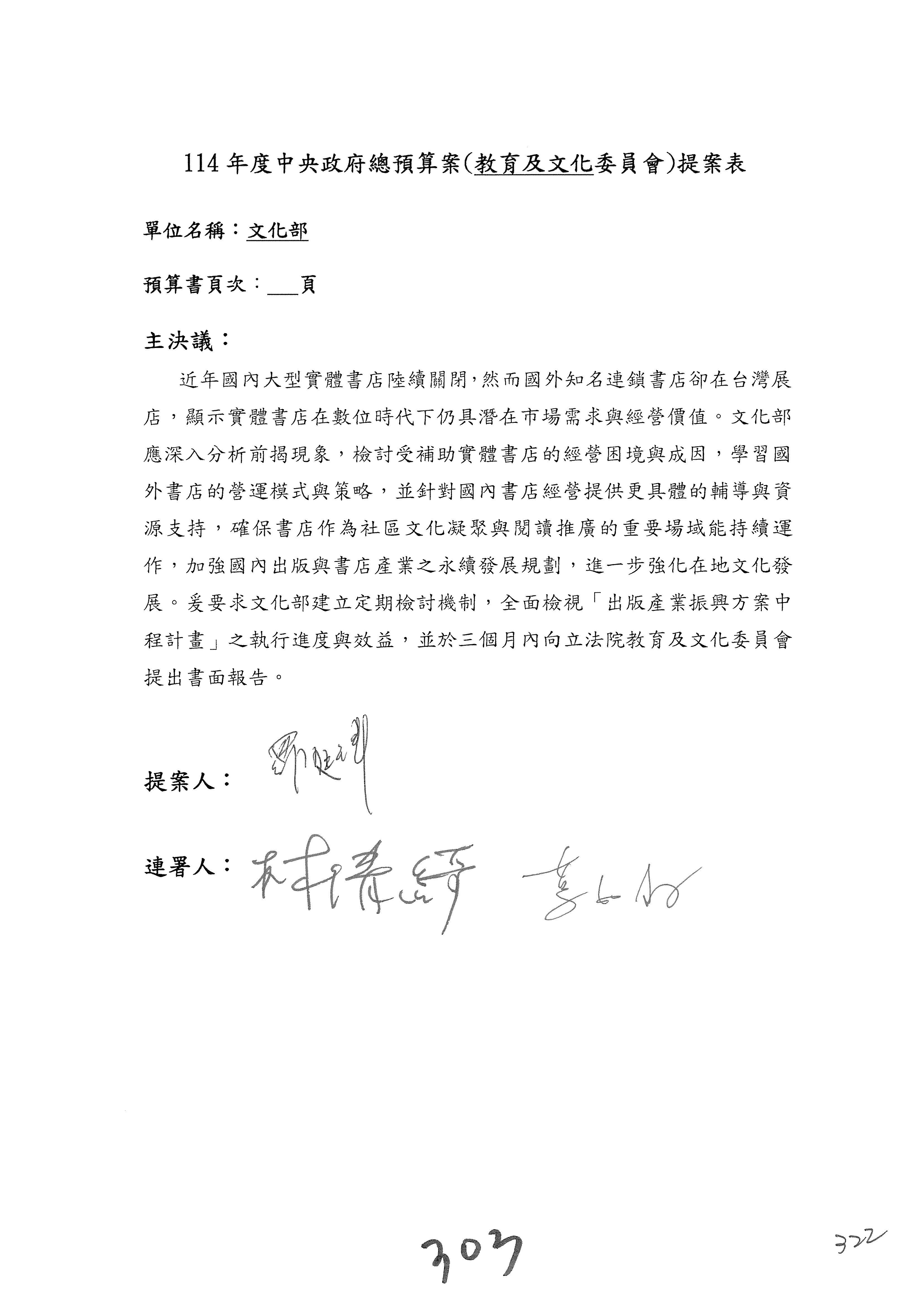 提案人:吳沛憶 羅廷瑋 柯志恩 萬美玲 陳秀寳 葉元之 林倩綺 洪孟楷 徐巧芯