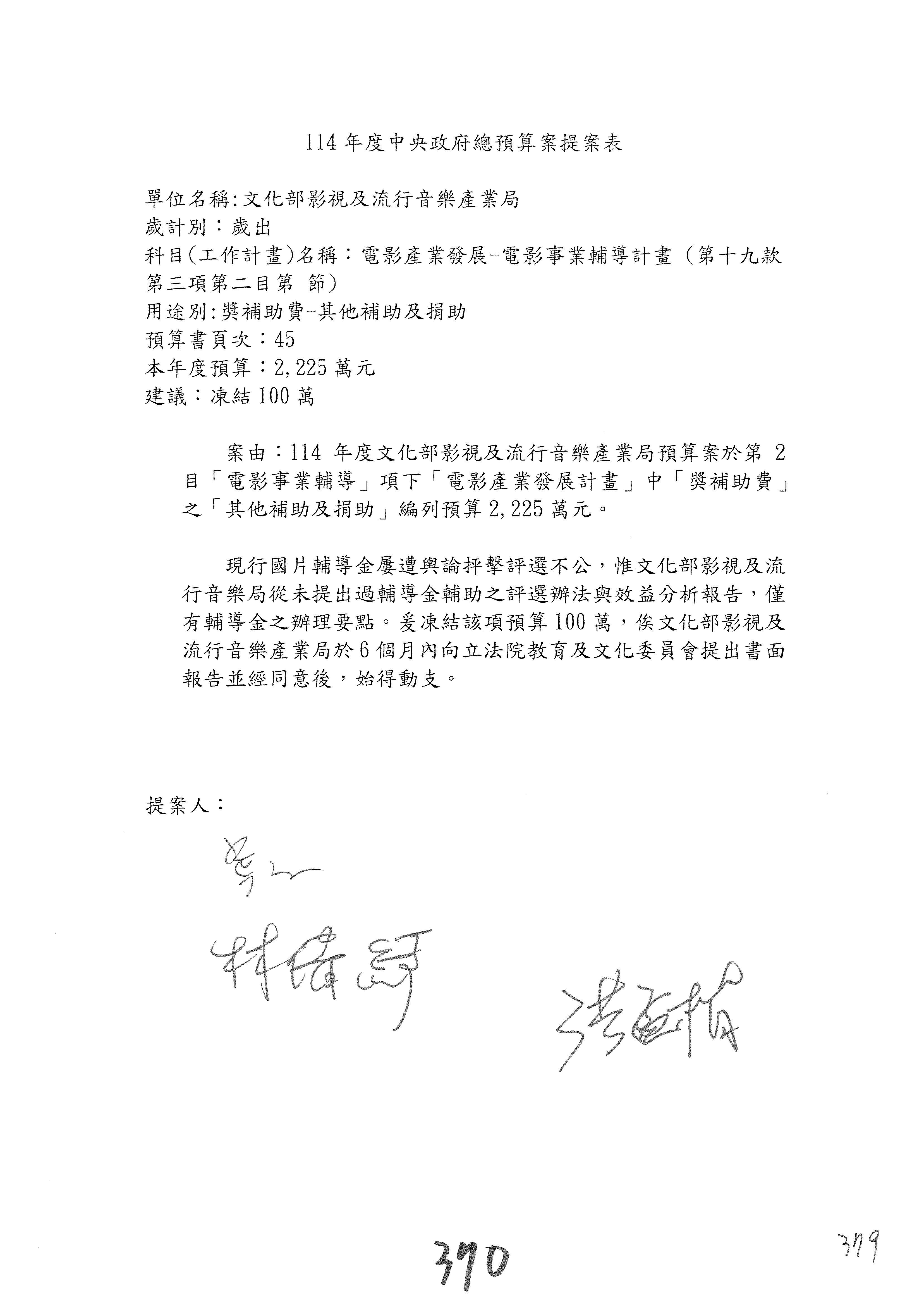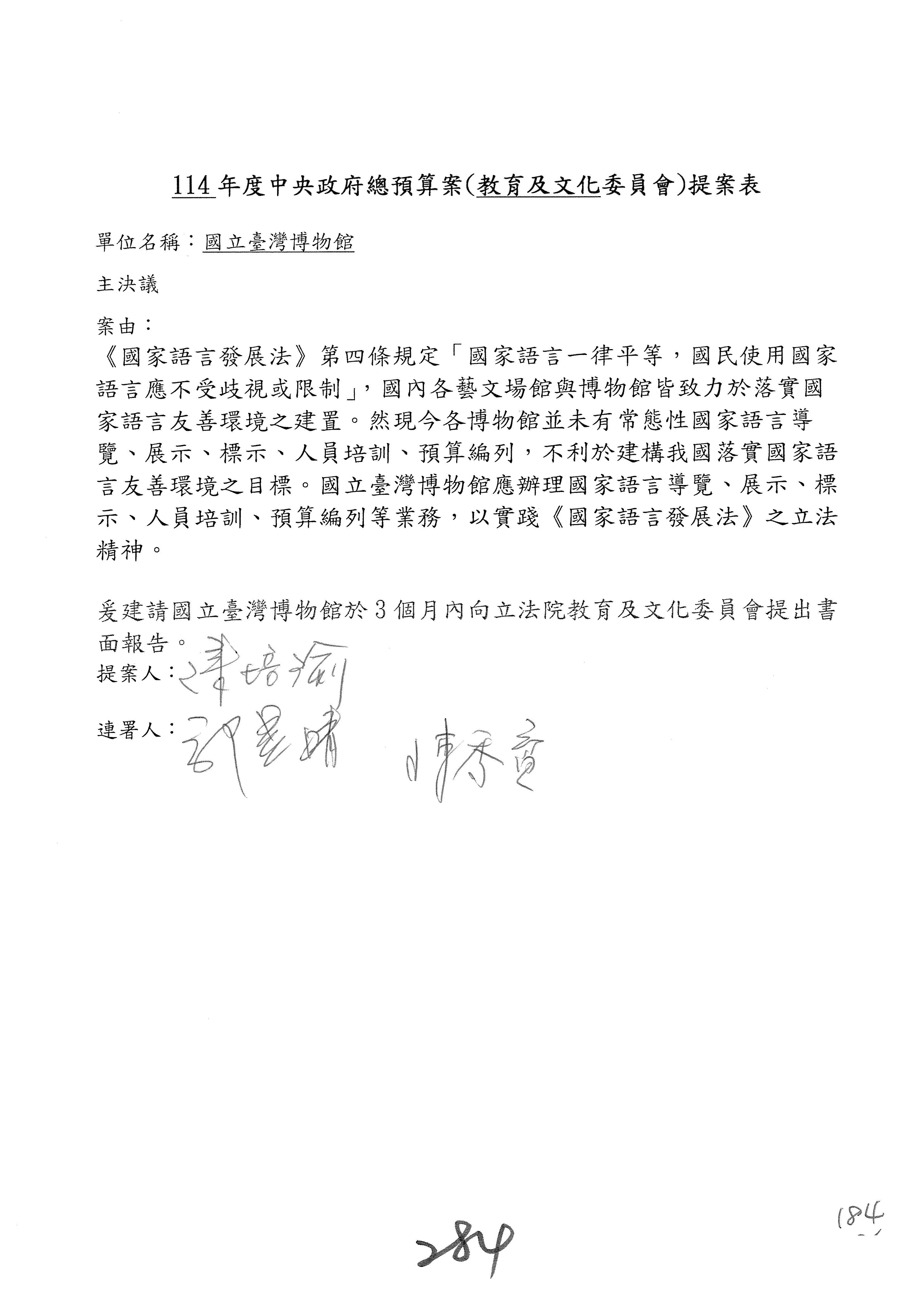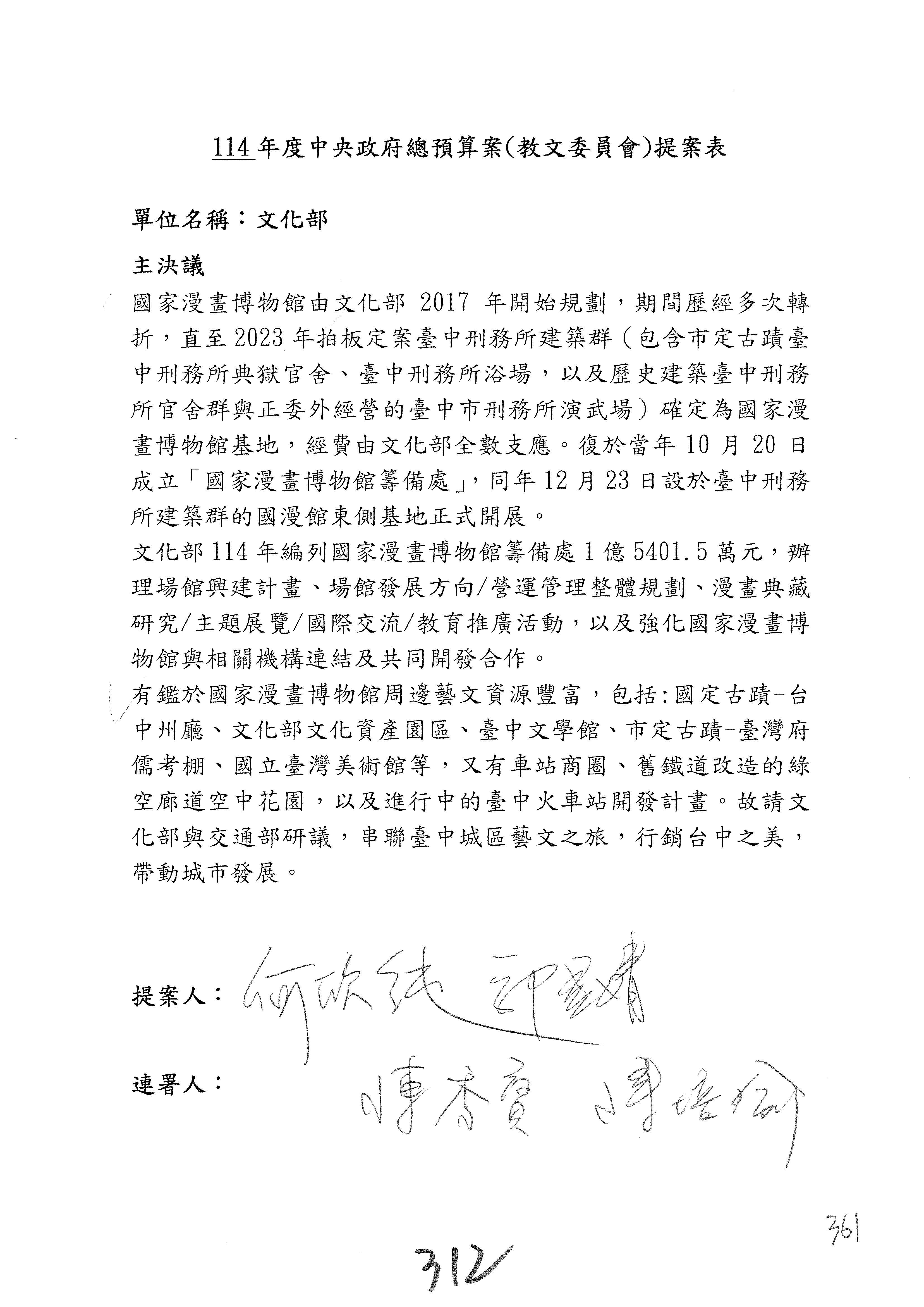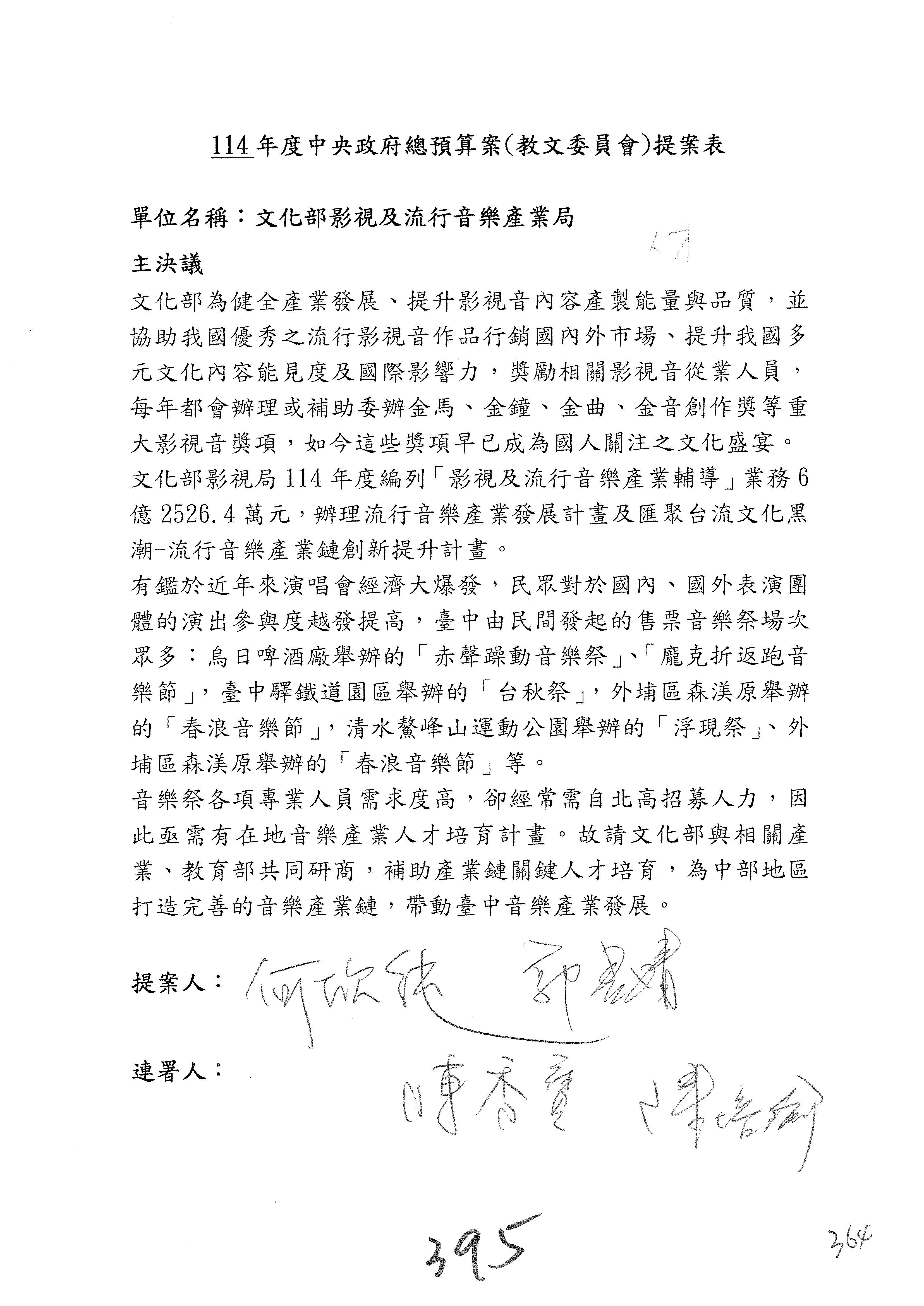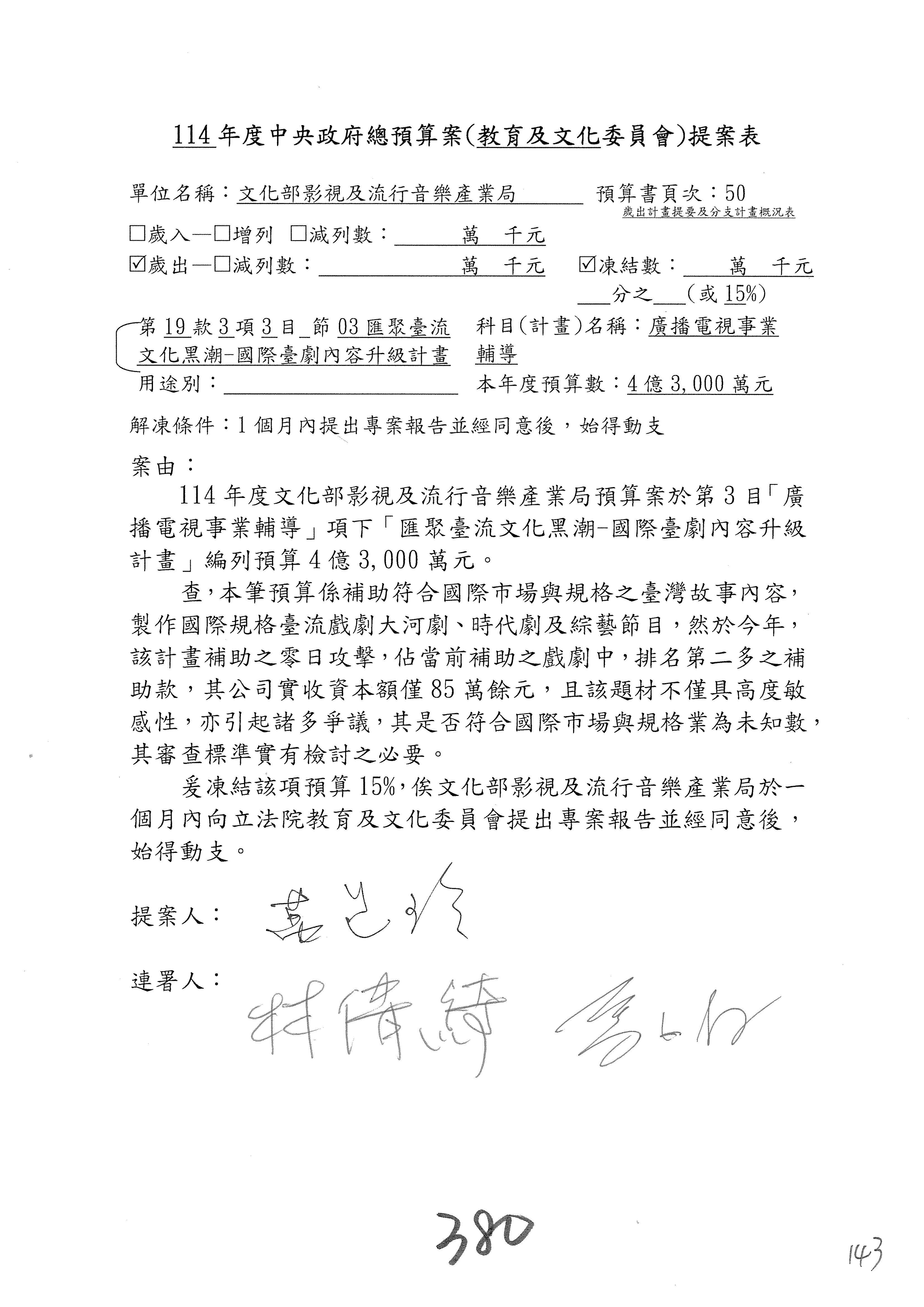 提案人:吳沛憶 羅廷瑋 柯志恩 萬美玲 陳秀寳 葉元之 林倩綺 洪孟楷 徐巧芯