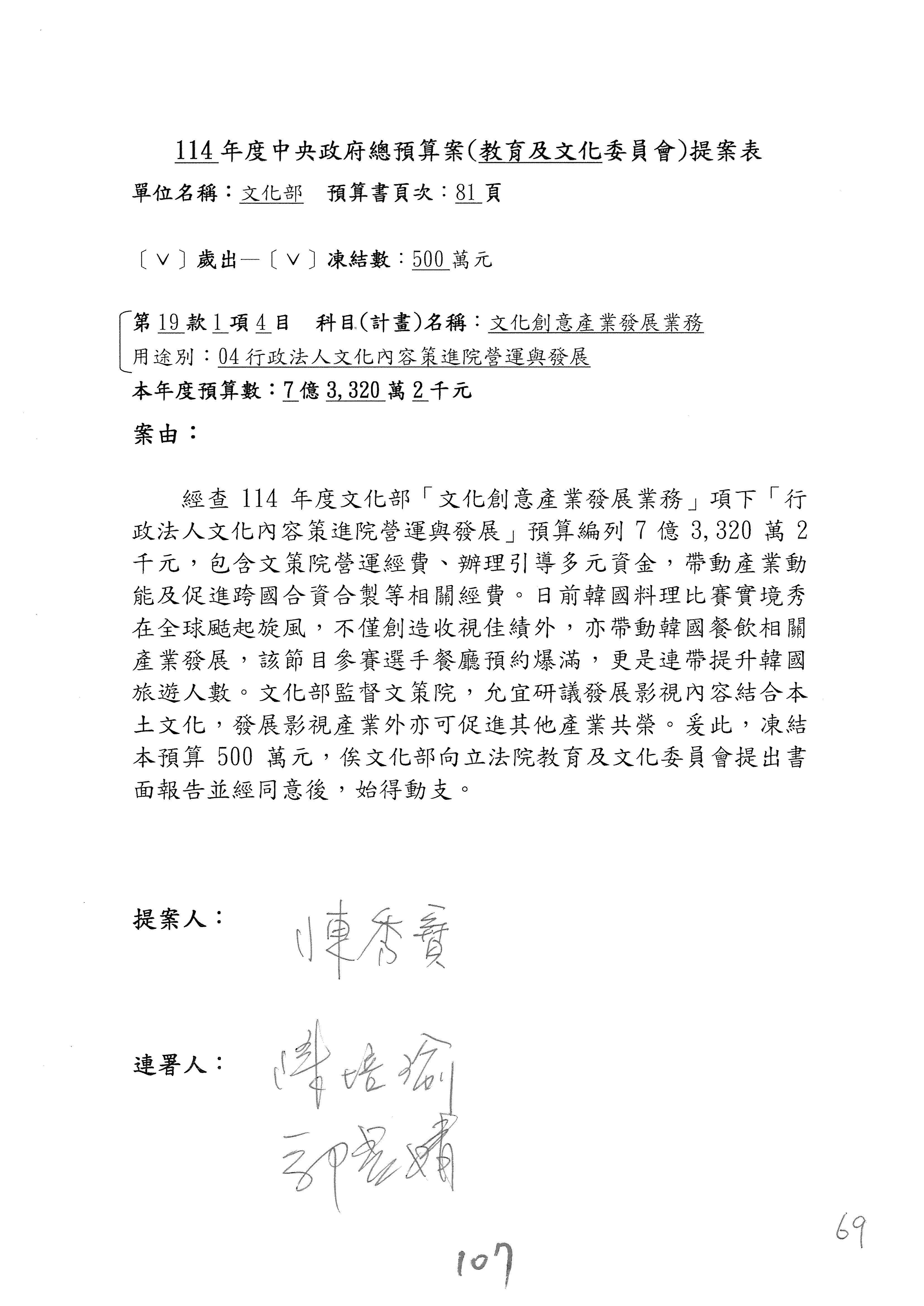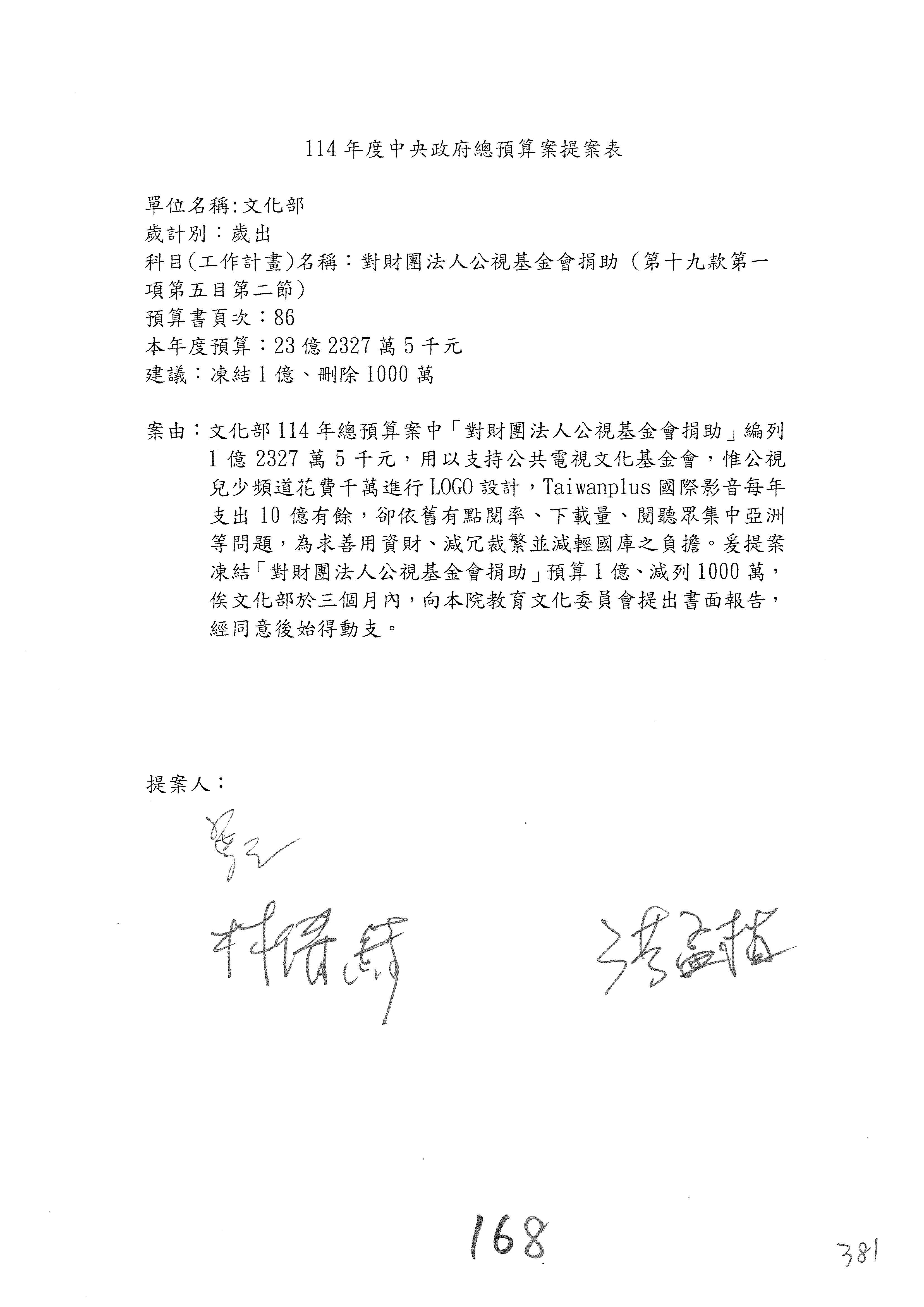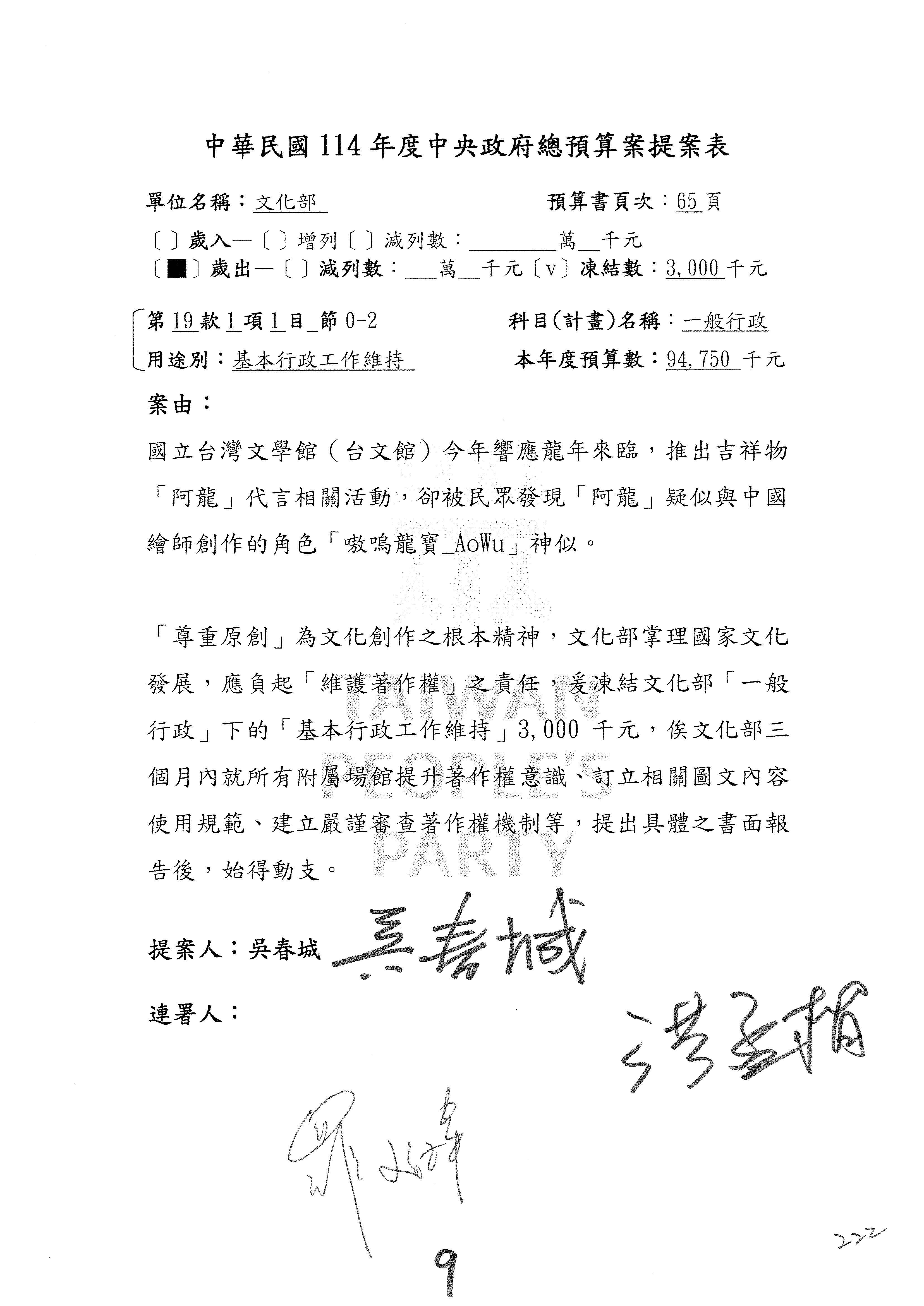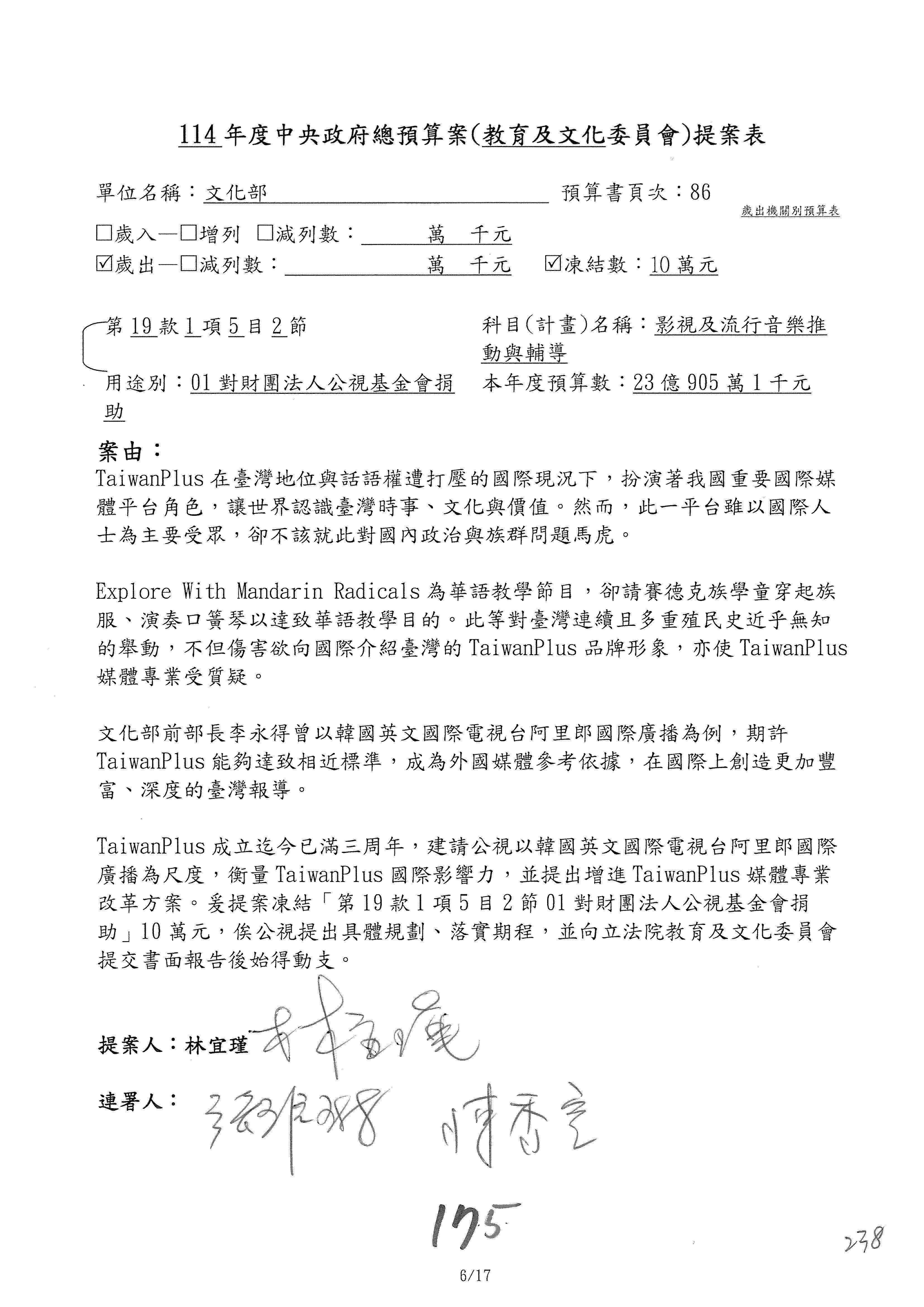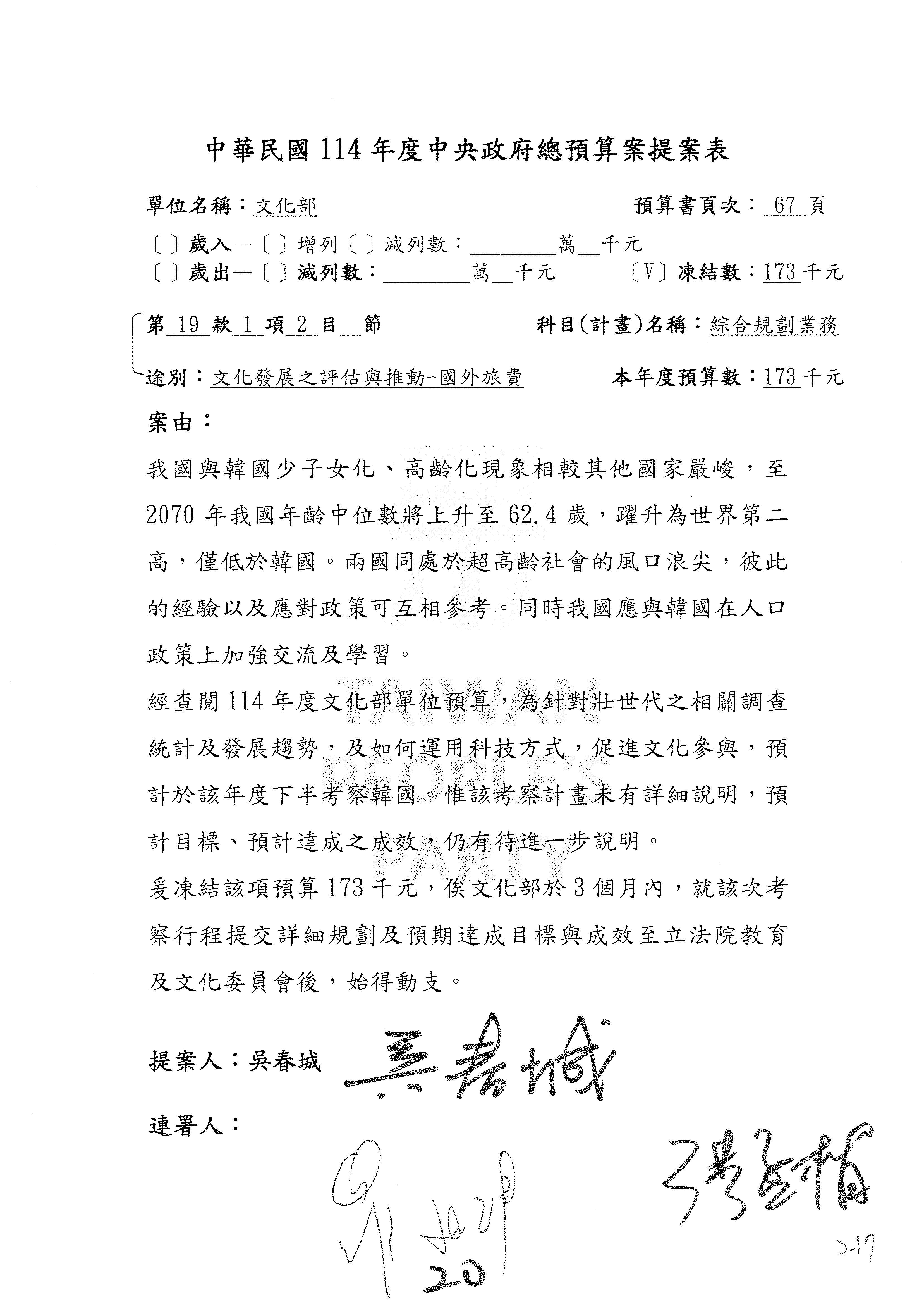 提案人:吳沛憶 羅廷瑋 柯志恩 萬美玲 陳秀寳 葉元之 林倩綺 洪孟楷 徐巧芯
