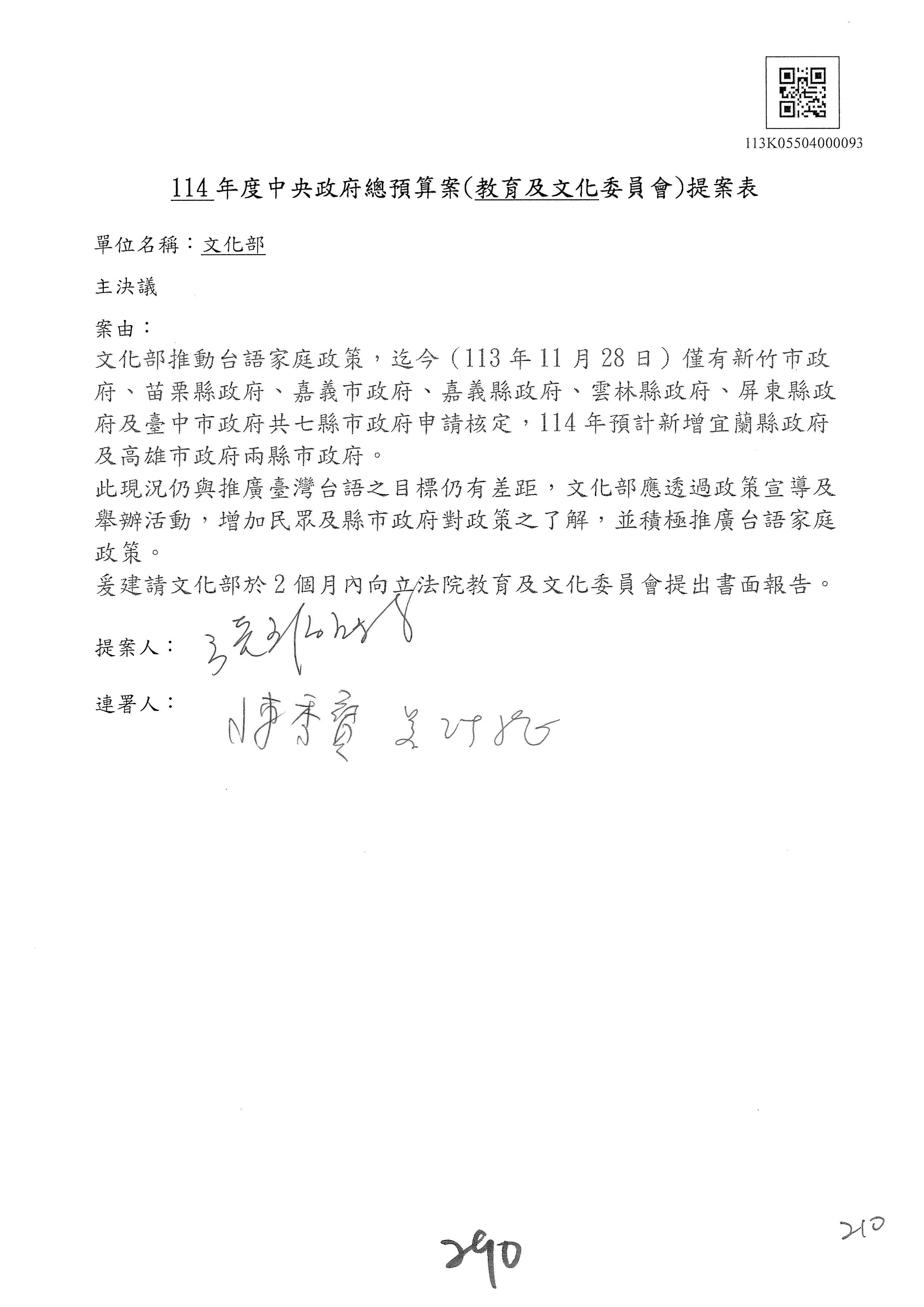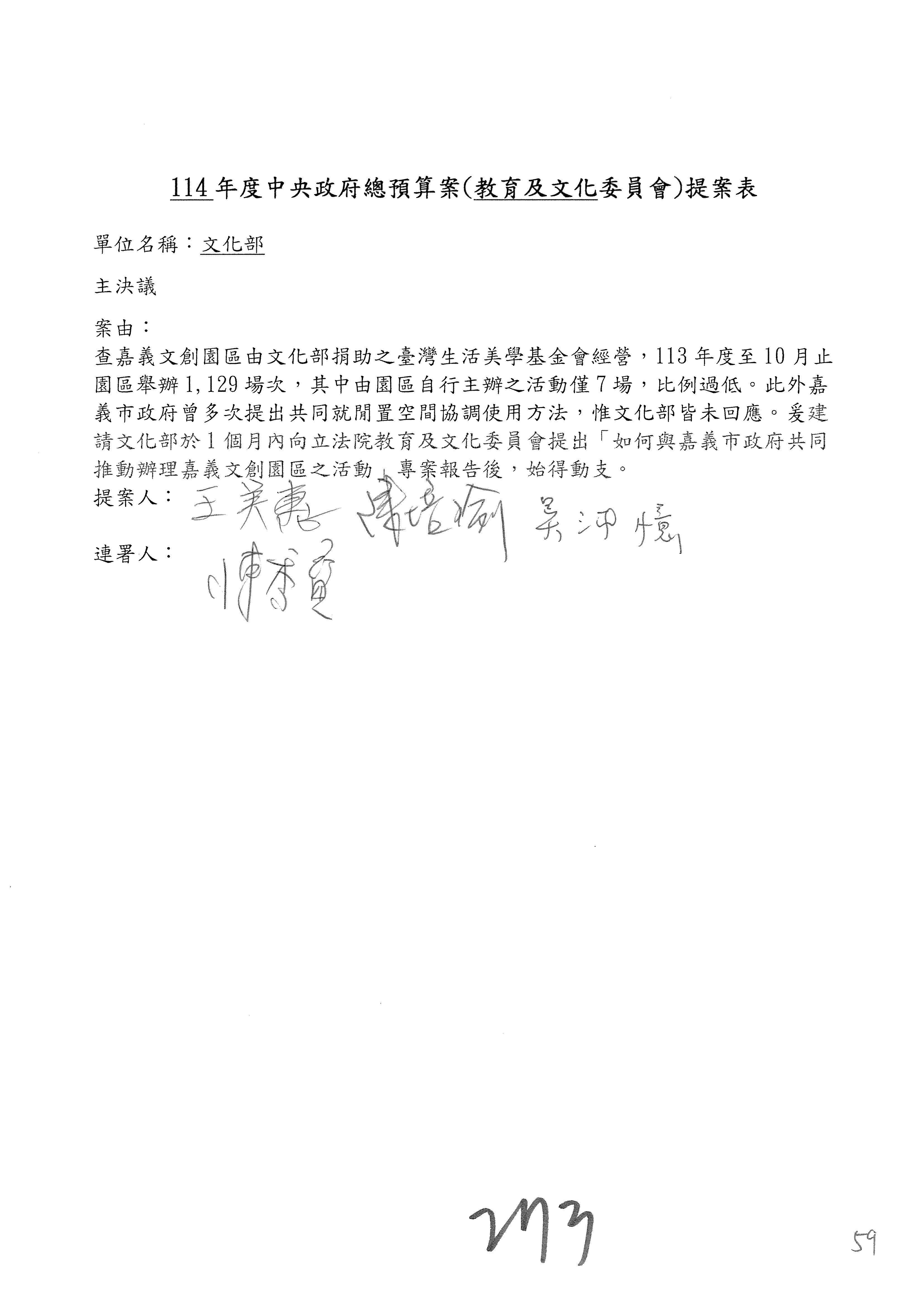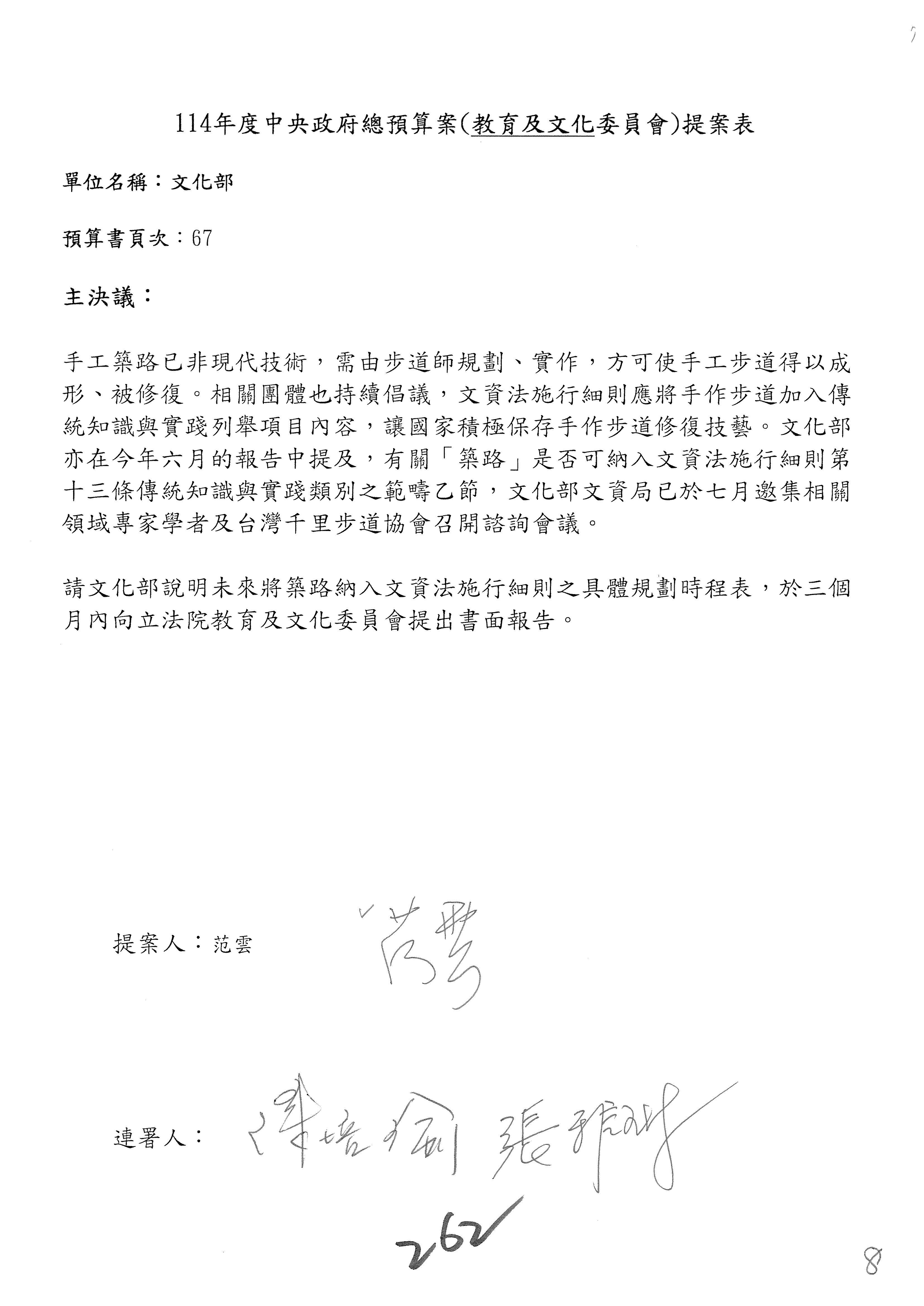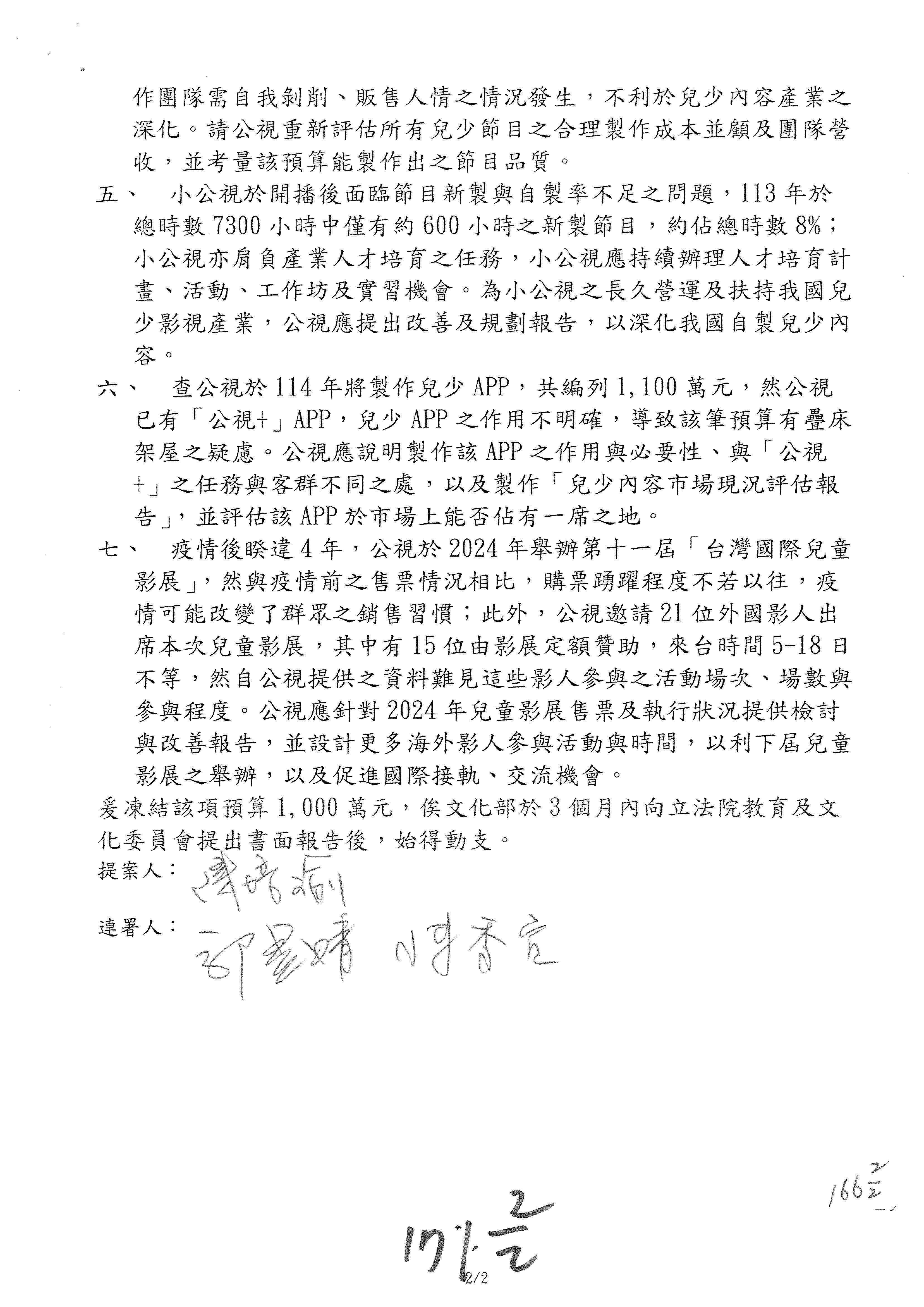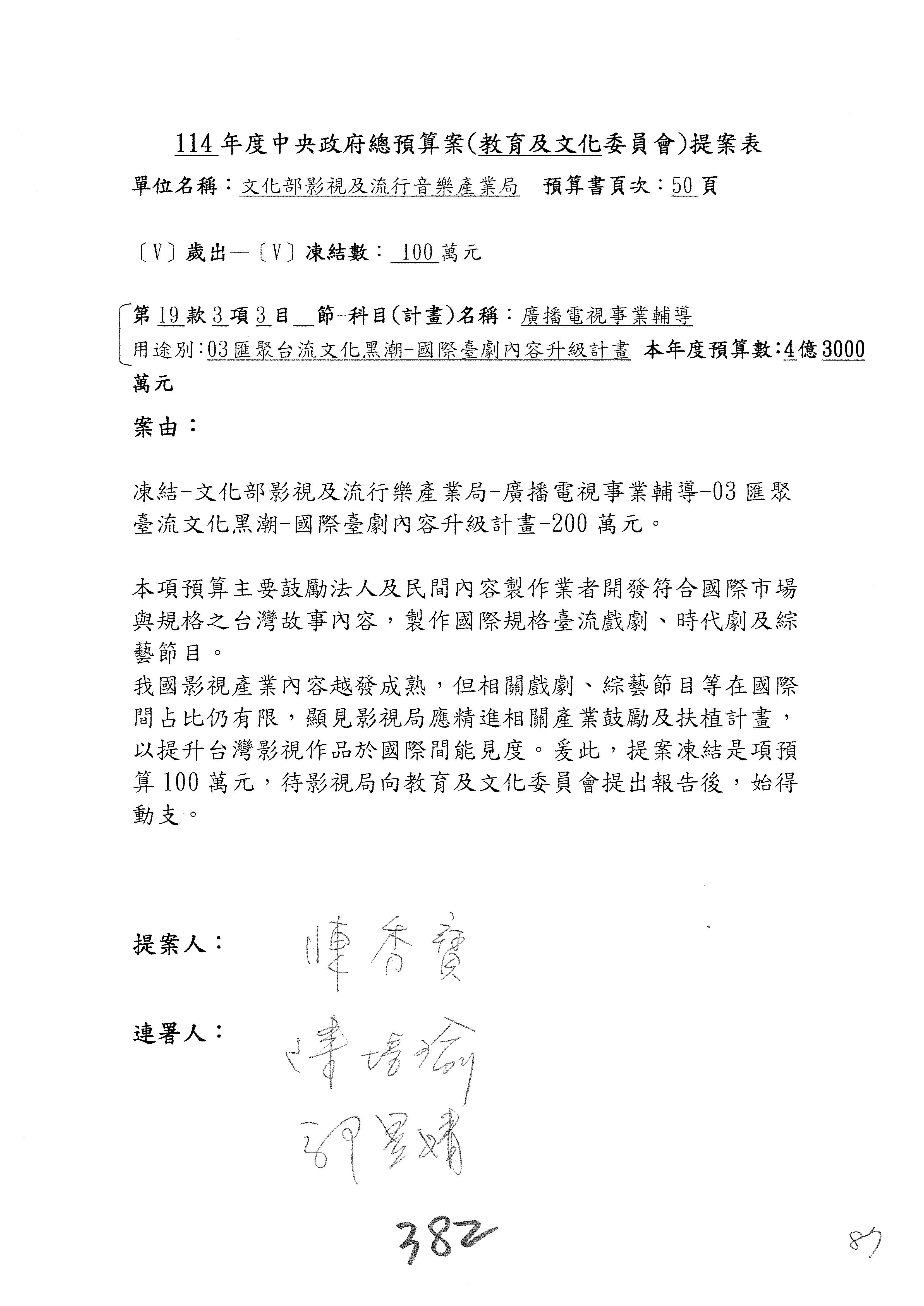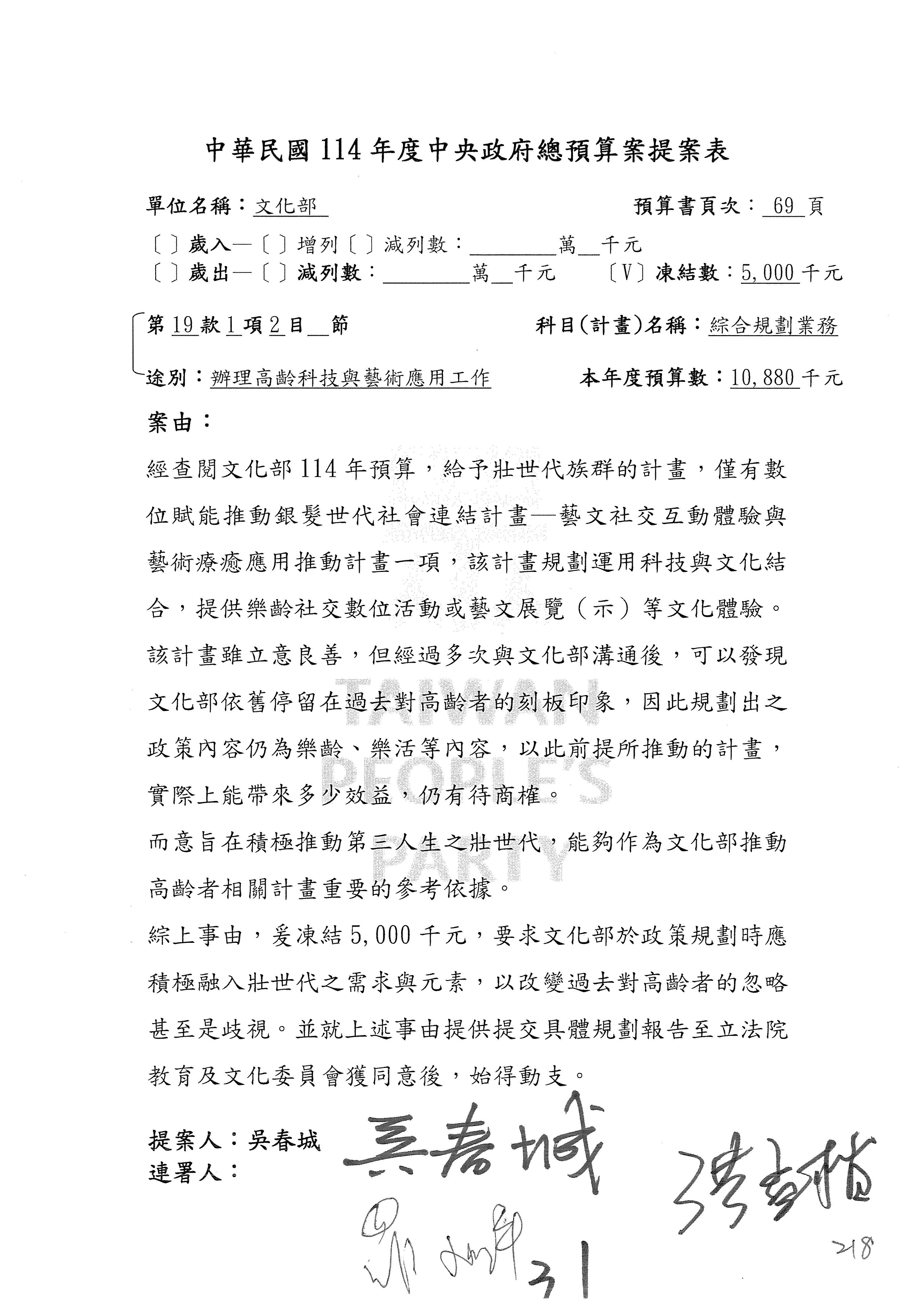 提案人:吳沛憶 羅廷瑋 柯志恩 萬美玲 陳秀寳 葉元之 林倩綺 洪孟楷 徐巧芯