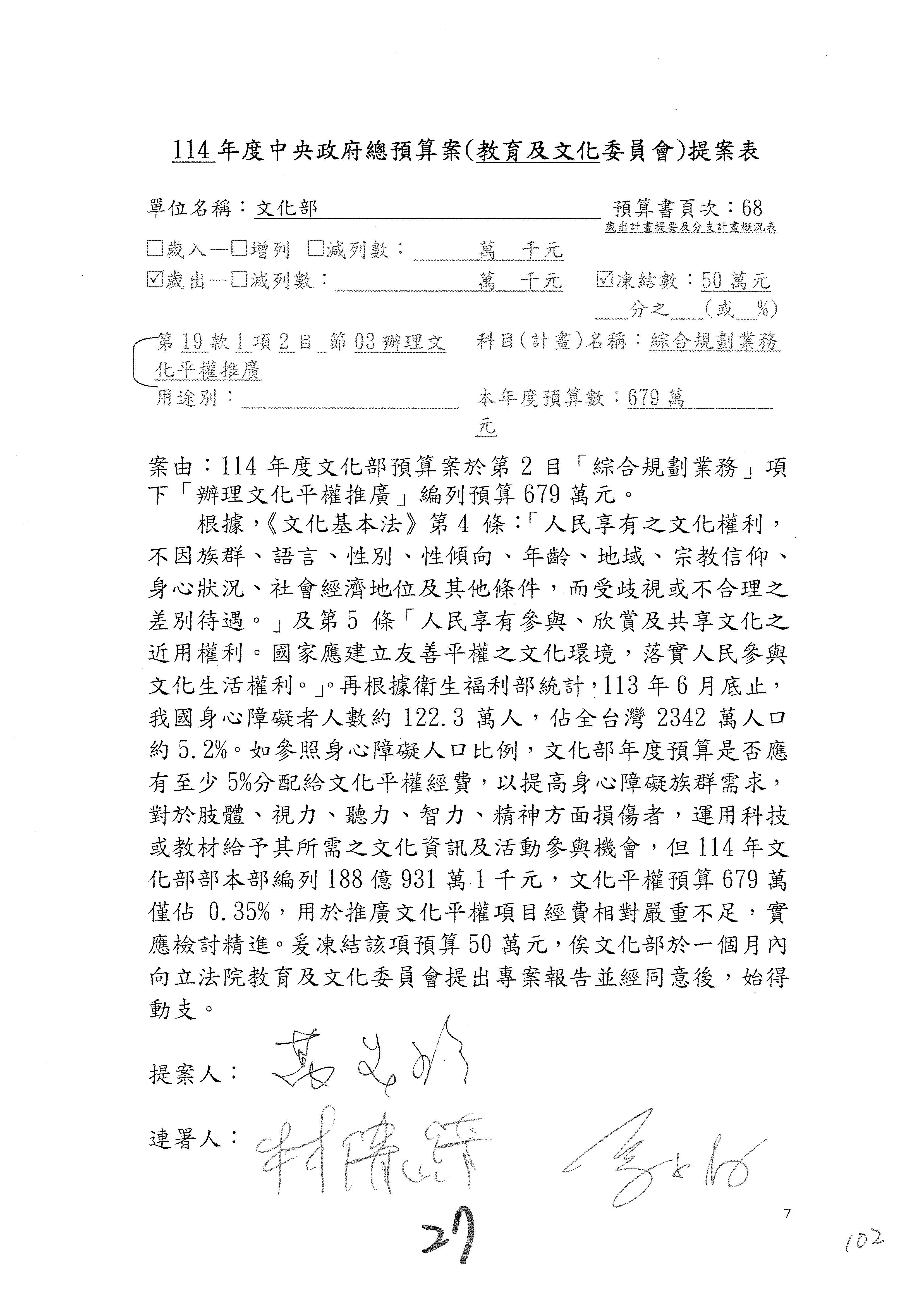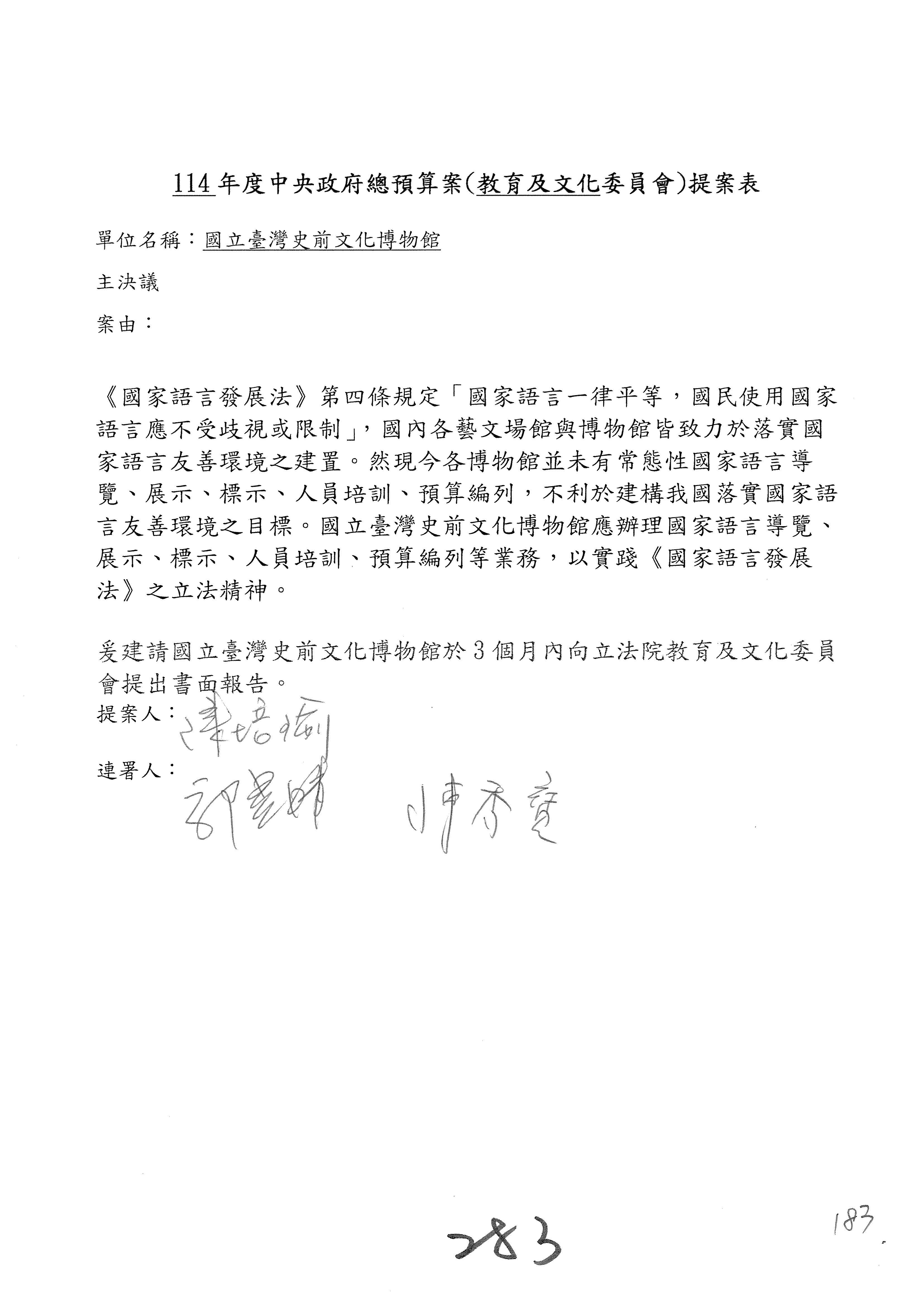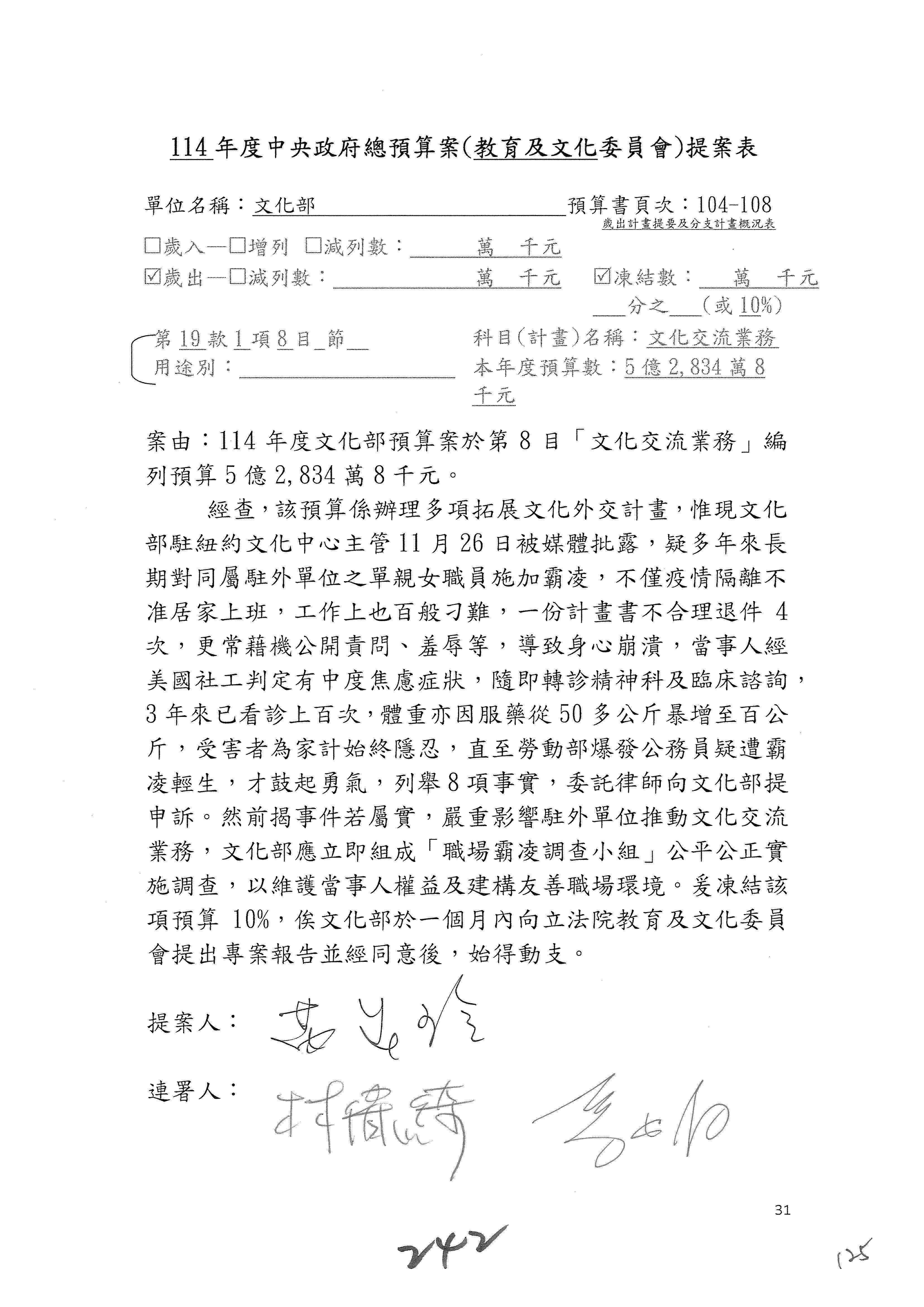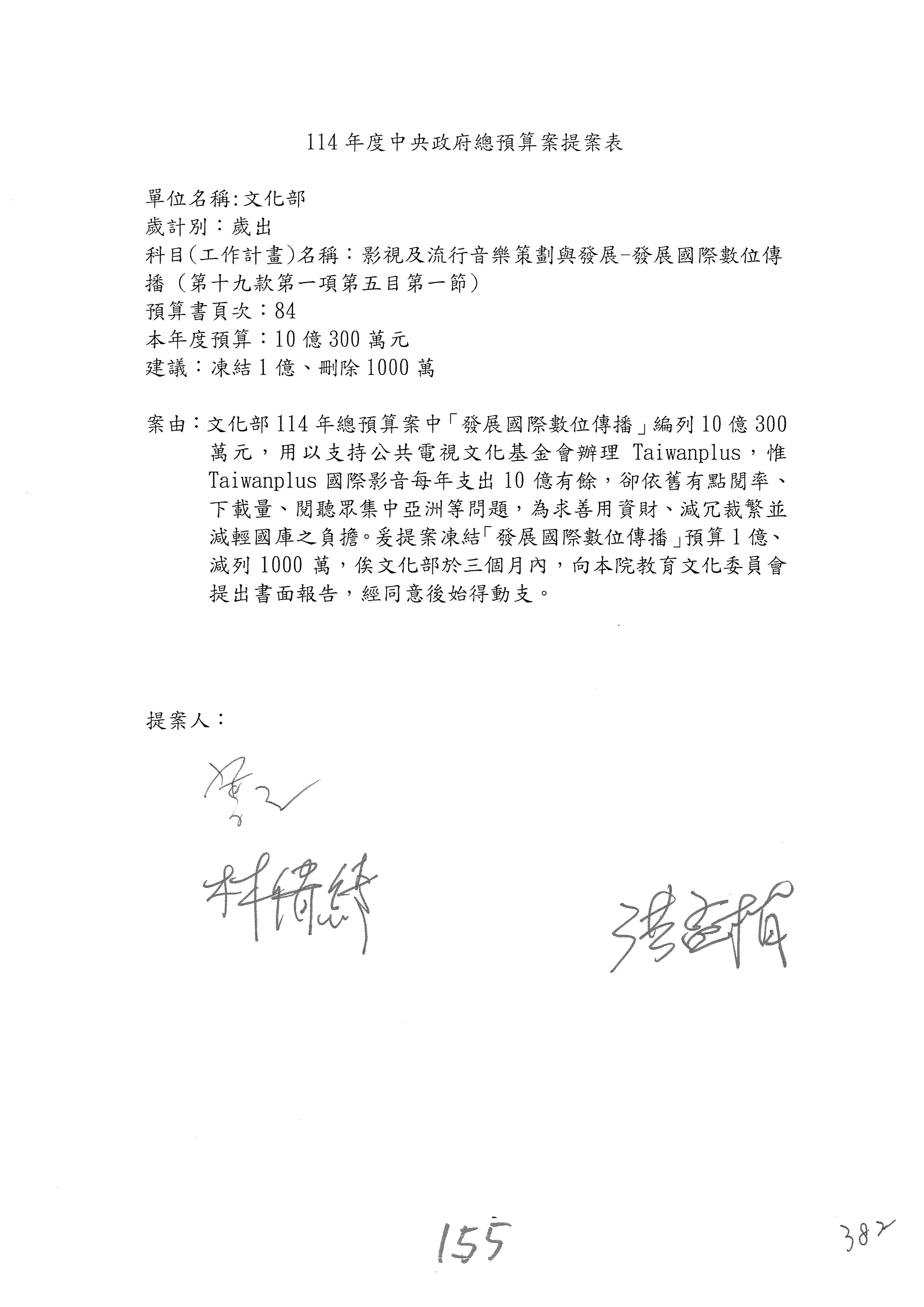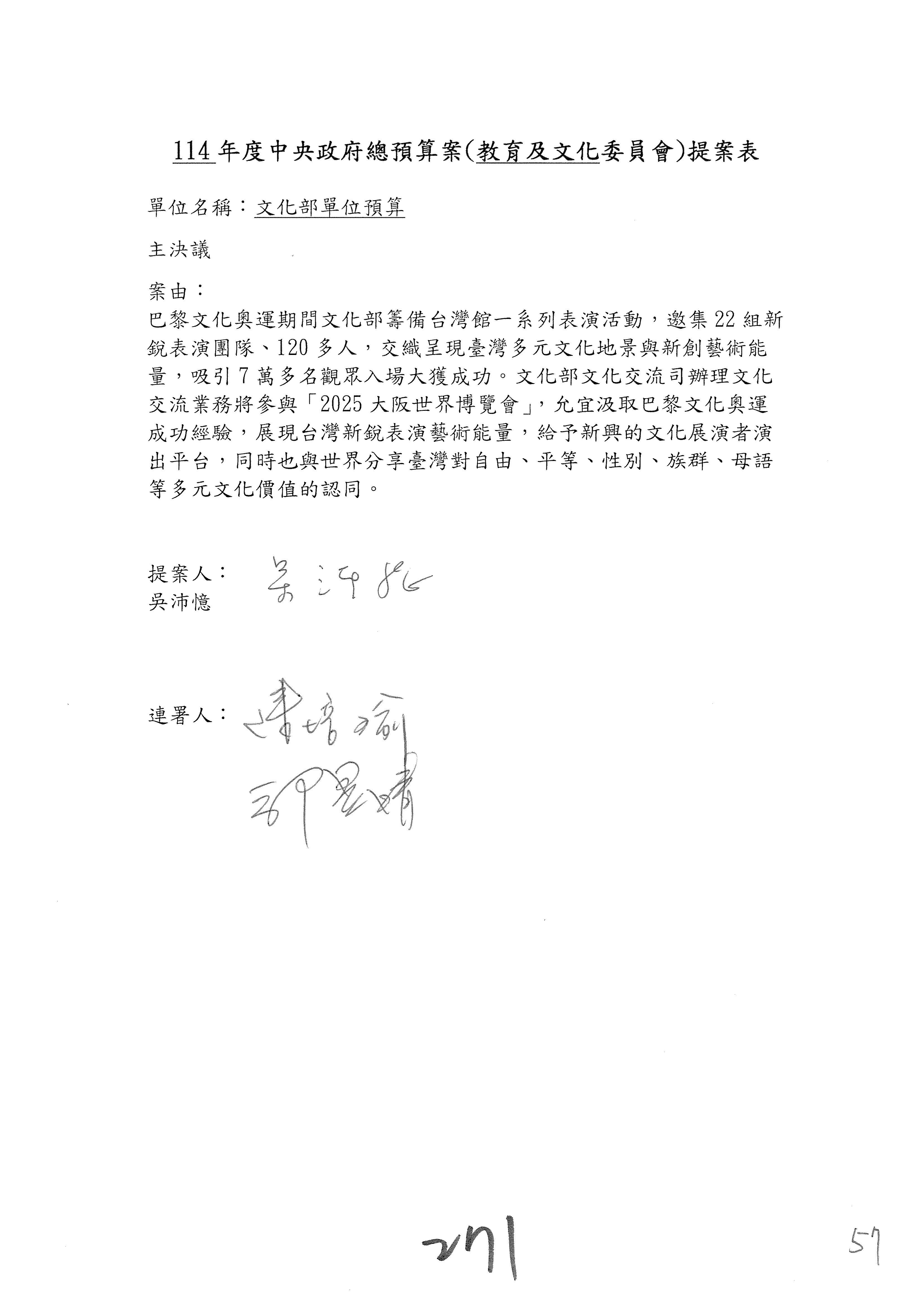 提案人:吳沛憶 羅廷瑋 柯志恩 萬美玲 陳秀寳 葉元之 林倩綺 洪孟楷 徐巧芯